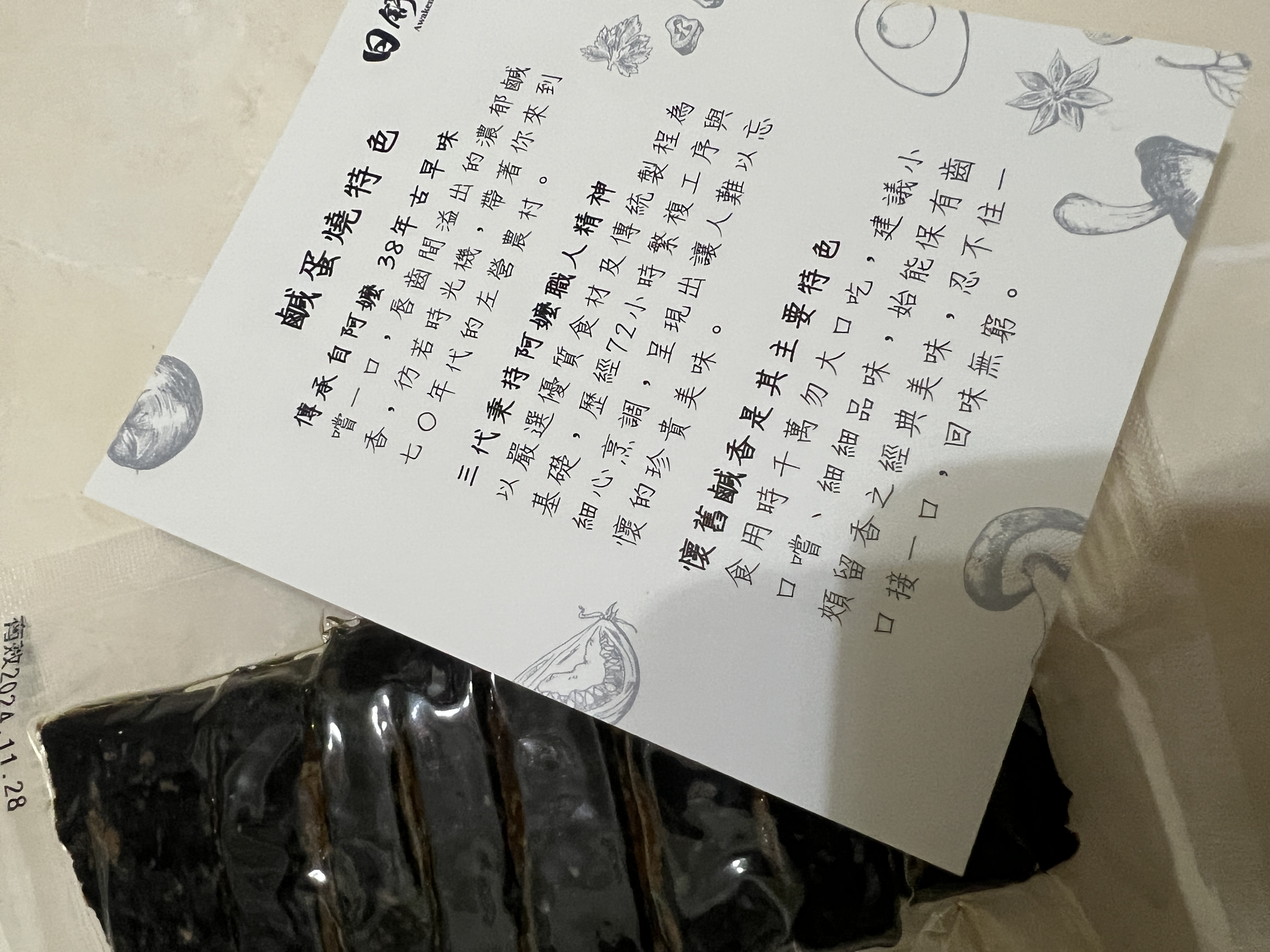 回列表 日舒醒 御廚鹹蛋燒 體驗傳統農村鹹香好滋味 遵循古法飄香至今 市價150元(免費申請) 所需等級 一般會員以上 所需學分 50 體驗份數 15 關注人數 1574 申請人數 341 申請截止 品牌業者:日舒醒 負責廠商 舒醒股份有限公司 廠商地址 高雄市苓雅區光華一路206號17樓之2 產地 台灣 試用產品規格 70g/包 食品業者登錄字號 E-154637387-00000-5 投保產品責任險字號 泰安產物保險股份有限公司 07字第562211A10055號 心得分享 商品介紹 商品成分 使用方法 注意事項 體驗名單 8.0 日舒醒 御廚鹹蛋燒 鹹蛋香氣 8.3 鹹蛋濃郁度 7.6 多元搭配 8.2 包裝美學 8.2 建議推薦 7.9 心得分享 13則 廖珠吟 金食達人 39歲 臺中市 2023/12/18 對日舒醒 御廚鹹蛋燒留下評價 8 今天我試吃了一道簡單卻美味的鹹蛋燒配白飯。由紫菜包裹而成的鹹蛋燒散發出濃郁的香氣,當我把它與香噴噴的白飯融合在一起時,口感絕佳,每一口都帶有濃郁的鹹蛋黃味道,蛋黃的鹹香與米飯的清香融合,形成了完美的平衡,非常下飯。御廚鹹蛋燒非常適合作為佐食,如果作為炒飯材料之一肯定也很美味。 宋牧橙 金食達人 37歲 臺中市 2023/12/19 對日舒醒 御廚鹹蛋燒留下評價 10 設計包裝簡約、風格時尚!去掉過多的包裝浪費,感覺是好的廠商有在跟上SDGS,讓購買的大家也一起為我們唯一的地球創造永續。鹹蛋的香氣十足、口感綿密、味道也恰到好處,跟毛豆一起搭配不違和也很美味,裡頭還有一張貼心的食用方法,教學怎麼跟主食、料理搭配,或是額外的創意料理發想,是之後有時間我們也想來試看看的創意料理、也是可以繼續回購的好產品! 夢旅獅 金食達人 41歲 新北市 2023/12/20 對日舒醒 御廚鹹蛋燒留下評價 7 這次看到即食鹹蛋燒的商品圖對鹹蛋燒十分好奇,收到商品時捧著過大的紙箱不知是否要給人驚喜禮包的感覺,深色紙盒的包裝上方的字體標註清晰明顯,包裝正面有一小縷空櫥窗可見到內容物,但我個人覺得沒有辦法看到全貌,包裝內有附小卡上方有建議食用方式;不含色素&防腐劑的鹹蛋燒讓人較為放心品嚐,鹹蛋燒為保鮮真空包裝,紫菜包覆的鹹蛋燒沾滿著黃豆油,似是忘了鹹鴨蛋製成的鹹蛋燒,切片鹹蛋燒讓人想直接片片品嚐,直接品嚐的話與直食鹹鴨蛋那蛋白一樣鹹,建議切碎搭配食材或是小口搭配,鹹蛋燒口感扎實,鹹香程度覺得十分適合配飯粥搭配。 楊上慧 金食達人 43歲 新北市 2023/12/20 對日舒醒 御廚鹹蛋燒留下評價 7 這次試吃的鹹蛋燒是從沒吃過的東西,打開包裝發現非餅乾,是屬於有點醬汁的食品,於是等到中午用餐跟同事大家一人一片配便當來試吃,終於知道為什麼說明書上寫要配飯配粥吃,因為超級鹹的,整片吃下去的感覺 就是很鹹而已,連同事們也都覺得很鹹而已,沒有甚麼特殊的想法……產品感覺應該改良一下,不然回購率應該很低吧! Sandra Chien 金食達人 26歲 新北市 2023/12/20 對日舒醒 御廚鹹蛋燒留下評價 7 跟想像中的口感不太一樣,整體很扎實,單吃比較鹹,有種在吃烏魚子的感覺,吃得出有顆粒感的鹹蛋試著切成丁搭配無調味的炒飯,有加分的效果,炒飯多了一股鹹香味,比起直接吃,搭配料理有融合的感覺,而且還能有助於提鮮會想嘗試利用鹹蛋燒做出不同的料理,或是搭配更多樣的吃法,感覺都能帶來不同的滋味 陳韻涵 鑽石達人 34歲 臺中市 2023/12/20 對日舒醒 御廚鹹蛋燒留下評價 7 感謝食力實驗室讓我能試吃「日舒醒 御廚鹹蛋燒」日舒醒 御廚鹹蛋燒採用真空包裝,且不用加熱即可食用非常方便,第一次聽到「鹹蛋燒」,想不到它已經存在了38年之久啊~吃起來的口感很像魚卵的感覺鹹香鹹香的,真的要小口品嚐,不然大口真的要搭配白飯才不會過鹹,真的覺得外面包裹的那片海苔很加分,吃進嘴裡的時候除了蛋香外還多了一股海苔味,讓我的味蕾有雙重的享受,看了吃法,想不到竟然還可以像吃烏魚子的方式來食用,吃法真的很豐富啊 Hui 金食達人 40歲 臺南市 2023/12/21 對日舒醒 御廚鹹蛋燒留下評價 9 收到產品時看到外包裝就覺得非常的有質感,設計上也很有巧思,讓人拿到就想快點拆開吃看看。首先,從視覺上來看,鹹蛋燒外表散發著微微亮亮的油份,且都已經切成易入口的大小,讓人一眼就能感受到它的獨特之處,隨即夾起一塊便能聞到撲鼻而來濃郁的鹹香氣息,咬下去的瞬間,油亮海苔的外皮,是一種口感的享受。而裡面的鹹蛋則散發出濃郁的蛋香,與外皮形成了完美的味覺平衡。鹹香鹹香的當成小菜或拌飯吃都很剛好,每一口都能感受到古法烹飪的巧思,讓人愛不釋手,下次會想把它當成炒飯的配料,來碗阿嬤古早味鹹鴨蛋炒飯嘗試看看一定很棒。這次的試吃體驗讓我對「日舒醒 御廚鹹蛋燒」留下了深刻的印象。 智凱 鑽石達人 39歲 臺南市 2023/12/21 對日舒醒 御廚鹹蛋燒留下評價 7 日舒醒御廚鹹蛋燒申請試吃的時候真的不知道鹹蛋燒是甚麼東西,申請頁面的照片寫著需冷藏,卻是常溫寄送過來的,包裝上以貼紙改了是即時食品,沒有寫需要冷藏,所以十分困惑是一道鹹菜還是餅乾乾貨類的。寄來的紙箱非常之大,裡面只有一小盒東西,裡面的實物又只有小盒的約3分之2,十分神奇的設計。本來以為是小點心,還好裡面有附一張小卡片,說可以做飯糰,炒飯,炒麵,配粥,配饅頭,嘗了一小口真的很鹹,又有扎實的口感,和乾魚卵相似,蠻特別的混搭感,用途就和一般的鹹蛋黃一樣,吃不太出紫菜的味道,有可能是包覆