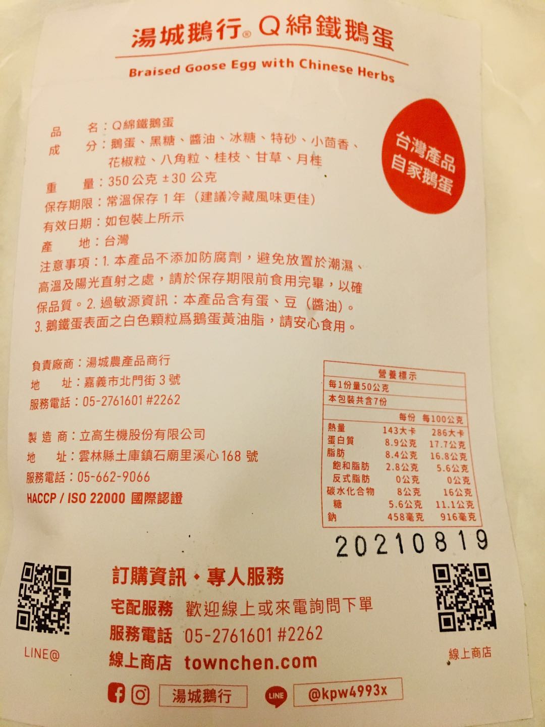| 食品業者登錄字號 | I-140924090-00002-6 |