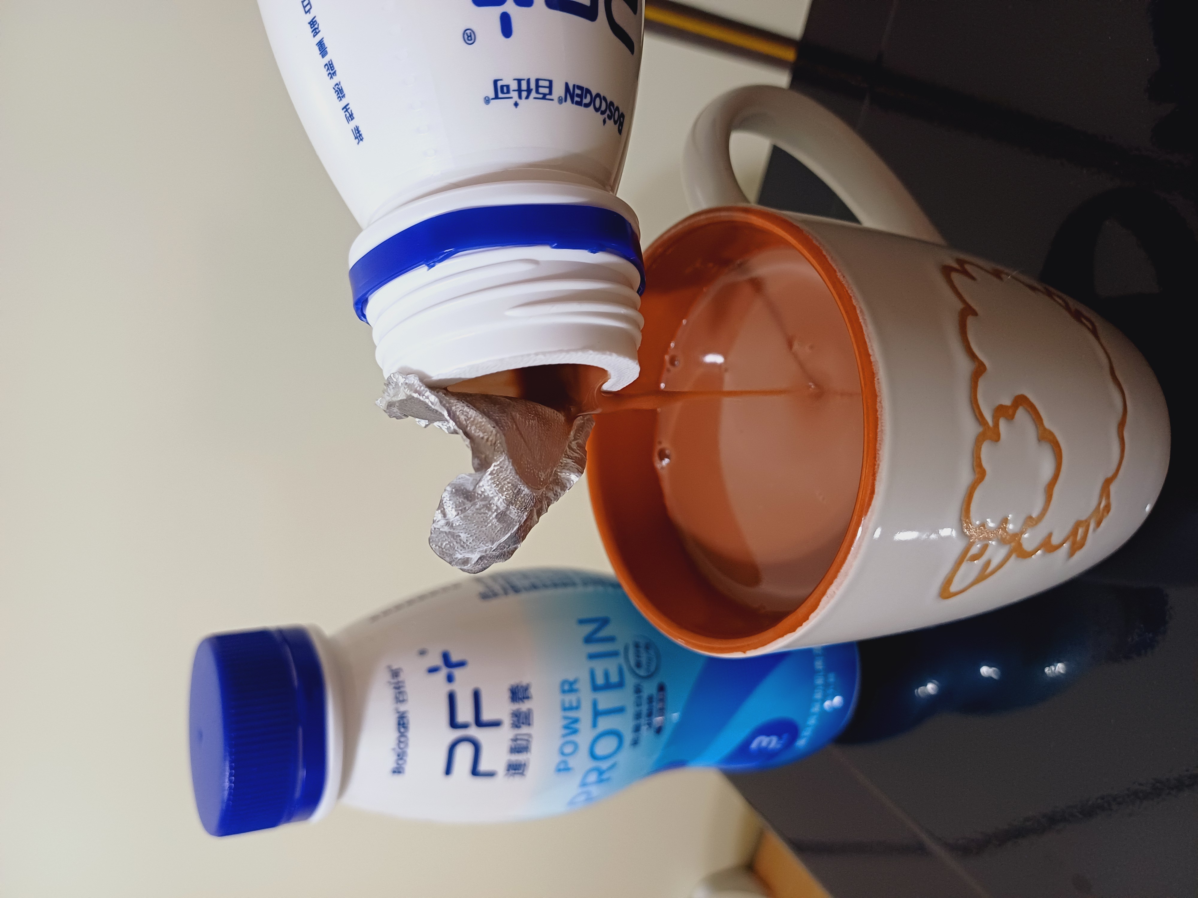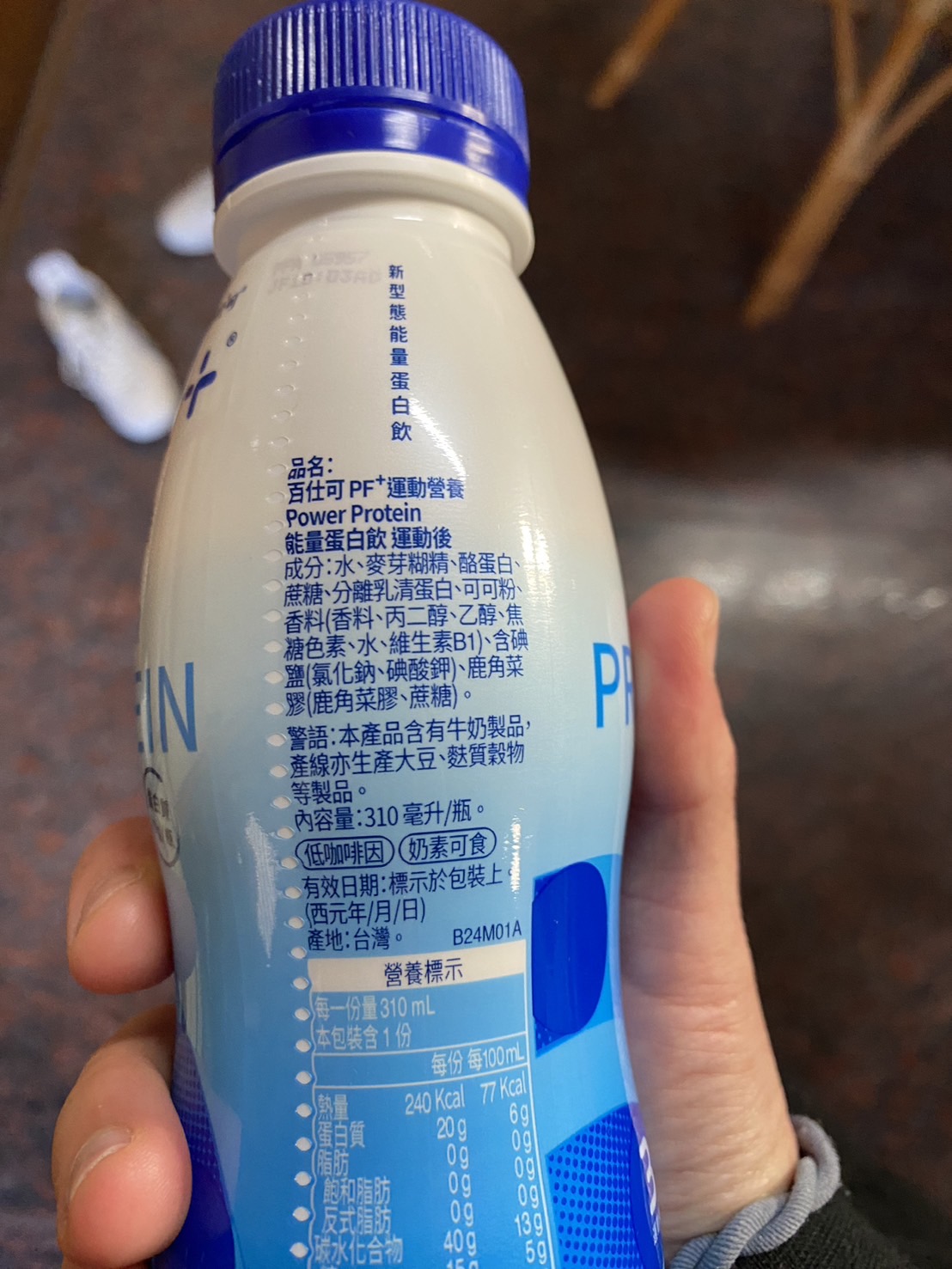 水、麥芽糊精、酪蛋白、蔗糖、分離乳清蛋白、可可粉、香料(香料、丙二醇、乙醇、焦糖色素、水、維生素B1)、含碘鹽(氯化鈉、碘酸鉀)、鹿角菜膠(鹿角菜膠、蔗糖)