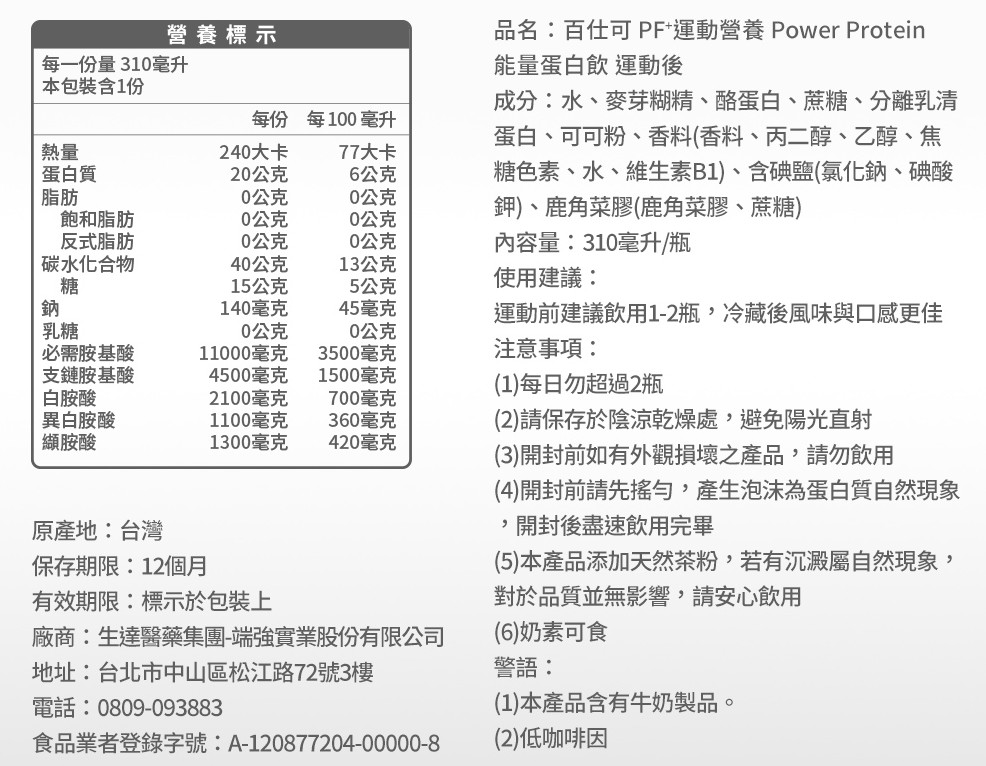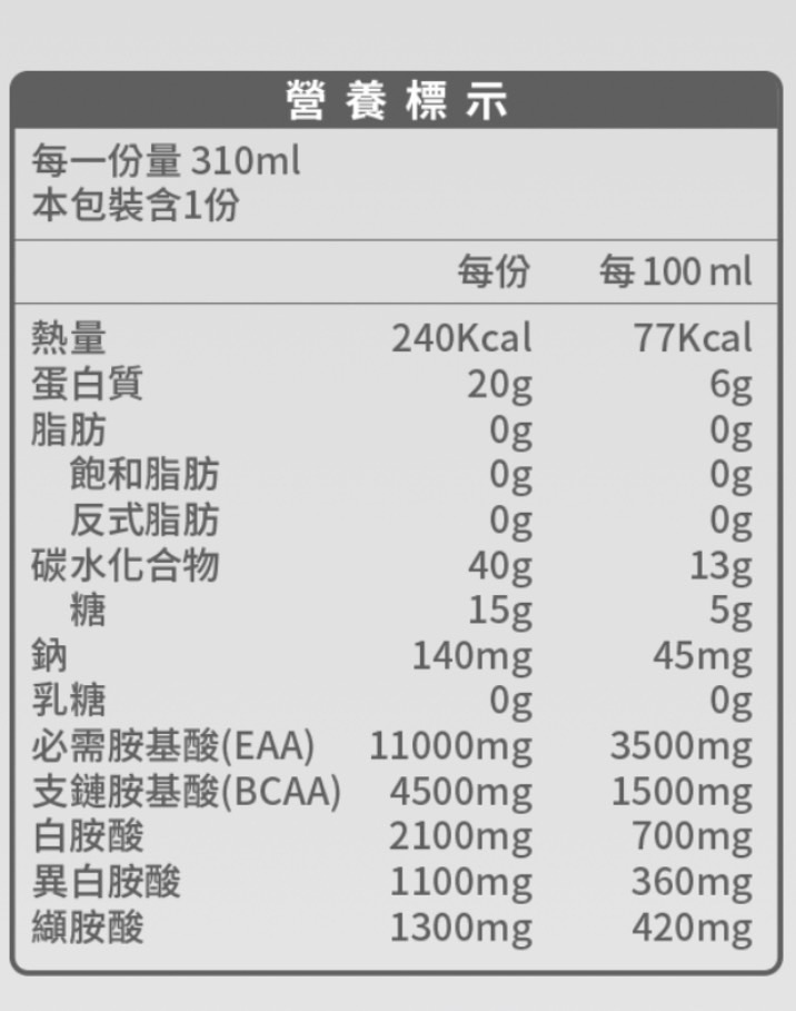 運動後建議飲用1-2瓶,冷藏後風味與口感更佳