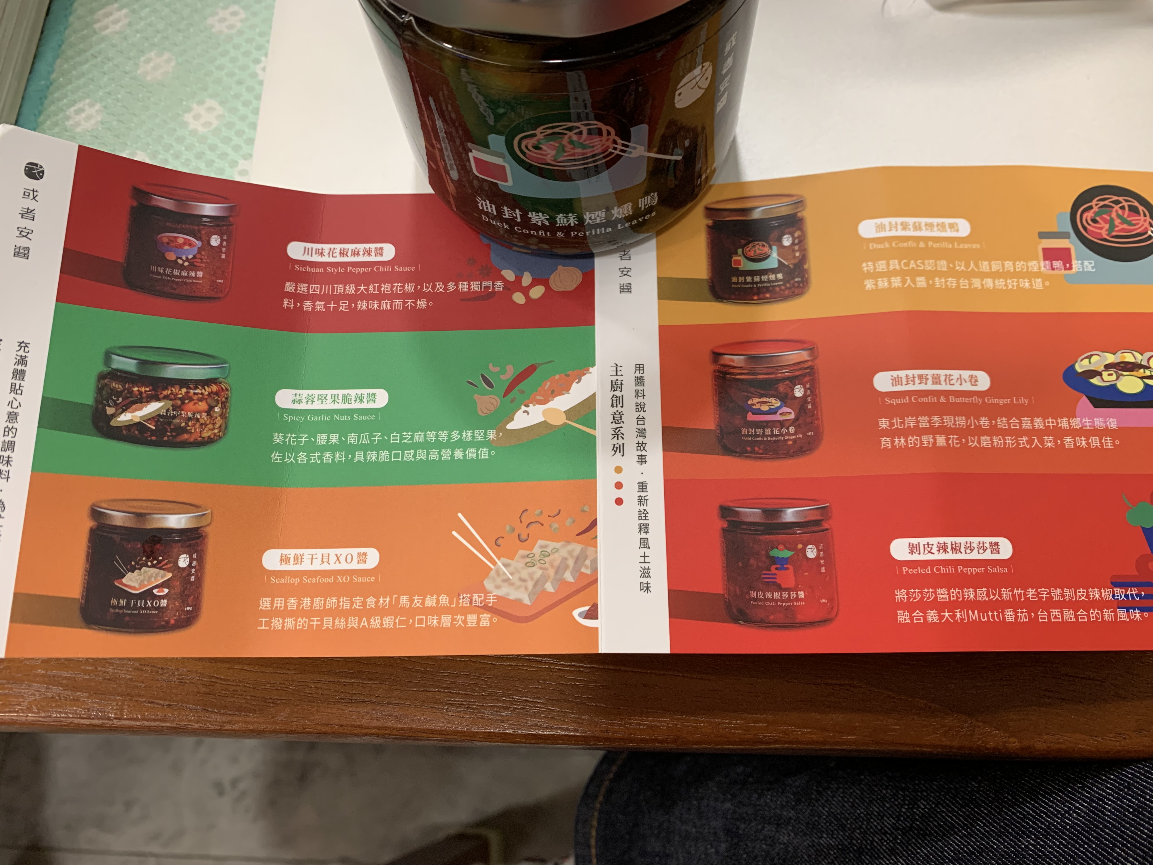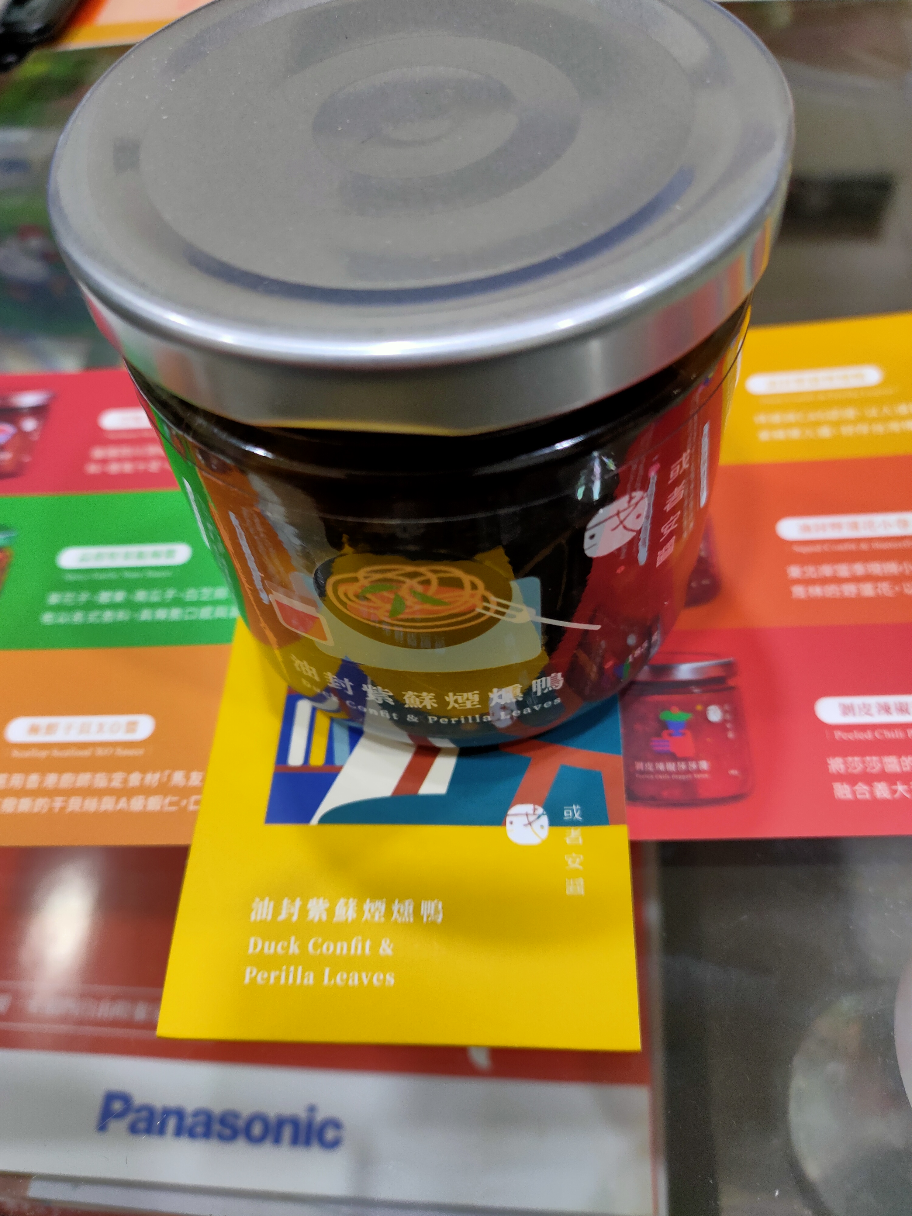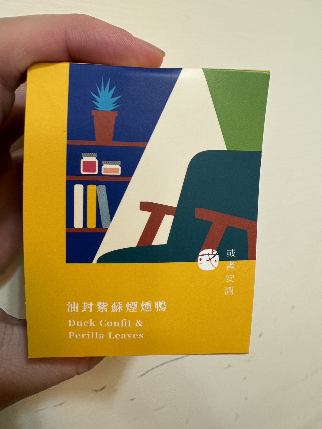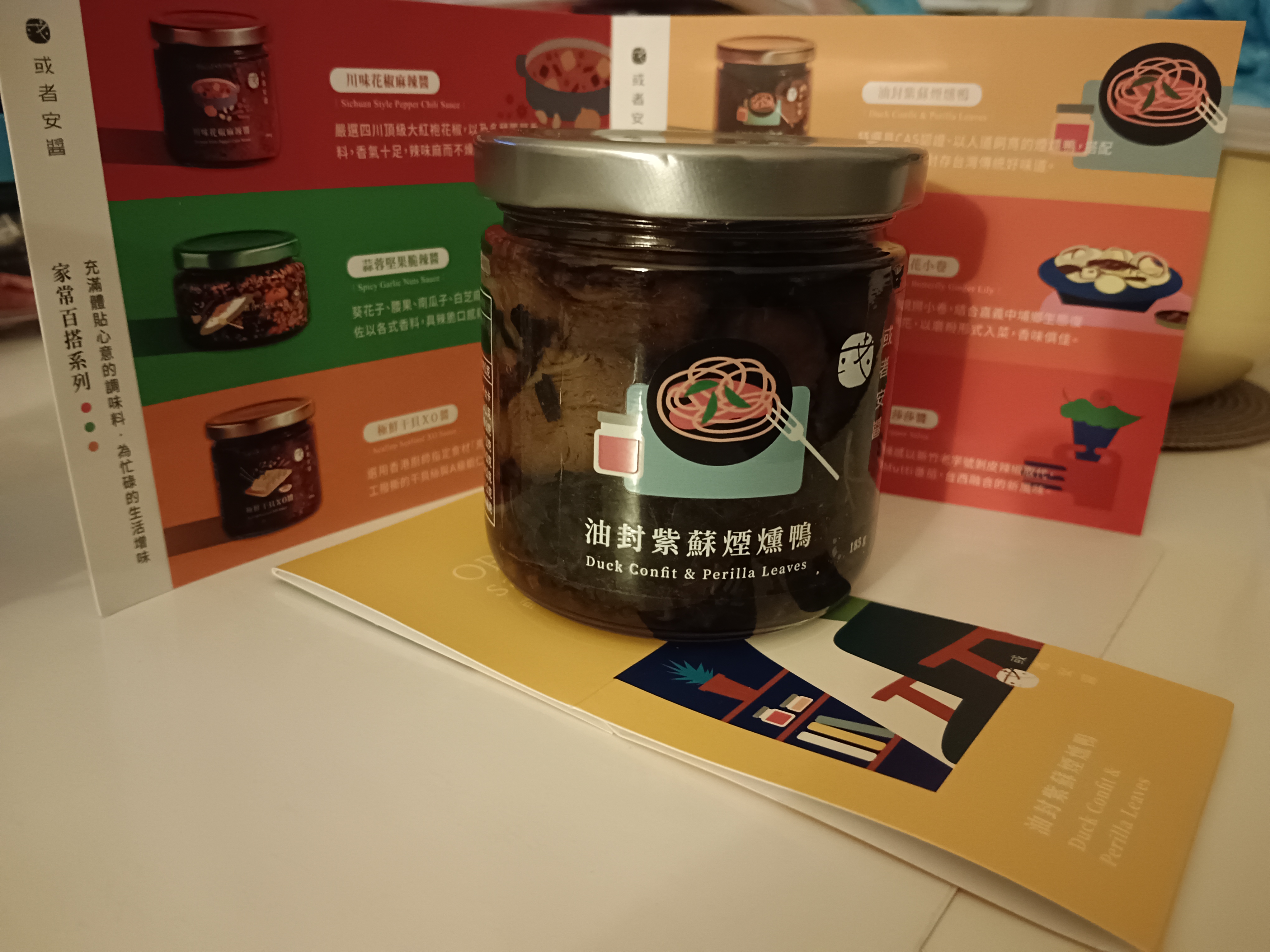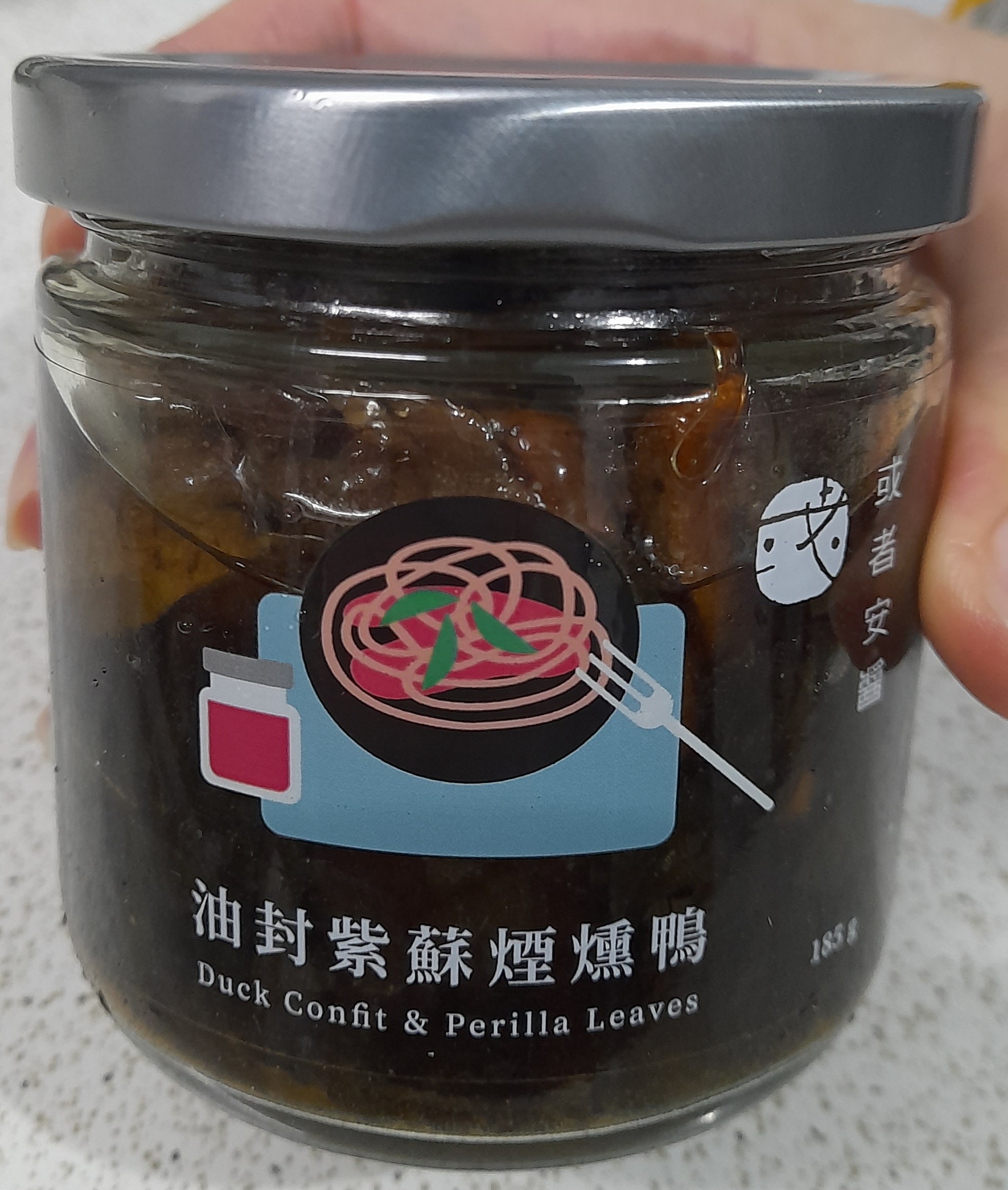 煙燻鴨腿[鴨肉、食鹽、糖、白胡椒、多磷酸鈉、L-麩酸鈉、異抗壞血酸鈉(抗氧化劑)、亞硝酸鈉]、芥花油、蒜頭、紫蘇、昆布調味粉[食鹽、調味劑(L-麩酸鈉、5’-次黃嘌呤核苷磷酸二鈉、5’-鳥嘌呤核苷磷酸二鈉、琥珀酸二鈉)、葡萄糖、昆布粉、昆布萃取物]、醬油粉[純釀造醬油、麥芽糊精、食鹽、砂糖、琥珀酸二鈉、I+G(5’-次黃嘌呤核苷磷酸二鈉、5’-鳥嘌呤核苷磷酸二鈉)]、白胡椒、海鹽、胡荽子、青花椒
