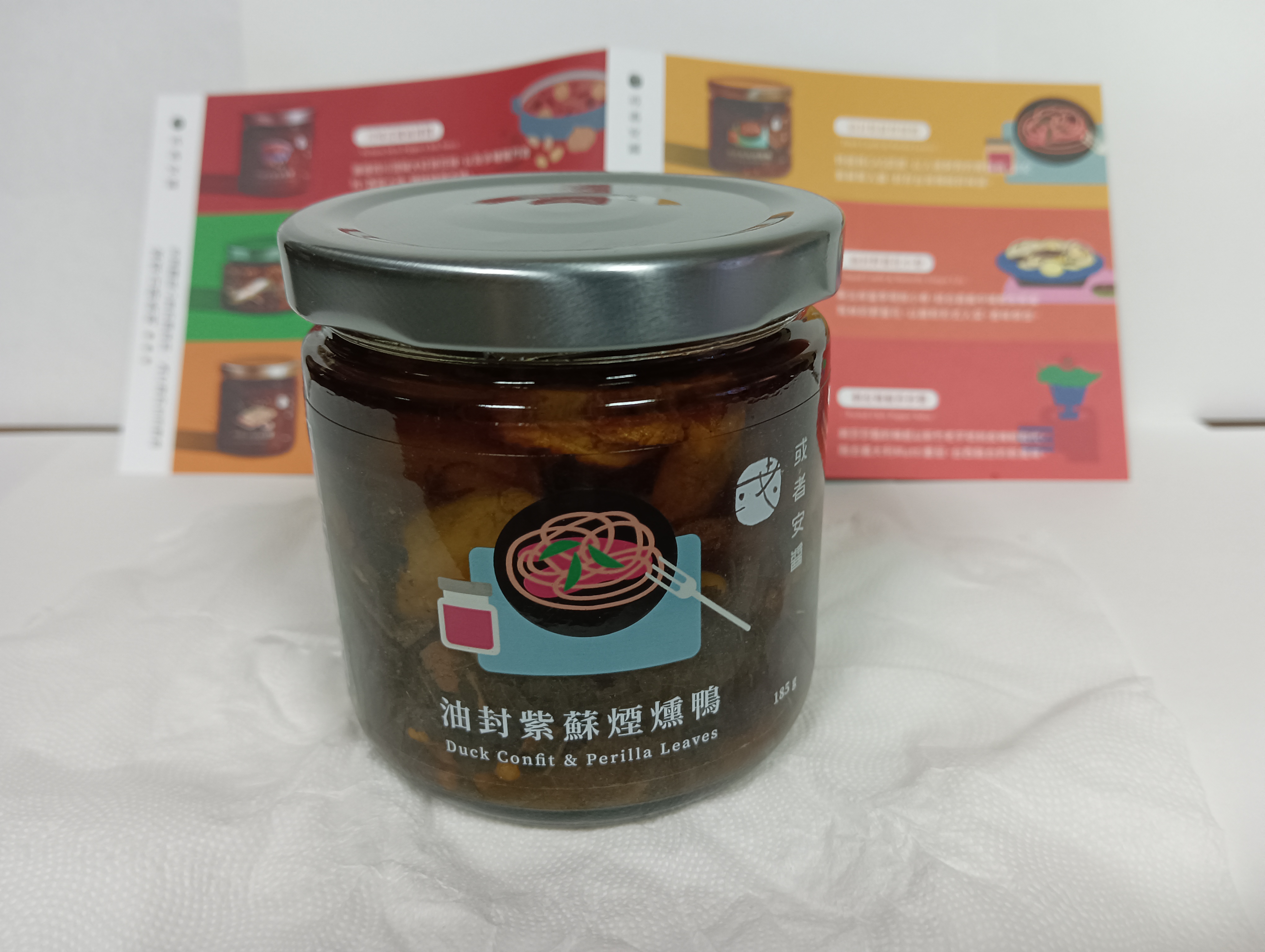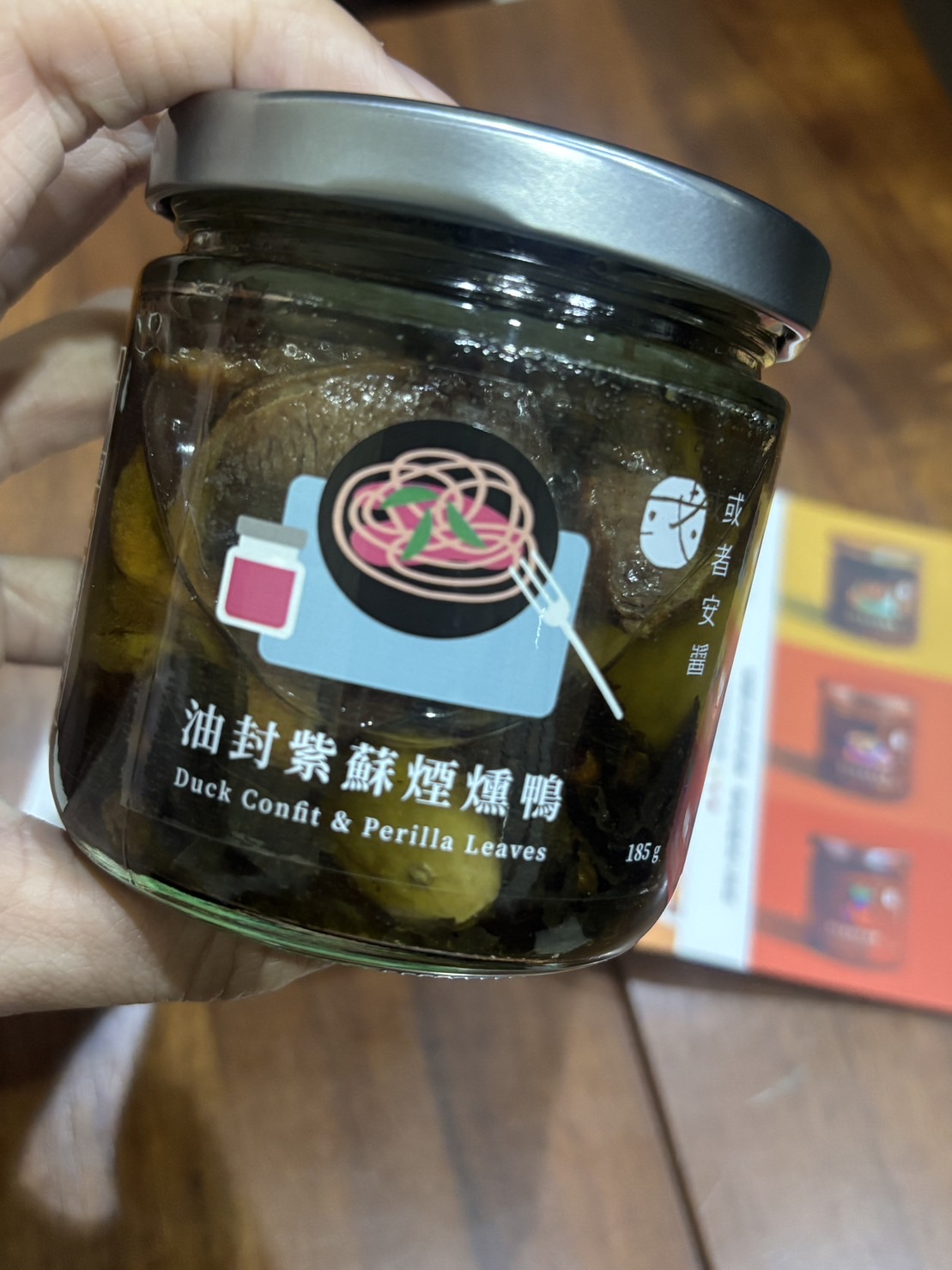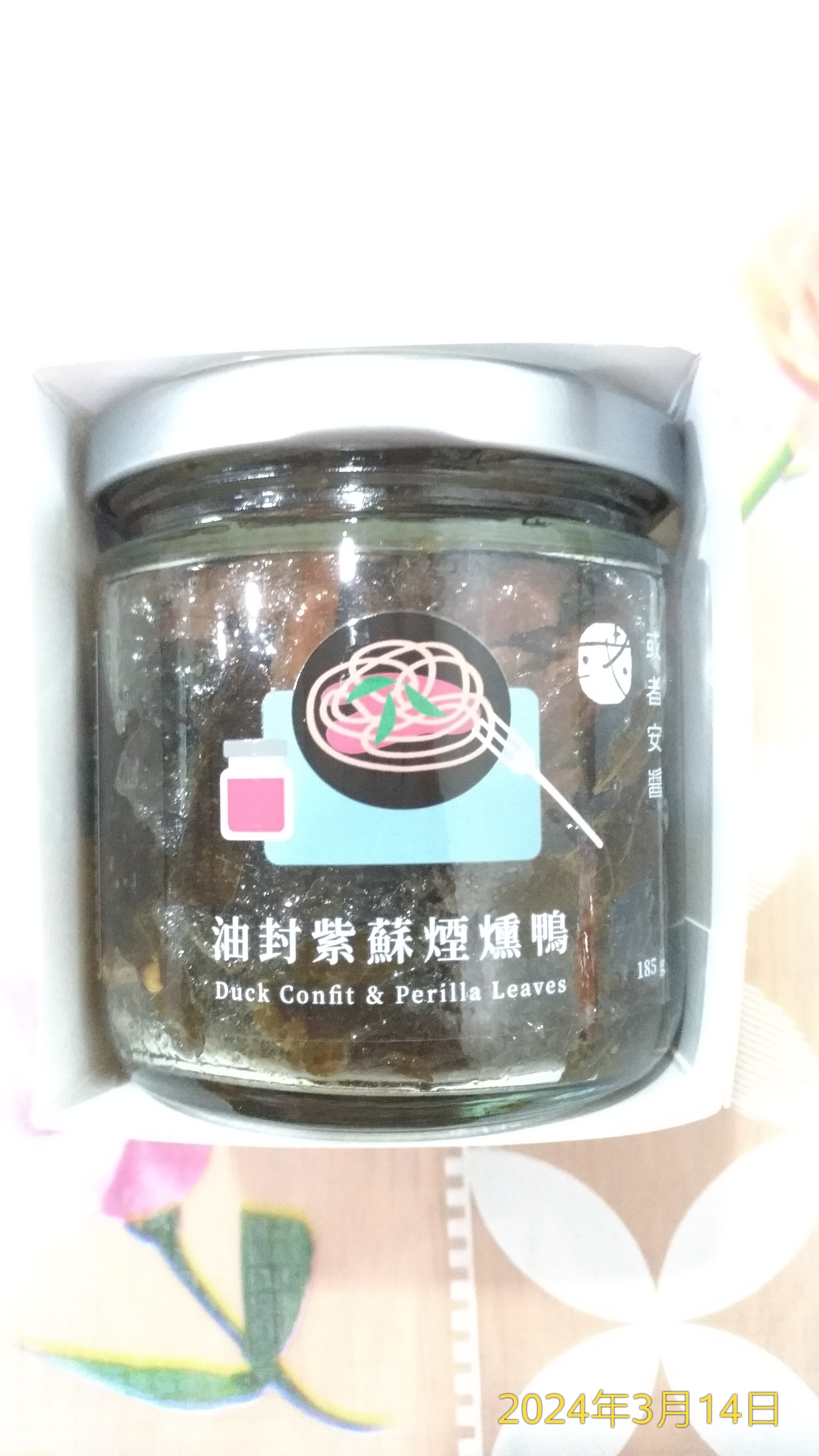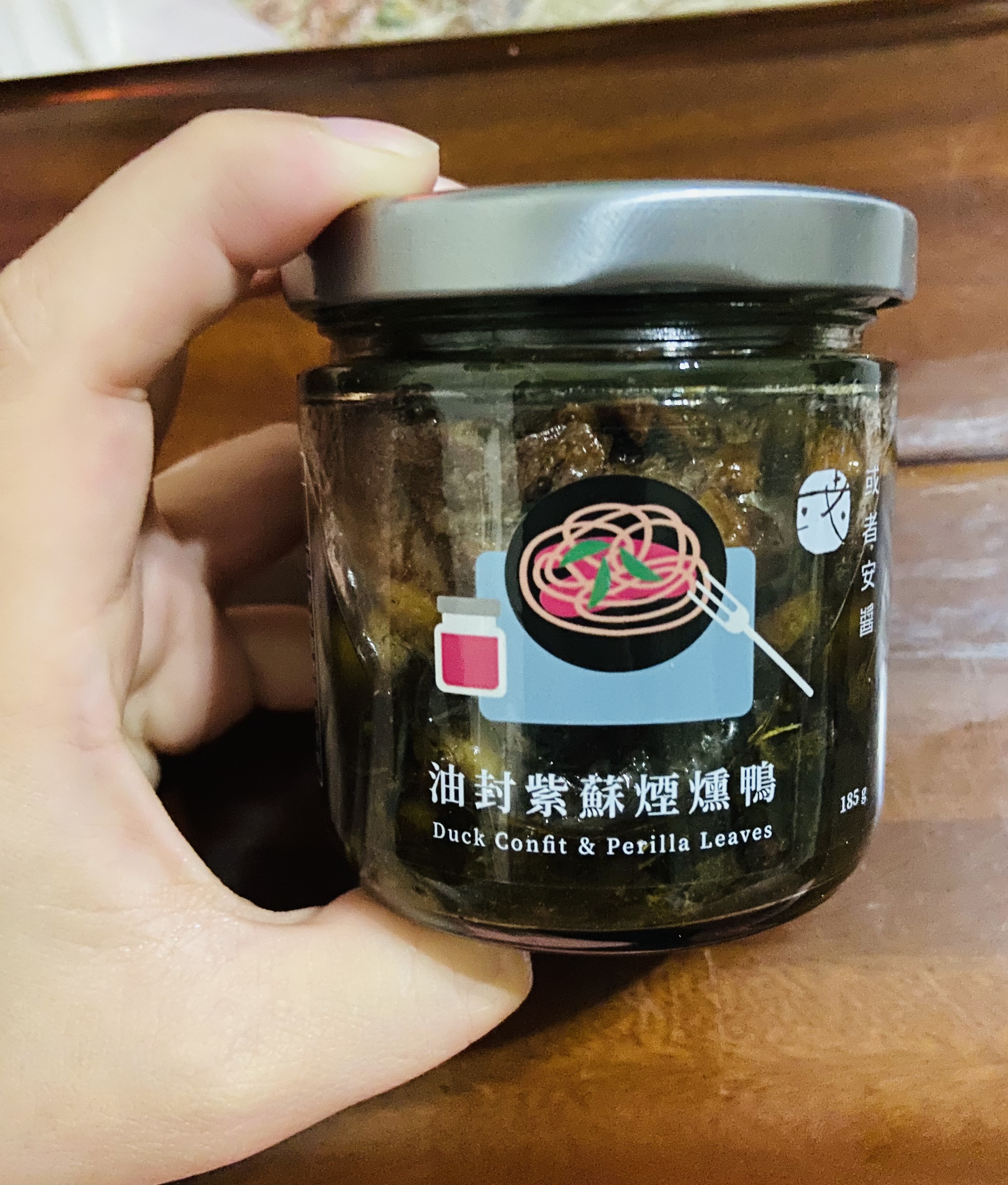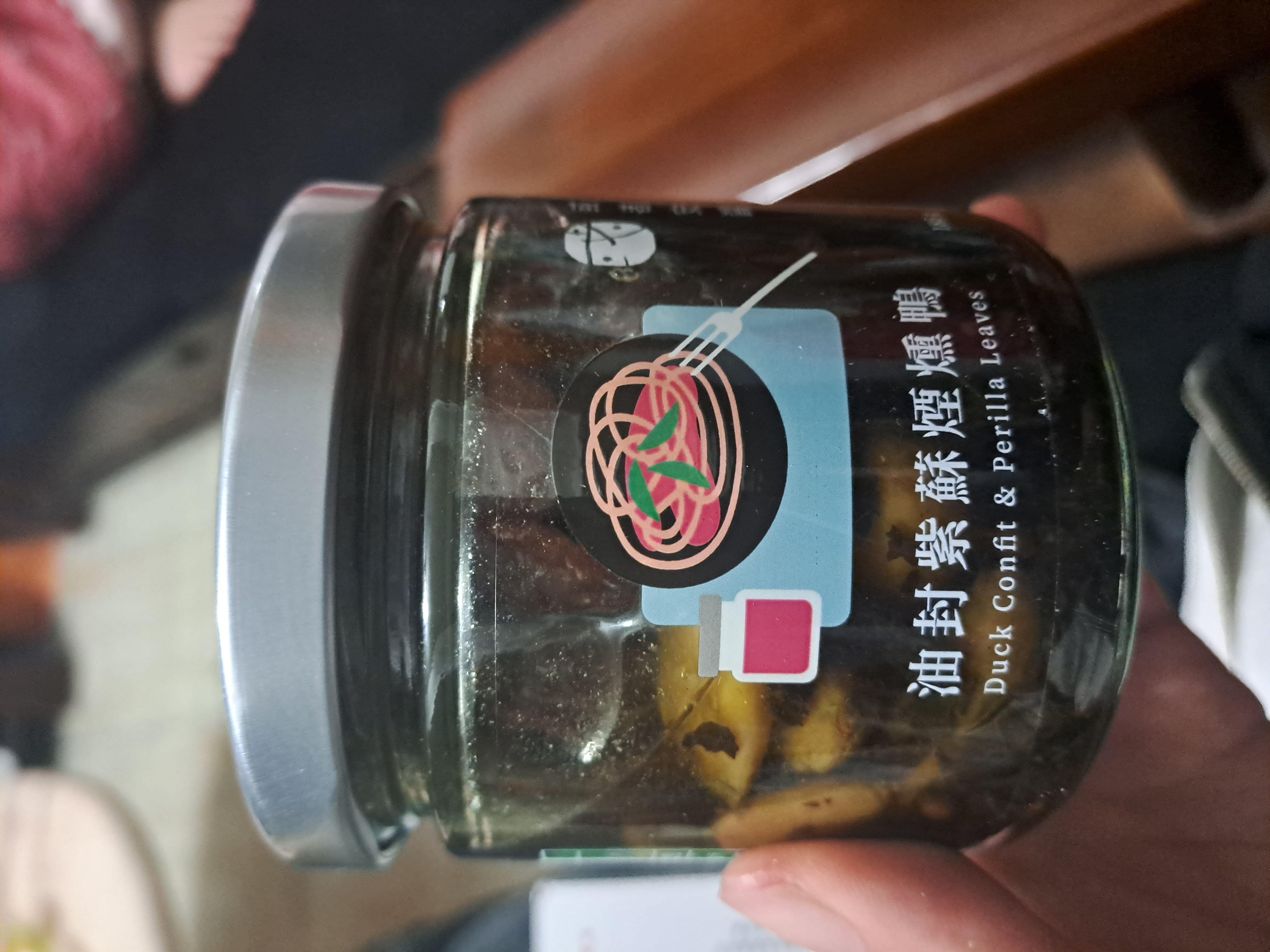 煙燻鴨腿[鴨肉、食鹽、糖、白胡椒、多磷酸鈉、L-麩酸鈉、異抗壞血酸鈉(抗氧化劑)、亞硝酸鈉]、芥花油、蒜頭、紫蘇、昆布調味粉[食鹽、調味劑(L-麩酸鈉、5’-次黃嘌呤核苷磷酸二鈉、5’-鳥嘌呤核苷磷酸二鈉、琥珀酸二鈉)、葡萄糖、昆布粉、昆布萃取物]、醬油粉[純釀造醬油、麥芽糊精、食鹽、砂糖、琥珀酸二鈉、I+G(5’-次黃嘌呤核苷磷酸二鈉、5’-鳥嘌呤核苷磷酸二鈉)]、白胡椒、海鹽、胡荽子、青花椒