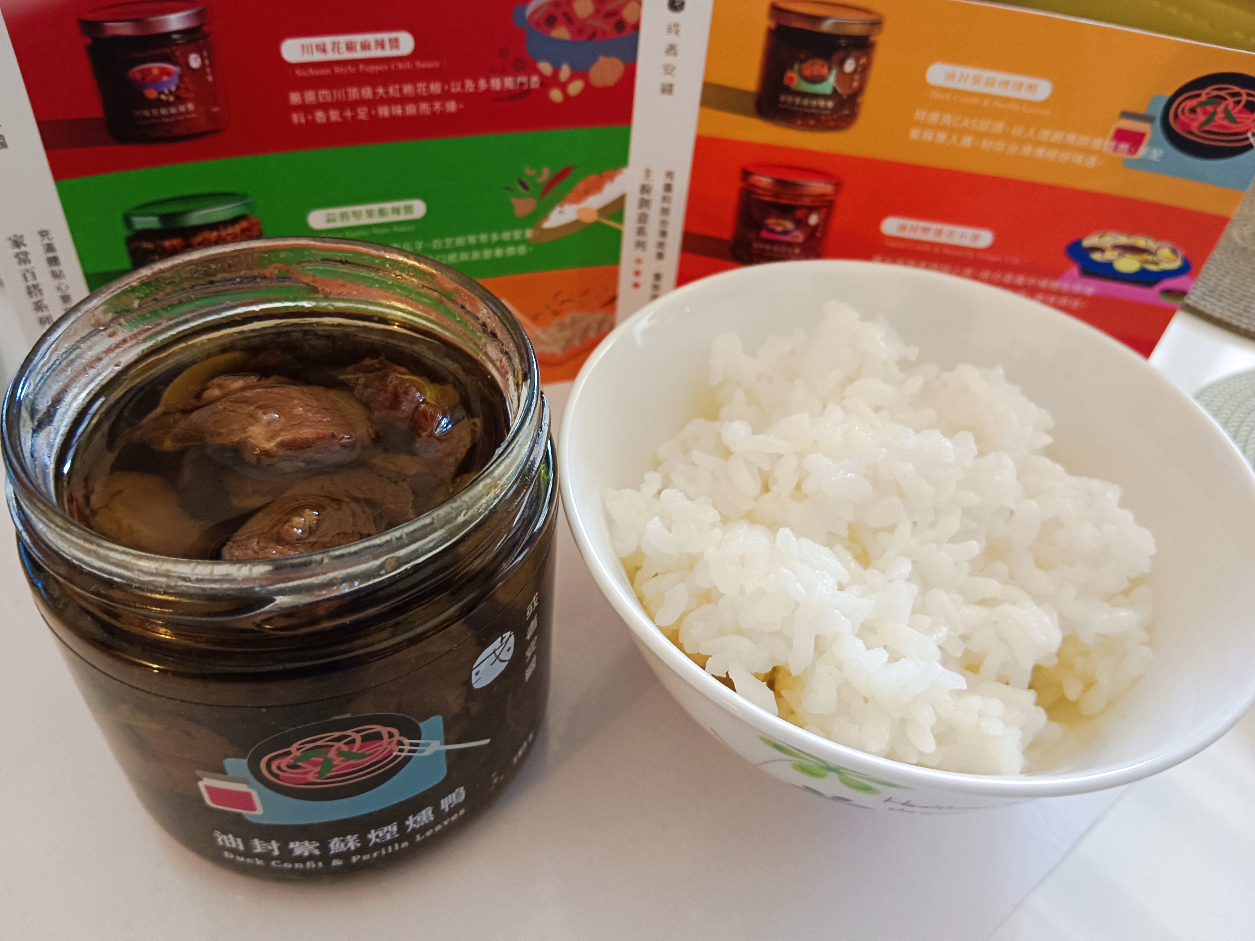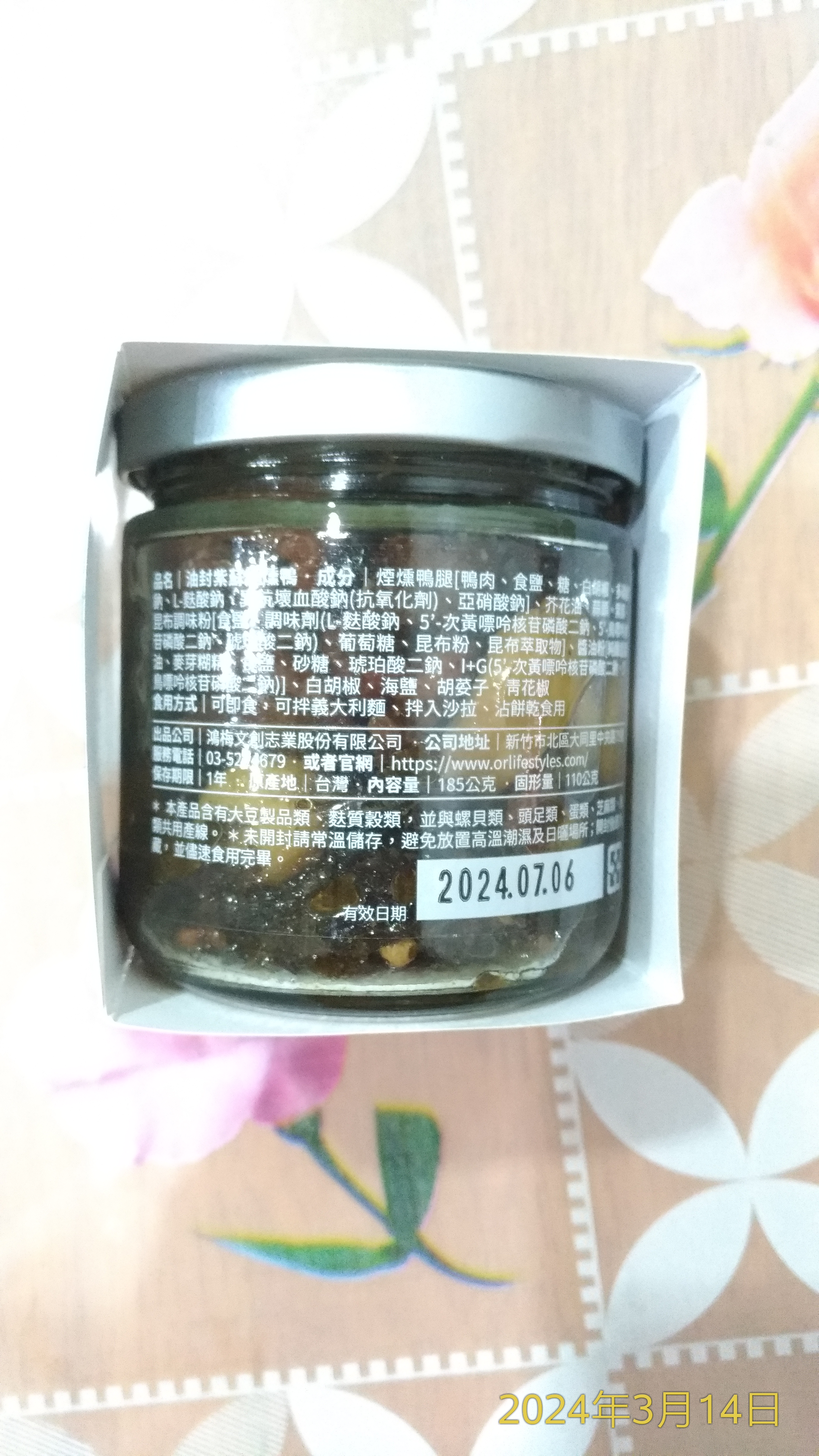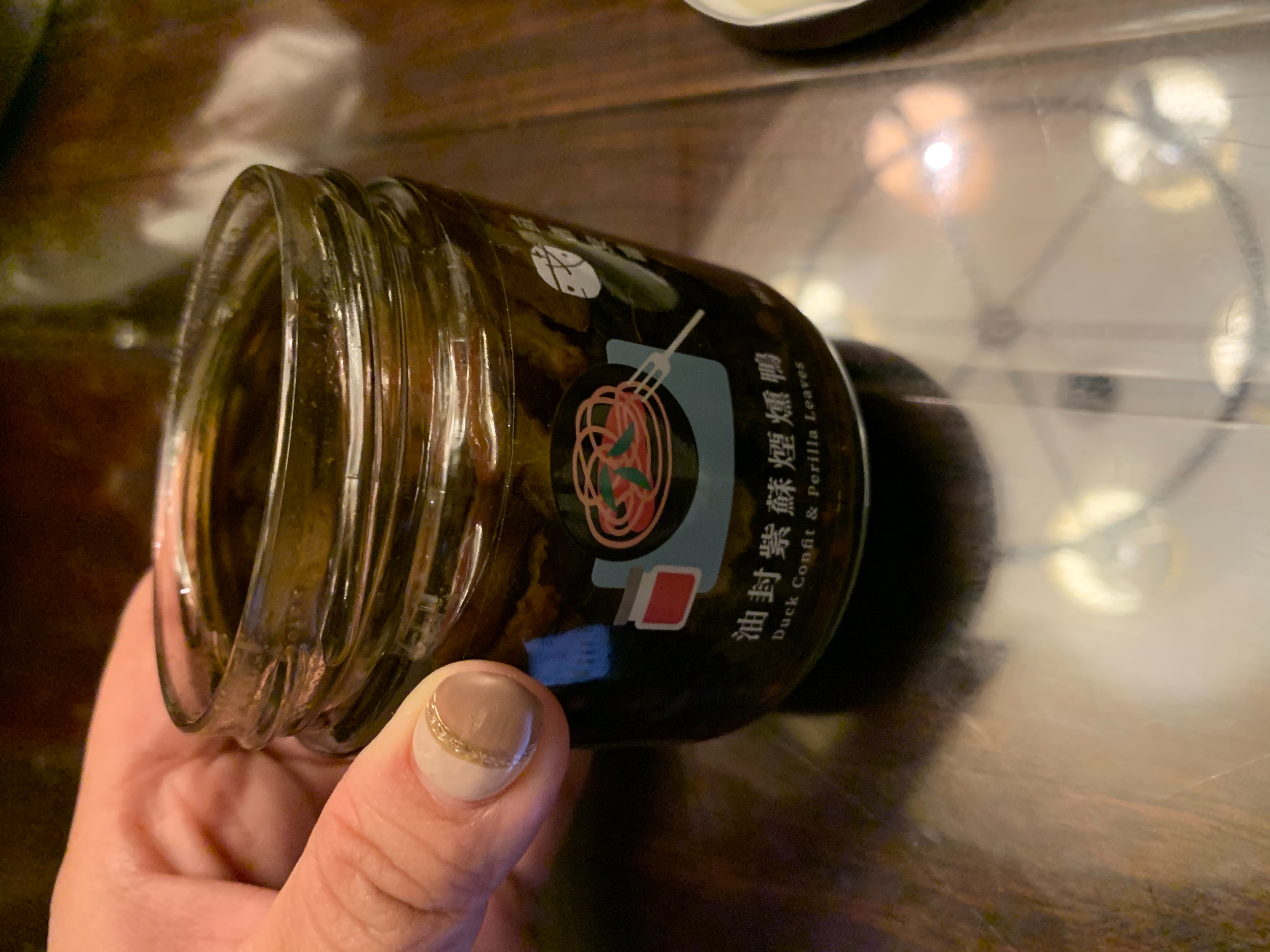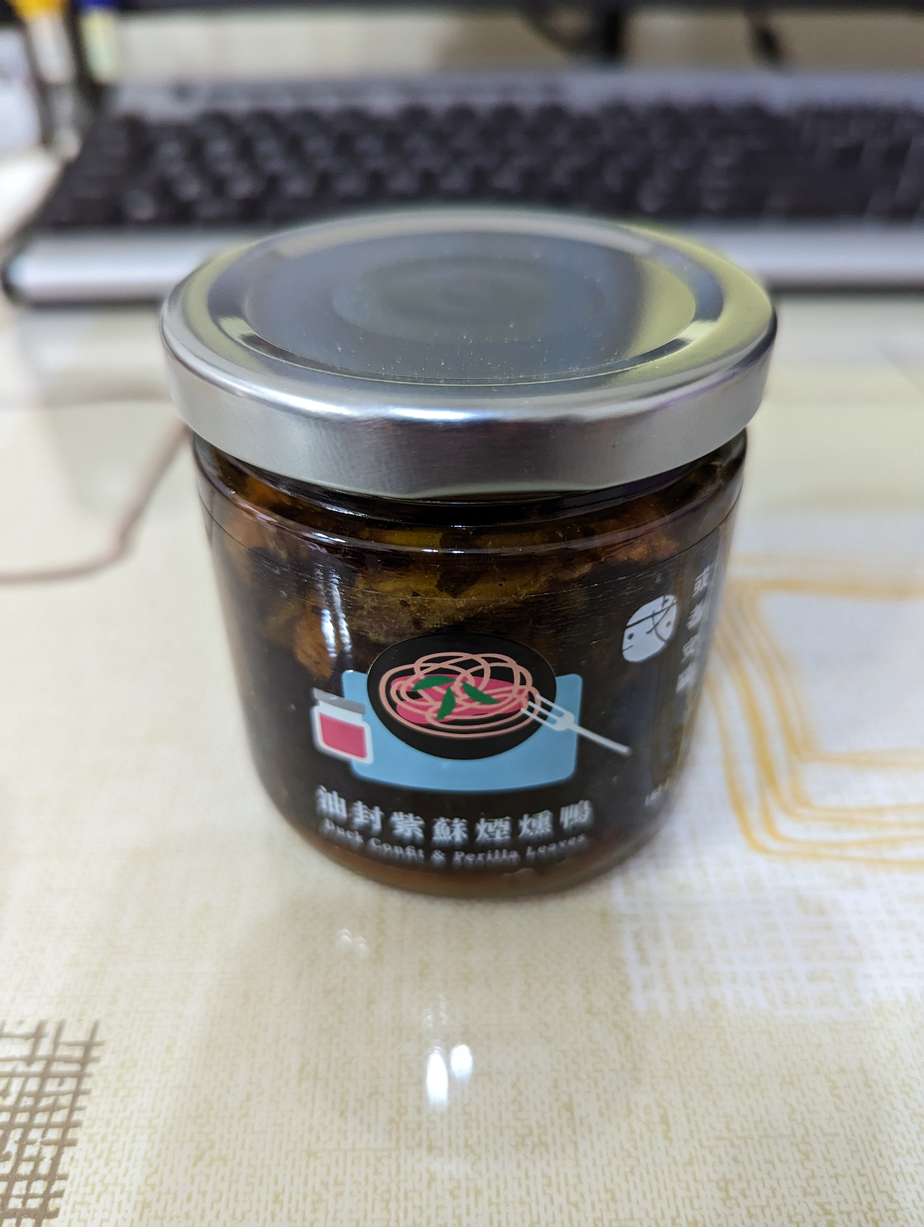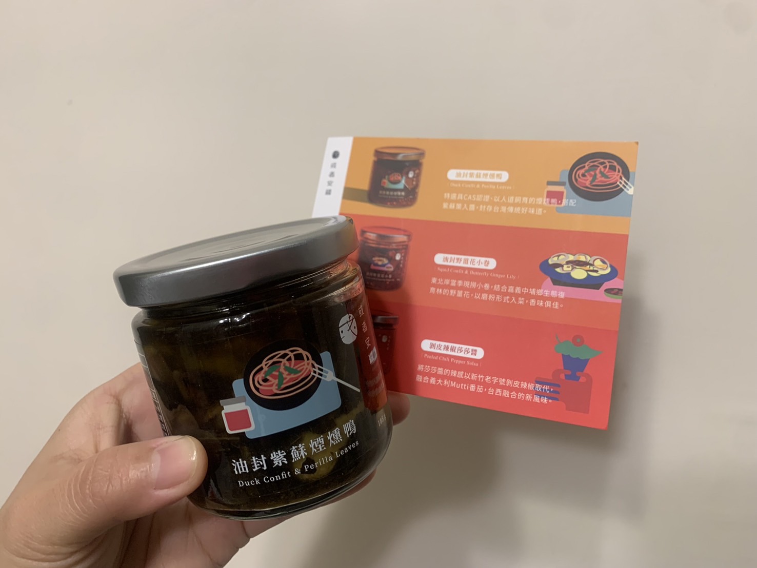 煙燻鴨腿[鴨肉、食鹽、糖、白胡椒、多磷酸鈉、L-麩酸鈉、異抗壞血酸鈉(抗氧化劑)、亞硝酸鈉]、芥花油、蒜頭、紫蘇、昆布調味粉[食鹽、調味劑(L-麩酸鈉、5’-次黃嘌呤核苷磷酸二鈉、5’-鳥嘌呤核苷磷酸二鈉、琥珀酸二鈉)、葡萄糖、昆布粉、昆布萃取物]、醬油粉[純釀造醬油、麥芽糊精、食鹽、砂糖、琥珀酸二鈉、I+G(5’-次黃嘌呤核苷磷酸二鈉、5’-鳥嘌呤核苷磷酸二鈉)]、白胡椒、海鹽、胡荽子、青花椒
