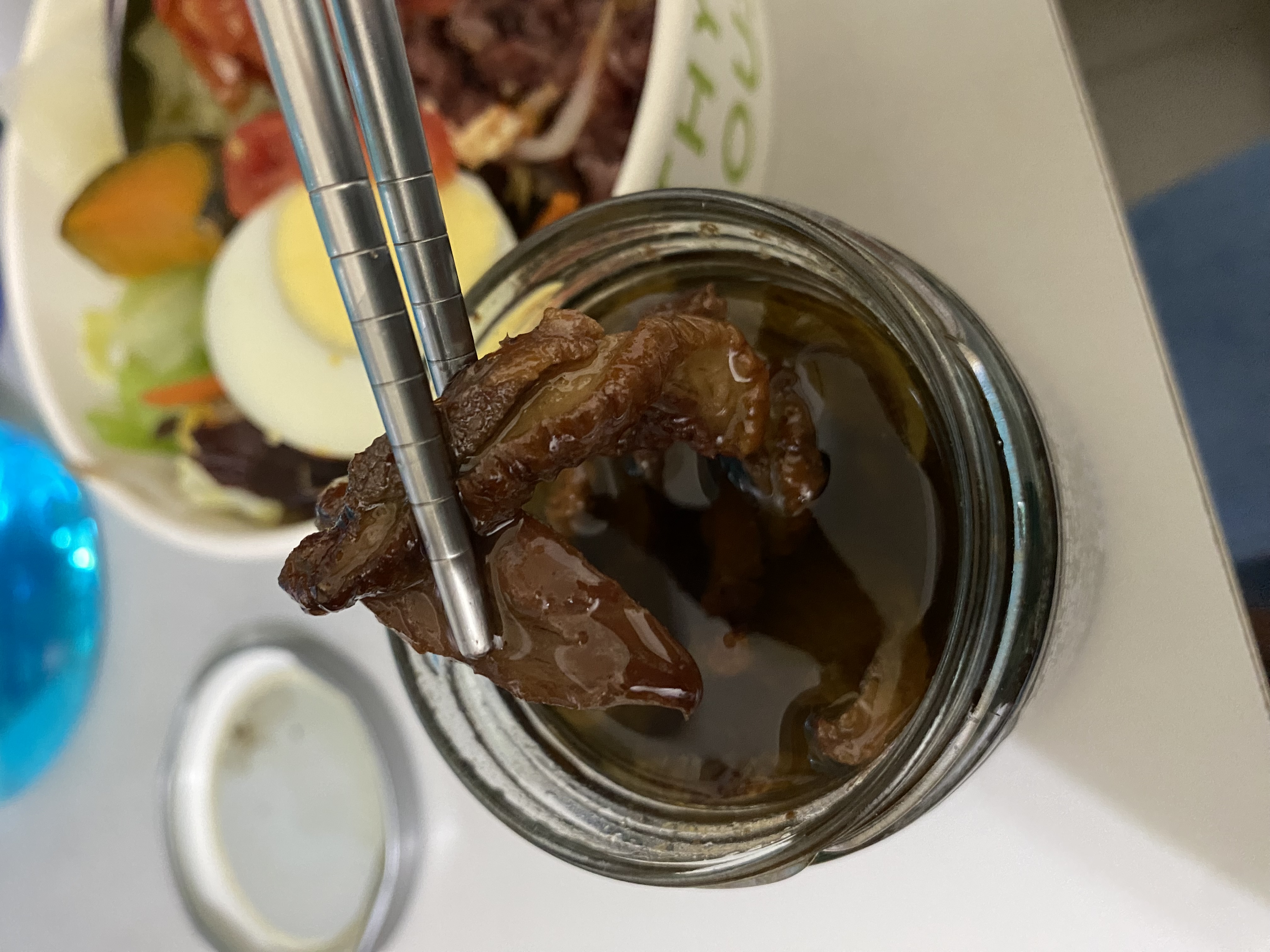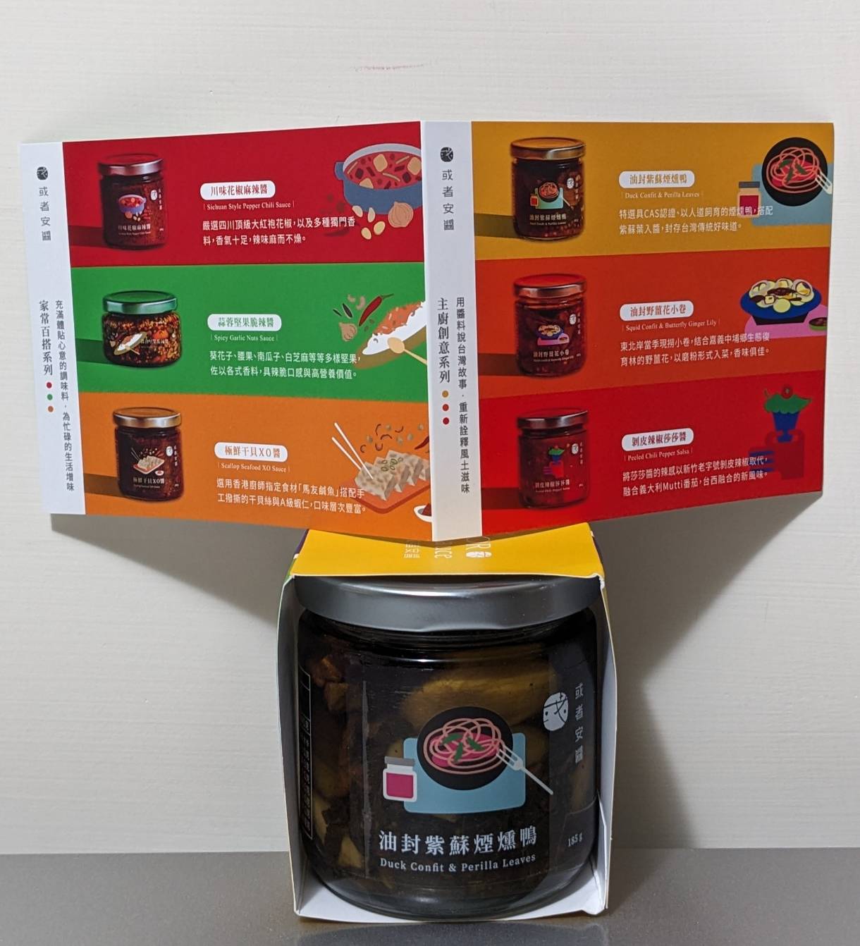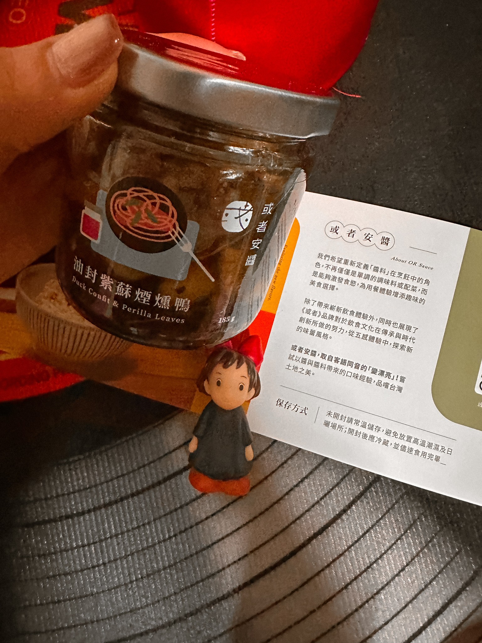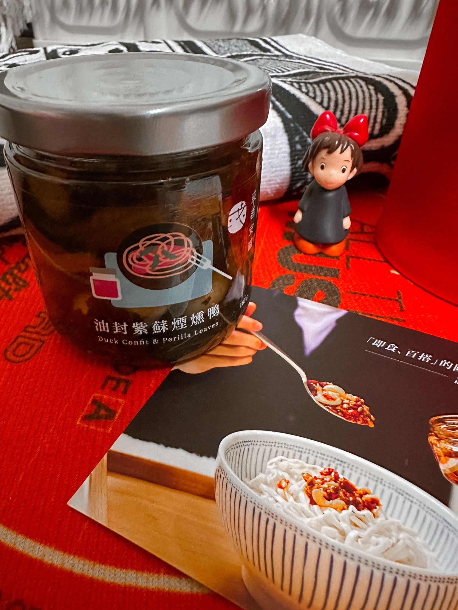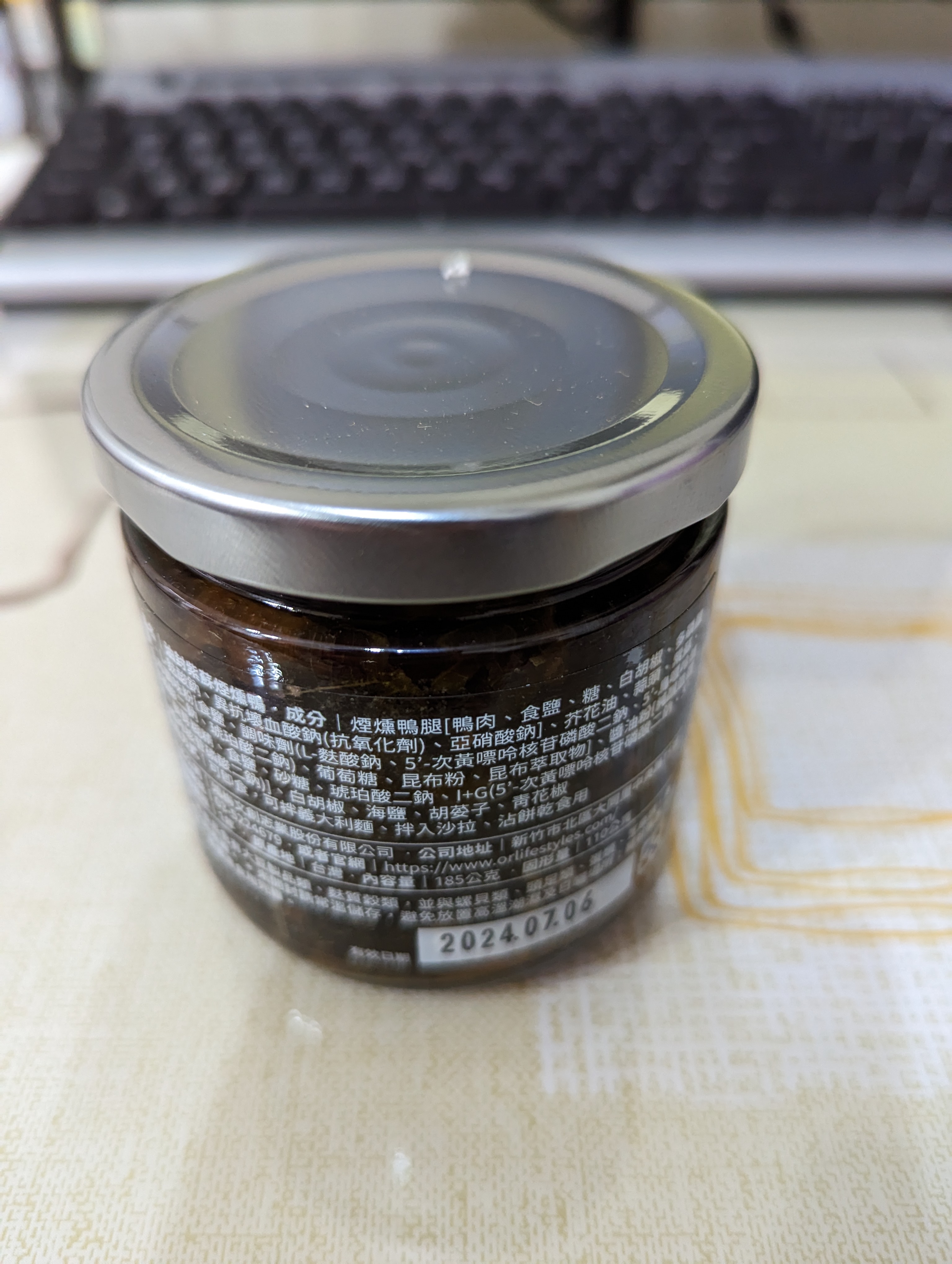 煙燻鴨腿[鴨肉、食鹽、糖、白胡椒、多磷酸鈉、L-麩酸鈉、異抗壞血酸鈉(抗氧化劑)、亞硝酸鈉]、芥花油、蒜頭、紫蘇、昆布調味粉[食鹽、調味劑(L-麩酸鈉、5’-次黃嘌呤核苷磷酸二鈉、5’-鳥嘌呤核苷磷酸二鈉、琥珀酸二鈉)、葡萄糖、昆布粉、昆布萃取物]、醬油粉[純釀造醬油、麥芽糊精、食鹽、砂糖、琥珀酸二鈉、I+G(5’-次黃嘌呤核苷磷酸二鈉、5’-鳥嘌呤核苷磷酸二鈉)]、白胡椒、海鹽、胡荽子、青花椒