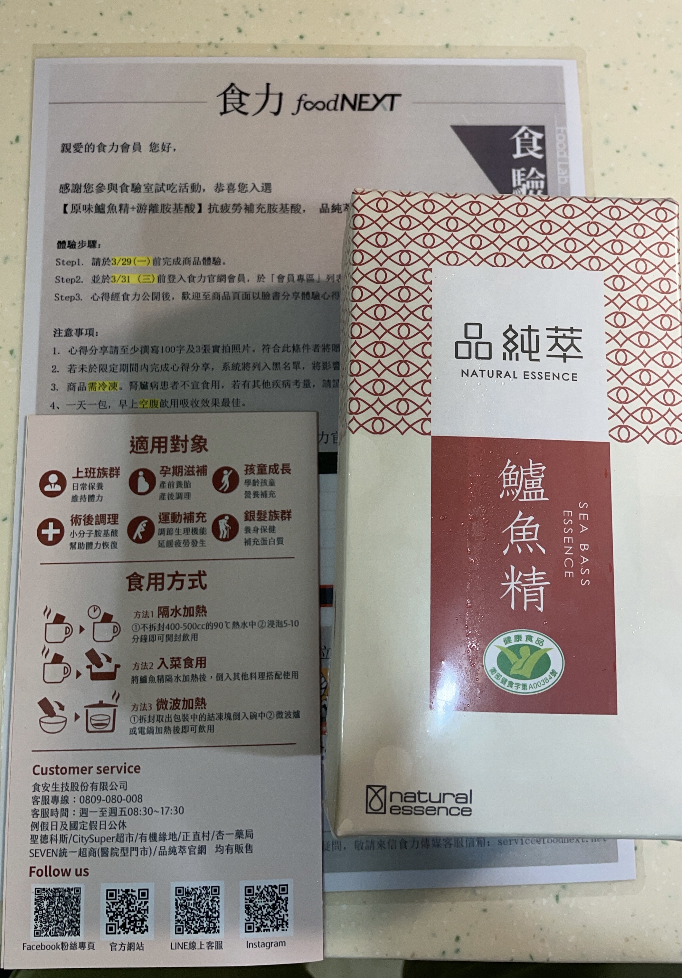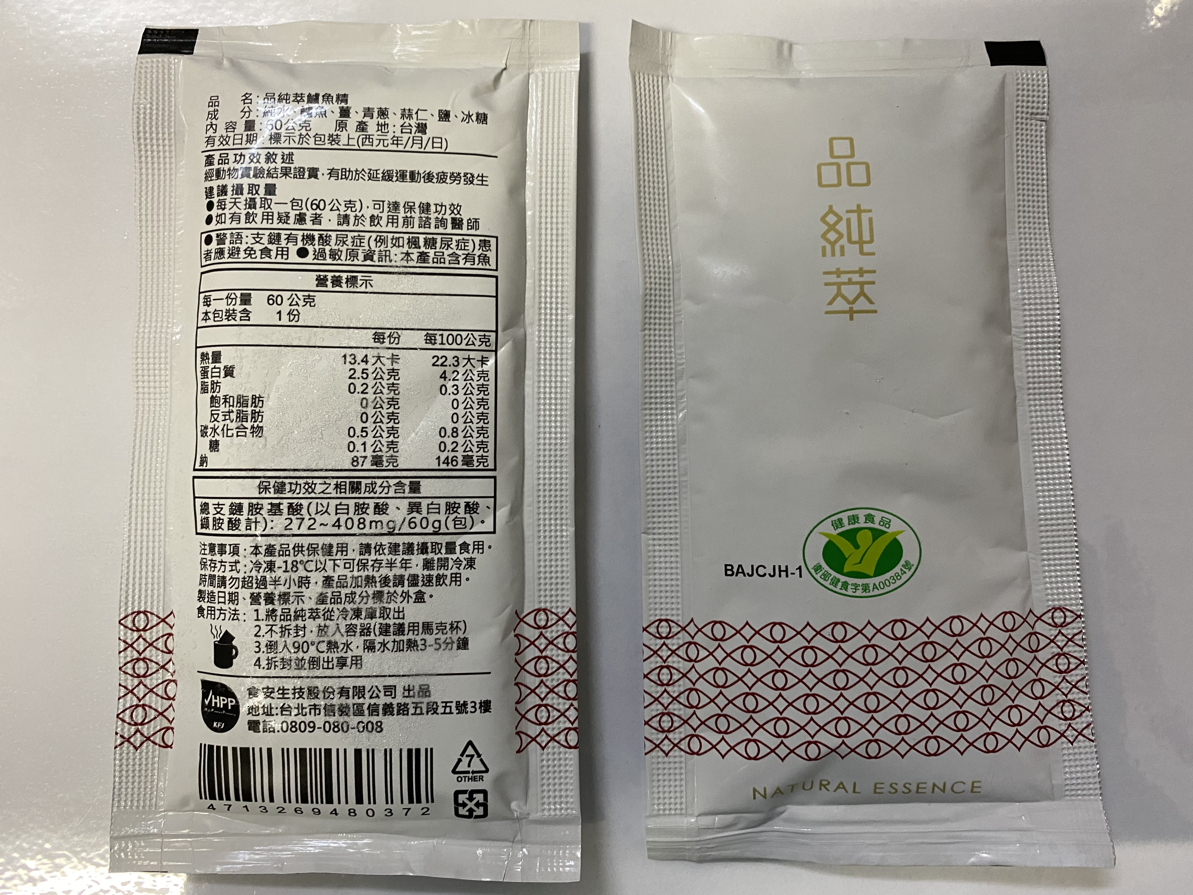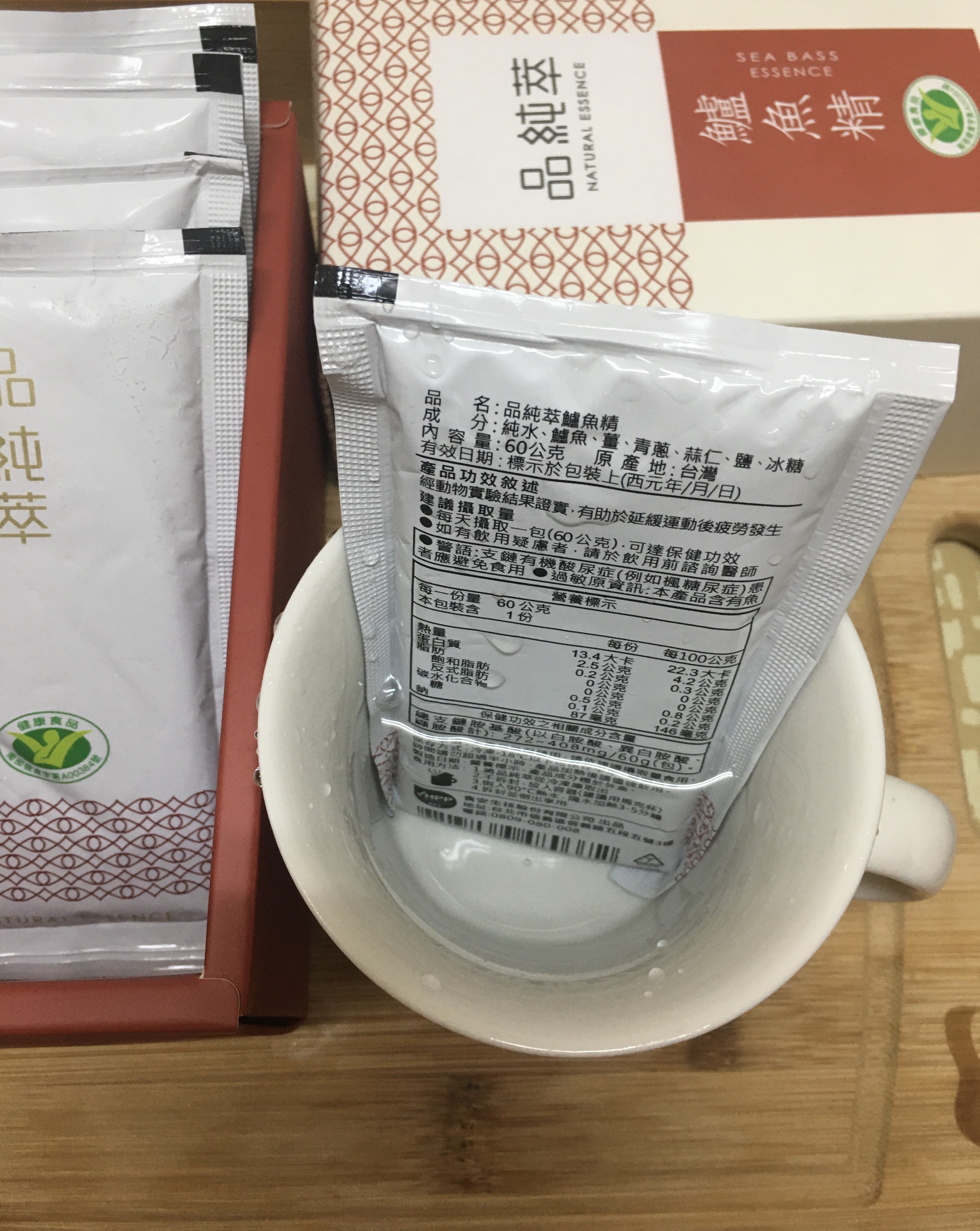 回列表 品純萃 鱸魚精 為您補充最完善的營養 市價1,100元 所需等級 一般會員以上 所需學分 30 體驗份數 50 關注人數 1752 申請人數 283 申請截止 品牌業者:食安生技股份有限公司 廠商名稱 食安生技股份有限公司 廠商地址 臺北市信義區信義路5段5號3樓 產地 台灣 產品規格 60g/包,共5包 食品業者登錄字號 F-153711900-00000-9 投保產品責任險字號 旺旺友聯產物產險字號:1200字第09PL0N000265號 心得分享 商品介紹 商品成分 使用方法 注意事項 體驗名單 9.0 品純萃 鱸魚精 包裝美學 8.9 鮮美程度 9.0 濃郁程度 9.1 品質安心 9.2 建議推薦 9.0 心得分享 50則 丁瑛子 鑽石達人 34歲 彰化縣 2021/03/19 對品純萃 鱸魚精留下評價 10 人家都說鱸魚是好魚 對於開刀的人來說更是最佳補品 剛好最近家中長輩開刀 給老人家補充營養回復活力真的是最好的營養品 小包裝方便保存 攜帶也方便 加熱也很簡單 鱸魚精還有小分子胜肽及胺基酸 最適合人體吸收 味道很濃郁 沒有腥味 微微薑味及鹹香 長輩很喜歡 謝謝食力!謝謝品純萃! 品品 金食達人 34歲 新北市 2021/03/20 對品純萃 鱸魚精留下評價 10 從包裝就可以看出一家廠商對於該產品的用心,採冷凍宅配維持品質。這次我採用微波加熱,速度快也最能直接品嚐到原汁原味,結果出乎意料的美味,鱸魚湯再搭配薑蔥蒜等調味,如同濃縮魚湯一樣很鮮美,先前喝過其他家的產品皆很清淡。而且品純粹鱸魚精具健康食品標章,支鏈氨基酸含量高,具抗疲勞功能,現代人都很適合,非常值得購買~ tuogo 金食達人 46歲 臺北市 2021/03/28 對品純萃 鱸魚精留下評價 10 鱸魚自古以來就是調理身體的最佳食品,也是手術或病後復健保養補品,這次獲選食驗室體驗時,剛好正值媽媽住院接受手術,因此我將產品全數讓媽媽食用補身。第一次接觸這樣的產品,原本會擔心會有魚腥味、怕媽媽會不敢喝,沒想到「品純萃鱸魚精」除了幫我們打造好了方便的飲食方式,其如果凍般的膠質,於加熱呈現新鮮的魚湯味,媽媽除了反應相當好喝,從手術後出院之後,就天天喝一包,每天皆有感於體力的恢復狀態明顯增加,媽媽也特別稱讚覺得喝完後超有感,體力恢復超快,是值得信賴的營養補給品,而且有小綠人「抗疲勞」的健康食品認証,除了覺得產品把關用心之外,對於品質也覺得非常安心,未來也會考慮持續選購、幫家人補身體! Kai 鑽石達人 34歲 臺中市 2021/03/30 對品純萃 鱸魚精留下評價 10 「品純萃」鱸魚精非常厲害,取得健康食品驗證,說明具有實質保健功效,利用超高壓低溫萃取技術將整隻鱸魚液化,分解為小分子的胜肽、游離支鏈胺基酸、總游離胺基酸等有利於吸收的蛋白質營養成份,可迅速補充體力。產品色澤呈溫潤琥珀色,看不到絲毫的油分,味道鮮美,藉由蔥、蒜、鹽、冰糖,達到畫龍點睛的效果,去除了鱸魚的腥味,引出鱸魚精的甘甜滑口,溫熱喝,暖胃暖心又營養。小包裝方便加熱,一個馬克杯與熱水即可快速享受溫暖營養的好滋味,適合上班族、銀髮族、開刀病患、孕婦及產婦調理身體、營養補充。 hubby 金食達人 43歲 嘉義市 2021/03/31 對品純萃 鱸魚精留下評價 10 心得分享-【原味鱸魚精+游離胺基酸】抗疲勞補充胺基酸,品純萃 鱸魚精很高興這次能夠獲選「品純萃 鱸魚精」的商品體驗 😊本來是想要申請給弟弟試喝,但最近媽媽我很容易感到疲倦,所以早上起床後,和弟弟一起維持空腹狀態,享用這美味的鱸魚精 🐟我本身很怕腥味😨但這個「品純萃 鱸魚精」沒什麼腥味,反而喝起來很像在喝魚湯,很鮮甜😋它的成分很單純,僅有:純水、鱸魚、薑、青蔥、蒜仁、鹽、冰糖。喝起來有蔥蒜的香甜味,連弟弟也一直搶著要喝一點都不會害怕,還很開心的豎起大拇指呢!😁連我自己都感覺喝完後,心情變很好也很有精神喔!😊『品純萃-鱸魚精』是運用獨家「HPP液化全食技術」將蛋白質切割為胜鈦及胺基酸小分子,讓身體好吸收,可迅速補充體力。這是滴或熬所做不到的喔!!👍👍 楊祖安 鑽石達人 44歲 臺北市 2021/03/25 對品純萃 鱸魚精留下評價 10 謝謝品純萃更謝謝食力的活動,讓我體驗鱸魚精這麼棒的優質蛋白我是以微波爐加熱的方式來喝,一撕開包裝就聞到濃濃的鮮魚味,加熱後的味道更突出加成,魚湯顏色清澈無比,入口後非常的滑順且品嚐出魚的鮮甜味和薑淡淡的香味,完全沒有任何魚腥味,非常得好喝,讓人回味無窮,湯內充滿了許多膠質,喝完嘴裡帶有微黏的感覺,真得是很棒的健康食品 黃育琳 鑽石達人 31歲 臺中市 2021/03/20 對品純萃 鱸魚精留下評價 9 加熱完後倒入碗中,一股濃郁的海鮮清香隨即撲鼻而來,而且完全沒有腥味,讓我不禁讚嘆這超高壓加工萃取技術。入口後就像是溫熱、濃郁、鮮甜,充滿精華的鮮魚湯,喝得出帶點微辣的薑,風味搭配得很完美。我認為其濃醇及清香、甘甜程度不是市售的魚湯能比擬的,有驚艷到。另外我故意選在清晨健身完後空腹品嚐,肌肉的酸痛疲勞感確實比平時少了許多,不愧是經小綠人認證的產品,謝謝食力給予我品嚐的機會。 邱小潔 金食達人 31歲 臺北市 2021/03/29 對品純萃 鱸魚精留下評價 9 最近剛好身體有點感冒,天氣又冷(寒流),獲得食力的鱸魚精試用體驗非常開心。一接到宅配司機的電話就迫不及待要收貨看看廬山真面目,開箱後發現真是美麗,包裝很精美,設計的非常有質感,雖然鱸魚精這種液態的補品包裝小,但有著外盒這麼有設計