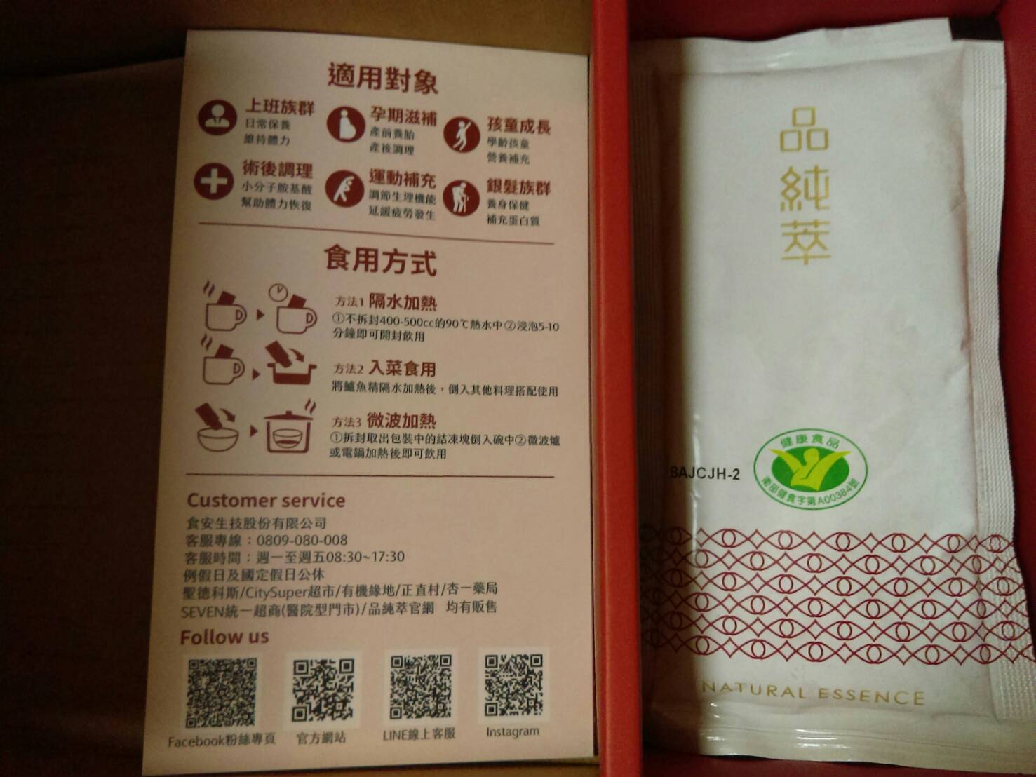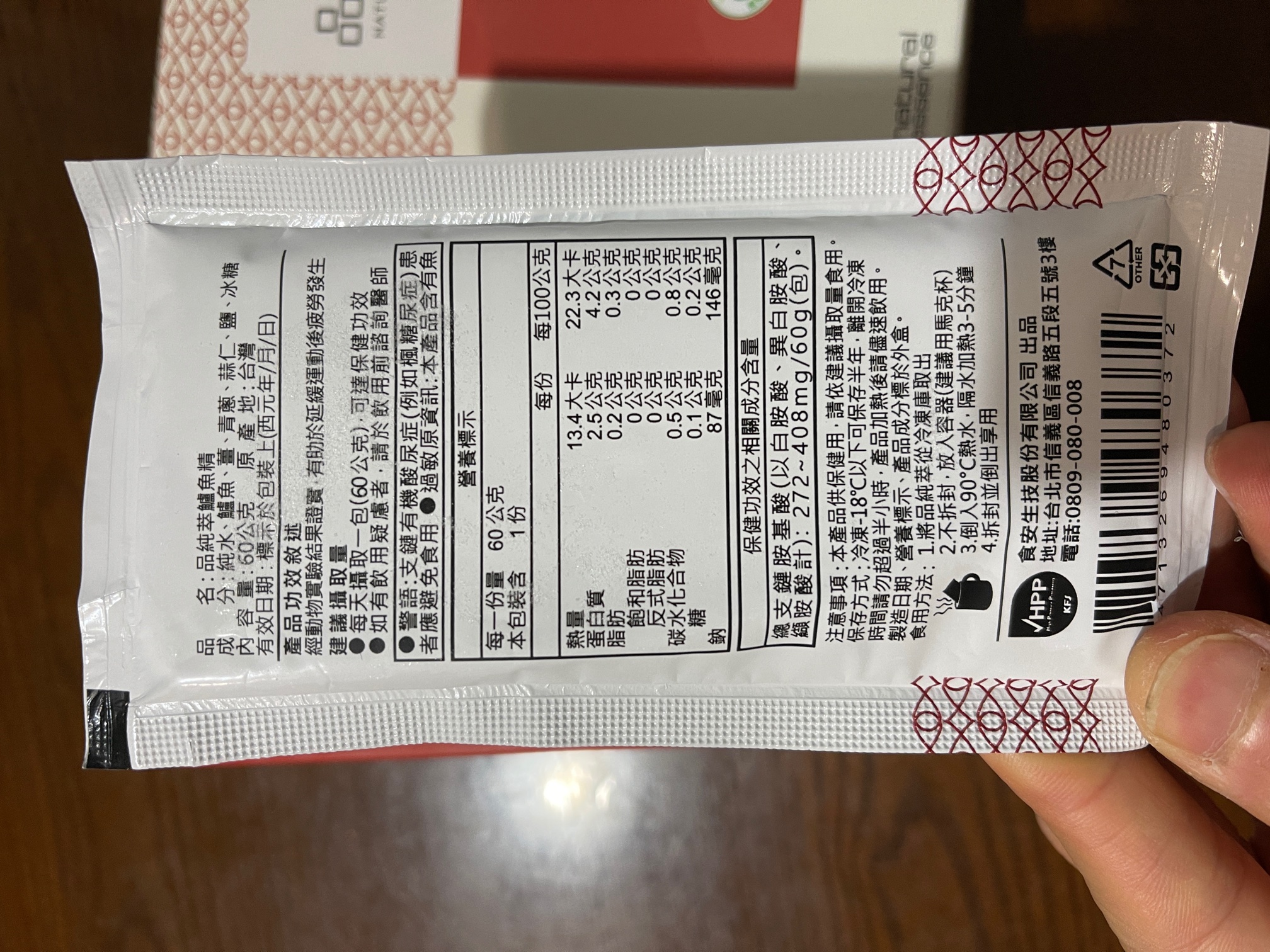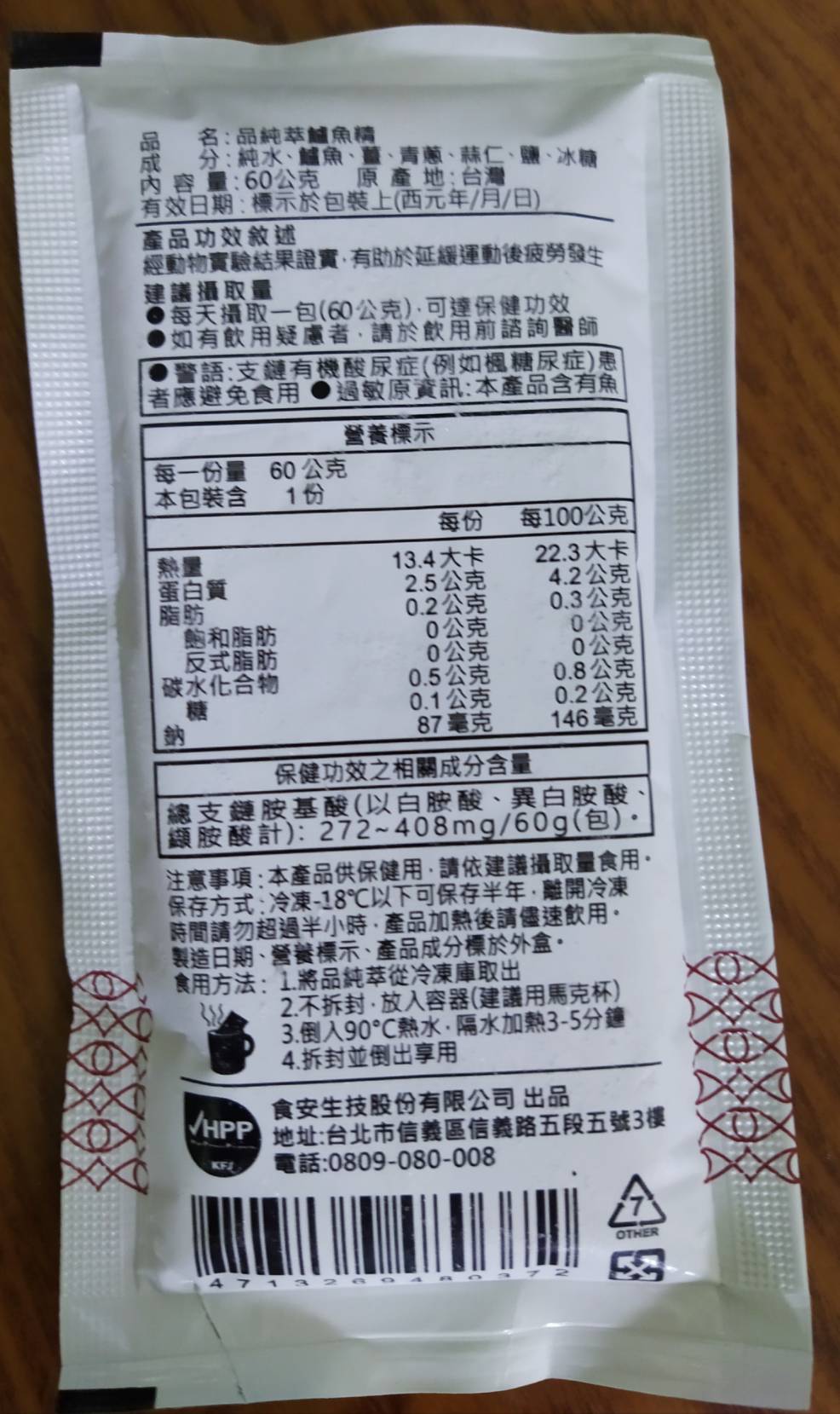 回列表 品純萃 鱸魚精 為您補充最完善的營養 市價1,100元 所需等級 一般會員以上 所需學分 30 體驗份數 50 關注人數 1752 申請人數 283 申請截止 品牌業者:食安生技股份有限公司 廠商名稱 食安生技股份有限公司 廠商地址 臺北市信義區信義路5段5號3樓 產地 台灣 產品規格 60g/包,共5包 食品業者登錄字號 F-153711900-00000-9 投保產品責任險字號 旺旺友聯產物產險字號:1200字第09PL0N000265號 心得分享 商品介紹 商品成分 使用方法 注意事項 體驗名單 9.0 品純萃 鱸魚精 包裝美學 8.9 鮮美程度 9.0 濃郁程度 9.1 品質安心 9.2 建議推薦 9.0 心得分享 50則 丁瑛子 鑽石達人 34歲 彰化縣 2021/03/19 對品純萃 鱸魚精留下評價 10 人家都說鱸魚是好魚 對於開刀的人來說更是最佳補品 剛好最近家中長輩開刀 給老人家補充營養回復活力真的是最好的營養品 小包裝方便保存 攜帶也方便 加熱也很簡單 鱸魚精還有小分子胜肽及胺基酸 最適合人體吸收 味道很濃郁 沒有腥味 微微薑味及鹹香 長輩很喜歡 謝謝食力!謝謝品純萃! 品品 金食達人 34歲 新北市 2021/03/20 對品純萃 鱸魚精留下評價 10 從包裝就可以看出一家廠商對於該產品的用心,採冷凍宅配維持品質。這次我採用微波加熱,速度快也最能直接品嚐到原汁原味,結果出乎意料的美味,鱸魚湯再搭配薑蔥蒜等調味,如同濃縮魚湯一樣很鮮美,先前喝過其他家的產品皆很清淡。而且品純粹鱸魚精具健康食品標章,支鏈氨基酸含量高,具抗疲勞功能,現代人都很適合,非常值得購買~ tuogo 金食達人 46歲 臺北市 2021/03/28 對品純萃 鱸魚精留下評價 10 鱸魚自古以來就是調理身體的最佳食品,也是手術或病後復健保養補品,這次獲選食驗室體驗時,剛好正值媽媽住院接受手術,因此我將產品全數讓媽媽食用補身。第一次接觸這樣的產品,原本會擔心會有魚腥味、怕媽媽會不敢喝,沒想到「品純萃鱸魚精」除了幫我們打造好了方便的飲食方式,其如果凍般的膠質,於加熱呈現新鮮的魚湯味,媽媽除了反應相當好喝,從手術後出院之後,就天天喝一包,每天皆有感於體力的恢復狀態明顯增加,媽媽也特別稱讚覺得喝完後超有感,體力恢復超快,是值得信賴的營養補給品,而且有小綠人「抗疲勞」的健康食品認証,除了覺得產品把關用心之外,對於品質也覺得非常安心,未來也會考慮持續選購、幫家人補身體! Kai 鑽石達人 34歲 臺中市 2021/03/30 對品純萃 鱸魚精留下評價 10 「品純萃」鱸魚精非常厲害,取得健康食品驗證,說明具有實質保健功效,利用超高壓低溫萃取技術將整隻鱸魚液化,分解為小分子的胜肽、游離支鏈胺基酸、總游離胺基酸等有利於吸收的蛋白質營養成份,可迅速補充體力。產品色澤呈溫潤琥珀色,看不到絲毫的油分,味道鮮美,藉由蔥、蒜、鹽、冰糖,達到畫龍點睛的效果,去除了鱸魚的腥味,引出鱸魚精的甘甜滑口,溫熱喝,暖胃暖心又營養。小包裝方便加熱,一個馬克杯與熱水即可快速享受溫暖營養的好滋味,適合上班族、銀髮族、開刀病患、孕婦及產婦調理身體、營養補充。 hubby 金食達人 43歲 嘉義市 2021/03/31 對品純萃 鱸魚精留下評價 10 心得分享-【原味鱸魚精+游離胺基酸】抗疲勞補充胺基酸,品純萃 鱸魚精很高興這次能夠獲選「品純萃 鱸魚精」的商品體驗 😊本來是想要申請給弟弟試喝,但最近媽媽我很容易感到疲倦,所以早上起床後,和弟弟一起維持空腹狀態,享用這美味的鱸魚精 🐟我本身很怕腥味😨但這個「品純萃 鱸魚精」沒什麼腥味,反而喝起來很像在喝魚湯,很鮮甜😋它的成分很單純,僅有:純水、鱸魚、薑、青蔥、蒜仁、鹽、冰糖。喝起來有蔥蒜的香甜味,連弟弟也一直搶著要喝一點都不會害怕,還很開心的豎起大拇指呢!😁連我自己都感覺喝完後,心情變很好也很有精神喔!😊『品純萃-鱸魚精』是運用獨家「HPP液化全食技術」將蛋白質切割為胜鈦及胺基酸小分子,讓身體好吸收,可迅速補充體力。這是滴或熬所做不到的喔!!👍👍 楊祖安 鑽石達人 44歲 臺北市 2021/03/25 對品純萃 鱸魚精留下評價 10 謝謝品純萃更謝謝食力的活動,讓我體驗鱸魚精這麼棒的優質蛋白我是以微波爐加熱的方式來喝,一撕開包裝就聞到濃濃的鮮魚味,加熱後的味道更突出加成,魚湯顏色清澈無比,入口後非常的滑順且品嚐出魚的鮮甜味和薑淡淡的香味,完全沒有任何魚腥味,非常得好喝,讓人回味無窮,湯內充滿了許多膠質,喝完嘴裡帶有微黏的感覺,真得是很棒的健康食品 黃育琳 鑽石達人 31歲 臺中市 2021/03/20 對品純萃 鱸魚精留下評價 9 加熱完後倒入碗中,一股濃郁的海鮮清香隨即撲鼻而來,而且完全沒有腥味,讓我不禁讚嘆這超高壓加工萃取技術。入口後就像是溫熱、濃郁、鮮甜,充滿精華的鮮魚湯,喝得出帶點微辣的薑,風味搭配得很完美。我認為其濃醇及清香、甘甜程度不是市售的魚湯能比擬的,有驚艷到。另外我故意選在清晨健身完後空腹品嚐,肌肉的酸痛疲勞感確實比平時少了許多,不愧是經小綠人認證的產品,謝謝食力給予我品嚐的機會。 邱小潔 金食達人 31歲 臺北市 2021/03/29 對品純萃 鱸魚精留下評價 9 最近剛好身體有點感冒,天氣又冷(寒流),獲得食力的鱸魚精試用體驗非常開心。一接到宅配司機的電話就迫不及待要收貨看看廬山真面目,開箱後發現真是美麗,包裝很精美,設計的非常有質感,雖然鱸魚精這種液態的補品包裝小,但有著外盒這麼有設計