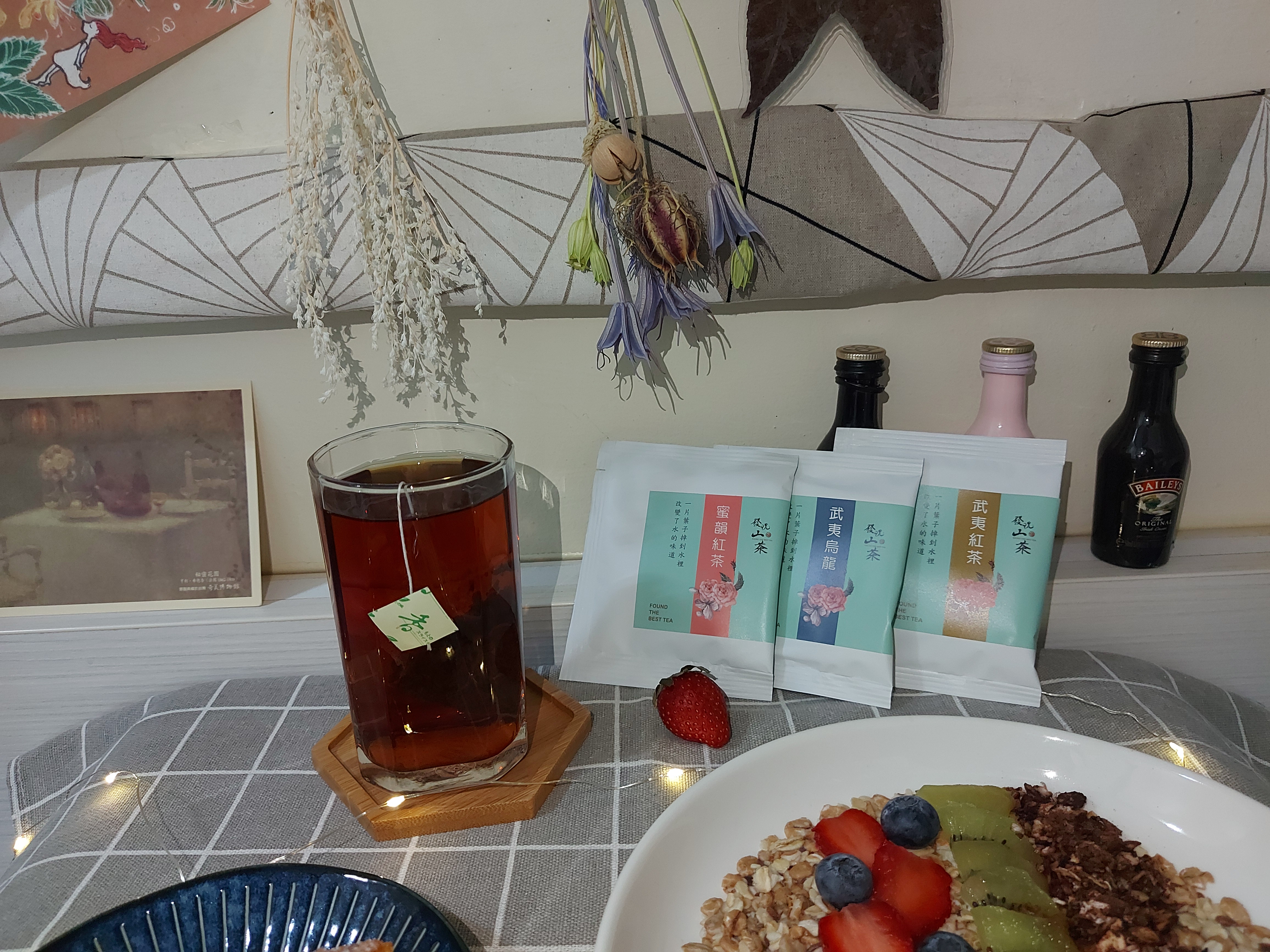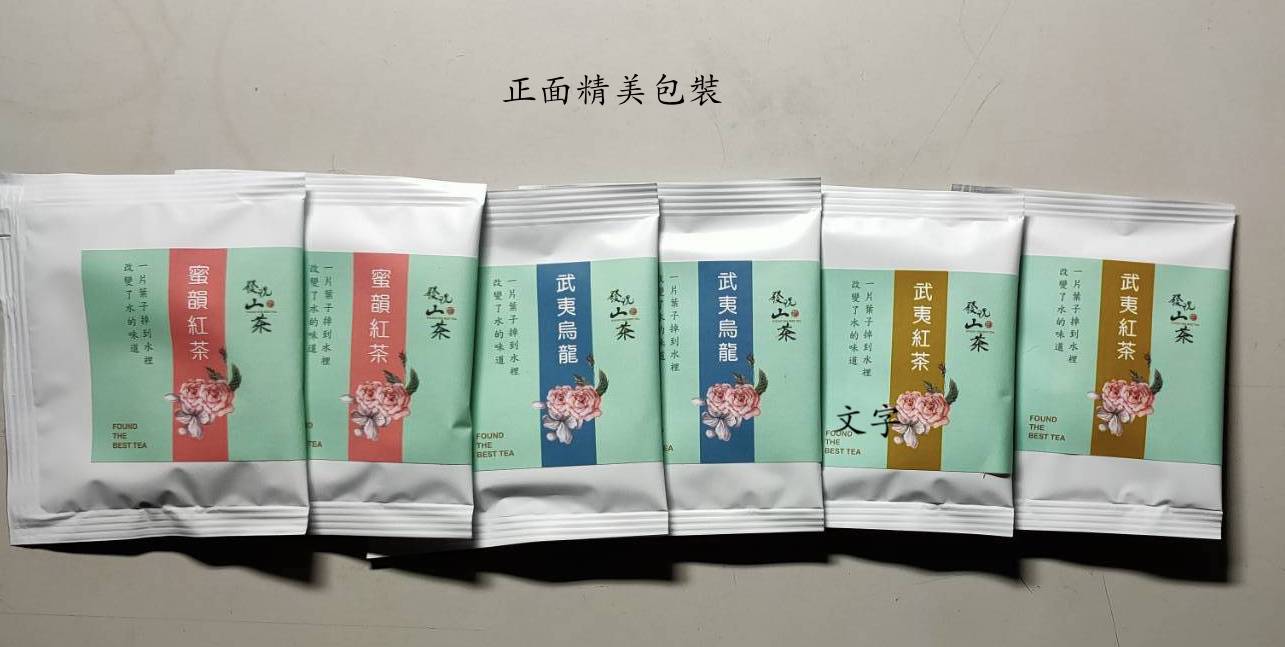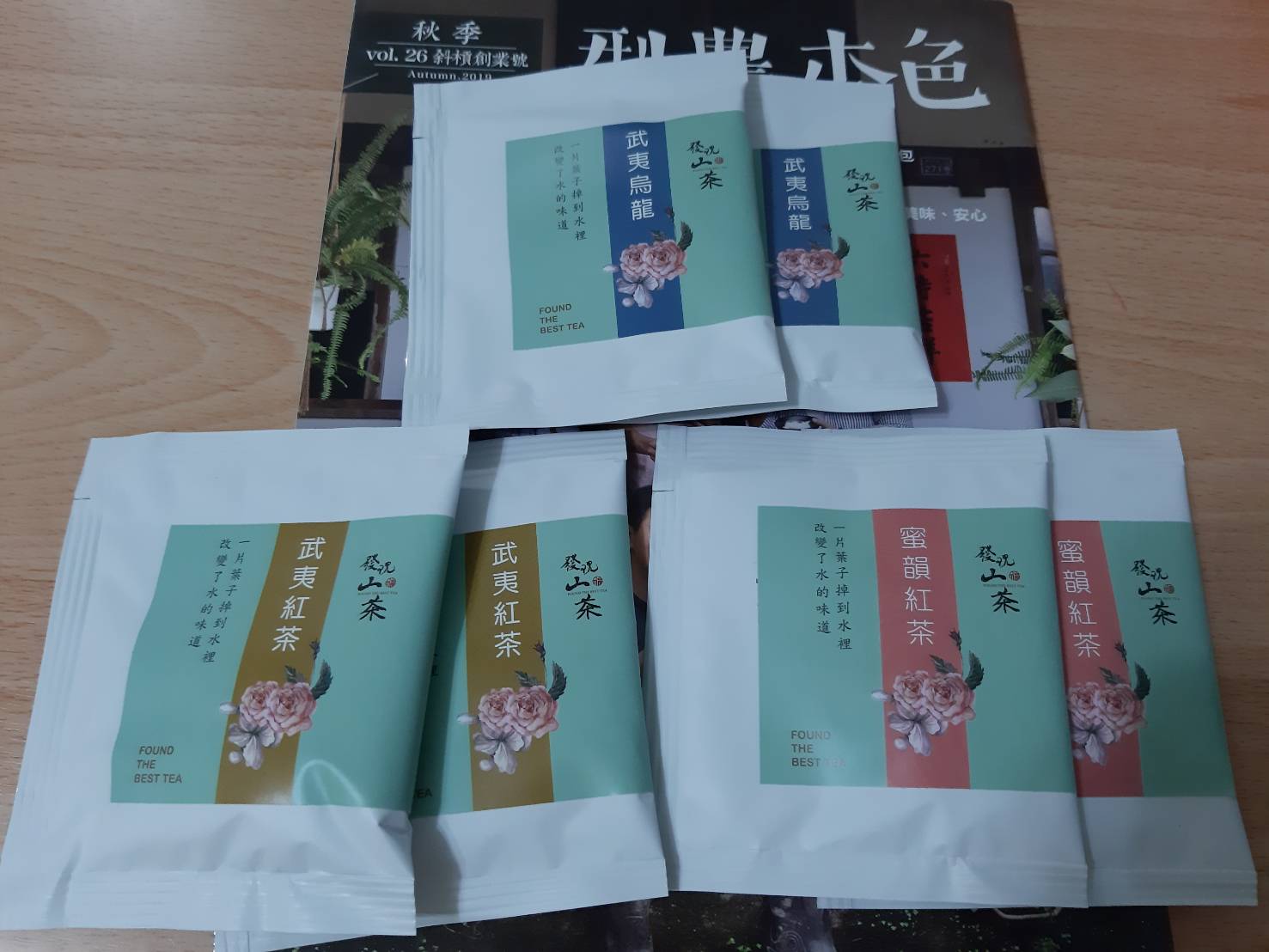 武夷茶為灌木科中葉種,民國73年種植於高雄六龜新發後山,目前在台灣少有人種植,更顯彌足珍貴。以冬季手採老欉武夷茶種爲茶葉原料,經獨特工法製作重焙火青茶與紅茶,各自具有迷人香氣,口感層次多變化。