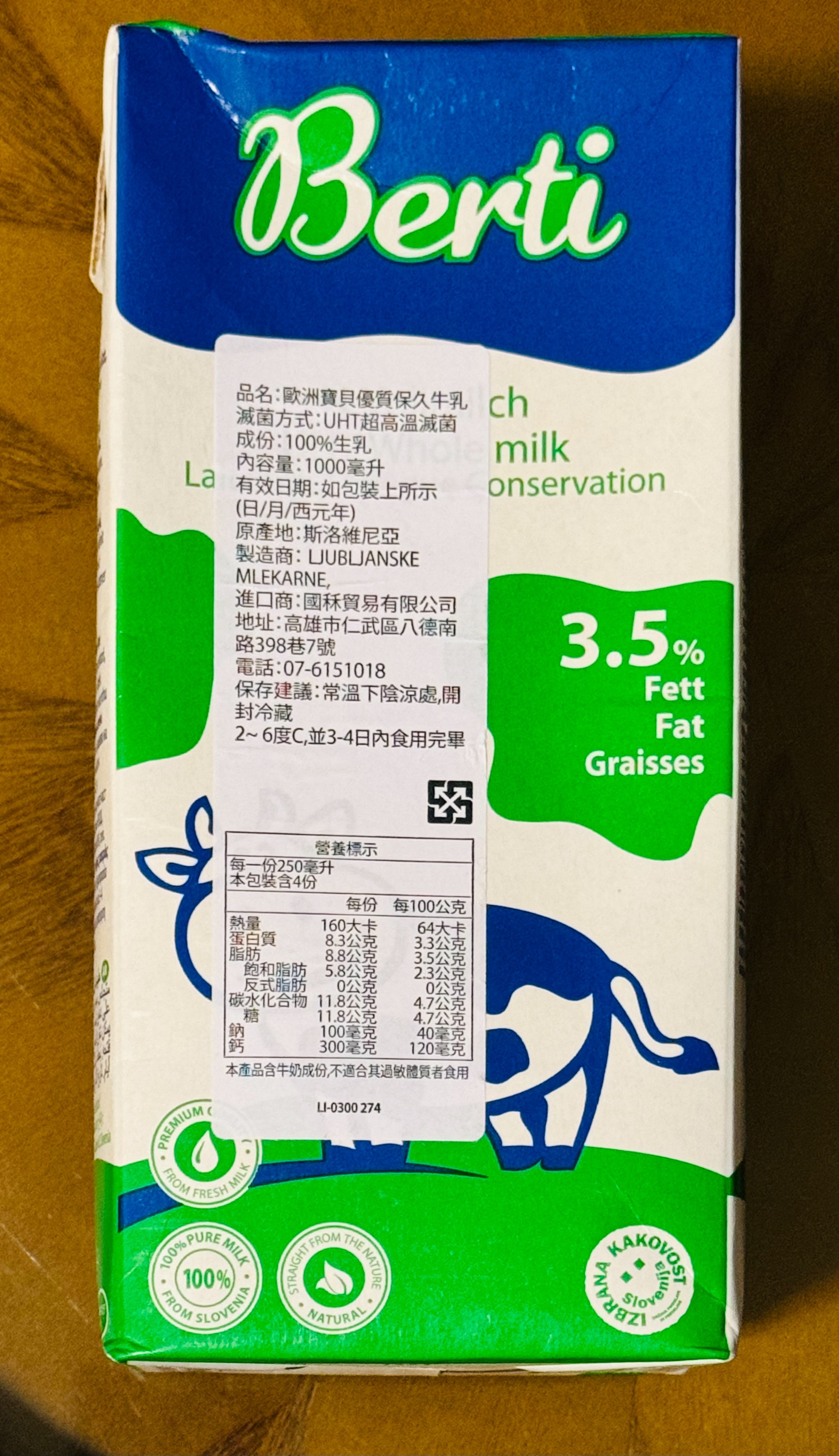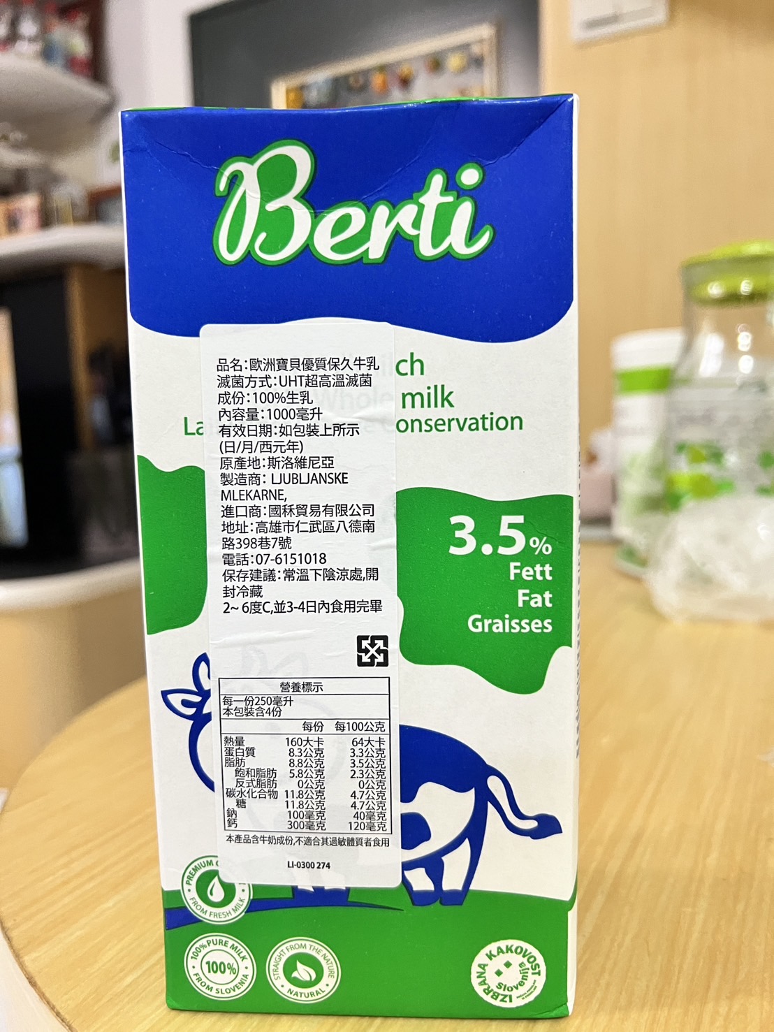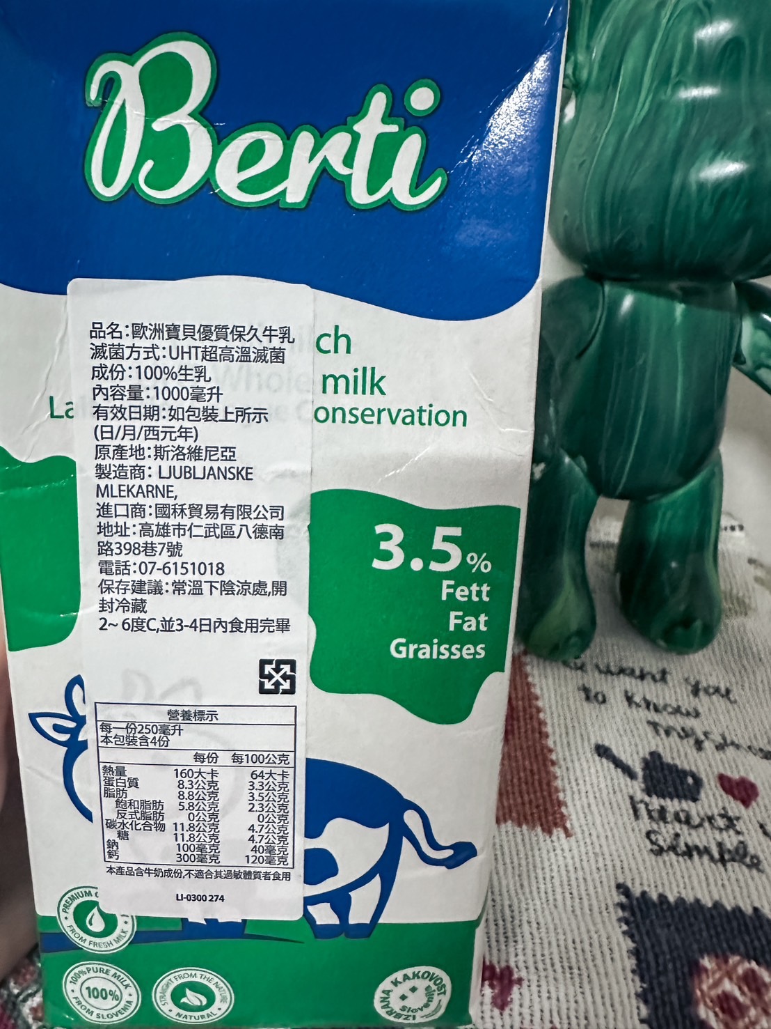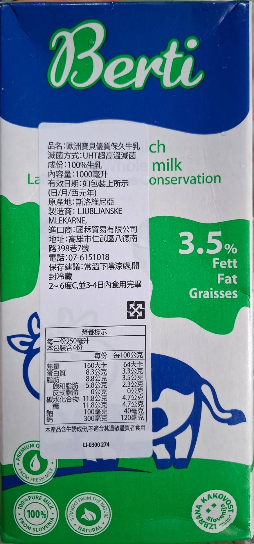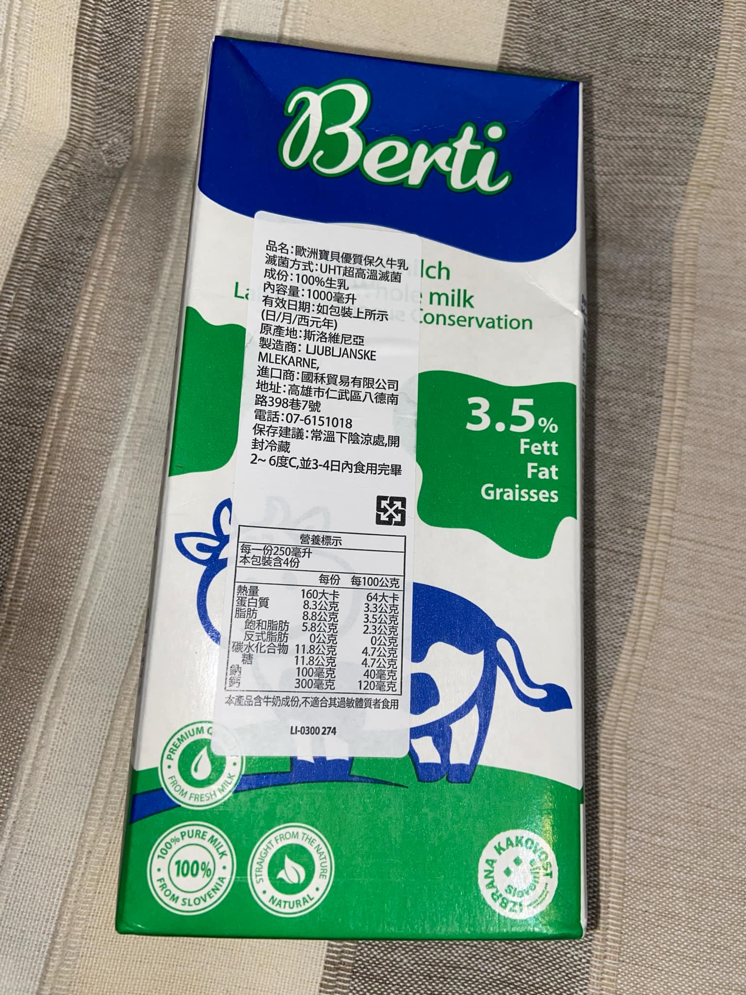 Berti 歐洲寶貝優質保久牛奶 來自歐洲的天然美味 保證每一口的純正