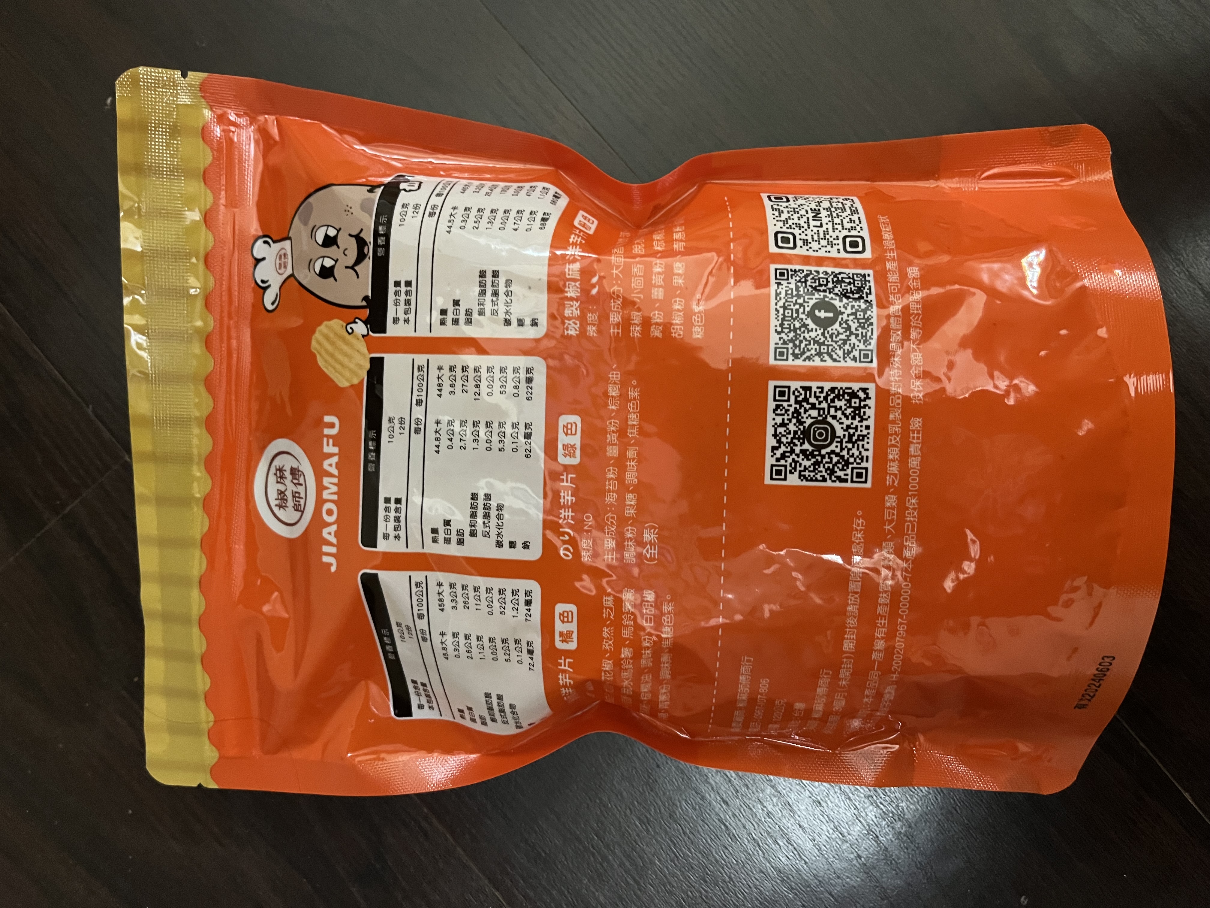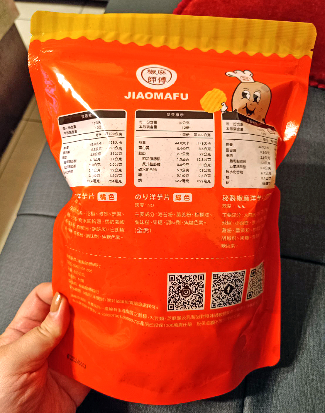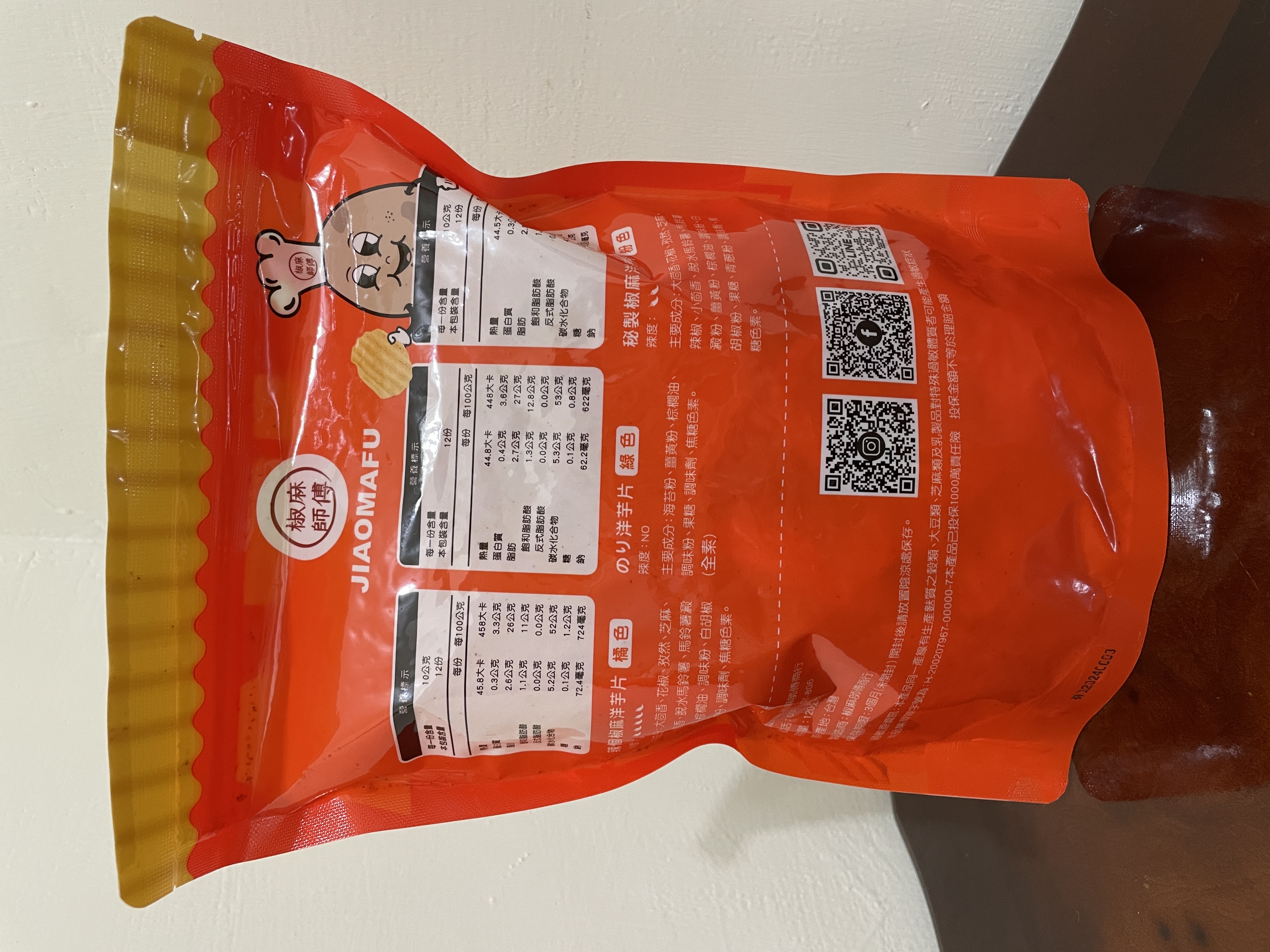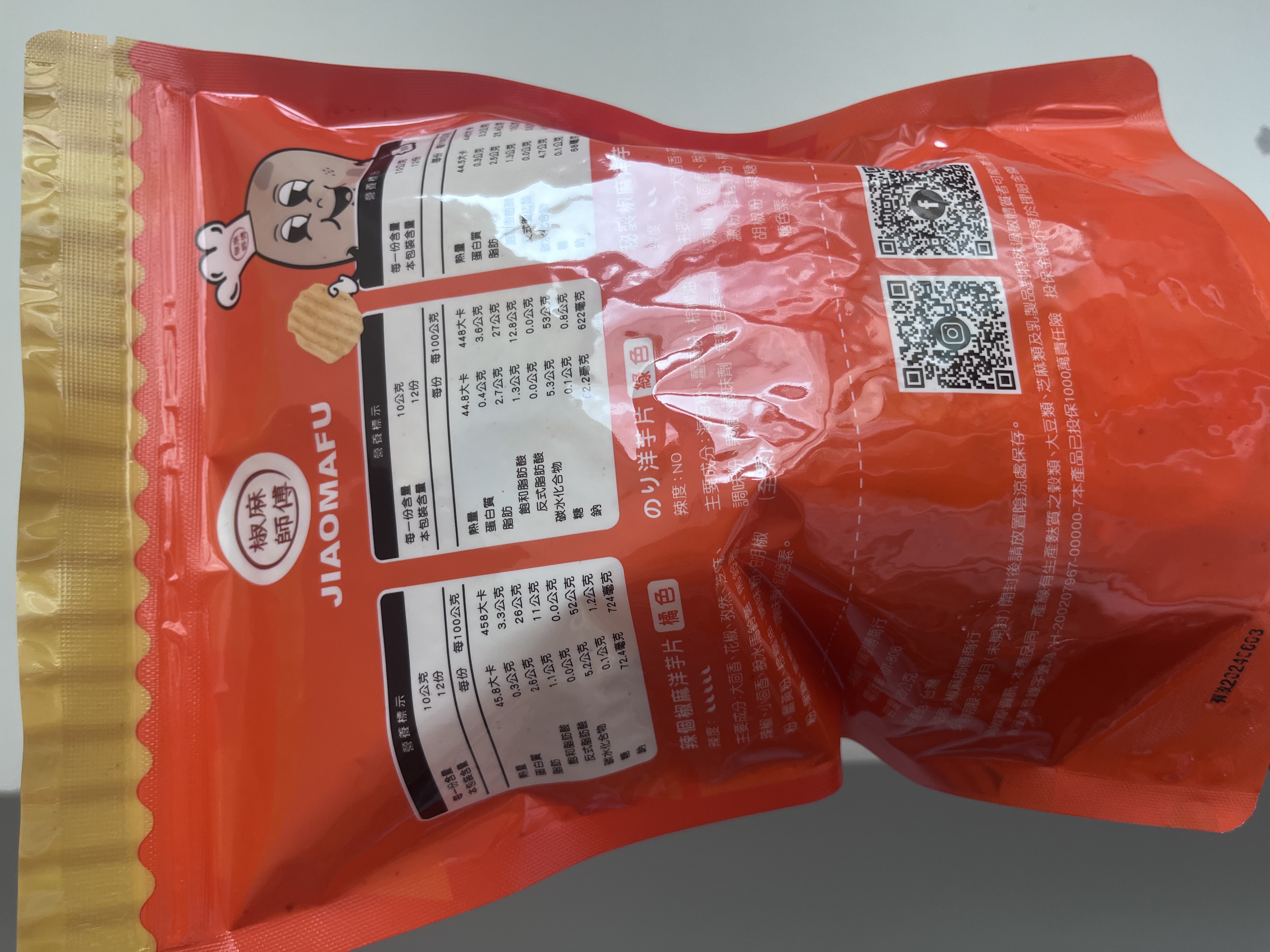 回列表 椒麻師傅 辣個椒麻洋芋片 厚切更帶勁 萬眾矚目的辣個它來了 市價120元 (免費申請) 所需等級 一般會員以上 所需學分 50 體驗份數 15 關注人數 1675 申請人數 334 申請截止 品牌業者:椒麻師傅 負責廠商 椒麻師傅 廠商地址 桃園市中壢區中園路21號11樓 產地 台灣 試用產品規格 120g/包 食品業者登錄字號 H-200207967-00000-7 投保產品責任險字號 心得分享 商品介紹 商品成分 使用方法 注意事項 體驗名單 8.3 椒麻師傅 辣個椒麻洋芋片 椒麻程度 9.1 酥脆口感 8.9 香氣十足 8.5 包裝美學 8.2 建議推薦 8.3 心得分享 15則 蘇泱毓 鑽石達人 26歲 臺北市 2024/04/13 對椒麻師傅 辣個椒麻洋芋片留下評價 10 這次抽到「辣個椒麻洋芋片」的試吃機會,發行的也是椒麻師傅商行真的如其名哈哈~按指定評價的項目來說,「椒麻程度」那鐵定是有的!蠻意外在吃第一片就能感受到辣味在嘴中瀰漫,吃辣星人認證👍!「酥脆口感」的部分也OK,他們家的洋芋片吃起來口感有點像是有機店賣的洋芋捲,不是很油嘴的那種,不過脆度有保留!麻辣的當然是「香氣十足」哈哈,雖然很辣但越吃越刷嘴,很容易整包不見(欸)?「包裝美學」部分我覺得至少是貼心的夾鏈袋設計,方便收納保存(不用找夾子)。論成分來說算是比較乾淨的洋芋片,調味以天然香料為主,糖含量蠻低的(鈉不低但至少少於1000),熱量也比市面的低一些(市面上大概約500大卡偏油膩)。但蛋白質含量不高(廢話),脂肪也不低,還是得控制吃的量~而且整包有一半以上的洋芋片保留完整的形狀,運送過程不會摔的碎碎的(因為很厚的關係嗎)。吃起來比有達到標準甚至比預期的好,推薦給同樣愛吃辣的人👍!他們家除了嘴辣的洋芋片,還有小辣跟不辣的洋芋片(不辣似乎是海苔的?背面包裝有寫),不敢吃辣的朋友也推薦喔! 李曉芬 金食達人 36歲 桃園市 2024/04/13 對椒麻師傅 辣個椒麻洋芋片留下評價 9 一打開就聞到辛香料,麻辣鍋的味道,洋芋片雖然是厚切,但不會太硬脆,也算是很酥脆,但以我的程度這個辣我只能吃兩片,一開始的辣感已經占據我的舌頭,當咀嚼完後就算喝了水也無法阻止後續的麻感,敢吃辣的家人也是一開始很順,後來也說越吃越辣了,不過大概過幾分鐘後麻感就會退了,只是我太弱了,對於吃辣的人來說會喜歡,這口感是很舒適的,但這價格就要考慮考慮 尤引呈 鑽石達人 33歲 臺中市 2024/04/14 對椒麻師傅 辣個椒麻洋芋片留下評價 9 本產品先說結論,真的是辣到不要不要的,採用花椒等辛香料,真的是被椒麻到不行了,想要邊吃邊追劇,要嘛你不怕辛辣,要嘛真的得一口茶一口薯片,而撇開辛辣不說,整體厚切酥脆,香氣十足,份量充足,包裝美學也明確一體成形,很適合給於愛吃辣的饕客,如果怕辣的真的要三思。 hana,H. 金食達人 40歲 新北市 2024/04/14 對椒麻師傅 辣個椒麻洋芋片留下評價 10 包裝簡單乾淨,大包裝但有夾鏈袋,食用上蠻方便的,可以慢慢吃。薯片是厚片型的,還有波浪紋,吃起來口感不錯,也很清脆,可以吃的馬鈴薯的香氣。這次試吃的麻辣口味的洋芋片,比想像中麻辣味更重。辣度還蠻夠的,嗜辣的話會很喜歡,但不會太鹹,鹹度剛剛好,越吃會越辣…剛好一次不會吃太多,夾鏈袋保管很方便。蠻值得推薦給喜歡麻辣口味的洋芋片愛好者。 chen yu 鑽石達人 37歲 臺南市 2024/04/14 對椒麻師傅 辣個椒麻洋芋片留下評價 6 試吃產品:椒麻師傅 辣個椒麻洋芋片寄送包裝算蠻好的,有加泡泡紙。效期在洋芋片產品裡算比較短的?只到6月初。分量是挺大包的,很期待吃起來的感覺,但試吃過後大失所望,看起來不太辣,結果對家人和我來說,實際辣度實在太高了,吃不出其他的味道,洋芋片的質地也不好喜歡,也沒甚麼馬鈴薯的香氣,非常可惜,辣還是有一點香氣的,但調味真的可以再加強,也許其它不辣的口味的產品可以嘗試一下,這款比較適合很會吃辣的朋友挑戰。 洪鼎軒 金食達人 31歲 臺中市 2024/04/15 對椒麻師傅 辣個椒麻洋芋片留下評價 10 今天喜獲由食力公司寄送:品名:椒麻師傅 辣個椒麻洋芋片提供廠商:椒麻師傅商行試吃心得: 滿口大茴香,花椒,孜然的香味,脆脆口感,滿滿的馬鈴薯的味蕾,一口接一口,停不下來,可以搭配上喜歡的飲料,又多了一種下午茶的零食了,超美味的感覺。口內滿滿的花椒味蕾,很有滿足感,一點麻,一點辣,香脆可口的美味,留著餘香,久久不能退去,又接著一片又一片往嘴裏送幸福,真是美味的零食口糧。 劉怡君 金食達人 37歲 新北市 2024/04/15 對椒麻師傅 辣個椒麻洋芋片留下評價 8 收到這款椒麻洋芋片時,從外包裝看起來彭湃大包、很有份量;打開包裝,每一片洋芋片都均勻的沾附椒麻粉,當我開始吃下2~3片後,感受到洋芋片酥脆的口感、以及強烈的麻辣味襲來,這種辣味不僅持久的停留在舌尖,還帶著強烈的後勁,適合給喜歡挑戰辣味極限的朋友們。 楊上慧 金食達人 43歲 新北市 2024/04/15 對椒麻師傅 辣個椒麻洋芋片留下評價 8 這次試吃的椒麻師傅鮮厚切巨浪洋芋片-一咬下去是滿滿的花椒香氣,真的脆,堅持新鮮生產、口味清爽不油膩、滿滿馬鈴薯原香,真的很涮嘴,但是後勁還真的不小,連我有在吃辣的人,吃個十片後感覺胃有在燃燒,但整體而言是好吃的,只可惜這口味小孩沒辦法一起分享,因為太麻香了啦 胡先生 金食達人 61歲 桃園市 2024/04/16 對椒麻師傅 辣個椒麻洋芋片留下評價 10 首先,味道非常、非常像麻辣鍋,有火鍋的香