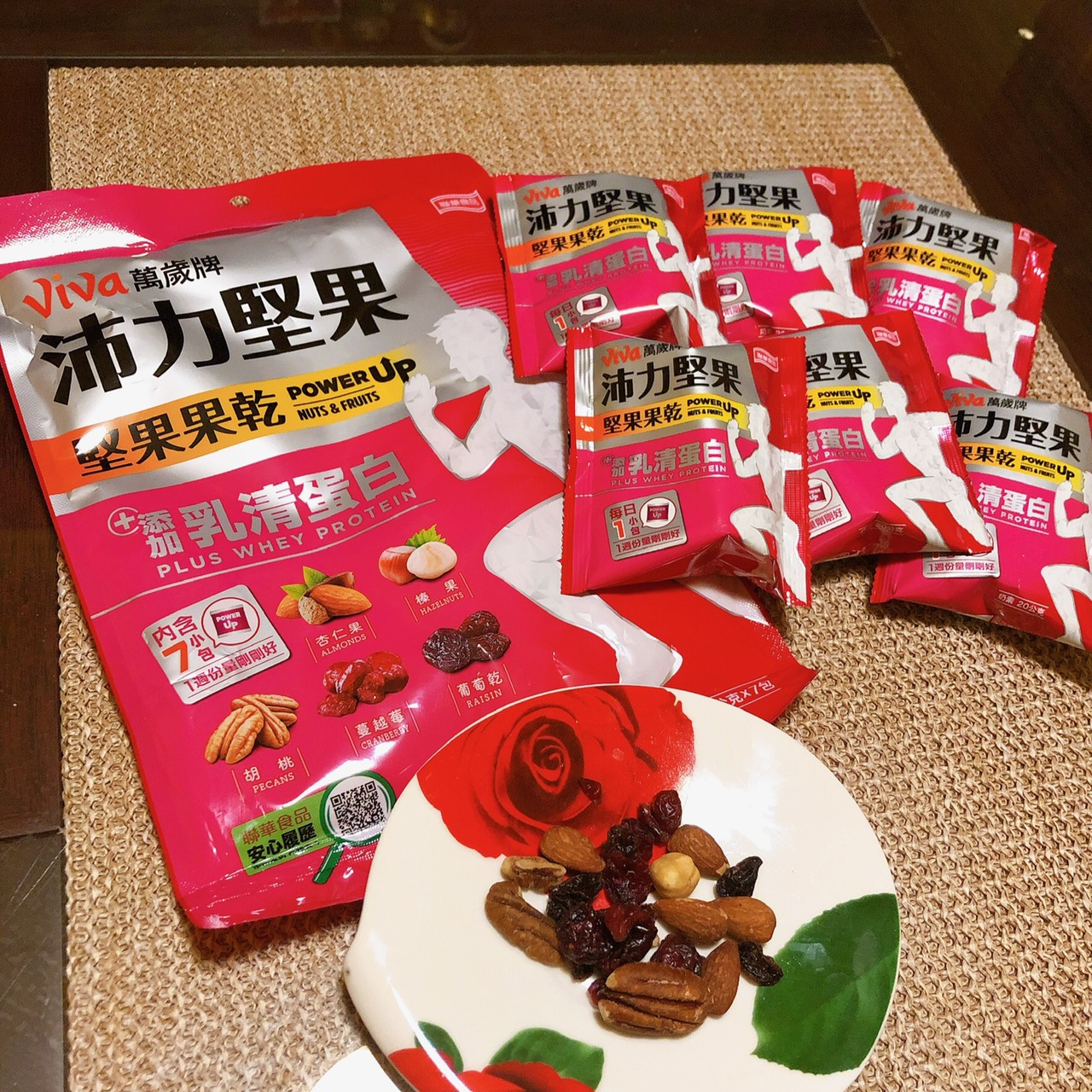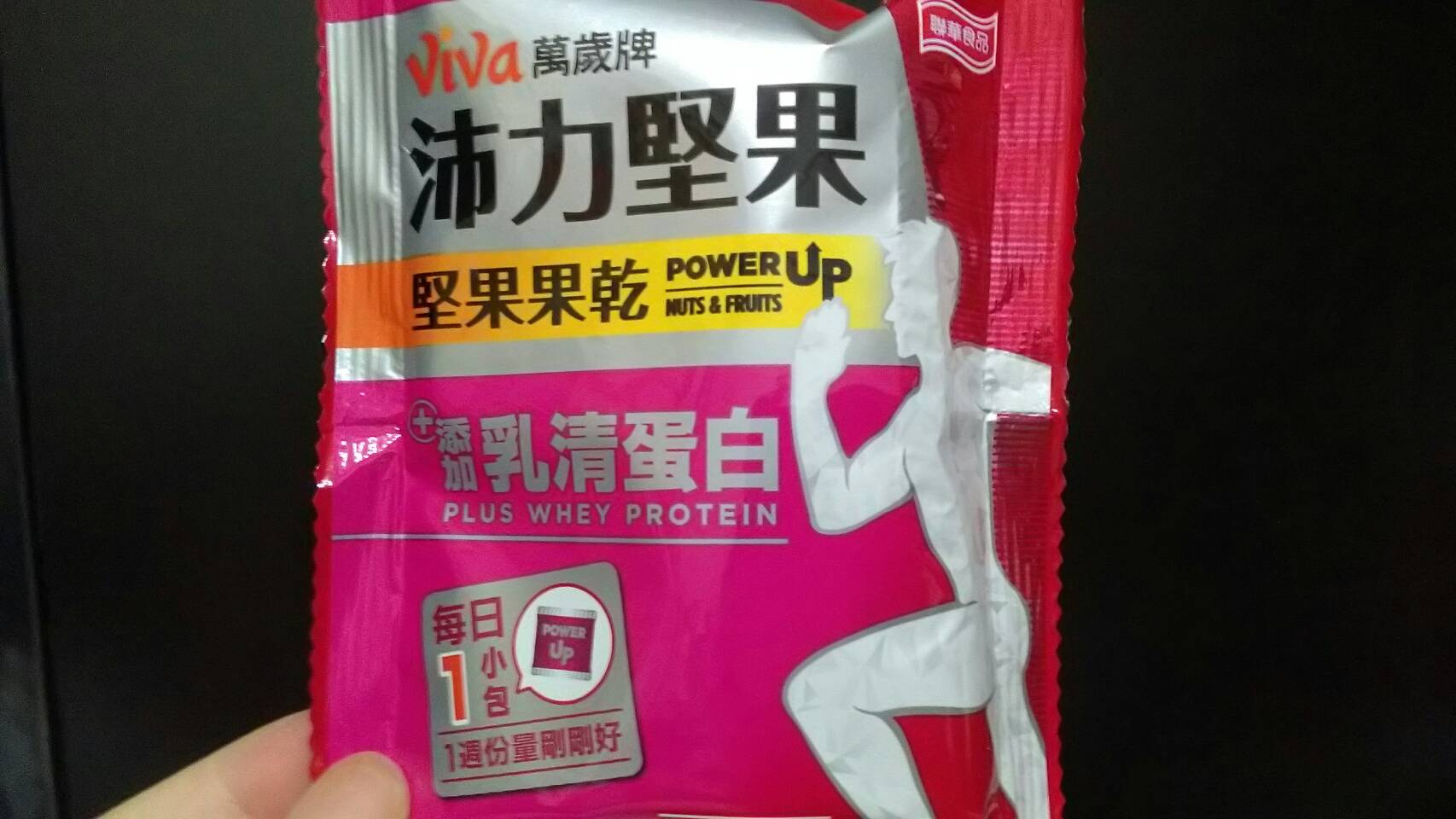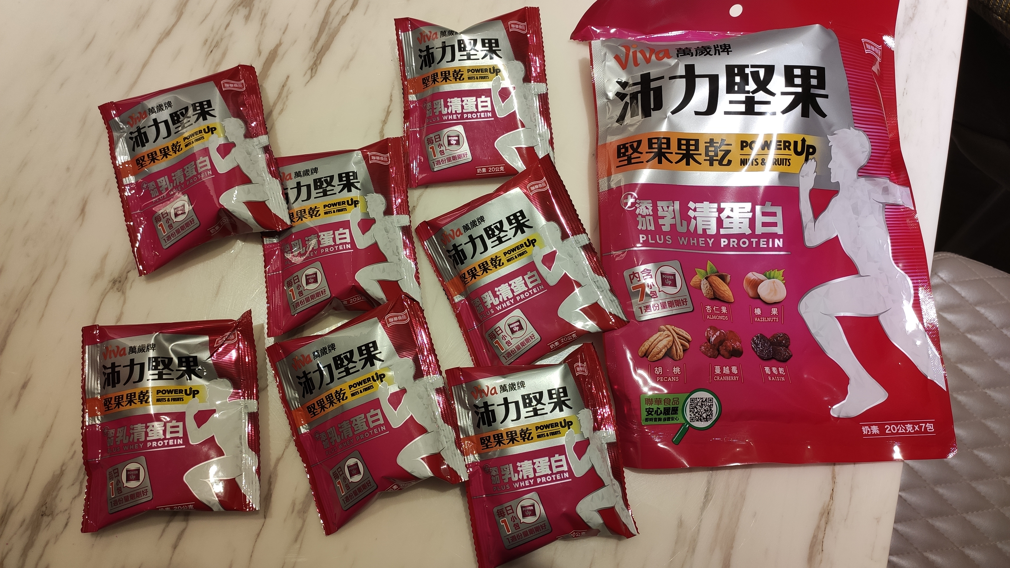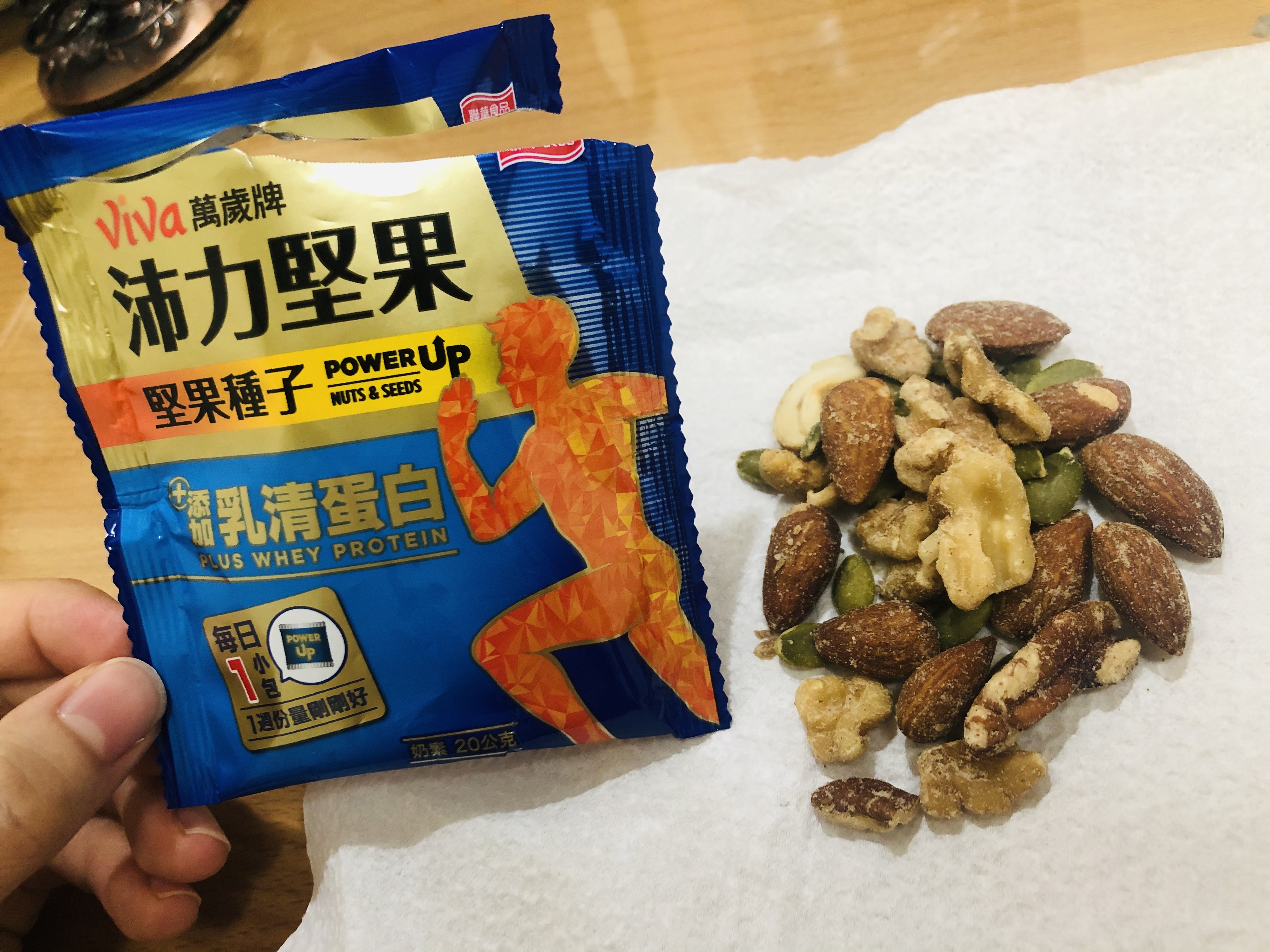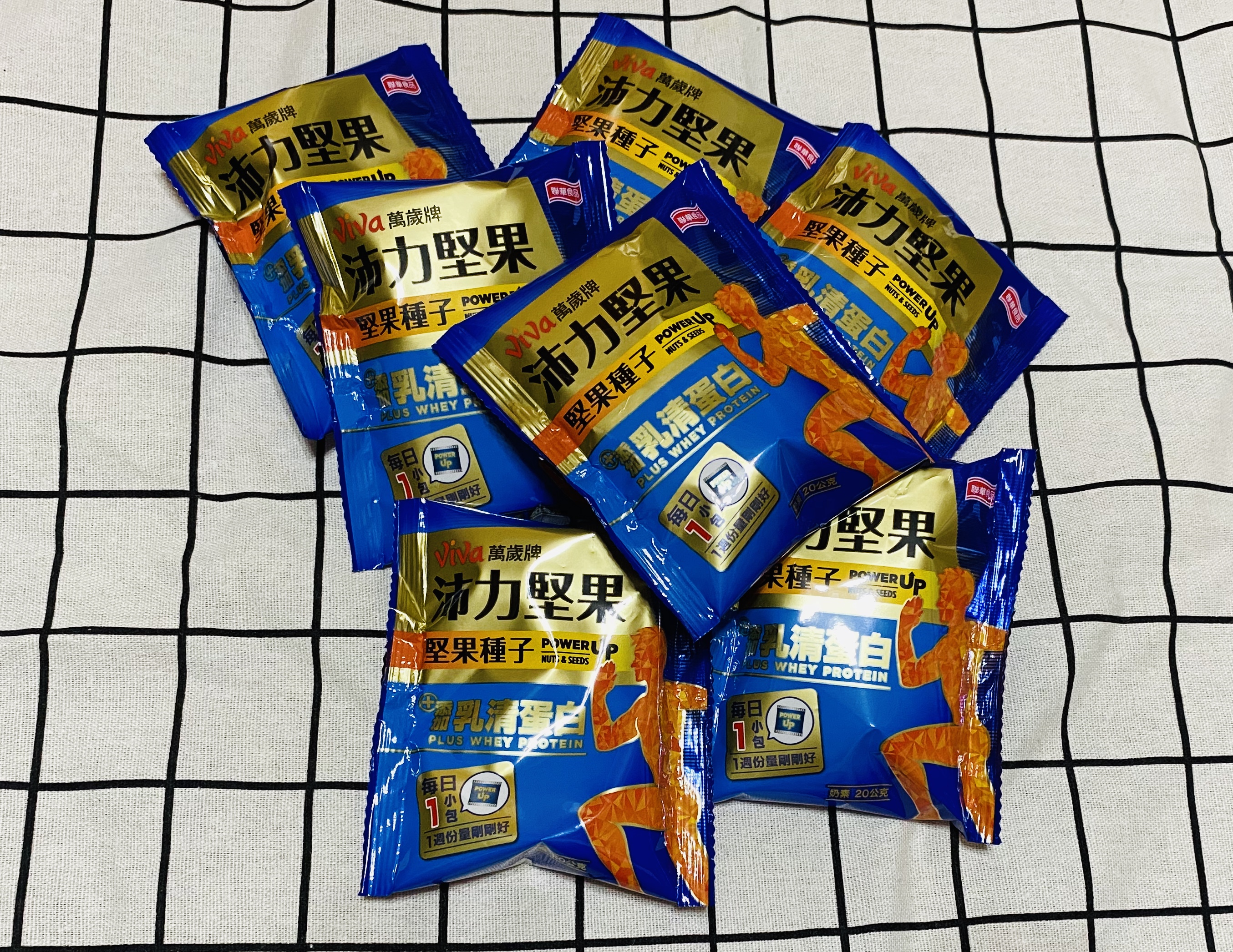 萬歲牌新推出的沛力堅果,添加果乾或者種子的成份,有多種營養素補充,此外,植物性蛋白及膳食纖維,能增加飽足感,促進腸道蠕動,加了乳清蛋白的沛力堅果,還能滿足日常運動後,所需的蛋白質,一包剛好的份量,讓你一次補充蛋白質+營養素,達到運動效果!