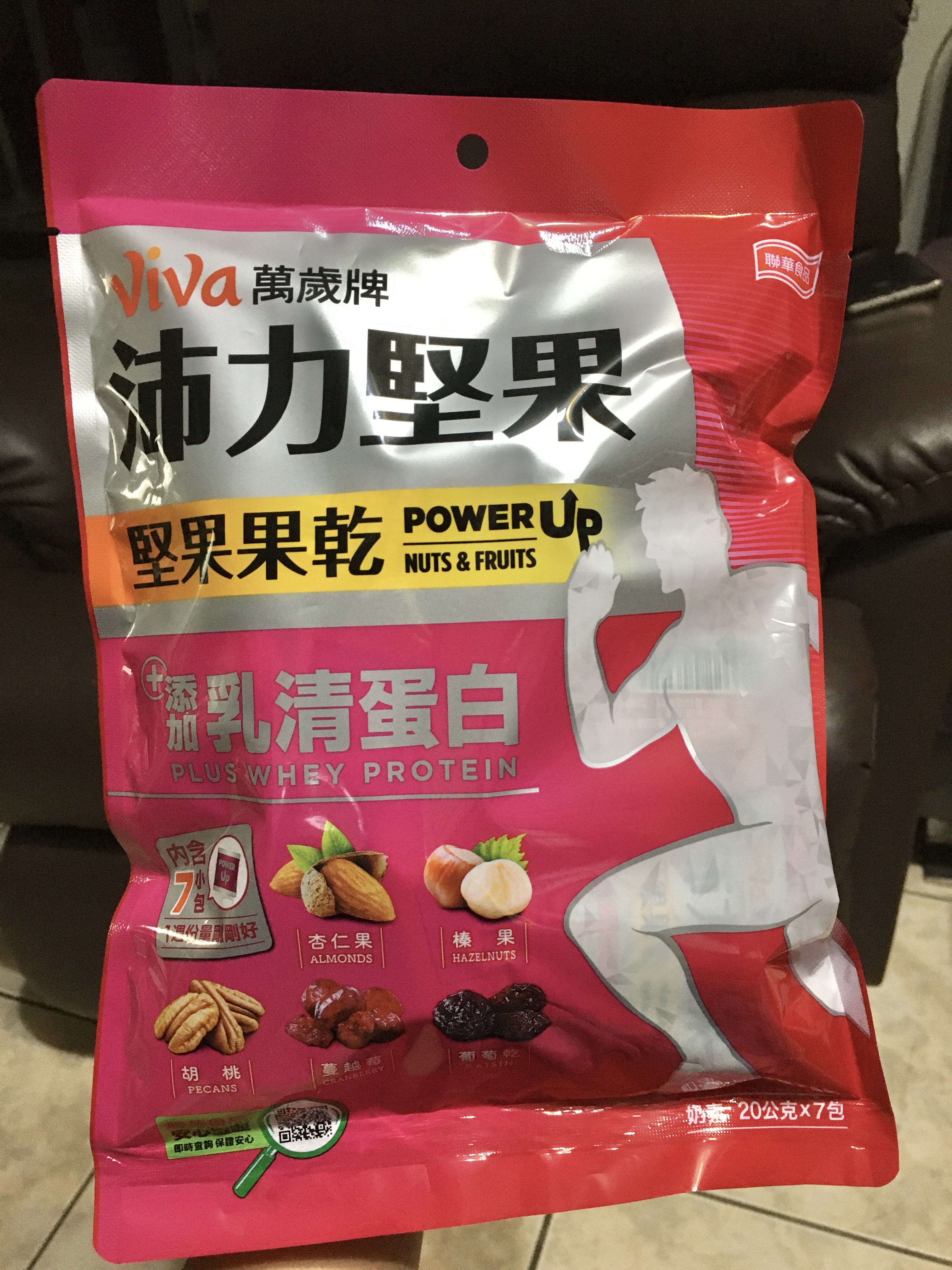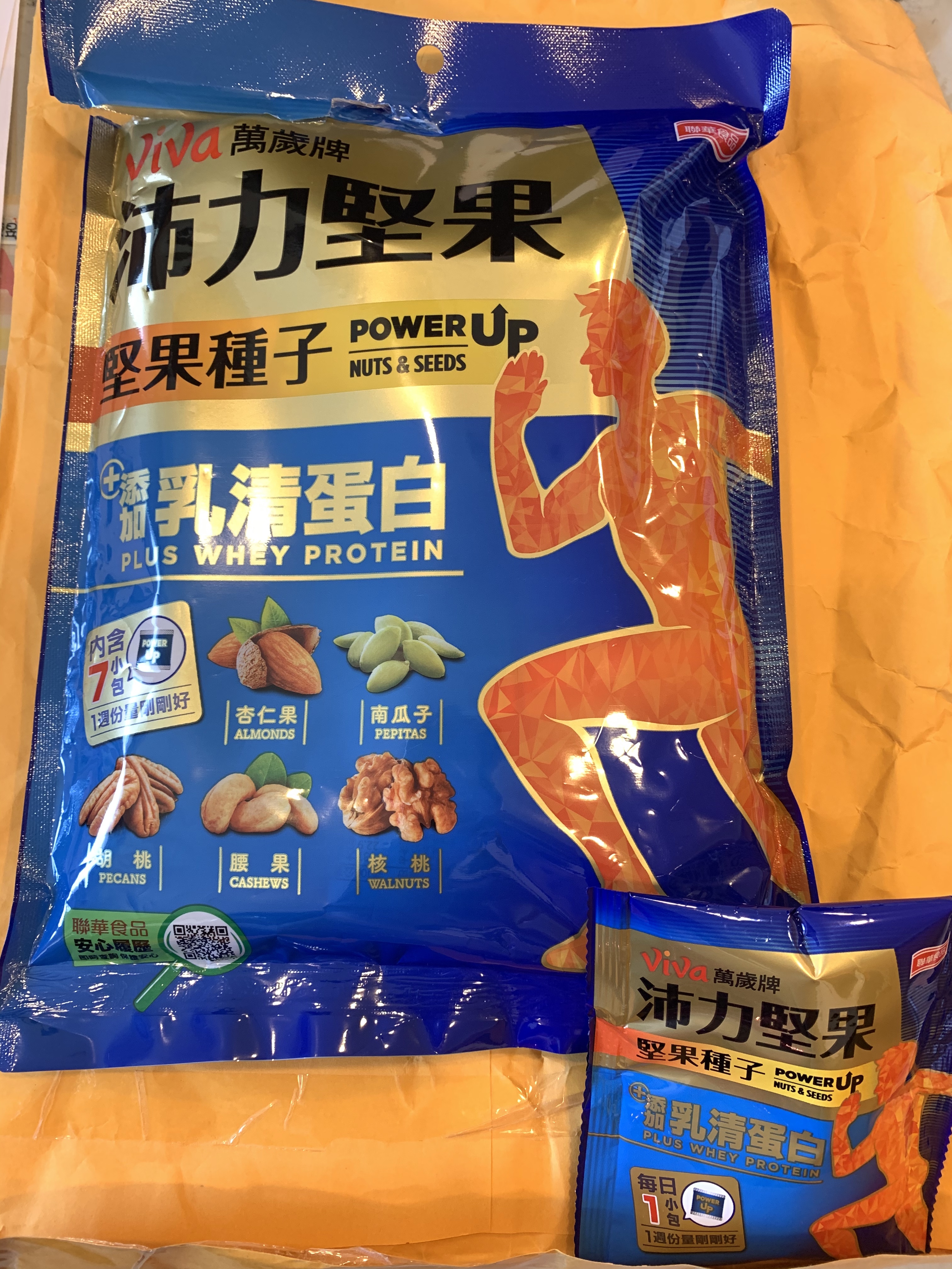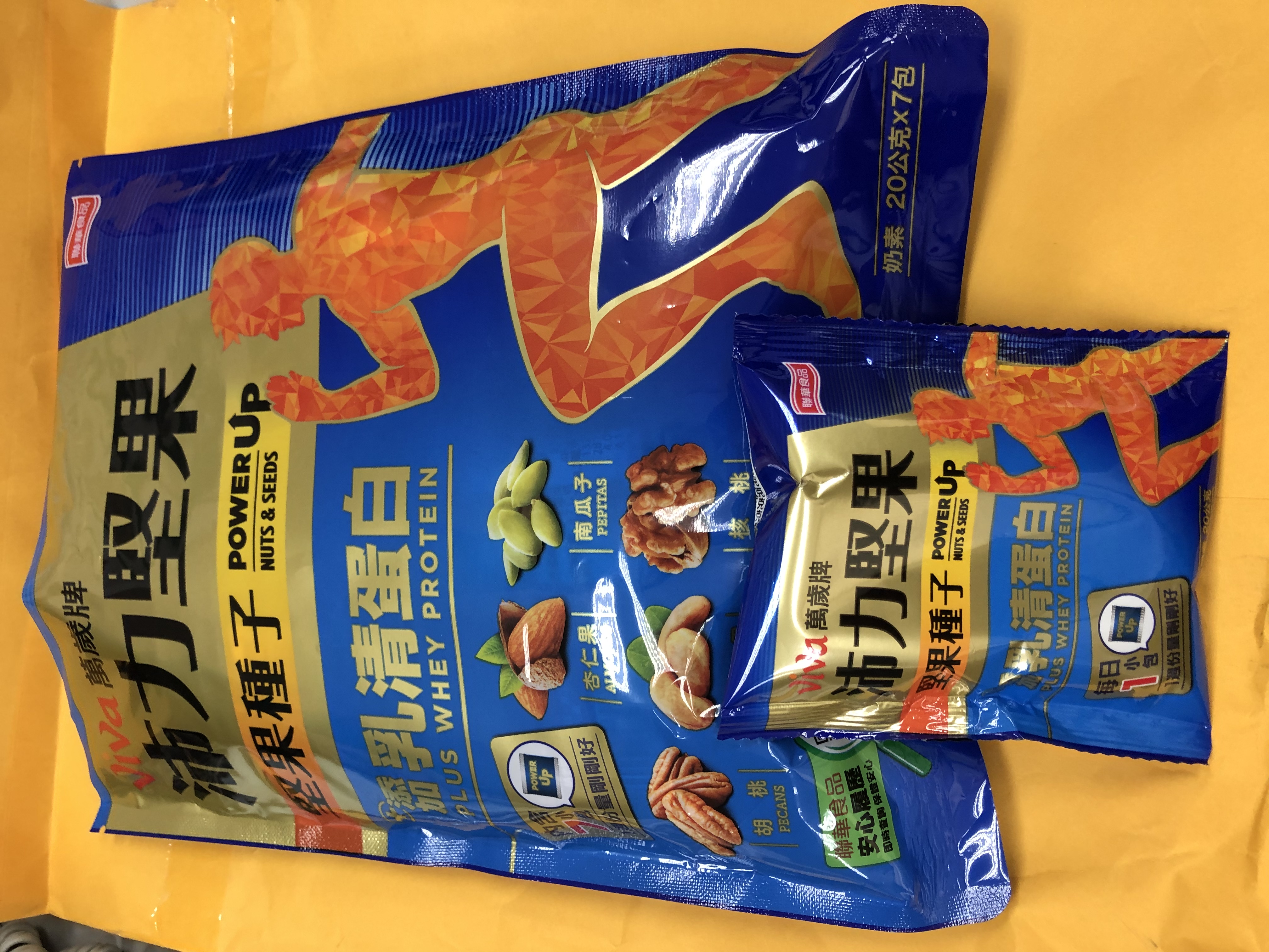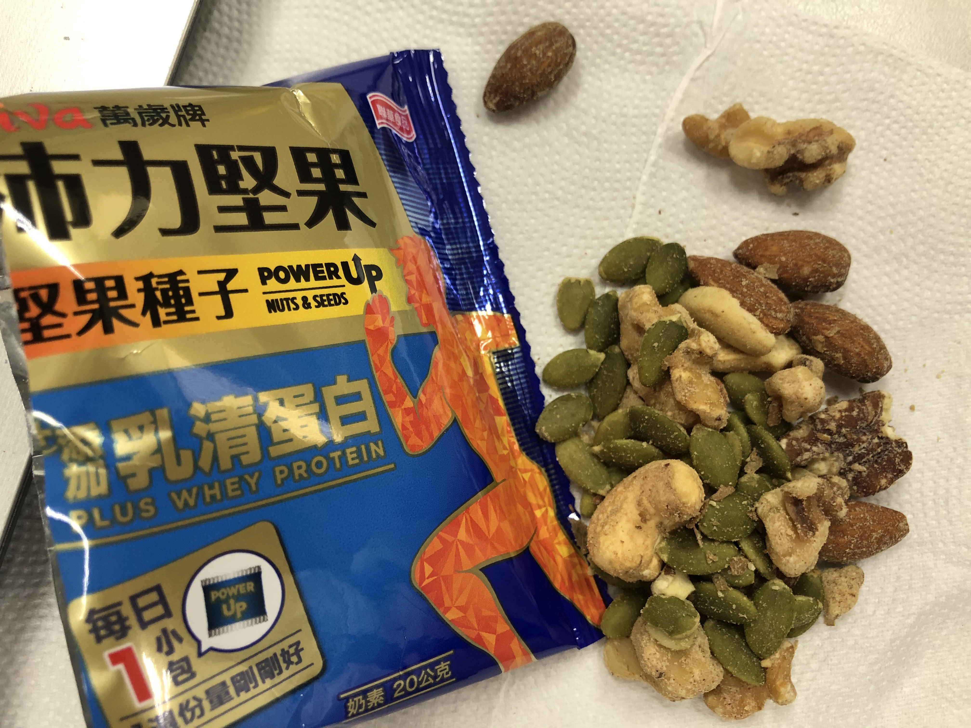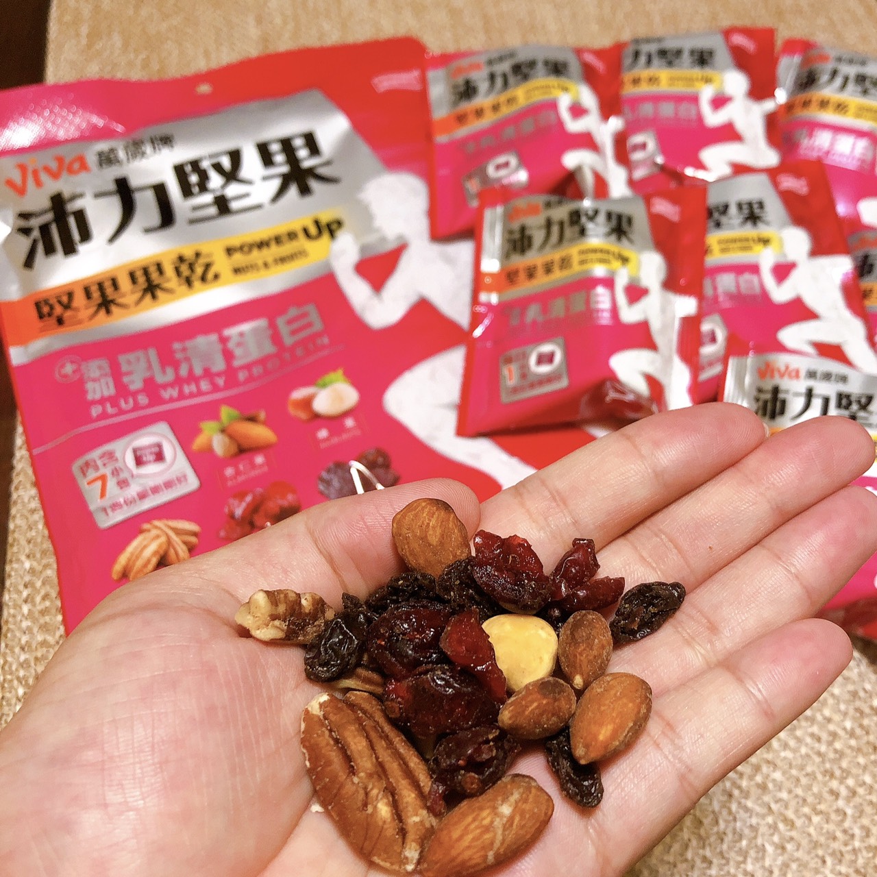 萬歲牌新推出的沛力堅果,添加果乾或者種子的成份,有多種營養素補充,此外,植物性蛋白及膳食纖維,能增加飽足感,促進腸道蠕動,加了乳清蛋白的沛力堅果,還能滿足日常運動後,所需的蛋白質,一包剛好的份量,讓你一次補充蛋白質+營養素,達到運動效果!