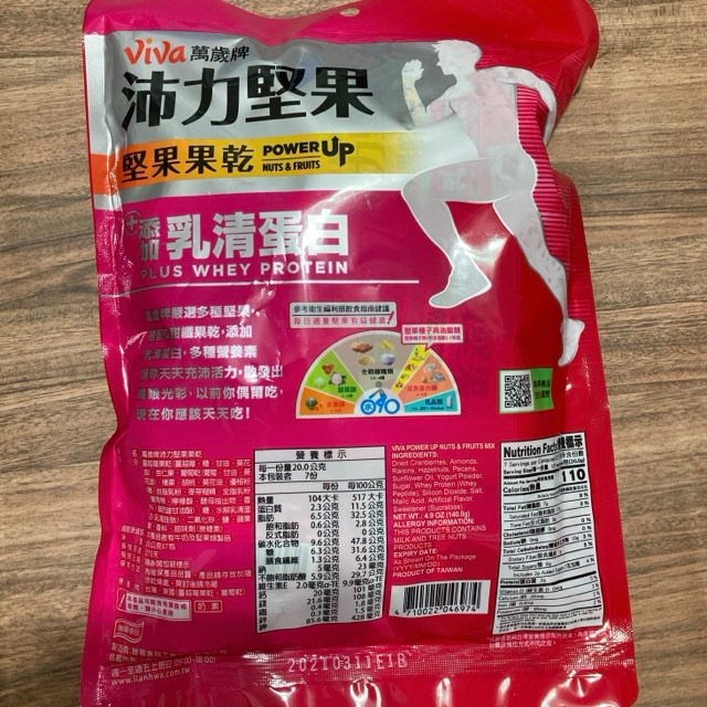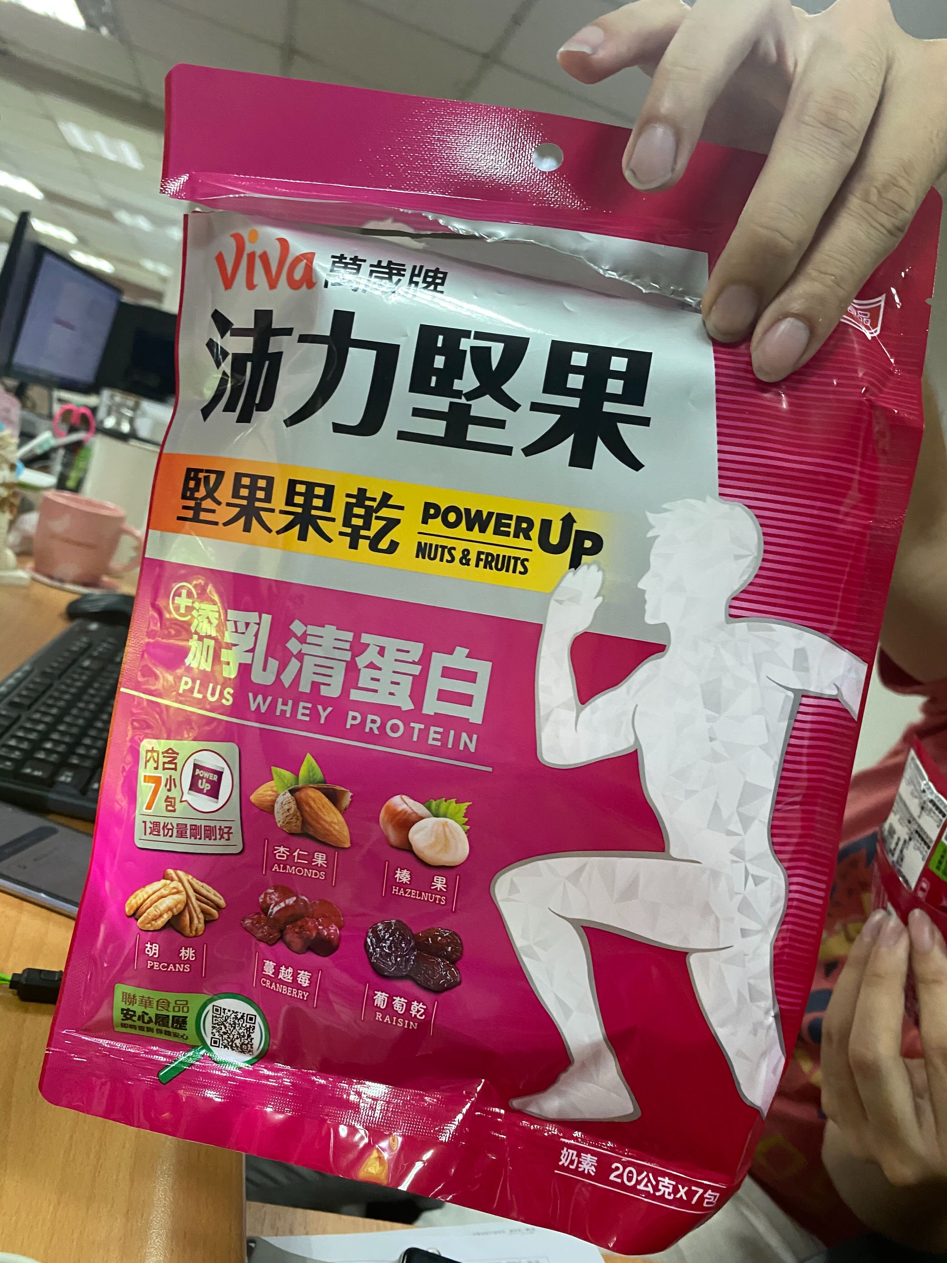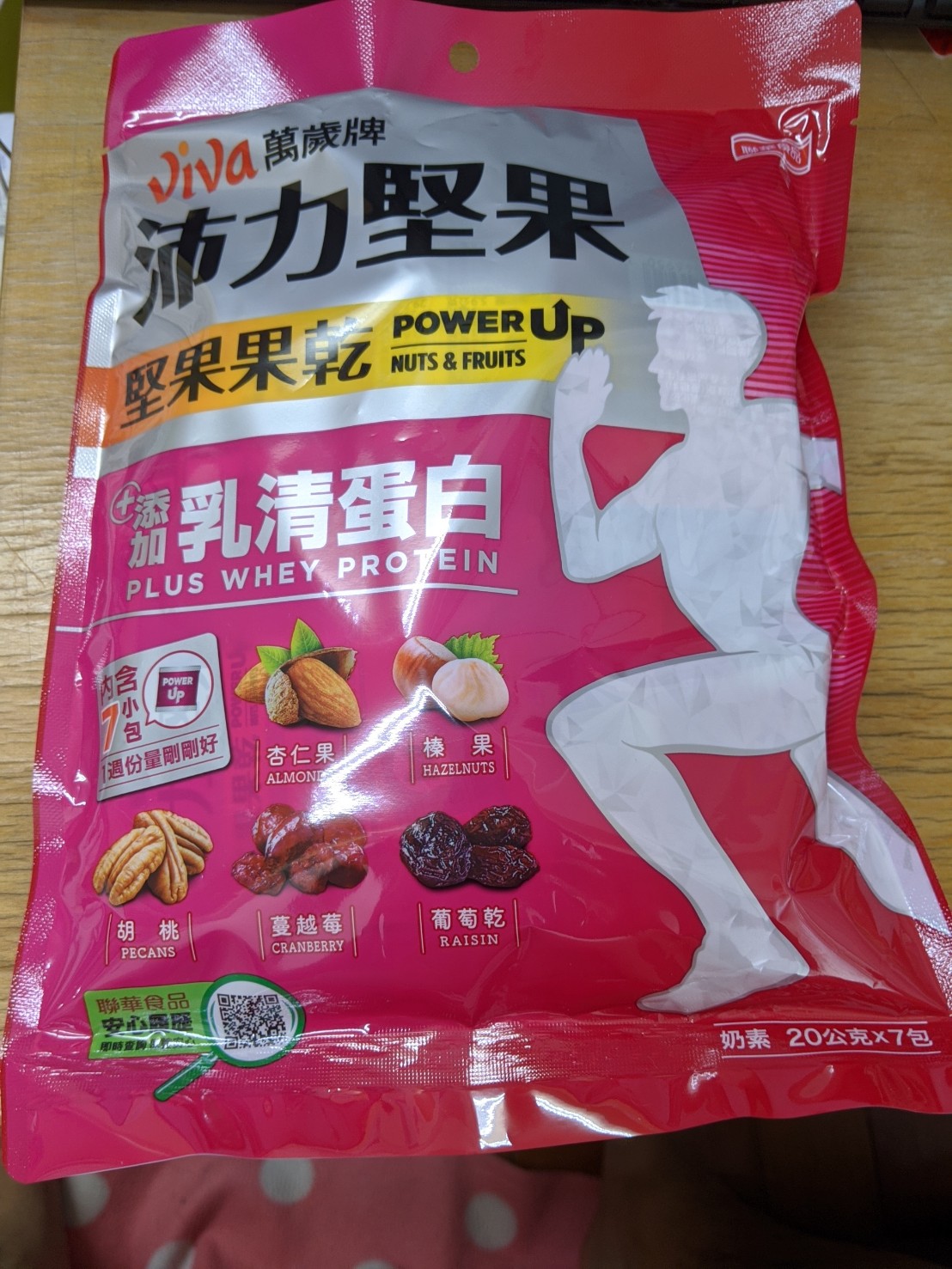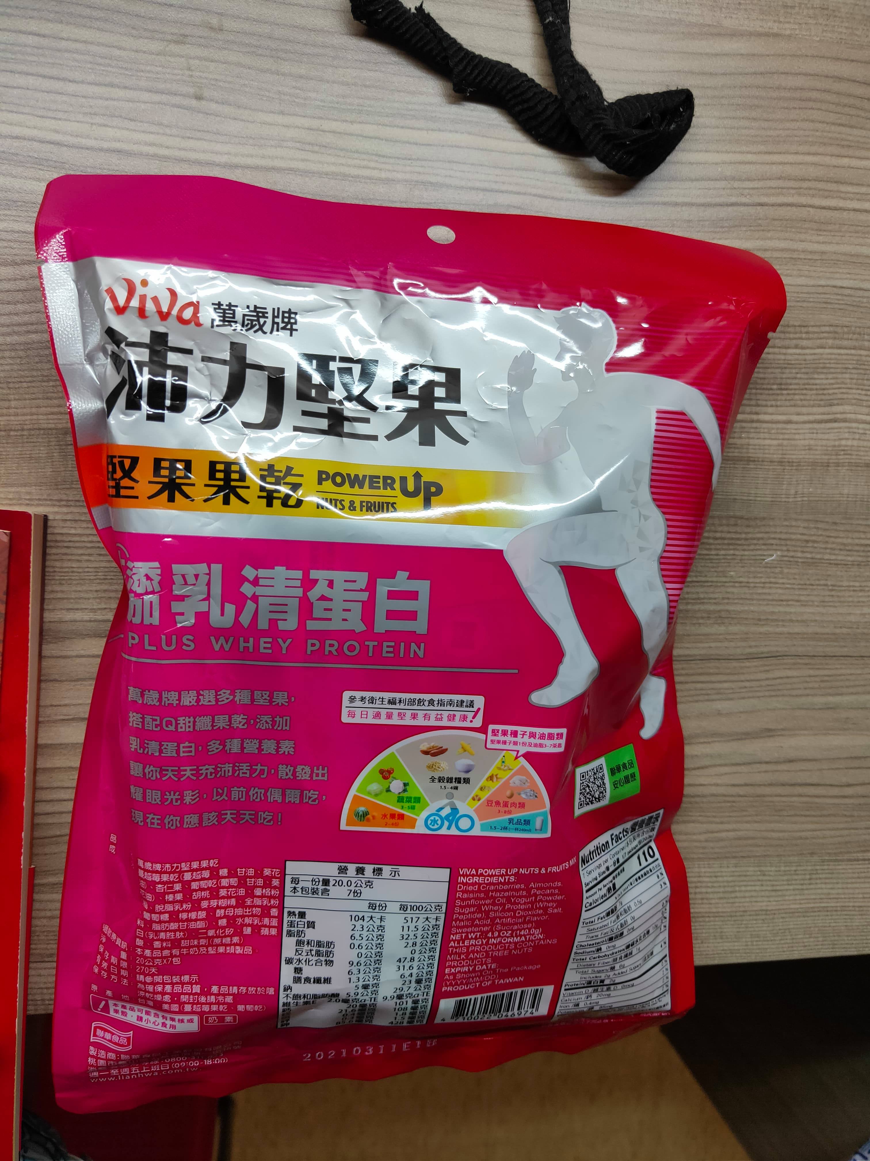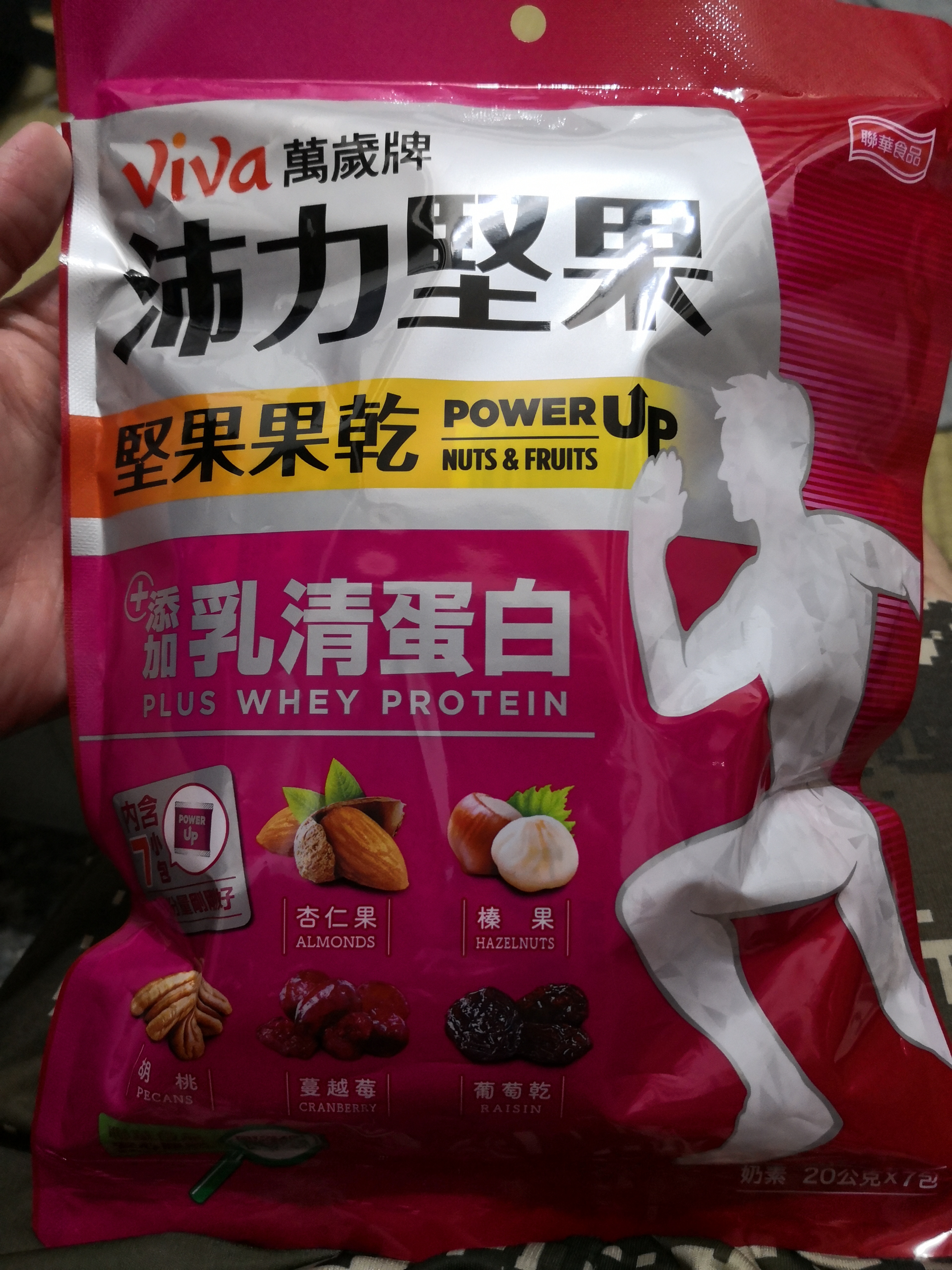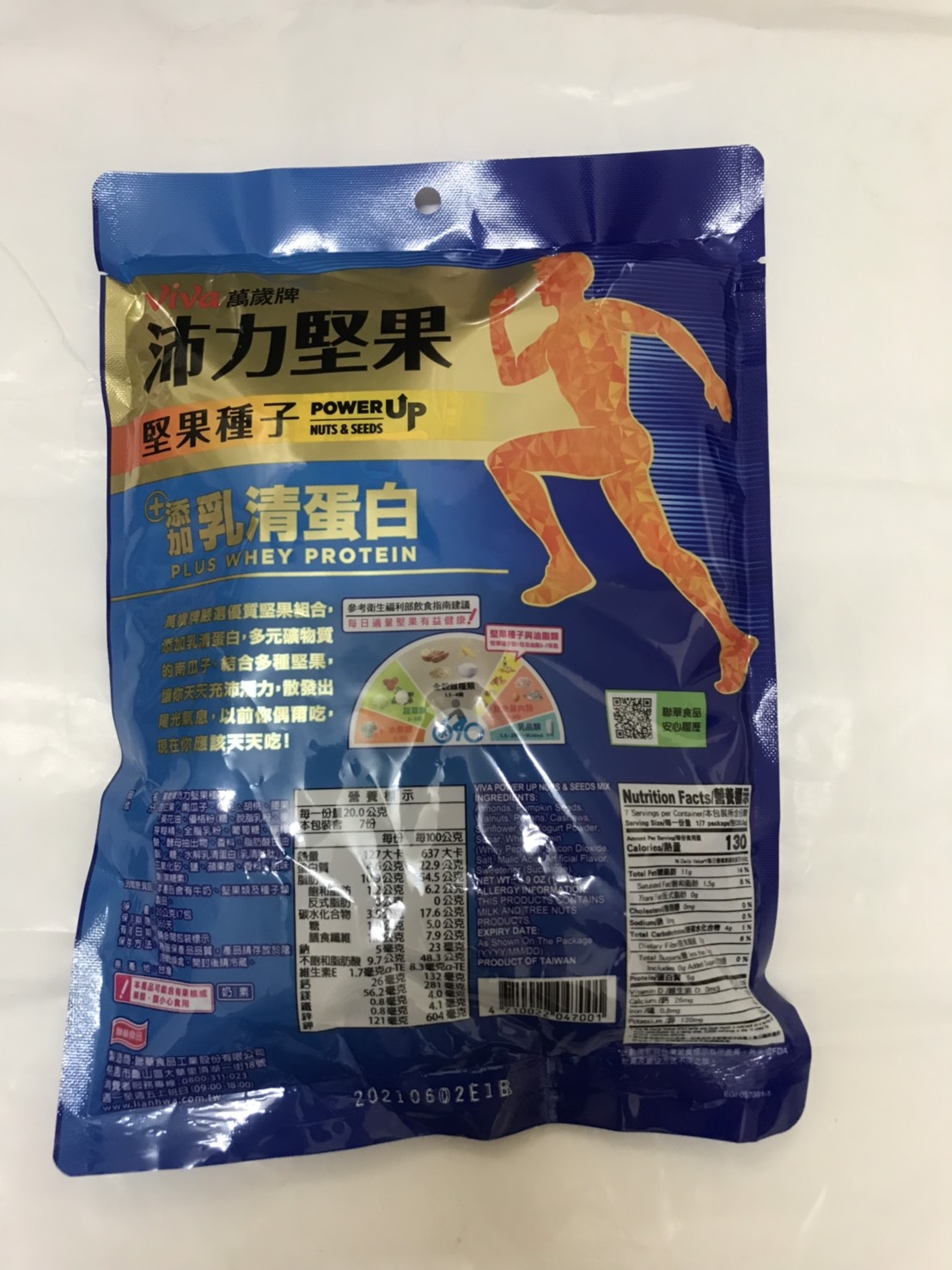萬歲牌新推出的沛力堅果,添加果乾或者種子的成份,有多種營養素補充,此外,植物性蛋白及膳食纖維,能增加飽足感,促進腸道蠕動,加了乳清蛋白的沛力堅果,還能滿足日常運動後,所需的蛋白質,一包剛好的份量,讓你一次補充蛋白質+營養素,達到運動效果!