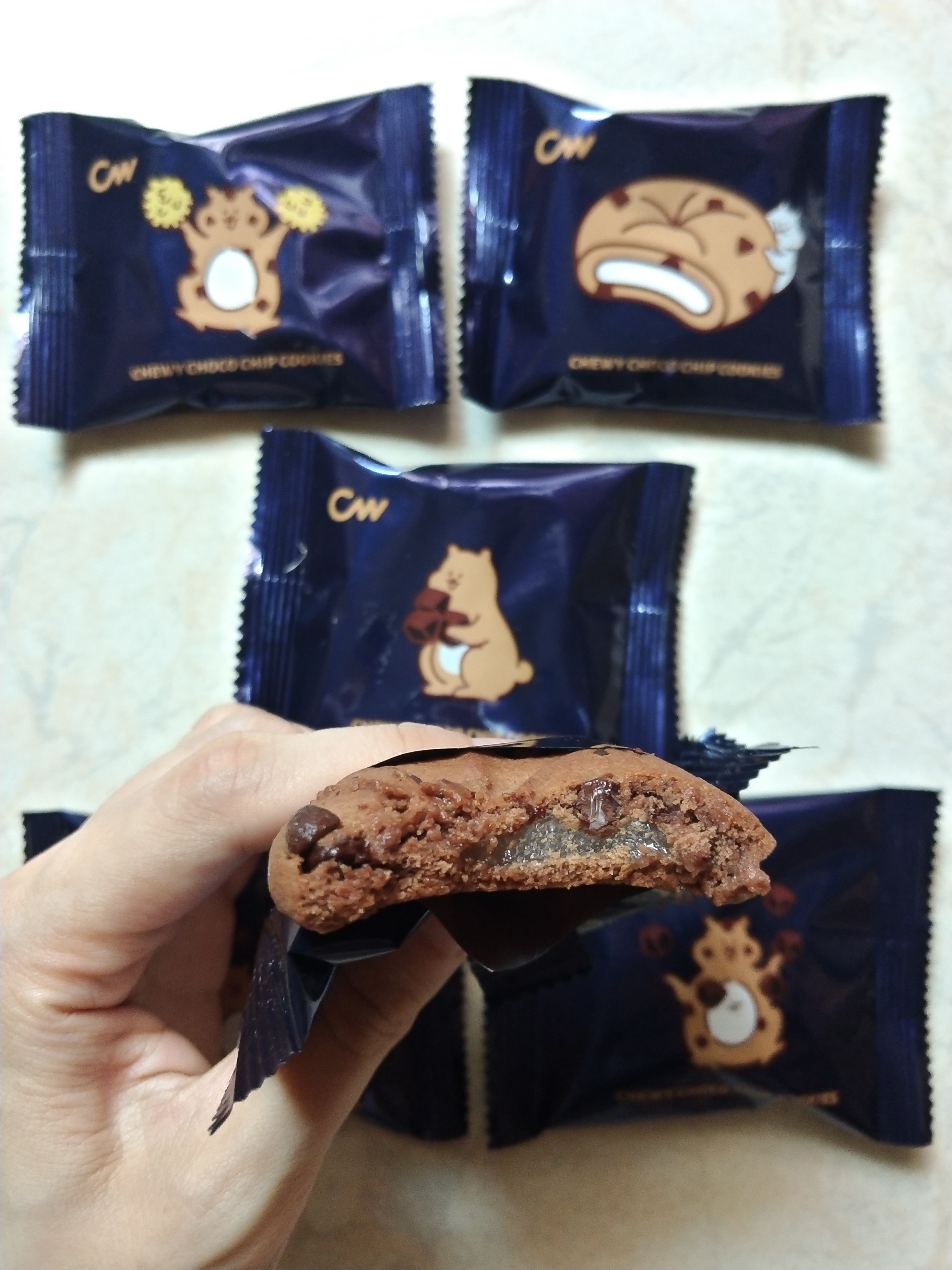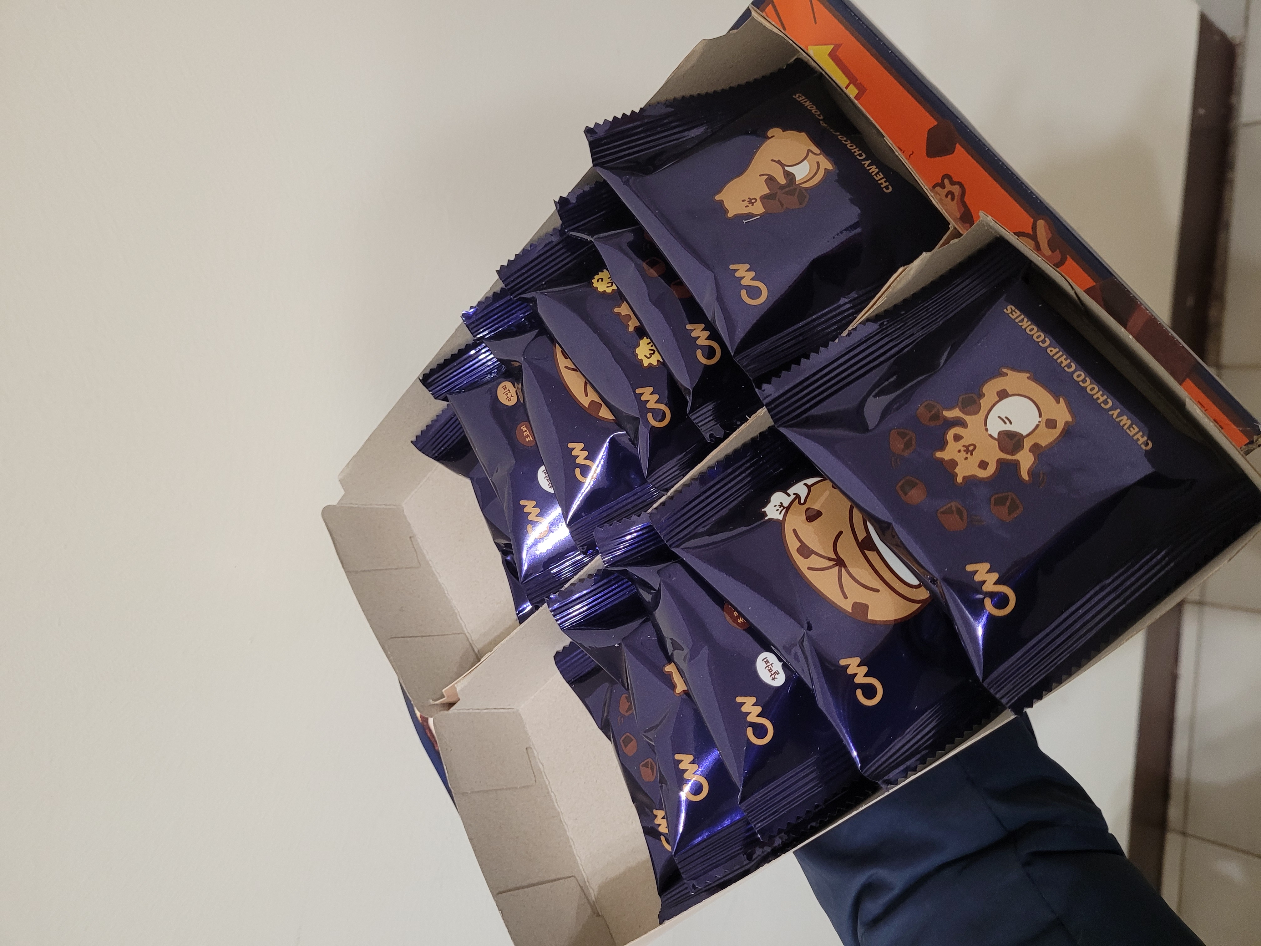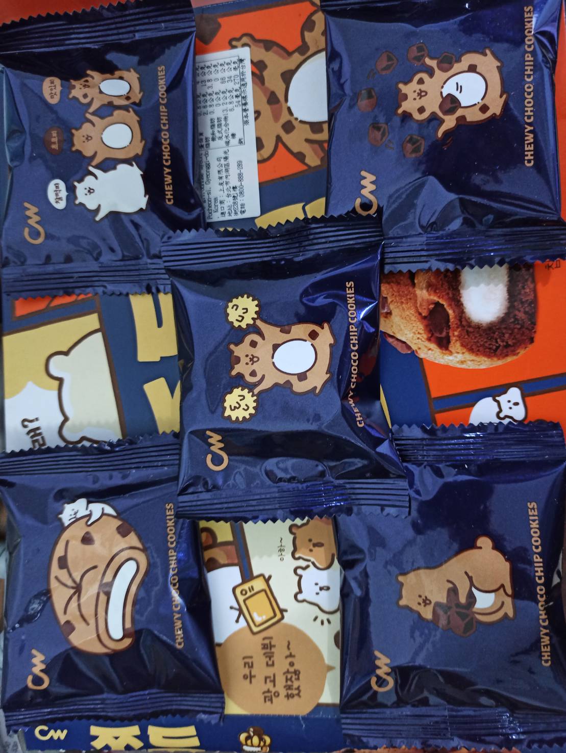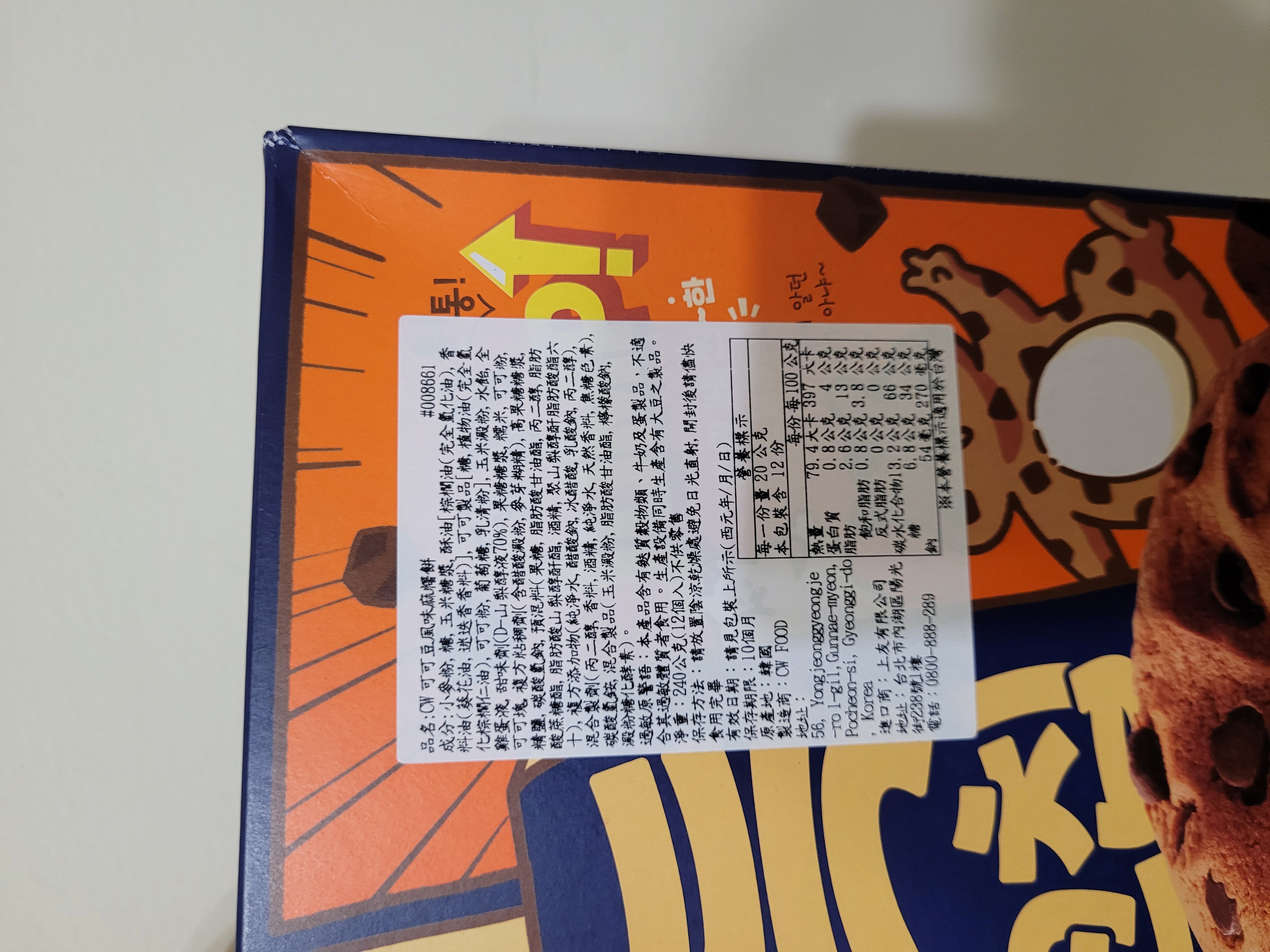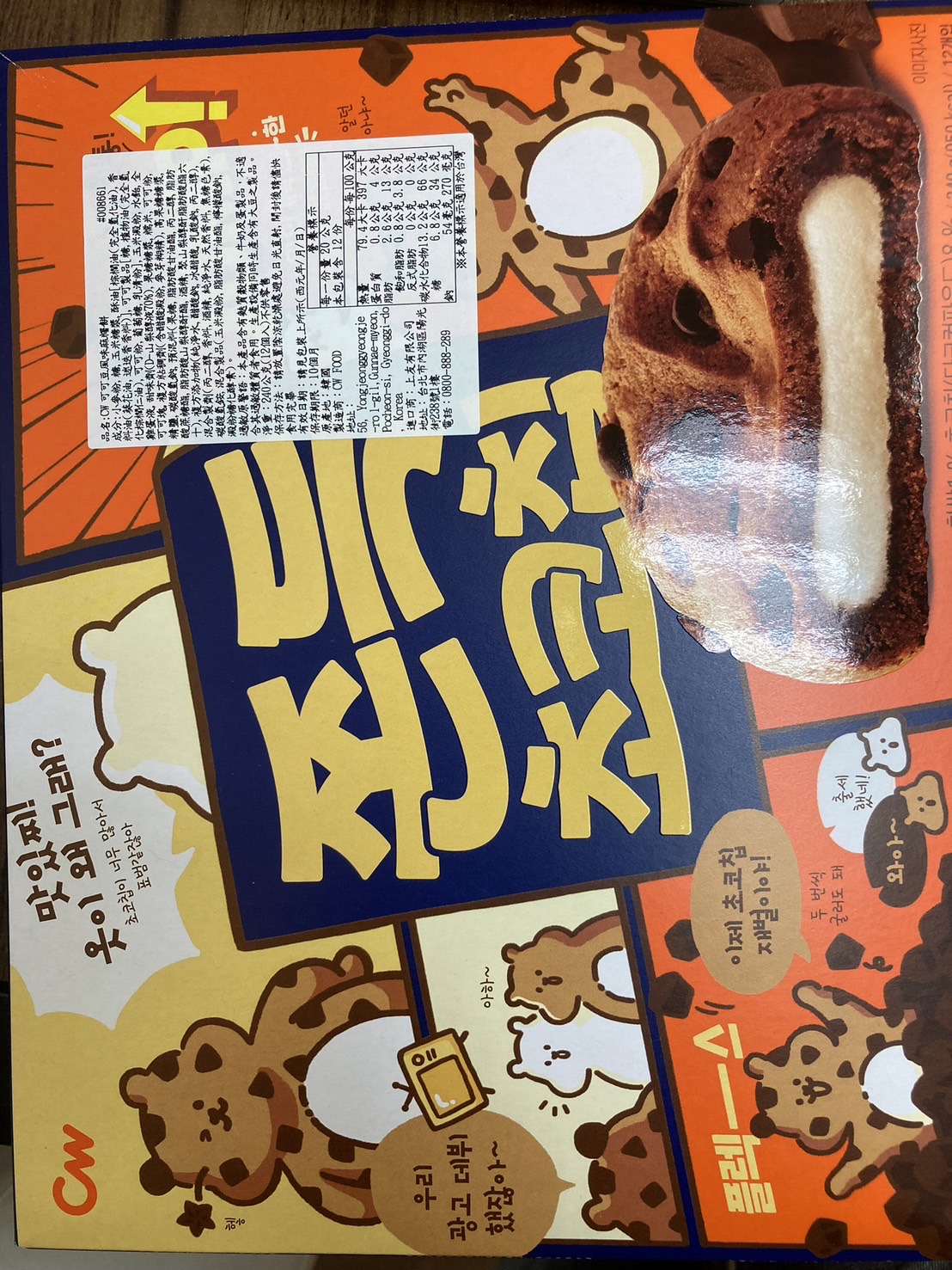 麵粉(小麥)、糖、玉米糖漿、酥油(棕櫚油、香料油(葵花油、迷迭香香料))、可可製品(糖、植物油(棕櫚仁油)、可可粉、葡萄糖、乳清粉)、玉米澱粉、水飴、全雞蛋液、甜味劑(山梨糖醇)、果糖糖漿、可可粉、糯米、粘稠劑(含醋酸澱粉、麥芽糊精)、海藻糖、可可塊、精鹽、碳酸氫鈉、複方添加物(含醋酸鈉、乳酸、乳酸鈉、丙二醇、純淨水)、預混料(純淨水、果糖、脂肪酸甘油酯、丙二醇、脂肪酸蔗糖酯、脂肪酸山梨醇酐酯、酒精、聚山梨醇酐脂肪酸酯六十)、香草香料、碳酸氫銨、混合製品(玉米澱粉、脂肪酸甘油酯、檸檬酸鈉、麥芽糖澱粉酵素)
