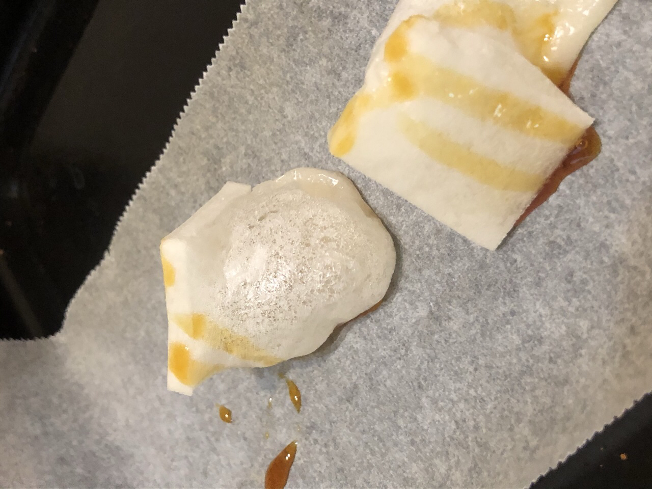 保存過程中會因溫度變化而產生水氣,產品內些許黑色或茶色顆粒為糯米的胚芽,兩者均屬正常現象,請安心食用。