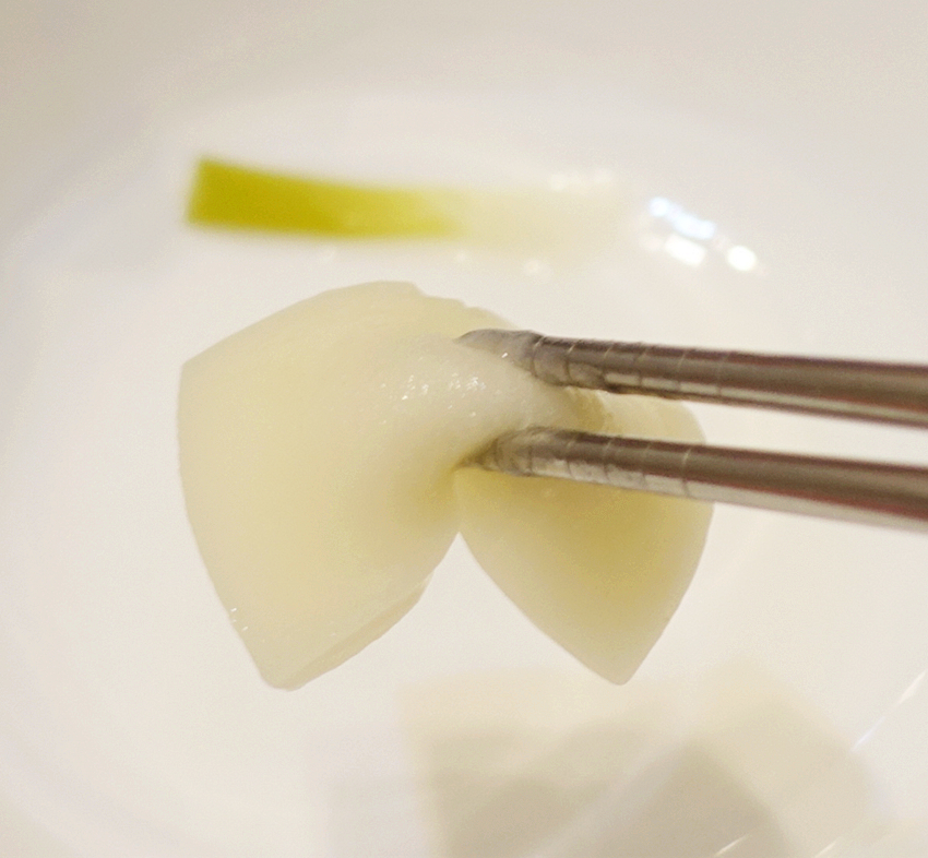 放入滾熟的熱水3分,即可食用,可搭配著其他湯類及麵類,增加口感。