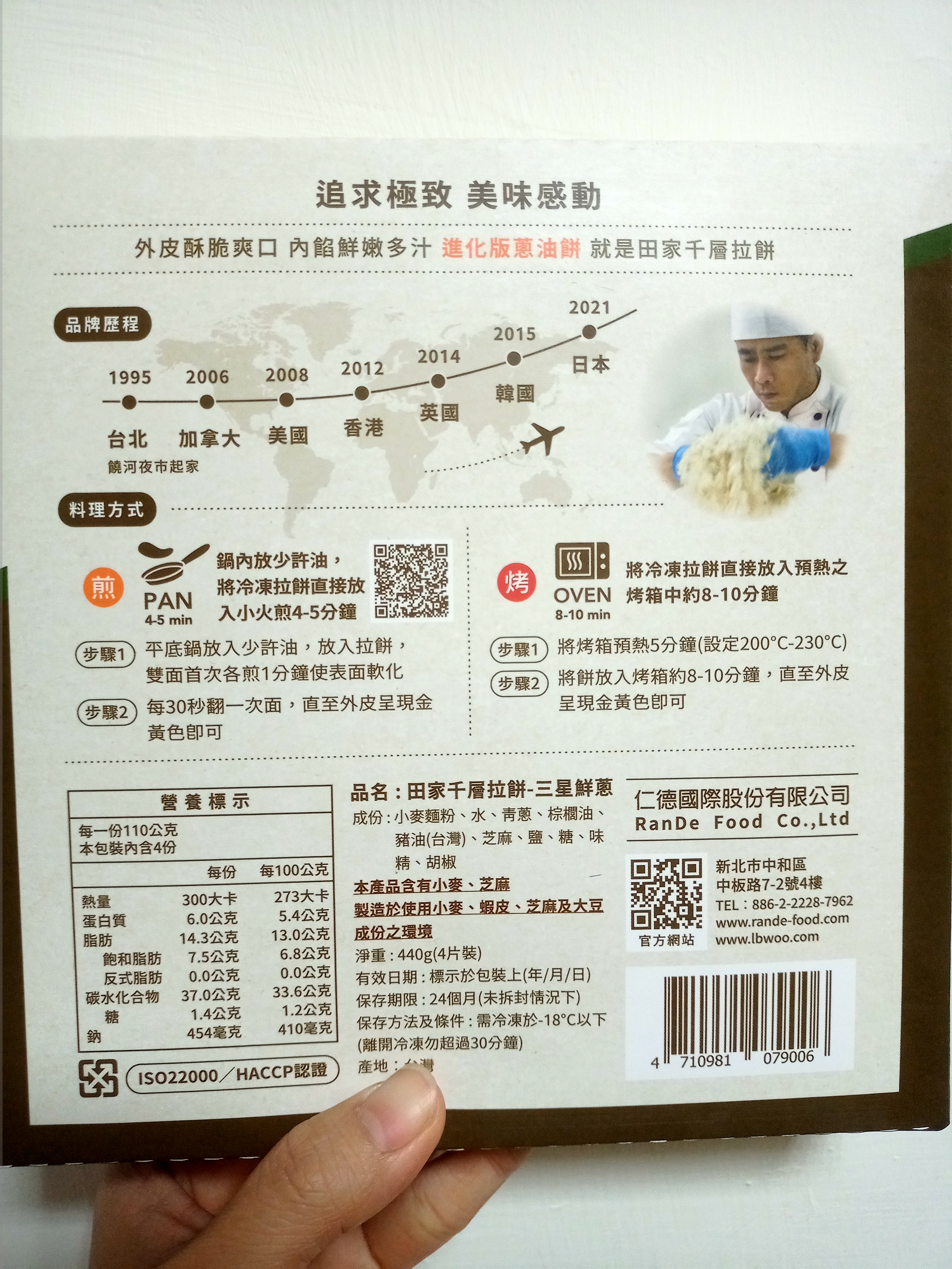 回列表 田家 千層拉餅 全新進化版的蔥油餅 市價150元 所需等級 一般會員以上 所需學分 30 體驗份數 50 關注人數 2116 申請人數 432 申請截止 品牌業者:田家拉餅 負責廠商 仁德國際股份有限公司 廠商地址 新北市中和區中板路7-2號4樓 產地 台灣 試用產品規格 440g / 4片裝 食品業者登錄字號 F-112910736-0006-8 投保產品責任險字號 富邦產險-0525-20APD0000039 心得分享 商品介紹 商品成分 使用方法 注意事項 體驗名單 8.5 田家 千層拉餅 包裝美學 8.5 蔥香濃郁 8.5 餅皮香酥 8.5 加熱便利 8.5 建議推薦 8.5 心得分享 47則 Tisha Hsiu 鑽石達人 32歲 臺北市 2022/03/12 對田家 千層拉餅留下評價 9 【包裝與內容物】:外包裝為盒裝,較不易被擠壓變形,內包裝則是一次性塑膠袋封裝。一盒共裝四片,每片約手掌撐開大小,還沒烘烤前厚度約0.5mm,烘烤後可以膨脹到2cm。【試吃體驗心得】:蔥油餅從冰箱冷凍拿出來可直接加熱相當方便,有煎與烤兩種加熱方式,這次是使用烤箱預熱五分鐘後放入加熱十分鐘,適合懶人不用顧爐。烤完後酥餅相當酥脆,表面有白芝麻粒增添風味,裡面的蔥餡比一般市售的蔥多,手撕開能看到拉餅的層次相當豐富,口味鹹度不會太重,唯一要說小缺點的話就是些許偏油,建議加熱完可以先用廚房紙巾吸掉部分油。分享給身邊朋友是吃也都一致好評,加熱方便又口味不錯,會有回購的意願! Ming Ou 鑽石達人 34歲 高雄市 2022/03/10 對田家 千層拉餅留下評價 8 加入少許油將拉餅煎至兩面金黃色後即起鍋準備享用。餅皮焦香酥脆,加點胡椒粉或胡椒鹽口味更佳,如同蔥油餅一般可口。餡料份量不夠飽滿有點可惜,用手撕開拉餅食用口感更像烙餅,拉餅味道鹹香十足,十分適合當嘴饞時的點心。 何建昌 金食達人 40歲 屏東縣 2022/03/11 對田家 千層拉餅留下評價 8 這次的田家千層拉餅跟外面的蔥油餅、蔥抓餅相較之下比較小巧一點,適合當下午茶、宵夜,不太餓又想吃東西時,可以簡單煎個拉餅來吃。拉餅裡面的蔥跟外包裝相較之下有點落差。口感香酥,就像名字千層拉餅一樣,一層一層的吃起來很有層次感,蔥味道也很香,穿插在拉餅中,薄薄的很好吃。這次的田家千層拉餅,口味香酥蔥味也夠,但外包裝的蔥量跟拉餅本身的不符合可能會讓消費者覺得失望。個人的小小見解。 余曉雯 金食達人 44歲 臺南市 2022/03/09 對田家 千層拉餅留下評價 9 這次試吃的是田家千層拉餅 打開包裝看到餅 尺寸不算大 包裝的料理方式有煎和烤兩種 我是用煎的 因為餅的表面有芝麻 怕芝麻焦掉 我火開的很小 然後蓋蓋子 煎的過程 有時候餅會澎脹 煎好後先吃一口原味 然後打算沾醬油膏 發現不用 味道已經夠 外酥內軟 真的很好吃 蔥看起來也很多 會讓人想購買 廖利珈 金食達人 28歲 臺中市 2022/03/09 對田家 千層拉餅留下評價 10 份量剛好,煎的時間不用很久,很快就熟了,蔥的香氣很足夠鹹度也剛好,並且會噴汁,千層的感覺是還好,但是值得回購的產品,結論好吃,包裝也相當方便,一盒四入,剛好適合一家人食用,盒子的設計也不錯,有可以方便撕開的位置,成分也單純,幾乎沒有額外添加物。 陳怡雲 金食達人 51歲 苗栗縣 2022/03/09 對田家 千層拉餅留下評價 8 從黑貓大哥手中收下包裹,拆開包裝即可看到食驗室商品--三星鮮蔥千層拉餅,食驗前,先認真閱讀盒外烹調說明,按著說明烹調,小小的蔥餅逐漸膨漲起來,真的很奇妙,此時也表示,餅已經熟了!咬一口蔥餅,在咀嚼的過程中,蔥的香氣與鮮甜在口中不斷湧出,這是對青蔥有一定認識的人,才能吃出來的味道,餅的鹹度適中,無須再添加佐料,有可能是我吃太快了,無法體會到餅皮的特質! CHIA 金食達人 28歲 桃園市 2022/03/09 對田家 千層拉餅留下評價 7 一個包裝有四片,售價150,平均一片37.5元偏貴,比市售冷凍蔥油餅體積小。"千層"還蠻驚豔的,增加口感,皮也很Q。不過照片的蔥餡與實際吃到的量不符,差很多,蠻失望的。調味的剛剛好,不會太鹹或是胡椒太辣,老人小孩皆適宜。也可以加顆蛋變抓餅,不錯吃,推推。 胡家菁 金食達人 50歲 高雄市 2022/03/10 對田家 千層拉餅留下評價 8 打開包裝,拿出兩片準備下鍋煎熟,上下兩層塑膠袋防油膩,防沾手,非常方便.在炒鍋中加了少許食用油,待鍋熱後,下鍋小火煎熟,約5-8分鐘即可起鍋. 煎餅時,香氣並不十分明顯,而且餅皮中本身含的油脂釋出,顯得有些油膩. 煎熟後起鍋食用,口感也顯得較為濕軟,可能是因為內餡中的蔥花釋出的水分吧!如果可以更酥脆,口感會更好 林杰 鑽石達人 36歲 臺北市 2022/03/10 對田家 千層拉餅留下評價 7 蔥抓餅的成分比較其他市面上的蔥抓餅單純很多,沒有多餘的添加物,吃起來也比較安心,使用家裡的電烤盤簡單加熱,口感也不差,油量適中,唯一美中不足的地方是蔥的比例不夠,不過整體而言,平常想吃點心是不錯的選擇。 洪桂芳 金食達人 74歲 高雄市 2022/03/11 對田家 千層拉餅留下評價 9 一袋裡有4片,每片小小的,不會很大片,外袋背面的說明表示有2種烹飪方式:煎或是烤;用油煎來吃非常好吃,皮很薄,三星蔥很香,內餡已有調味,有一點點油,僅供對平時飲食清淡的人來說是稍微鹹了一點,但還是很好吃😋,感覺甚至比礁溪當地的蔥油餅更好吃,雖然想用烤的烹調方式吃吃看,但剛好烤箱故障無法使用,而且因為家人太喜歡一下子就把4片吃光光,無法留下來試試看烤的方式好不好吃,真心推薦,有機會會回購。 劉超強 銀