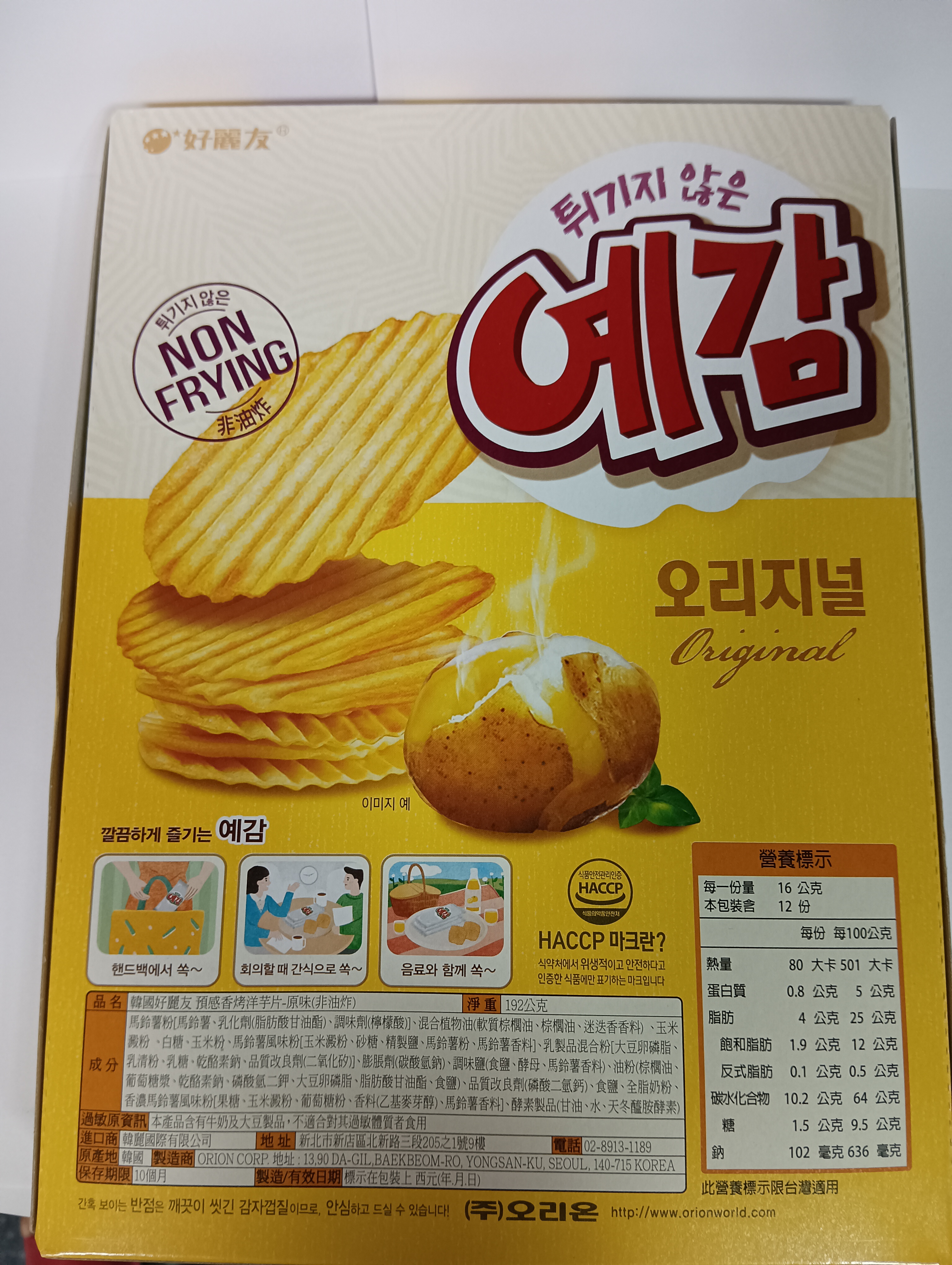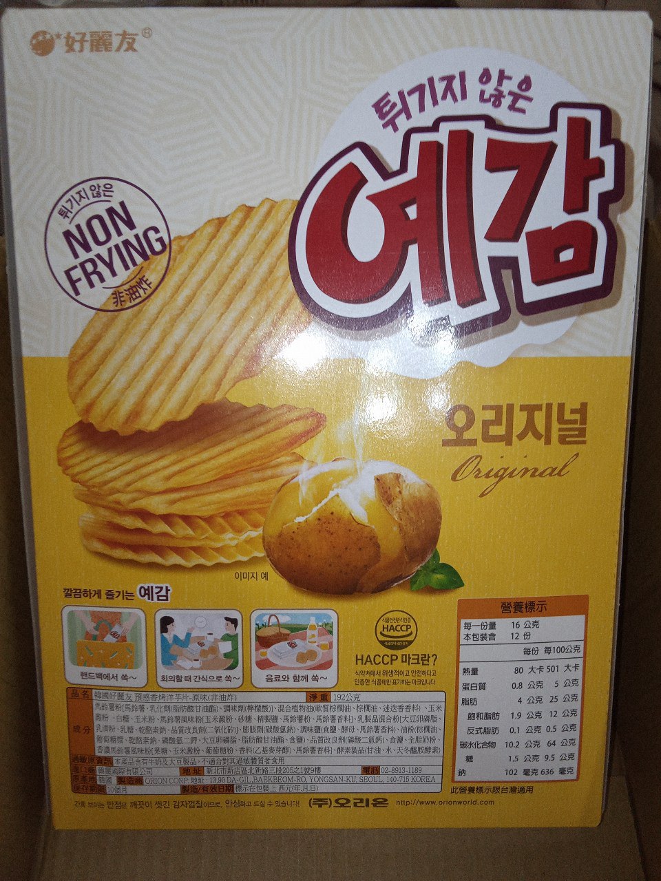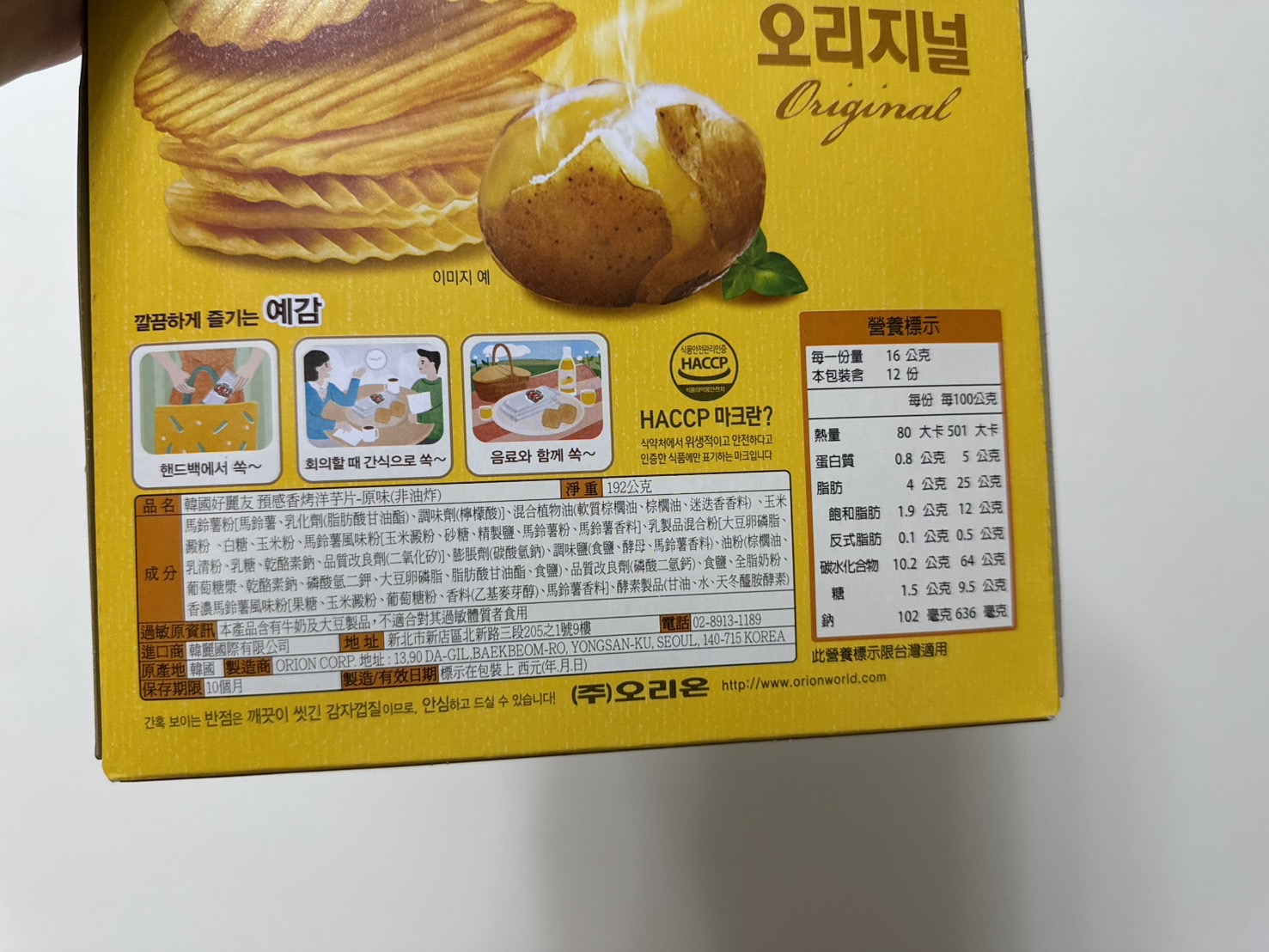 馬鈴薯粉、混合植物油、玉米澱粉 、白糖、玉米粉、馬鈴薯風味粉、乳製品混合粉、膨脹劑(碳酸氫鈉)、調味鹽 等