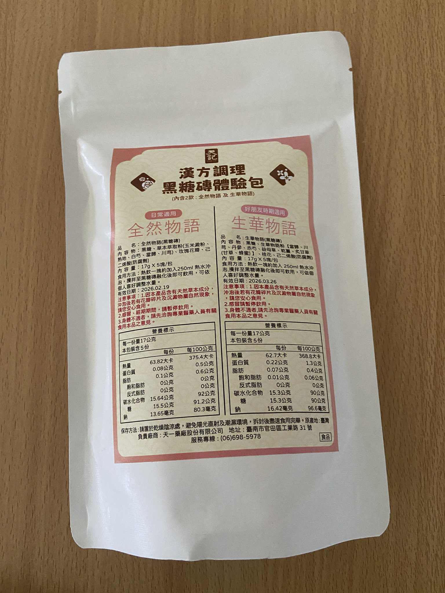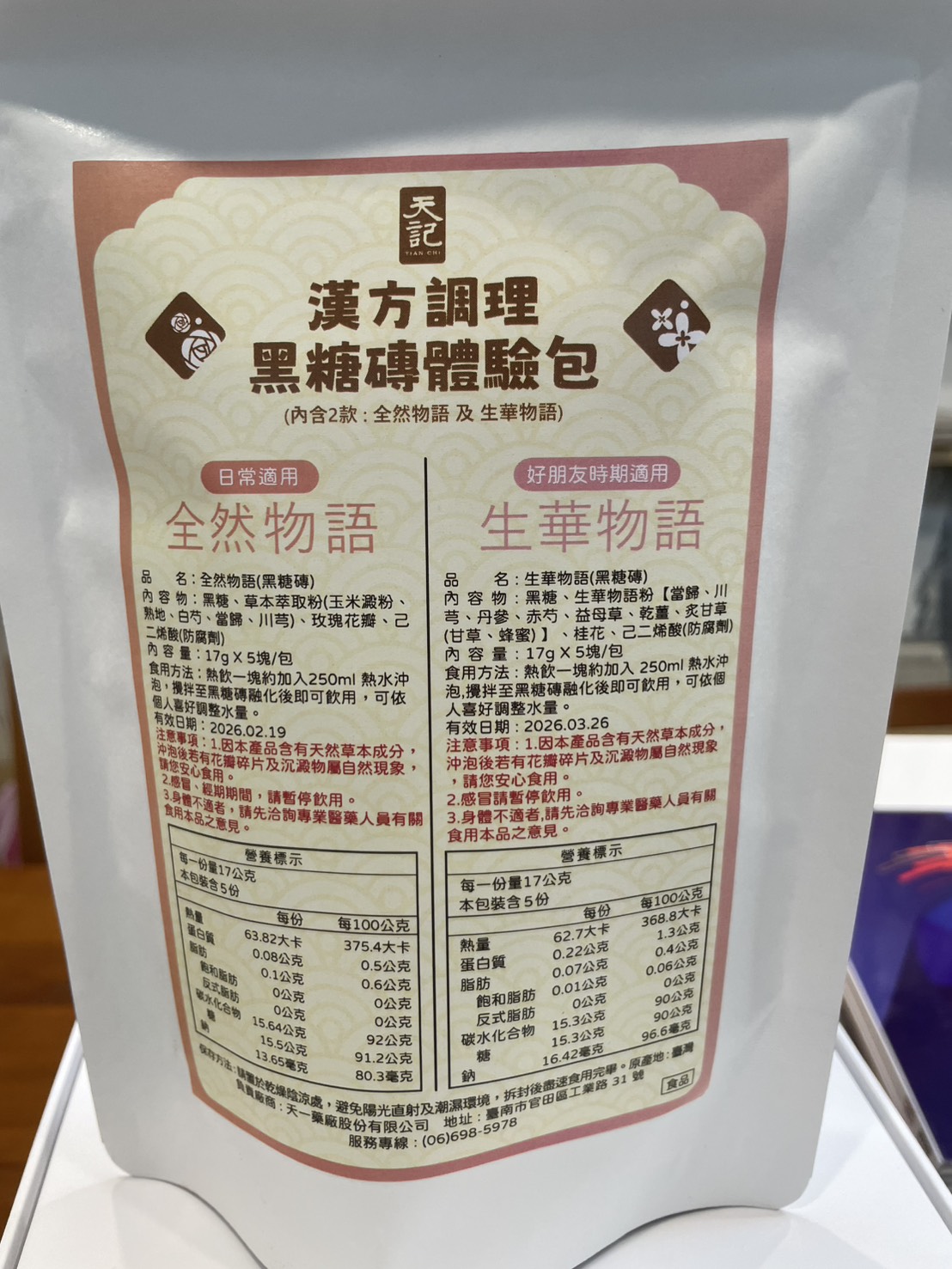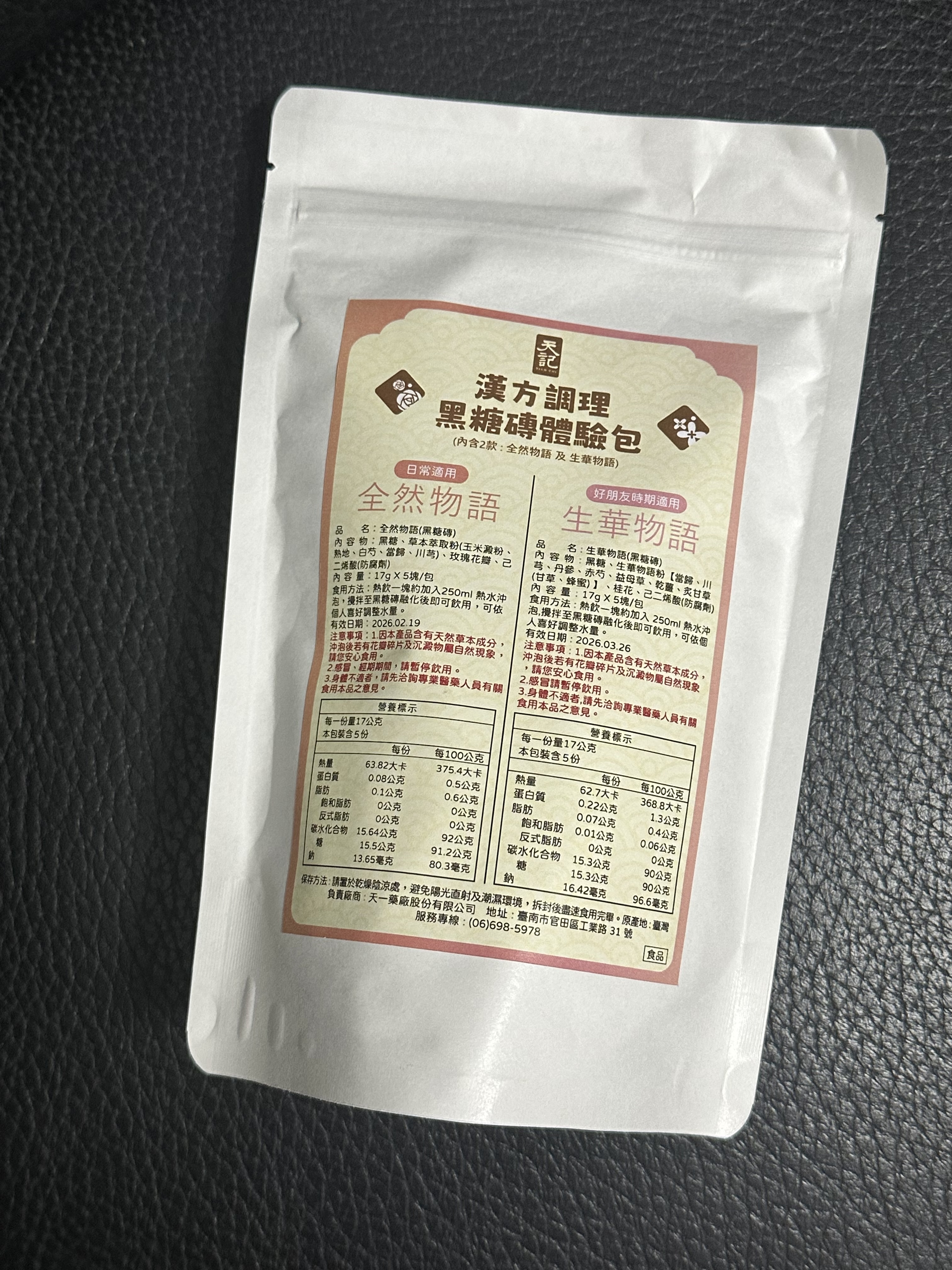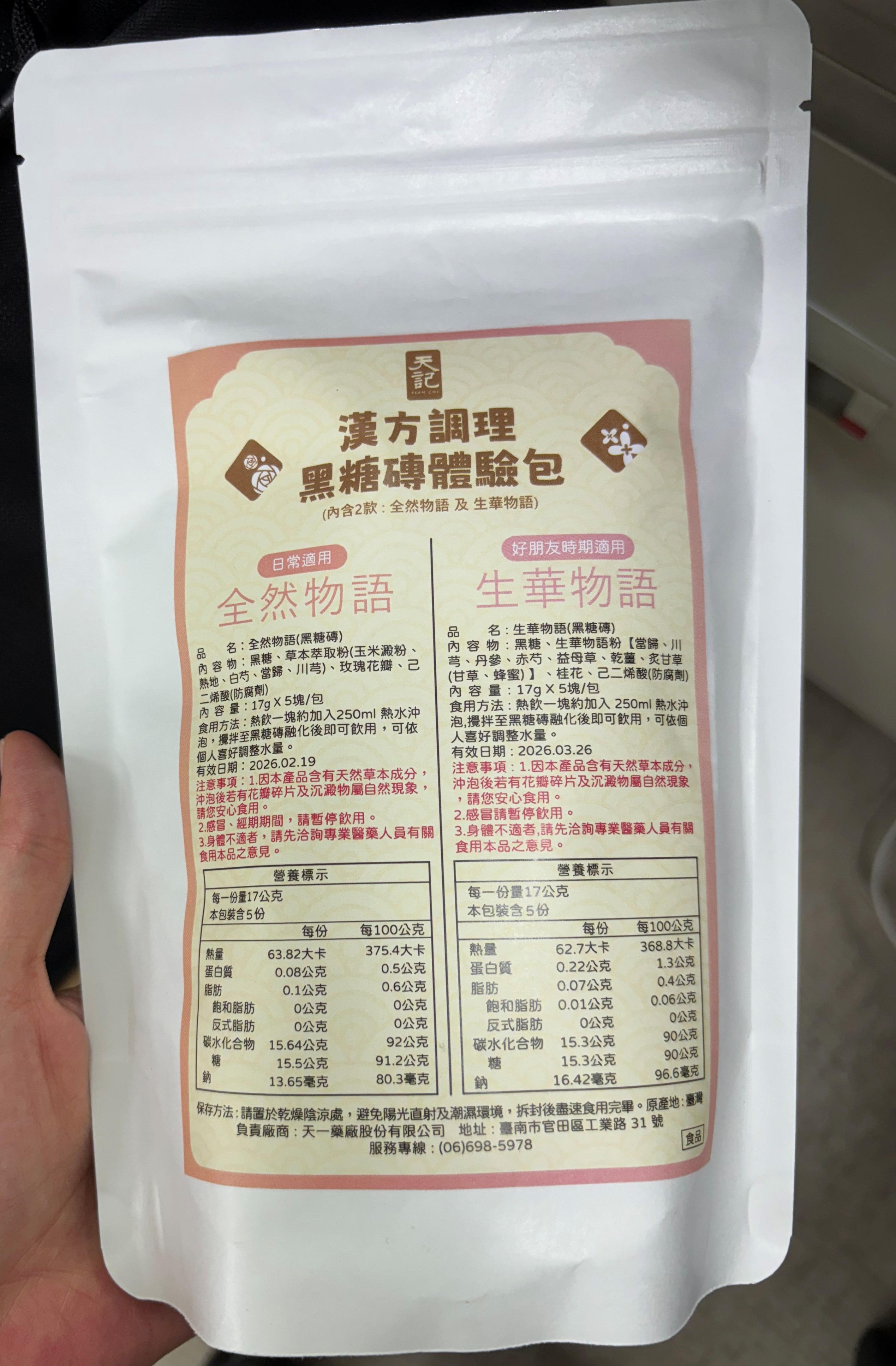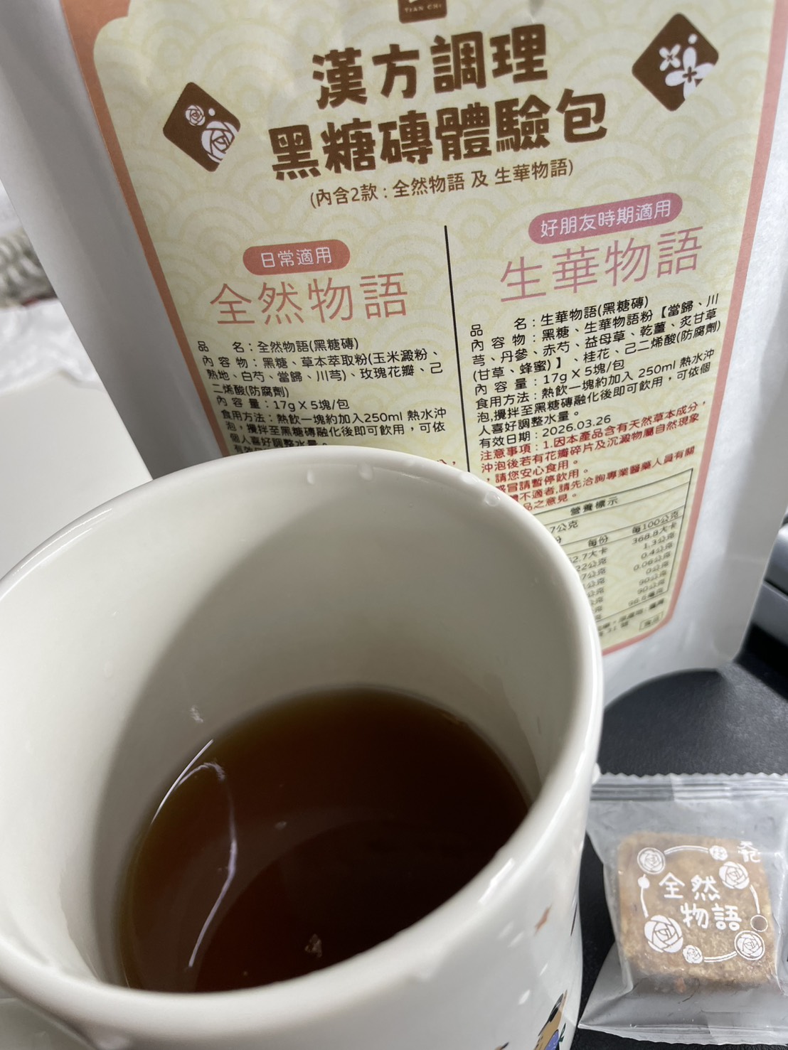 回列表 天記漢方調理黑糖磚系列|品出漢方黑糖的溫潤與平衡 300元/1份 所需等級 一般會員以上 所需學分 30 體驗份數 30 關注人數 2320 申請人數 213 申請截止 品牌業者:天一藥廠股份有限公司(天記) 負責廠商 天一藥廠股份有限公司 廠商地址 台南市官田區工業路31號 產地 臺灣 試用產品規格 17g*10塊(倆口味) 食品業者登錄字號 D-169811927-00000-5 投保產品責任險字號 130713AKP0001070 心得分享 商品介紹 商品成分 使用方法 注意事項 體驗名單 9.2 漢方調理黑糖磚|生華物語、全然物語 健康感受 9.2 沖泡便利性 9.5 漢方香氣接受度 9.2 風味層次 9.1 建議推薦 8.9 心得分享 29則 鄭素娟 鑽石達人 46歲 新北市 2025/07/24 對漢方調理黑糖磚|生華物語、全然物語留下評價 10 今天收到食力寄來的天記黑糖磚體驗包,便迫不及待的把它打開,這包裝也未免太高級了吧!裡面很貼心的,用兩包夾鏈袋裝著不同的口味,分別是可日常使用的全然物語及好朋友時期適用的生華物語。打開全然物語,按照指示說明,我用250co的熱水泡開,輕攪幾下黑糖磚塊便融化開了,上面還漂浮著攻瑰花瓣呢!輕輕啜飲一小口,濃厚的漢方味道瀰漫在口中, 原來這和一般的黑糖磚塊很不一樣,是調理身體用的,是我從未體驗過的味道,我再加入幾匙的奶粉,就變成我最喜歡的黑糖牛奶口味,冷藏後就是最消暑的飲料了。黑糖含有豐富的礦物質,能補充人體所需的營養,黑糖的甜份,能促使分泌腦中多巴胺,產生愉悅感,身為黑糖控的我,嚐遍了各種黑糖口味的美食,而天記研發的漢方調理黑糖磚不但能補充女性常流失的鐵質,更可調理身體,讓氣色更紅潤,大家不妨嘗試一下。 林嬙薇 銀食達人 35歲 桃園市 2025/07/24 對漢方調理黑糖磚|生華物語、全然物語留下評價 10 這次很開心能體驗天記漢方調理黑糖磚系列,讓我在繁忙生活中也能輕鬆照顧自己的體質。黑糖一直是女人們在每個月特殊時期的好夥伴,搭配漢方草本更是加乘效果。「全然物語」選用熟地、白芍、當歸等溫和草本,適合日常保養飲用,幫助身體循環與調理;「生華物語」則富含當歸、益母草、丹參等成分,特別適合在生理期間飲用,給予身體更多溫暖與舒緩。兩款皆以黑糖為基底,甜而不膩,簡單沖泡即香氣撲鼻,入口暖心暖胃。無論是日常保健或經期調理,都能感受到漢方與黑糖交織出的細緻與溫柔,是現代女性呵護自我的貼心選擇。 yoyo 金食達人 34歲 臺北市 2025/07/24 對漢方調理黑糖磚|生華物語、全然物語留下評價 9 包裝非常的討喜且用心,貼心的區分日常跟好朋友來時的區分,天記漢方調理黑糖磚,一塊塊獨立包裝的黑糖塊,喝起來很滑順可口,口感清爽,淡淡的黑糖味,搭配草本萃取粉味道不會太重淡淡的香味,一塊黑糖磚搭配250ml的水沖泡飲用,裡面還有肉眼可見的玫瑰花瓣點綴著並有著淡淡的玫瑰花香氣,這款是由中醫師團隊共同調配的,除了有日常保養時可飲用,另一款針對好朋友來時飲用,可以依照身體狀況搭配食用,非常方便又對身體好的一個飲品。 陳則源 金食達人 45歲 新北市 2025/07/25 對漢方調理黑糖磚|生華物語、全然物語留下評價 9 這次很高興能入選黑糖磚的試用,試吃包很有誠意給了兩種口味,包裝簡單但標示很詳細清楚,分成日常跟經期當中喝的不同,日常適用的全然物語,熱水沖泡時,只要稍微攪拌,很快黑糖磚就會融化,會有少許看起來像玫瑰花瓣的飄浮在水面上,後來看成分表才知道是玫瑰花瓣,不然一開始覺得像是蒜頭皮或是中藥材,但味道不明顯,整體喝起來的口感很溫潤,飽滿豐厚的感覺,味道微微甜,感覺很順口缺點就是內容物的標示當中,有寫到防腐劑,所以喝下去的時候,難免會覺得有點怕怕的 蔡依如 鑽石達人 46歲 臺北市 2025/07/25 對漢方調理黑糖磚|生華物語、全然物語留下評價 10 味道偏溫辛,生薑味道明顯,也有淡淡桂花味,入口後身體會快速升溫,有明顯的暖宮效果。對於經期來時腹部冰冷者很有幫助,有助於緩解不適與提升舒適感。女生月經來前後飲用特別有感,尤其在天冷或氣虛體寒者,會覺得非常舒服。 兩款都以黑糖為基底,融合中藥材與花材,達到暖身、調氣血的效果。 包裝與使用方式簡便,每包只需沖熱水即飲,適合日常補養與生理期調理。• 全然物語適合平常保養,生華物語則建議在生理期前後服用。• 若體質偏燥熱或糖分攝取需控制者,建議適量飲用。 葉純杏 鑽石達人 44歲 臺北市 2025/07/27 對漢方調理黑糖磚|生華物語、全然物語留下評價 10 白色包裝簡約,內有兩種口味各五塊,一種是日常飲用含有玫瑰的全然物語,另一種特別的是生理期適用調理的生華物語(很特別我在市面上沒有看過這種商品)。健康感受評分: 生華物語打開就聞到中藥材的香氣,像經過藥膳店湯滾時飄出來的氣味。生理期間喝感覺很健康。沖泡便利性評分: 黑糖磚熱水沖泡輕輕攪拌非常容易化開,甚至不用攪拌就蹦開了。熱水剛沖下去還有小氣泡。漢方香氣接受度評分:我很喜歡藥膳的香味所以產品的漢方香氣我很愛,但不愛的人可以會覺得濃。風味層次評分:生華物語含有多種中藥材整體條配風味很好喝。 小劉 鑽石達人 27歲 臺北市 2025/07/27 對漢方調理黑糖磚|生華物語、全然物語留下評價 7 很開心可以錄取成為天記漢方調理黑糖磚系列的試吃員,身為亞洲華人幾乎都有過喝黑糖飲的體驗,無論是冰的熱的,夏天冬天,都有機會透過不同管道接觸到