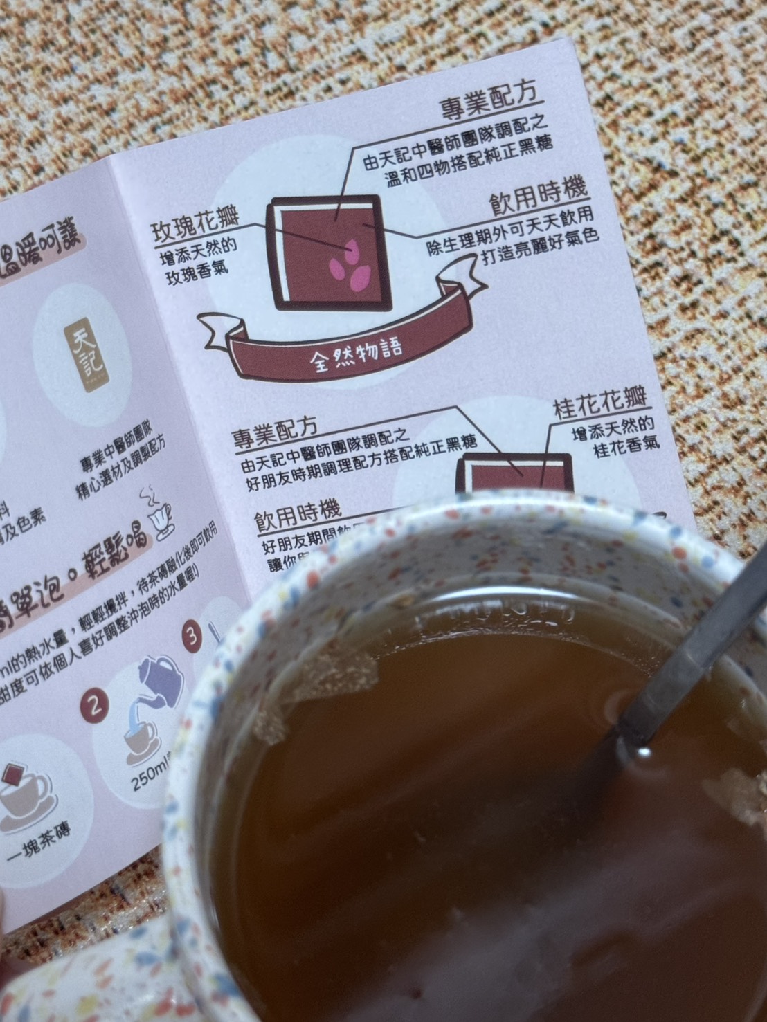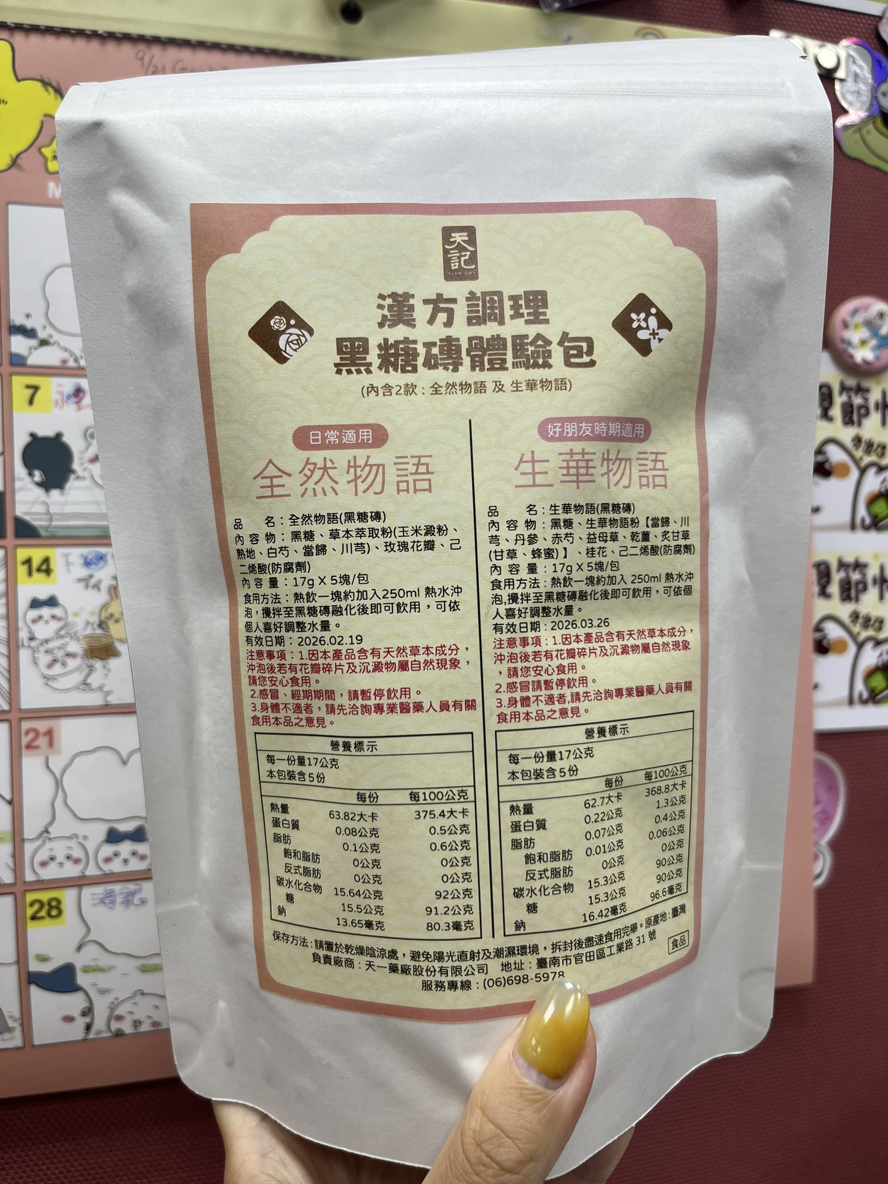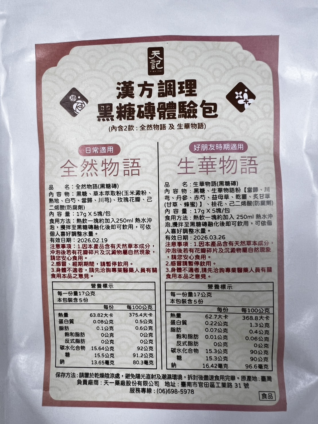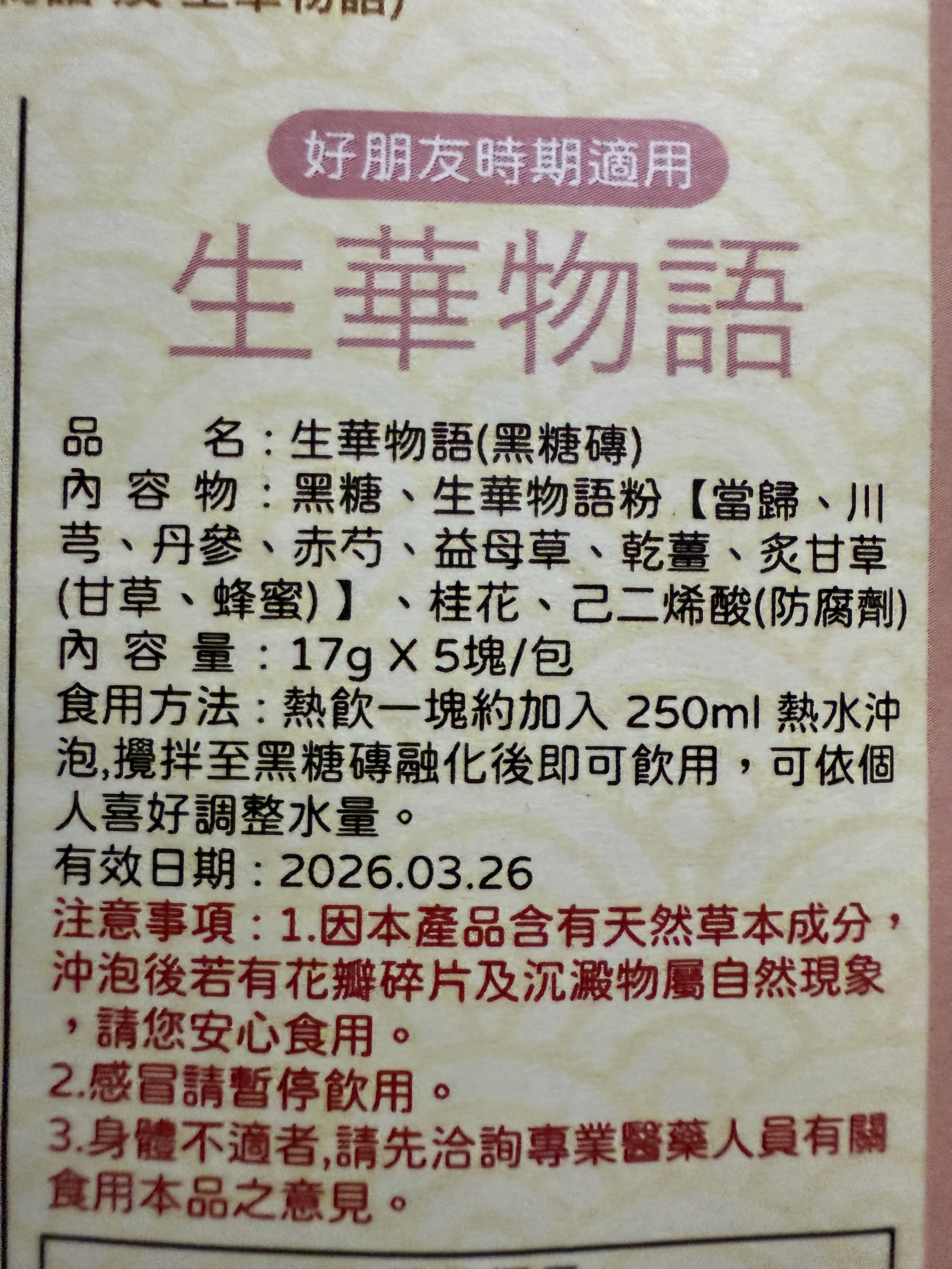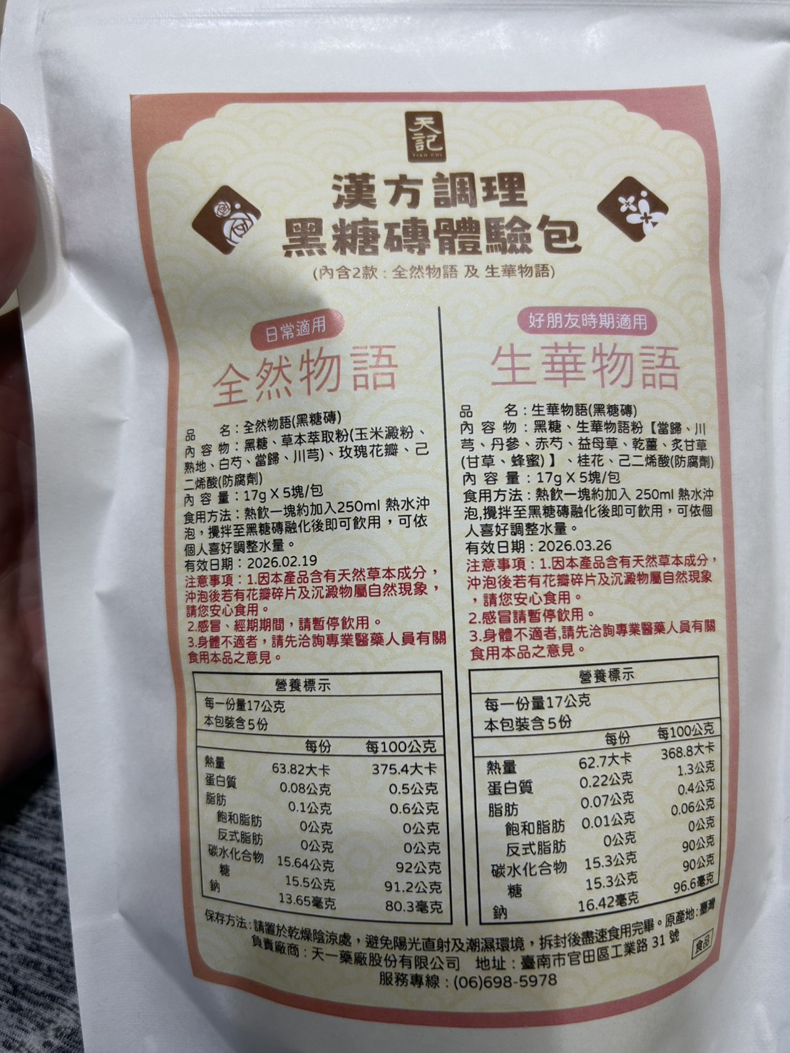 回列表 天記漢方調理黑糖磚系列|品出漢方黑糖的溫潤與平衡 300元/1份 所需等級 一般會員以上 所需學分 30 體驗份數 30 關注人數 2320 申請人數 213 申請截止 品牌業者:天一藥廠股份有限公司(天記) 負責廠商 天一藥廠股份有限公司 廠商地址 台南市官田區工業路31號 產地 臺灣 試用產品規格 17g*10塊(倆口味) 食品業者登錄字號 D-169811927-00000-5 投保產品責任險字號 130713AKP0001070 心得分享 商品介紹 商品成分 使用方法 注意事項 體驗名單 9.2 漢方調理黑糖磚|生華物語、全然物語 健康感受 9.2 沖泡便利性 9.5 漢方香氣接受度 9.2 風味層次 9.1 建議推薦 8.9 心得分享 29則 鄭素娟 鑽石達人 46歲 新北市 2025/07/24 對漢方調理黑糖磚|生華物語、全然物語留下評價 10 今天收到食力寄來的天記黑糖磚體驗包,便迫不及待的把它打開,這包裝也未免太高級了吧!裡面很貼心的,用兩包夾鏈袋裝著不同的口味,分別是可日常使用的全然物語及好朋友時期適用的生華物語。打開全然物語,按照指示說明,我用250co的熱水泡開,輕攪幾下黑糖磚塊便融化開了,上面還漂浮著攻瑰花瓣呢!輕輕啜飲一小口,濃厚的漢方味道瀰漫在口中, 原來這和一般的黑糖磚塊很不一樣,是調理身體用的,是我從未體驗過的味道,我再加入幾匙的奶粉,就變成我最喜歡的黑糖牛奶口味,冷藏後就是最消暑的飲料了。黑糖含有豐富的礦物質,能補充人體所需的營養,黑糖的甜份,能促使分泌腦中多巴胺,產生愉悅感,身為黑糖控的我,嚐遍了各種黑糖口味的美食,而天記研發的漢方調理黑糖磚不但能補充女性常流失的鐵質,更可調理身體,讓氣色更紅潤,大家不妨嘗試一下。 林嬙薇 銀食達人 35歲 桃園市 2025/07/24 對漢方調理黑糖磚|生華物語、全然物語留下評價 10 這次很開心能體驗天記漢方調理黑糖磚系列,讓我在繁忙生活中也能輕鬆照顧自己的體質。黑糖一直是女人們在每個月特殊時期的好夥伴,搭配漢方草本更是加乘效果。「全然物語」選用熟地、白芍、當歸等溫和草本,適合日常保養飲用,幫助身體循環與調理;「生華物語」則富含當歸、益母草、丹參等成分,特別適合在生理期間飲用,給予身體更多溫暖與舒緩。兩款皆以黑糖為基底,甜而不膩,簡單沖泡即香氣撲鼻,入口暖心暖胃。無論是日常保健或經期調理,都能感受到漢方與黑糖交織出的細緻與溫柔,是現代女性呵護自我的貼心選擇。 yoyo 金食達人 34歲 臺北市 2025/07/24 對漢方調理黑糖磚|生華物語、全然物語留下評價 9 包裝非常的討喜且用心,貼心的區分日常跟好朋友來時的區分,天記漢方調理黑糖磚,一塊塊獨立包裝的黑糖塊,喝起來很滑順可口,口感清爽,淡淡的黑糖味,搭配草本萃取粉味道不會太重淡淡的香味,一塊黑糖磚搭配250ml的水沖泡飲用,裡面還有肉眼可見的玫瑰花瓣點綴著並有著淡淡的玫瑰花香氣,這款是由中醫師團隊共同調配的,除了有日常保養時可飲用,另一款針對好朋友來時飲用,可以依照身體狀況搭配食用,非常方便又對身體好的一個飲品。 陳則源 金食達人 45歲 新北市 2025/07/25 對漢方調理黑糖磚|生華物語、全然物語留下評價 9 這次很高興能入選黑糖磚的試用,試吃包很有誠意給了兩種口味,包裝簡單但標示很詳細清楚,分成日常跟經期當中喝的不同,日常適用的全然物語,熱水沖泡時,只要稍微攪拌,很快黑糖磚就會融化,會有少許看起來像玫瑰花瓣的飄浮在水面上,後來看成分表才知道是玫瑰花瓣,不然一開始覺得像是蒜頭皮或是中藥材,但味道不明顯,整體喝起來的口感很溫潤,飽滿豐厚的感覺,味道微微甜,感覺很順口缺點就是內容物的標示當中,有寫到防腐劑,所以喝下去的時候,難免會覺得有點怕怕的 蔡依如 鑽石達人 46歲 臺北市 2025/07/25 對漢方調理黑糖磚|生華物語、全然物語留下評價 10 味道偏溫辛,生薑味道明顯,也有淡淡桂花味,入口後身體會快速升溫,有明顯的暖宮效果。對於經期來時腹部冰冷者很有幫助,有助於緩解不適與提升舒適感。女生月經來前後飲用特別有感,尤其在天冷或氣虛體寒者,會覺得非常舒服。 兩款都以黑糖為基底,融合中藥材與花材,達到暖身、調氣血的效果。 包裝與使用方式簡便,每包只需沖熱水即飲,適合日常補養與生理期調理。• 全然物語適合平常保養,生華物語則建議在生理期前後服用。• 若體質偏燥熱或糖分攝取需控制者,建議適量飲用。 葉純杏 鑽石達人 44歲 臺北市 2025/07/27 對漢方調理黑糖磚|生華物語、全然物語留下評價 10 白色包裝簡約,內有兩種口味各五塊,一種是日常飲用含有玫瑰的全然物語,另一種特別的是生理期適用調理的生華物語(很特別我在市面上沒有看過這種商品)。健康感受評分: 生華物語打開就聞到中藥材的香氣,像經過藥膳店湯滾時飄出來的氣味。生理期間喝感覺很健康。沖泡便利性評分: 黑糖磚熱水沖泡輕輕攪拌非常容易化開,甚至不用攪拌就蹦開了。熱水剛沖下去還有小氣泡。漢方香氣接受度評分:我很喜歡藥膳的香味所以產品的漢方香氣我很愛,但不愛的人可以會覺得濃。風味層次評分:生華物語含有多種中藥材整體條配風味很好喝。 小劉 鑽石達人 27歲 臺北市 2025/07/27 對漢方調理黑糖磚|生華物語、全然物語留下評價 7 很開心可以錄取成為天記漢方調理黑糖磚系列的試吃員,身為亞洲華人幾乎都有過喝黑糖飲的體驗,無論是冰的熱的,夏天冬天,都有機會透過不同管道接觸到