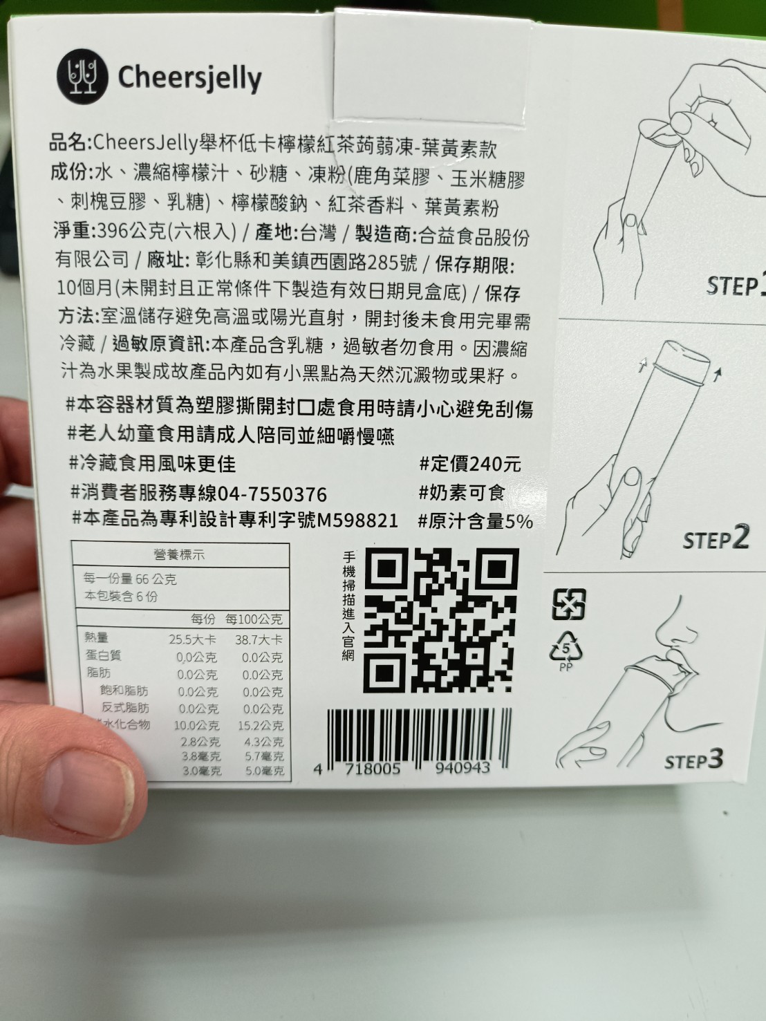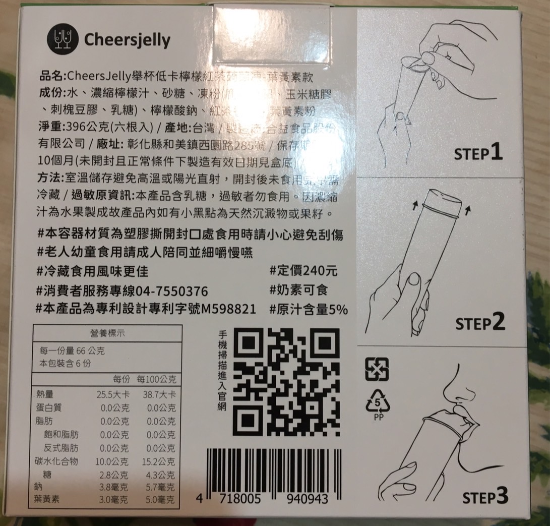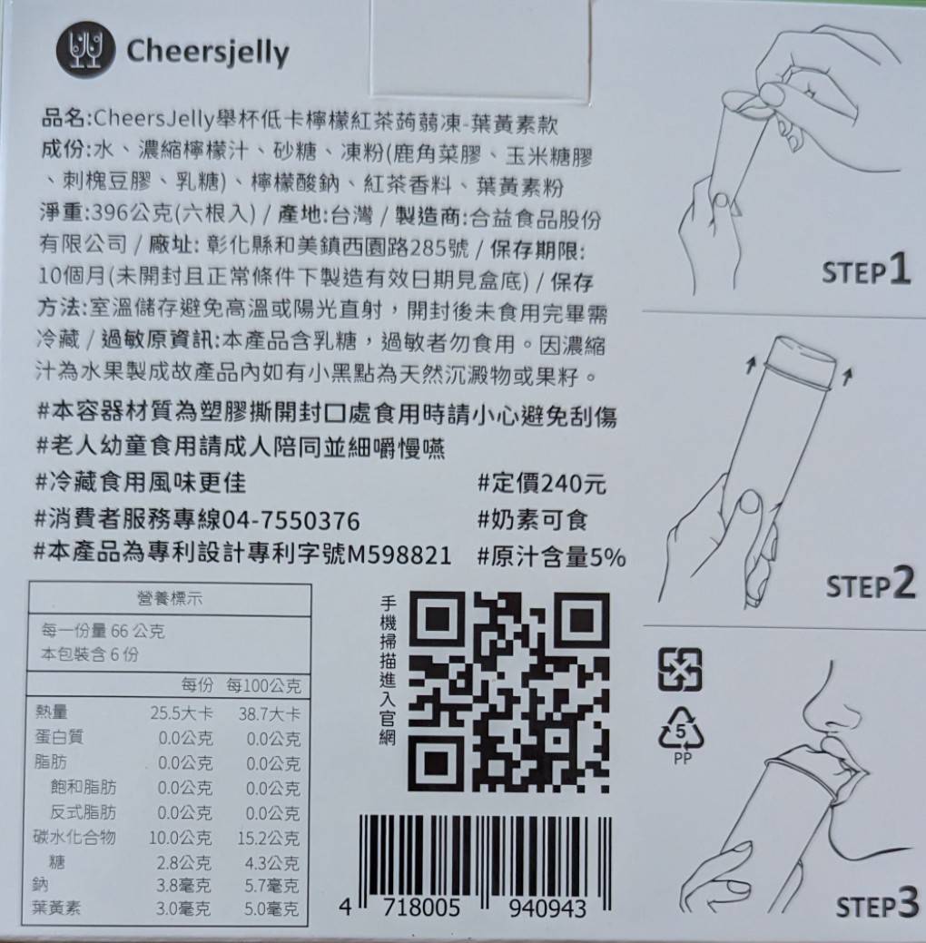回列表 CHEERSJELLY 檸檬紅茶蒟蒻凍葉黃素款 獨家Q彈微脆 一撕即可享用 所需等級 一般會員以上 所需學分 30 體驗份數 50 關注人數 788 申請人數 214 申請截止 品牌業者:合益食品股份有限公司 負責廠商 合益食品股份有限公司 廠商地址 彰化縣和美鎮面前里西園路285號 產地 台灣 試用產品規格 66g/根、一盒共6根入 食品業者登錄字號 N-142884931-00003-3 心得分享 商品介紹 商品成分 使用方法 注意事項 體驗名單 9.0 CHEERSJELLY 檸檬紅茶蒟蒻凍 口感Q彈微脆 9.2 風味香氣足 8.7 甜度適中 9.0 包裝方便 9.0 建議推薦 8.7 心得分享 49則 Sophia 金食達人 39歲 嘉義市 2024/02/21 對CHEERSJELLY 檸檬紅茶蒟蒻凍留下評價 10 CHEERSJELLY 檸檬紅茶蒟蒻凍葉黃素款~感謝食力讓我吃到好多好吃的,這次分享的是CHEERSJELLY 檸檬紅茶蒟蒻凍葉黃素款,CHEERSJELLY跟一般的蒿蒻凍長得不太一樣,獨家專利的設計包裝,把蒟蒻凍變成一條條,呼應產品名稱CHEERSJELLY,用蒟蒻凍CHEERS一點也不違和,簡單三步驟,一撕、二擠、三吃,而且撕開不會像一般的蒟蒻凍會有湯湯水水流出來,不沾手設計簡直不要太方便,像這款檸檬紅茶蒟蒻凍葉黃素款,就是可愛的怪獸設計,不同口味包裝也都有精心設計,十分有質感,真的是送禮自用兩相宜。一根25平均只有25大卡,除了多種經典口味,還有添加添加膳食纖維款、葉黃素款、石榴精華萃取款,不只是低卡零食, 這款檸檬紅茶蒟蒻凍葉黃素款,檸檬紅茶口味吃起來清爽不膩口,脆口甜度適中,讓人一口接一口,而且還添加了葉黃素,可以順便保護一下眼睛~ Li Emma 鑽石達人 49歲 高雄市 2024/02/21 對CHEERSJELLY 檸檬紅茶蒟蒻凍留下評價 10 實在太幸運可以抽中試吃(CHEERSJELLY 檸檬紅茶蒟蒻凍葉黃素),好可愛超吸引人的包裝,一手拿著吃很方便,小孩試吃超喜歡的,還提醒我他上學的時候不要偷吃掉哦!呵!完全是吃零食果凍的fu,口味也很棒,酸酸甜甜好滋味,冰過後更讚了!擺脫了保健品藥丸的形式,像吃果凍一般,在無形中就補充了葉黃素,連大人都很愛耶!但果凍口感偏硬一些比較不適合小小孩哦!還好自己小孩已夠大了,吃的超開心的,而且前陣子近視了,剛好需要補充葉黃素來保養一下眼睛,真心希望小孩不會這麼小就戴眼鏡,努力補充一下葉黃素~加油! 鄭滿祝 金食達人 57歲 新北市 2024/02/27 對CHEERSJELLY 檸檬紅茶蒟蒻凍留下評價 10 其他品牌的蒟蒻凍吃起來多是軟稀且湯湯水水,但這個品牌的檸檬紅茶蒟蒻凍口感Q彈且沒有流出果凍汁,算是真材實料。有紅茶香氣、不會太甜,還含有葉黃素,對身體較無負擔。此外,產品包裝可愛、好拿握,撕開封口時也不會流出汁液。蒟蒻熱量低又易有飽足感,對想維持身材者是很棒的副食品,我大力推薦此產品。 劉力菁 金食達人 33歲 臺北市 2024/03/04 對CHEERSJELLY 檸檬紅茶蒟蒻凍留下評價 10 CHEERSJELLY 檸檬紅茶蒟蒻凍葉黃素款是一款清新可口的飲品,充滿了濃郁的檸檬和紅茶風味,再搭配蒟蒻凍和葉黃素,為口腔帶來了豐富的層次感。包裝採用清新的檸檬黃色調,質感十足,一看就能感受到其中蘊含的清新風味。包裝以推壓的方式,非常友善手忙著打電腦的上班族。在口感方面,這款飲品更是令人驚豔。濃郁的檸檬和紅茶香氣交織在一起,令人垂涎欲滴。蒟蒻凍的口感極為綿滑,入口即化,給人一種清新涼爽的感覺,總的來說,這是一款兼具外觀、口感和營養的飲品,給人一種清新、愉悅的感覺。無論是在工作間歇還是休閒時光,都是一個值得品嚐的美味選擇。 唐多多 金食達人 30歲 高雄市 2024/02/21 對CHEERSJELLY 檸檬紅茶蒟蒻凍留下評價 10 很開心也很幸運這次抽到CHEERSJELLY 檸檬紅茶蒟蒻凍葉黃素款的試吃體驗,很久之前就有聽說過舉杯蒟蒻這個品牌,也一直都很想嘗試看看,剛好這次有機會整體口感我覺得很Q脆,吃起來就是檸檬紅茶的味道沒有其他怪味,重點不會很甜!而且一撕即食真的很方便,其實也算蠻大條,早上吃一條配咖啡好像就差不多了XD 蘇采彤 金食達人 47歲 臺北市 2024/02/21 對CHEERSJELLY 檸檬紅茶蒟蒻凍留下評價 10 本次體驗產品「CHEERSJELLY 檸檬紅茶蒟蒻凍葉黃素款」,外包裝設計感強烈,內包裝十分新穎,食用非常方便,包裝撕開即可食用,不需再準備湯匙或吸管,冷藏後食用更添風味,非常方便讓上班族可以在下午時直接食用,包裝上的眼睛設計與產品的葉黃素主題相呼應。會推薦給親友一同購買。 羅仁宏 鑽石達人 24歲 臺南市 2024/02/21 對CHEERSJELLY 檸檬紅茶蒟蒻凍留下評價 10 這款檸檬紅茶蒟蒻的味道不會很化學,它結合了茶的清香和檸檬的酸甜,同時具有蒟蒻的獨特Q彈口感還添加葉黃素。一根蒟蒻只有25大卡,且富含膳食纖維,幾乎不含卡路里和碳水化合物。因此,它常被用於製作低卡或減肥食品。蒟蒻的特殊口感給予飲品額外的樂趣,讓人感覺飽足且有飽足感。這款檸檬紅茶蒟蒻不僅口感獨特,而且低卡、低糖,是健康點心的一種選擇。小孩子一定會愛吃,大推!! Carly Yang 鑽石達人 43歲 臺南市 2024/02/21 對CHEERSJELLY 檸檬紅茶蒟蒻凍留下評價 10 很榮幸能被抽選為「CHEERSJELLY 檸檬紅茶蒟蒻凍葉黃素款 」的體驗者。有看過小小兵的食友們,一定會對外包裝和瓶身會心一笑,完美符合主題-保護眼睛!接著就是1撕2擠3食!首先,聞起來有淡淡的紅茶香,和著檸檬,反而意外蹦出桂花香;另外,口感十分Q彈,每一口都帶著輕爽的檸檬味,咀嚼完還能感覺茶味還在口腔中,在下午小餓時,還能有些