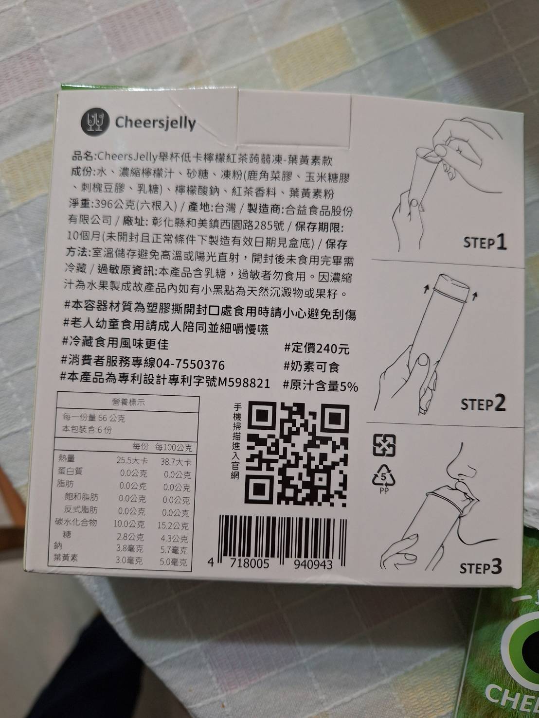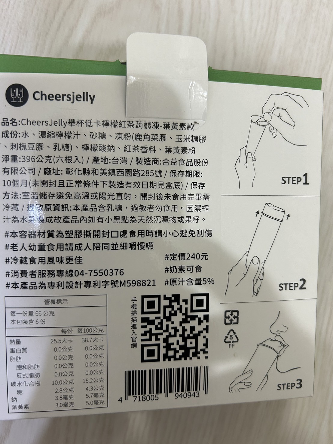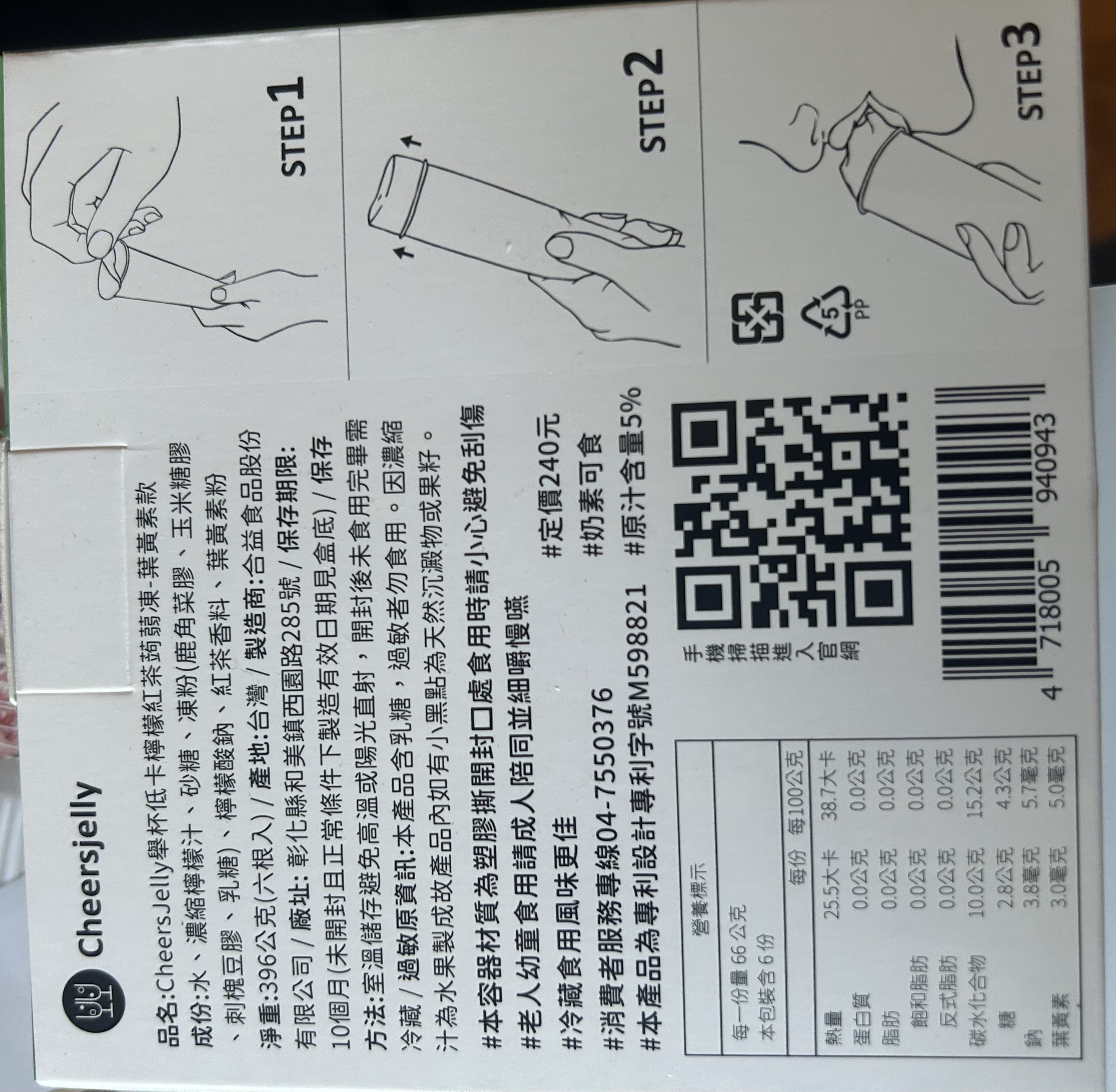 回列表 CHEERSJELLY 檸檬紅茶蒟蒻凍葉黃素款 獨家Q彈微脆 一撕即可享用 所需等級 一般會員以上 所需學分 30 體驗份數 50 關注人數 788 申請人數 214 申請截止 品牌業者:合益食品股份有限公司 負責廠商 合益食品股份有限公司 廠商地址 彰化縣和美鎮面前里西園路285號 產地 台灣 試用產品規格 66g/根、一盒共6根入 食品業者登錄字號 N-142884931-00003-3 心得分享 商品介紹 商品成分 使用方法 注意事項 體驗名單 9.0 CHEERSJELLY 檸檬紅茶蒟蒻凍 口感Q彈微脆 9.2 風味香氣足 8.7 甜度適中 9.0 包裝方便 9.0 建議推薦 8.7 心得分享 49則 Sophia 金食達人 39歲 嘉義市 2024/02/21 對CHEERSJELLY 檸檬紅茶蒟蒻凍留下評價 10 CHEERSJELLY 檸檬紅茶蒟蒻凍葉黃素款~感謝食力讓我吃到好多好吃的,這次分享的是CHEERSJELLY 檸檬紅茶蒟蒻凍葉黃素款,CHEERSJELLY跟一般的蒿蒻凍長得不太一樣,獨家專利的設計包裝,把蒟蒻凍變成一條條,呼應產品名稱CHEERSJELLY,用蒟蒻凍CHEERS一點也不違和,簡單三步驟,一撕、二擠、三吃,而且撕開不會像一般的蒟蒻凍會有湯湯水水流出來,不沾手設計簡直不要太方便,像這款檸檬紅茶蒟蒻凍葉黃素款,就是可愛的怪獸設計,不同口味包裝也都有精心設計,十分有質感,真的是送禮自用兩相宜。一根25平均只有25大卡,除了多種經典口味,還有添加添加膳食纖維款、葉黃素款、石榴精華萃取款,不只是低卡零食, 這款檸檬紅茶蒟蒻凍葉黃素款,檸檬紅茶口味吃起來清爽不膩口,脆口甜度適中,讓人一口接一口,而且還添加了葉黃素,可以順便保護一下眼睛~ Li Emma 鑽石達人 49歲 高雄市 2024/02/21 對CHEERSJELLY 檸檬紅茶蒟蒻凍留下評價 10 實在太幸運可以抽中試吃(CHEERSJELLY 檸檬紅茶蒟蒻凍葉黃素),好可愛超吸引人的包裝,一手拿著吃很方便,小孩試吃超喜歡的,還提醒我他上學的時候不要偷吃掉哦!呵!完全是吃零食果凍的fu,口味也很棒,酸酸甜甜好滋味,冰過後更讚了!擺脫了保健品藥丸的形式,像吃果凍一般,在無形中就補充了葉黃素,連大人都很愛耶!但果凍口感偏硬一些比較不適合小小孩哦!還好自己小孩已夠大了,吃的超開心的,而且前陣子近視了,剛好需要補充葉黃素來保養一下眼睛,真心希望小孩不會這麼小就戴眼鏡,努力補充一下葉黃素~加油! 鄭滿祝 金食達人 57歲 新北市 2024/02/27 對CHEERSJELLY 檸檬紅茶蒟蒻凍留下評價 10 其他品牌的蒟蒻凍吃起來多是軟稀且湯湯水水,但這個品牌的檸檬紅茶蒟蒻凍口感Q彈且沒有流出果凍汁,算是真材實料。有紅茶香氣、不會太甜,還含有葉黃素,對身體較無負擔。此外,產品包裝可愛、好拿握,撕開封口時也不會流出汁液。蒟蒻熱量低又易有飽足感,對想維持身材者是很棒的副食品,我大力推薦此產品。 劉力菁 金食達人 33歲 臺北市 2024/03/04 對CHEERSJELLY 檸檬紅茶蒟蒻凍留下評價 10 CHEERSJELLY 檸檬紅茶蒟蒻凍葉黃素款是一款清新可口的飲品,充滿了濃郁的檸檬和紅茶風味,再搭配蒟蒻凍和葉黃素,為口腔帶來了豐富的層次感。包裝採用清新的檸檬黃色調,質感十足,一看就能感受到其中蘊含的清新風味。包裝以推壓的方式,非常友善手忙著打電腦的上班族。在口感方面,這款飲品更是令人驚豔。濃郁的檸檬和紅茶香氣交織在一起,令人垂涎欲滴。蒟蒻凍的口感極為綿滑,入口即化,給人一種清新涼爽的感覺,總的來說,這是一款兼具外觀、口感和營養的飲品,給人一種清新、愉悅的感覺。無論是在工作間歇還是休閒時光,都是一個值得品嚐的美味選擇。 唐多多 金食達人 30歲 高雄市 2024/02/21 對CHEERSJELLY 檸檬紅茶蒟蒻凍留下評價 10 很開心也很幸運這次抽到CHEERSJELLY 檸檬紅茶蒟蒻凍葉黃素款的試吃體驗,很久之前就有聽說過舉杯蒟蒻這個品牌,也一直都很想嘗試看看,剛好這次有機會整體口感我覺得很Q脆,吃起來就是檸檬紅茶的味道沒有其他怪味,重點不會很甜!而且一撕即食真的很方便,其實也算蠻大條,早上吃一條配咖啡好像就差不多了XD 蘇采彤 金食達人 47歲 臺北市 2024/02/21 對CHEERSJELLY 檸檬紅茶蒟蒻凍留下評價 10 本次體驗產品「CHEERSJELLY 檸檬紅茶蒟蒻凍葉黃素款」,外包裝設計感強烈,內包裝十分新穎,食用非常方便,包裝撕開即可食用,不需再準備湯匙或吸管,冷藏後食用更添風味,非常方便讓上班族可以在下午時直接食用,包裝上的眼睛設計與產品的葉黃素主題相呼應。會推薦給親友一同購買。 羅仁宏 鑽石達人 24歲 臺南市 2024/02/21 對CHEERSJELLY 檸檬紅茶蒟蒻凍留下評價 10 這款檸檬紅茶蒟蒻的味道不會很化學,它結合了茶的清香和檸檬的酸甜,同時具有蒟蒻的獨特Q彈口感還添加葉黃素。一根蒟蒻只有25大卡,且富含膳食纖維,幾乎不含卡路里和碳水化合物。因此,它常被用於製作低卡或減肥食品。蒟蒻的特殊口感給予飲品額外的樂趣,讓人感覺飽足且有飽足感。這款檸檬紅茶蒟蒻不僅口感獨特,而且低卡、低糖,是健康點心的一種選擇。小孩子一定會愛吃,大推!! Carly Yang 鑽石達人 43歲 臺南市 2024/02/21 對CHEERSJELLY 檸檬紅茶蒟蒻凍留下評價 10 很榮幸能被抽選為「CHEERSJELLY 檸檬紅茶蒟蒻凍葉黃素款 」的體驗者。有看過小小兵的食友們,一定會對外包裝和瓶身會心一笑,完美符合主題-保護眼睛!接著就是1撕2擠3食!首先,聞起來有淡淡的紅茶香,和著檸檬,反而意外蹦出桂花香;另外,口感十分Q彈,每一口都帶著輕爽的檸檬味,咀嚼完還能感覺茶味還在口腔中,在下午小餓時,還能有些