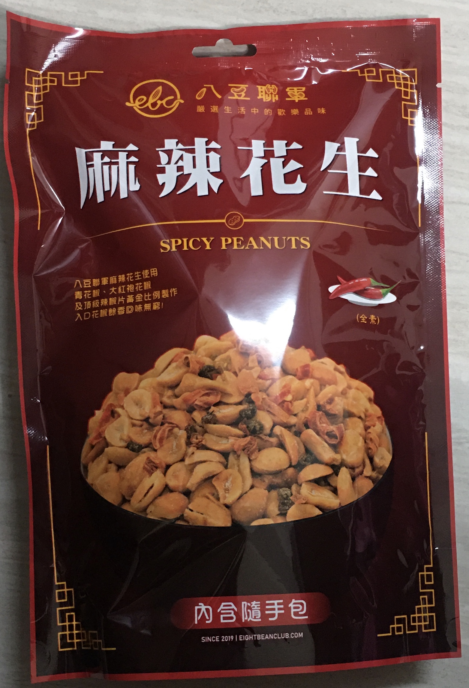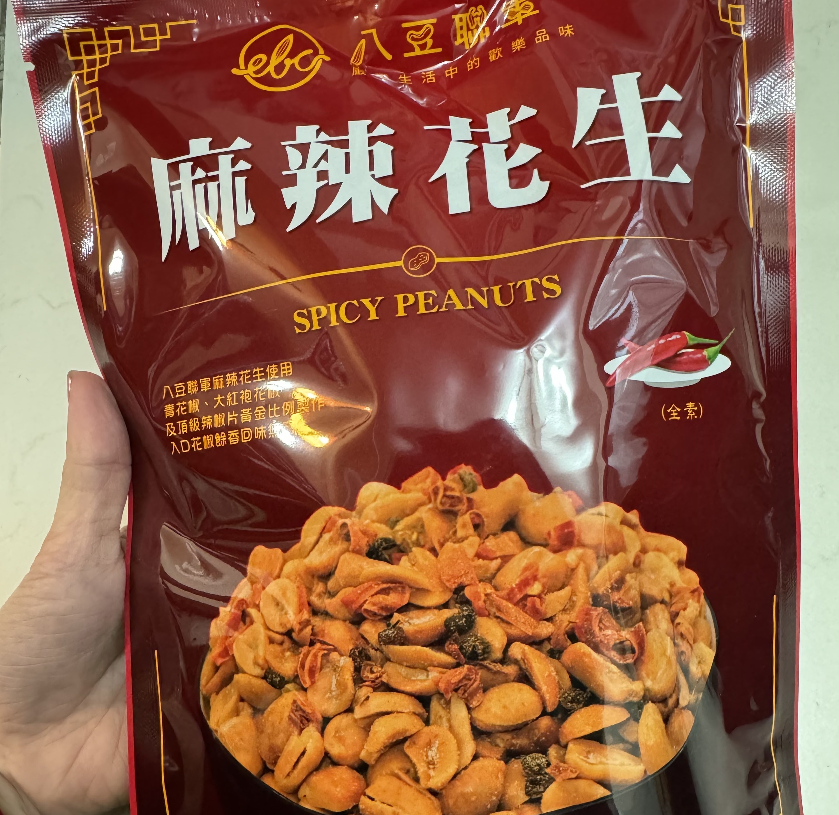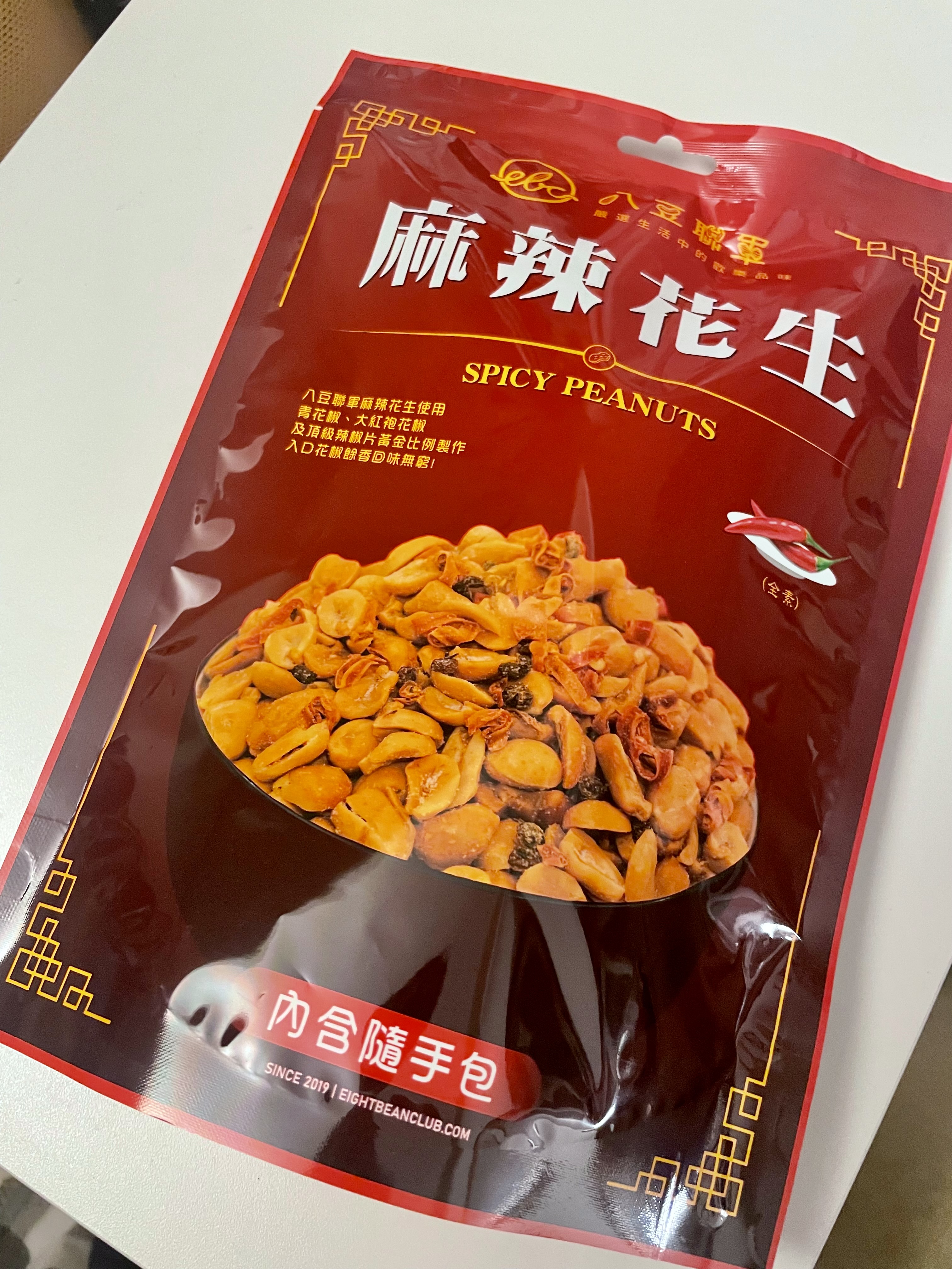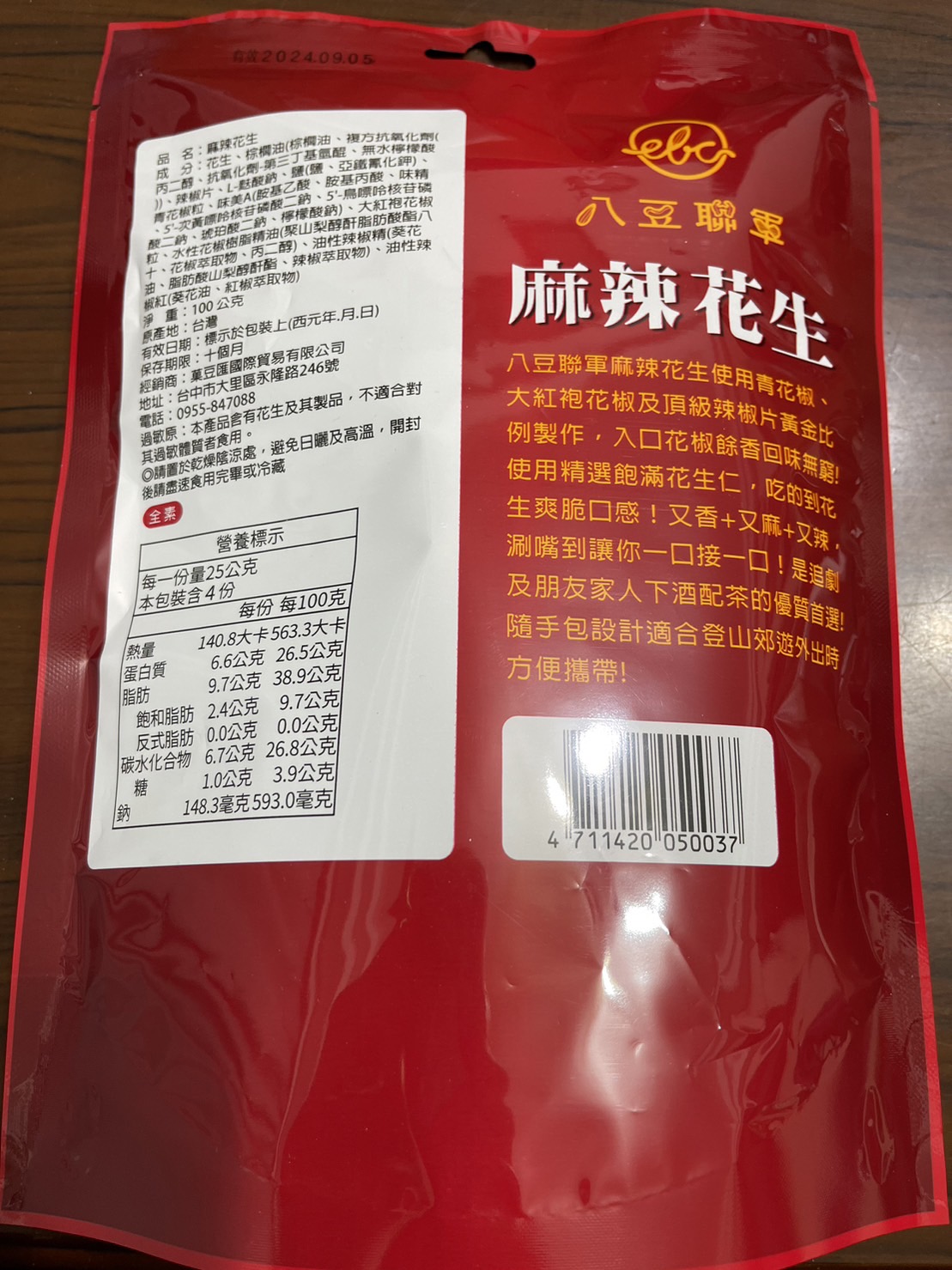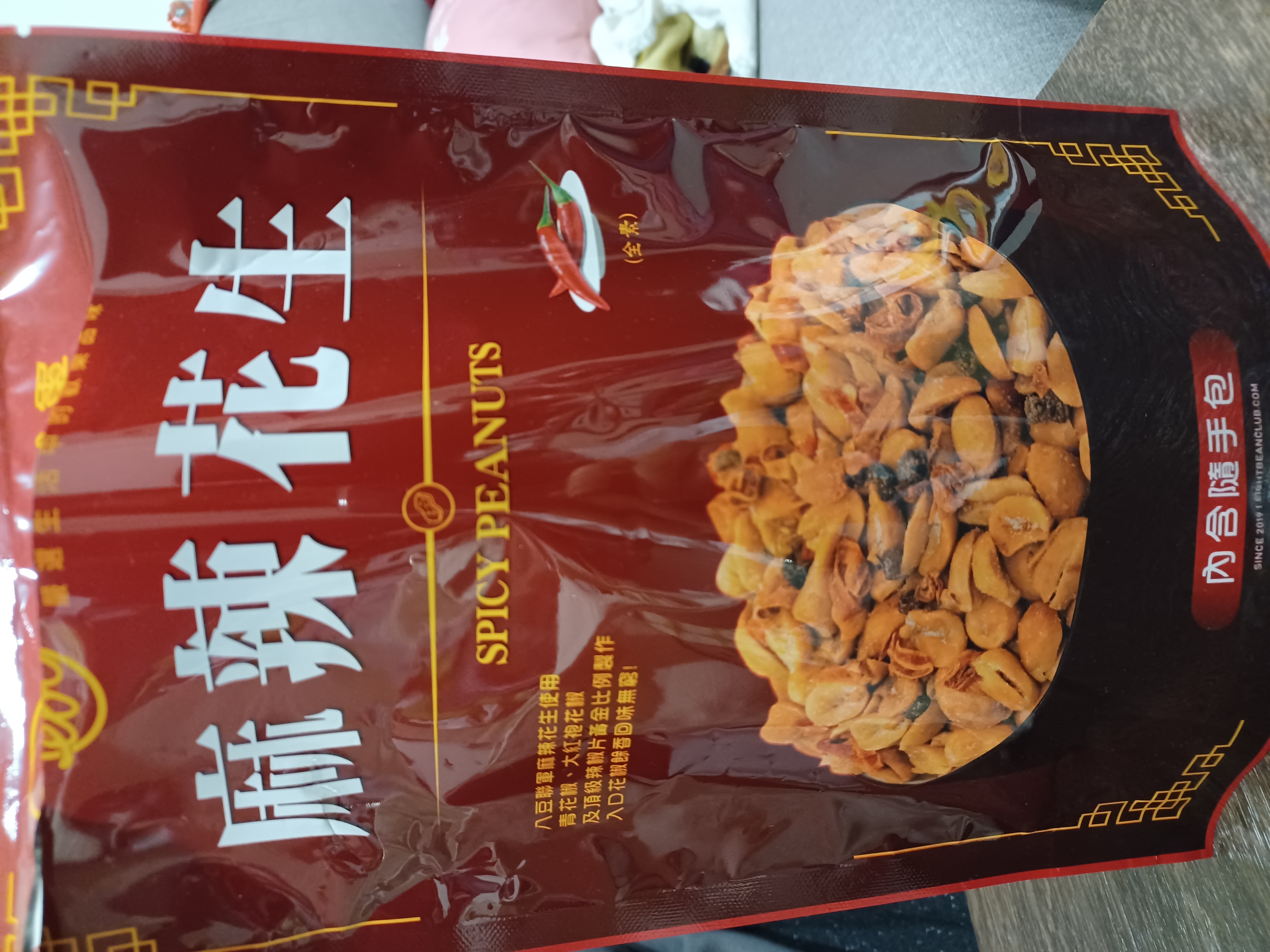 花生、棕櫚油(棕櫚油、複方抗氧化劑(丙二醇、抗氧化劑-第三丁基氫、無水檸檬酸))、辣椒片、L-麩酸鈉、鹽(鹽、亞鐵氫化鉀)、青花椒粒、味美A(胺基乙酸、胺基丙酸、味精、5’-次黃嘌呤核苷磷酸二鈉、5’-鳥嘌呤核苷磷酸二鈉、琥珀酸二鈉、檸檬酸鈉)、大紅袍花椒粒、水性花椒樹脂精油(聚山梨醇酐脂酸脂八十、花椒萃取物、丙二醇)、油性辣椒精(葵花油、脂肪酸山梨醇酐脂、辣椒萃取物)、油性辣椒紅(葵花油、紅椒萃取物)