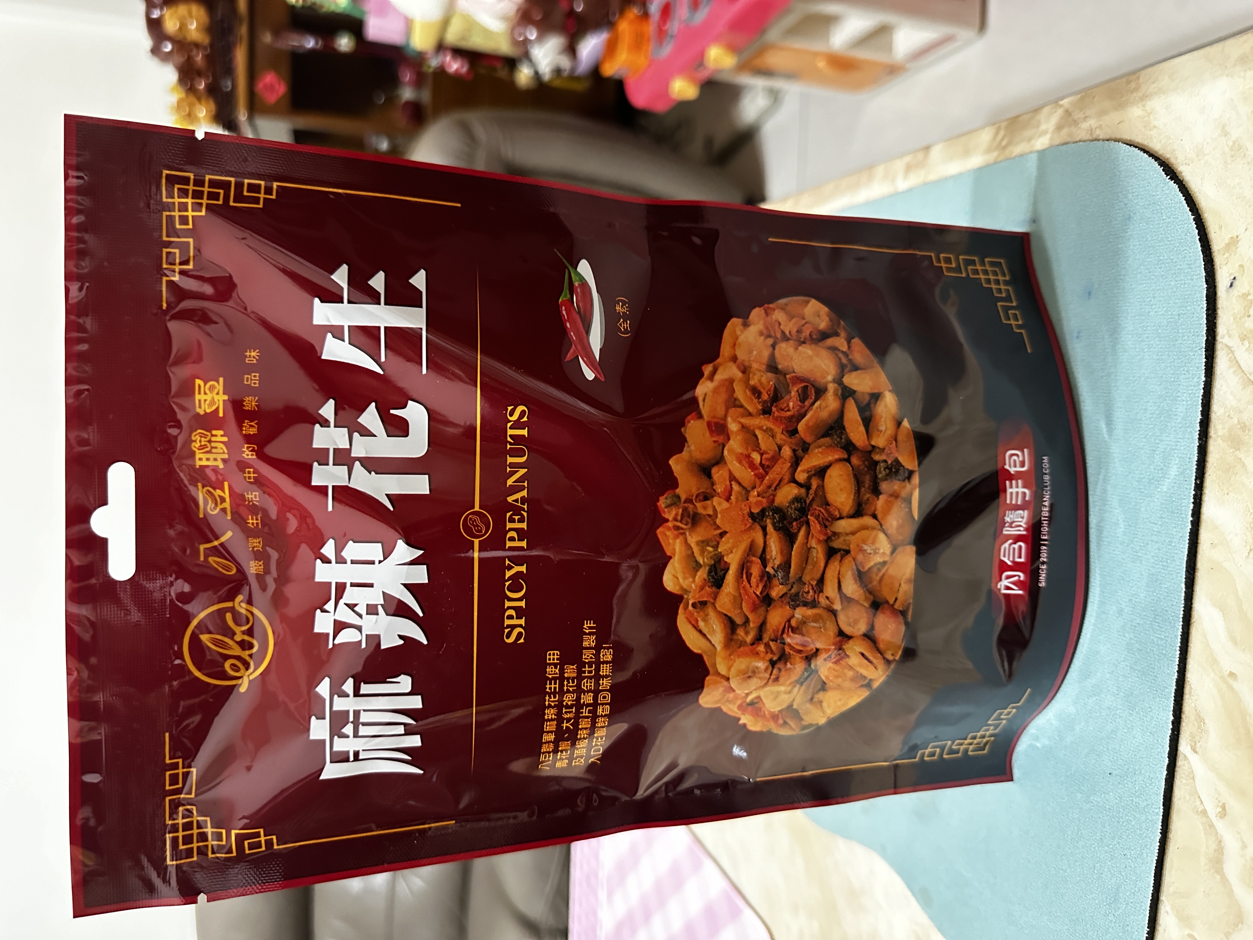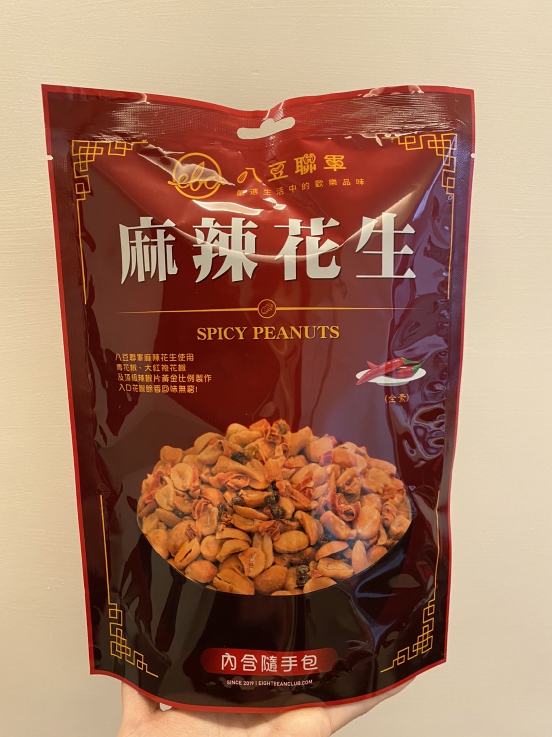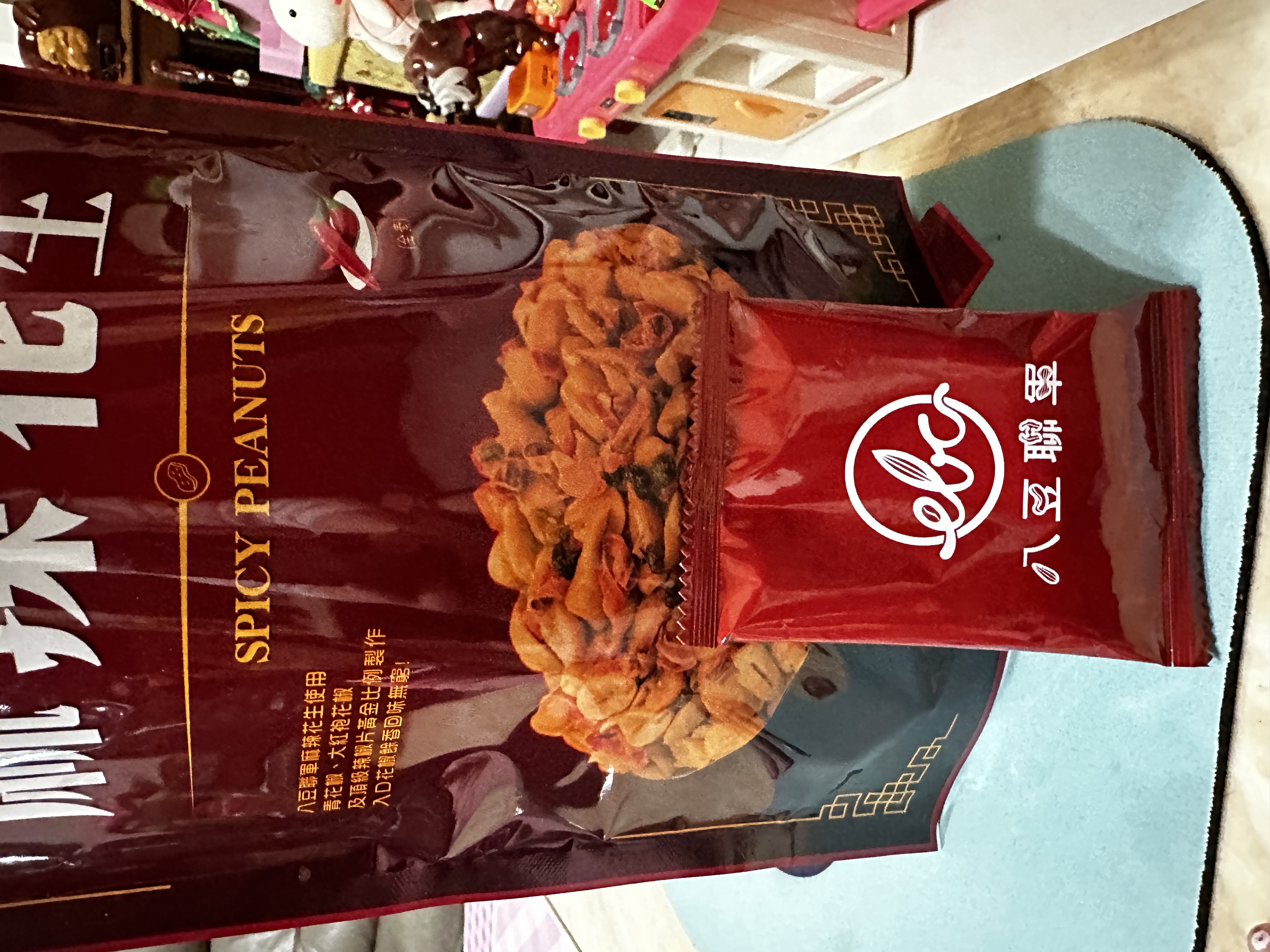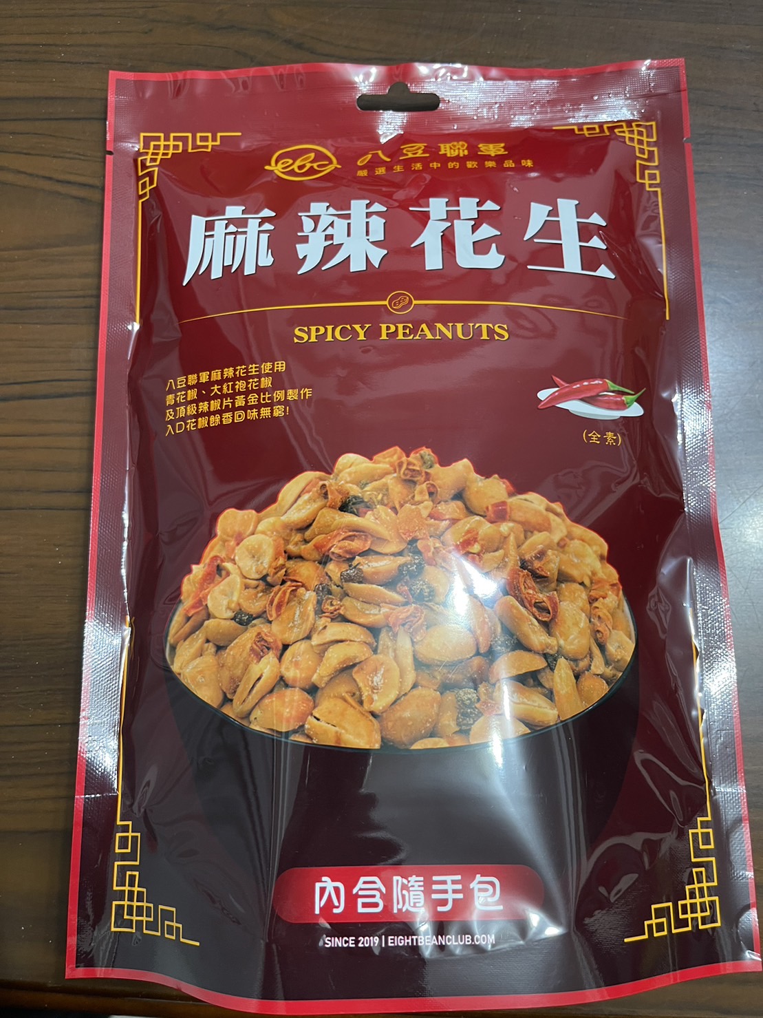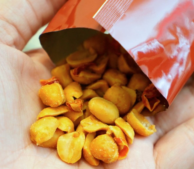 花生、棕櫚油(棕櫚油、複方抗氧化劑(丙二醇、抗氧化劑-第三丁基氫、無水檸檬酸))、辣椒片、L-麩酸鈉、鹽(鹽、亞鐵氫化鉀)、青花椒粒、味美A(胺基乙酸、胺基丙酸、味精、5’-次黃嘌呤核苷磷酸二鈉、5’-鳥嘌呤核苷磷酸二鈉、琥珀酸二鈉、檸檬酸鈉)、大紅袍花椒粒、水性花椒樹脂精油(聚山梨醇酐脂酸脂八十、花椒萃取物、丙二醇)、油性辣椒精(葵花油、脂肪酸山梨醇酐脂、辣椒萃取物)、油性辣椒紅(葵花油、紅椒萃取物)