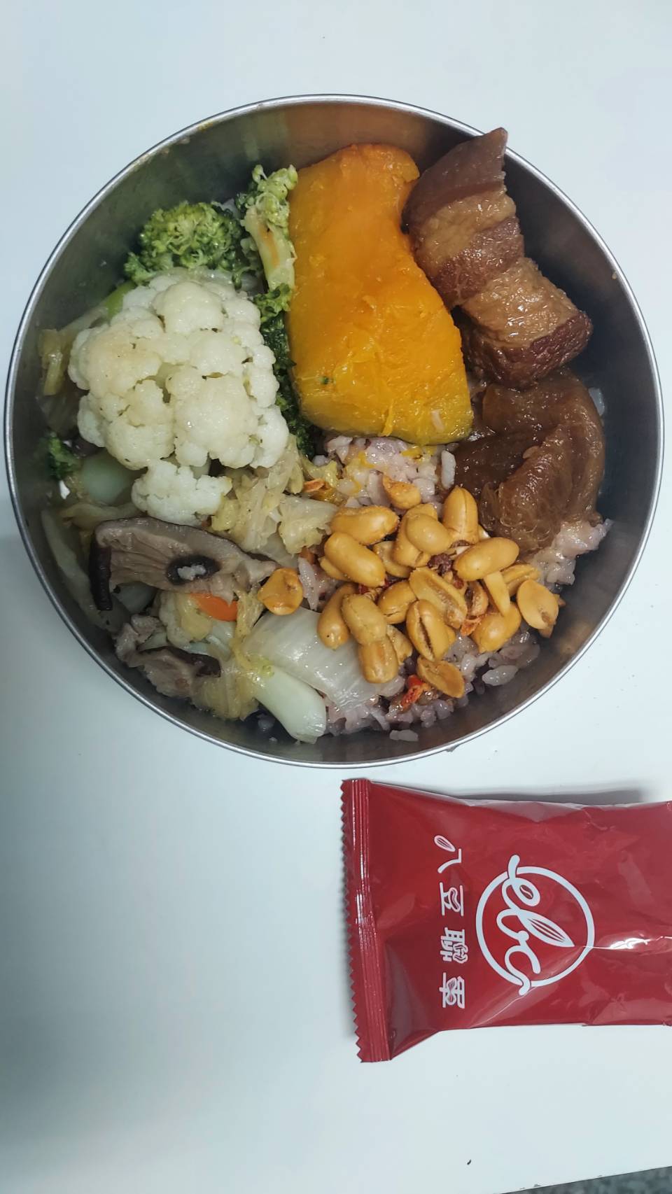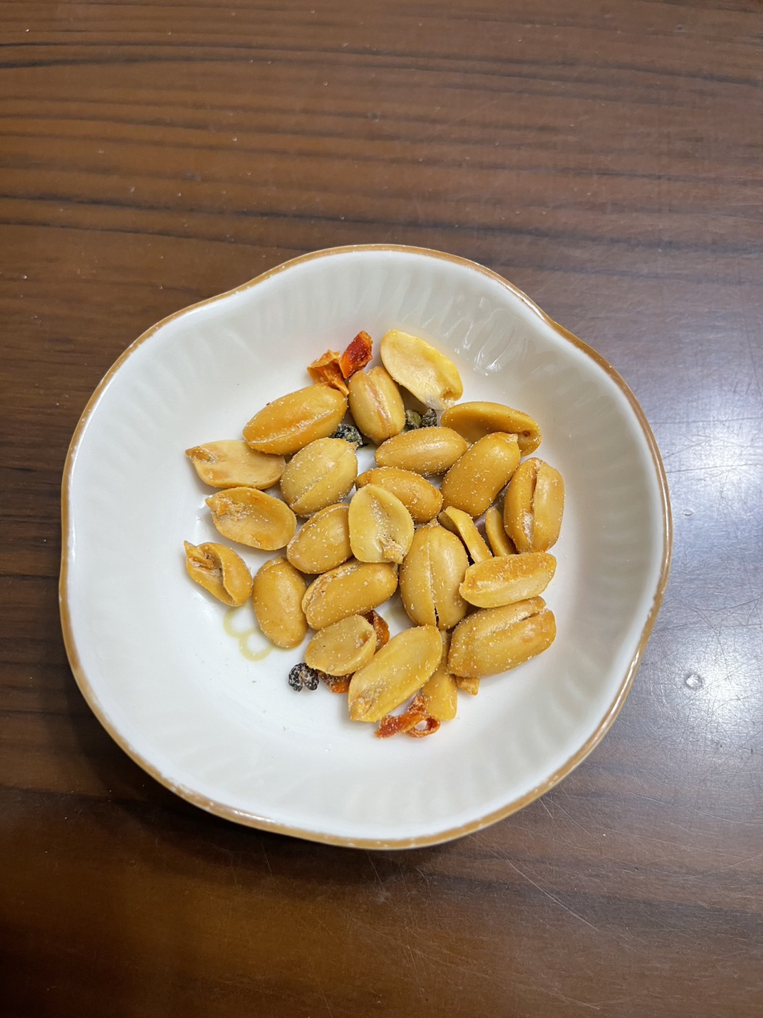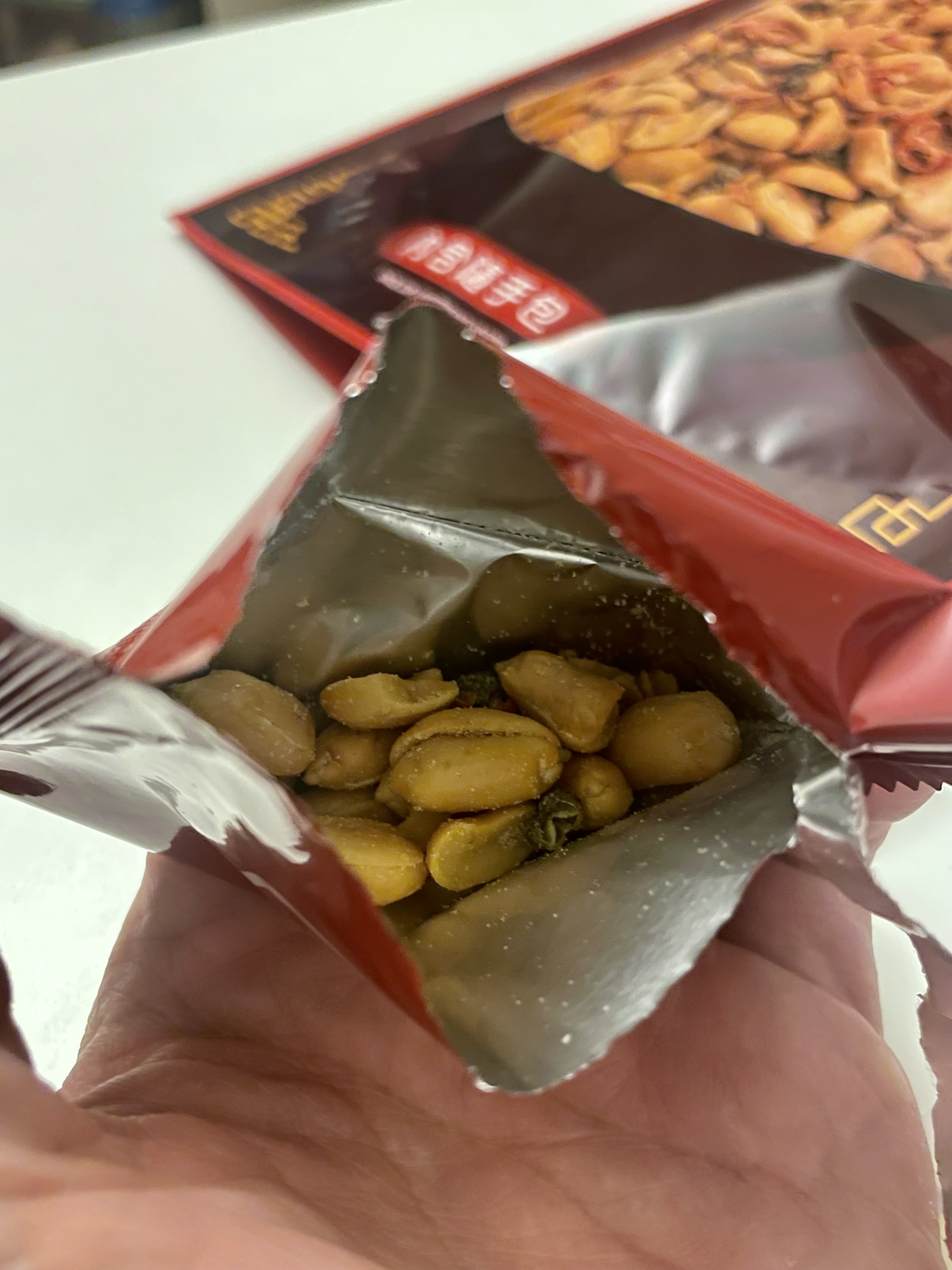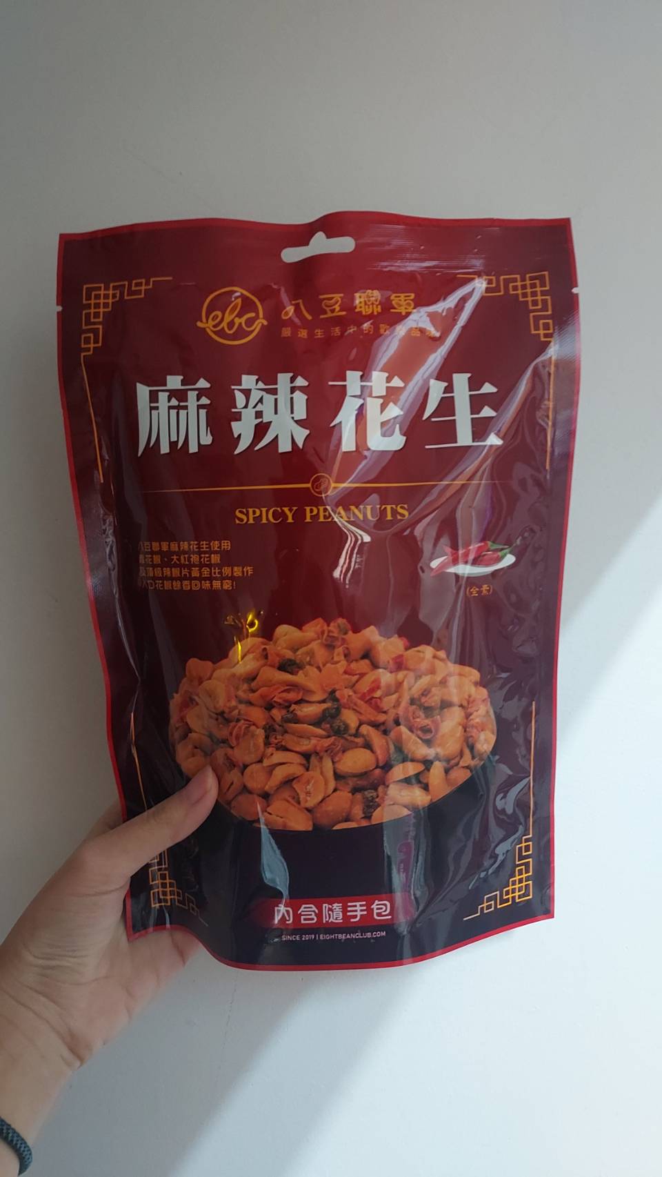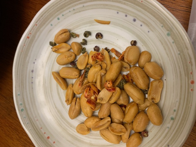 花生、棕櫚油(棕櫚油、複方抗氧化劑(丙二醇、抗氧化劑-第三丁基氫、無水檸檬酸))、辣椒片、L-麩酸鈉、鹽(鹽、亞鐵氫化鉀)、青花椒粒、味美A(胺基乙酸、胺基丙酸、味精、5’-次黃嘌呤核苷磷酸二鈉、5’-鳥嘌呤核苷磷酸二鈉、琥珀酸二鈉、檸檬酸鈉)、大紅袍花椒粒、水性花椒樹脂精油(聚山梨醇酐脂酸脂八十、花椒萃取物、丙二醇)、油性辣椒精(葵花油、脂肪酸山梨醇酐脂、辣椒萃取物)、油性辣椒紅(葵花油、紅椒萃取物)