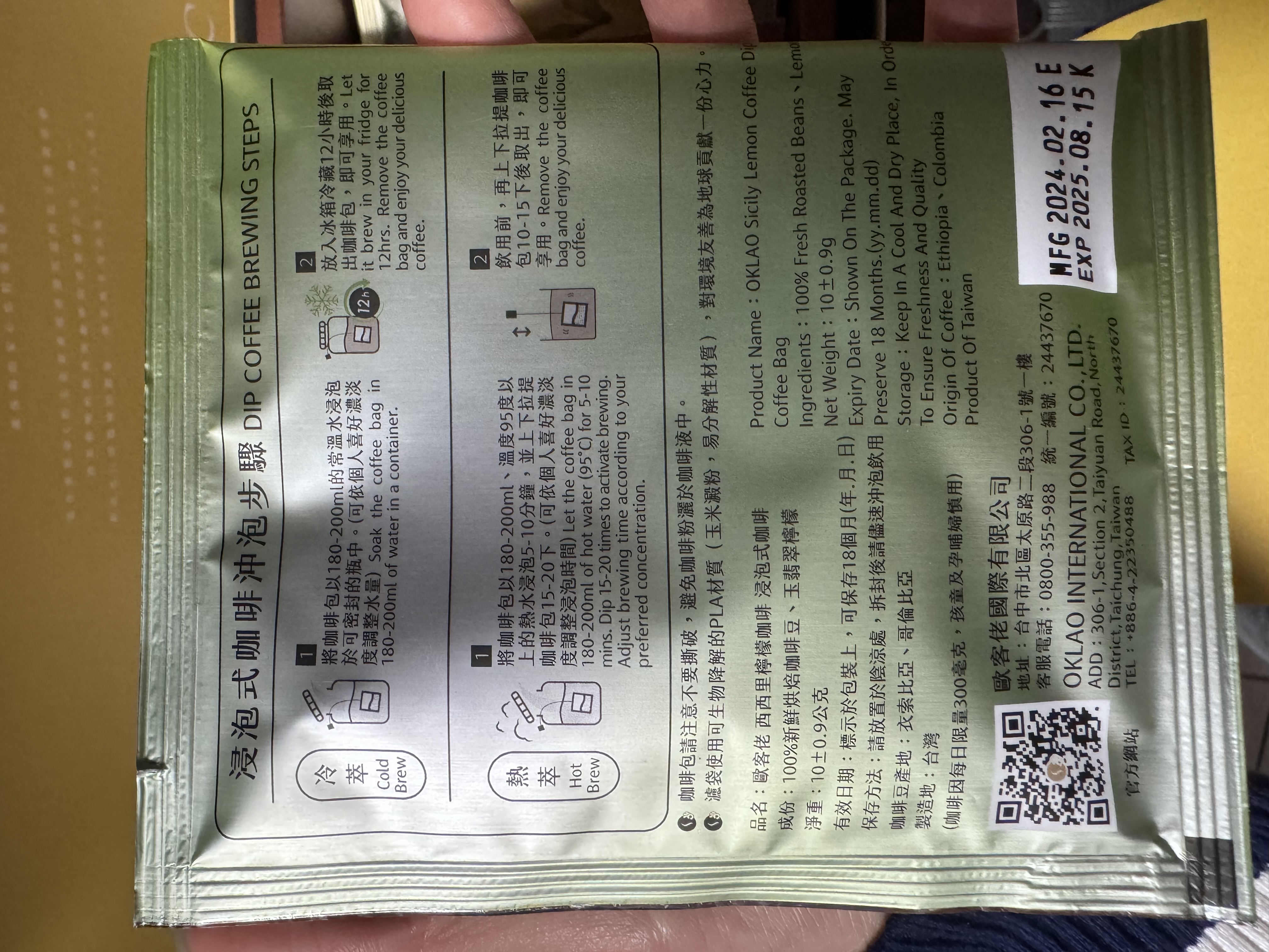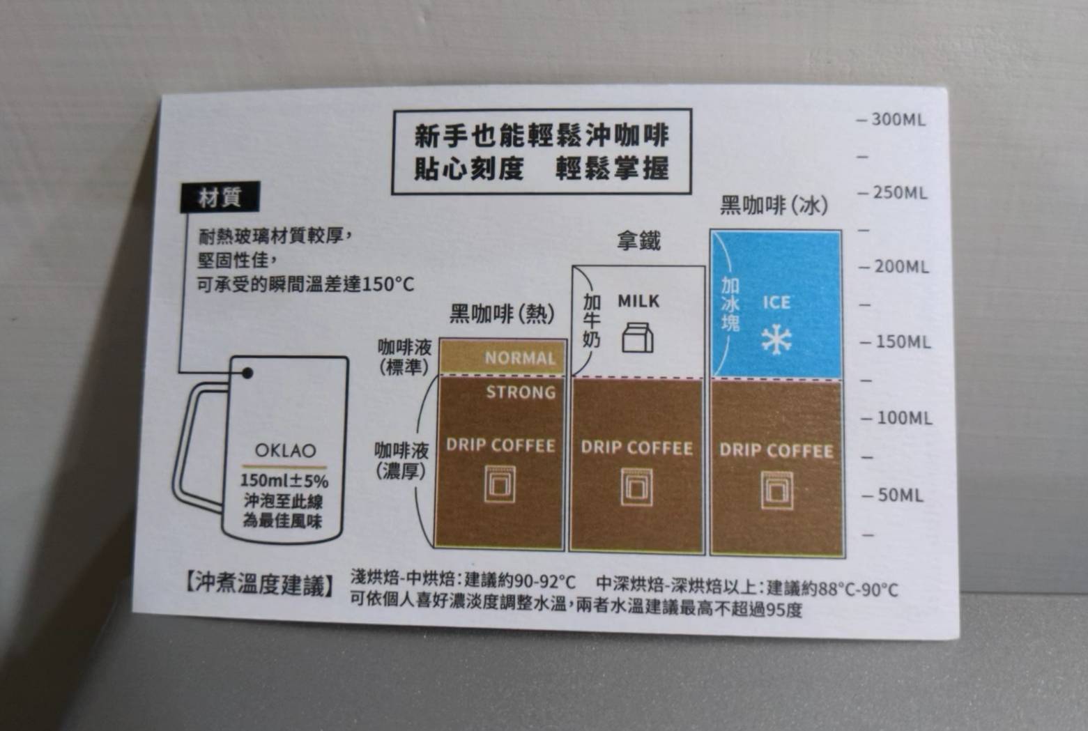 沖泡-將咖啡包以180-200ml的常溫水浸泡於可密封的瓶中。
