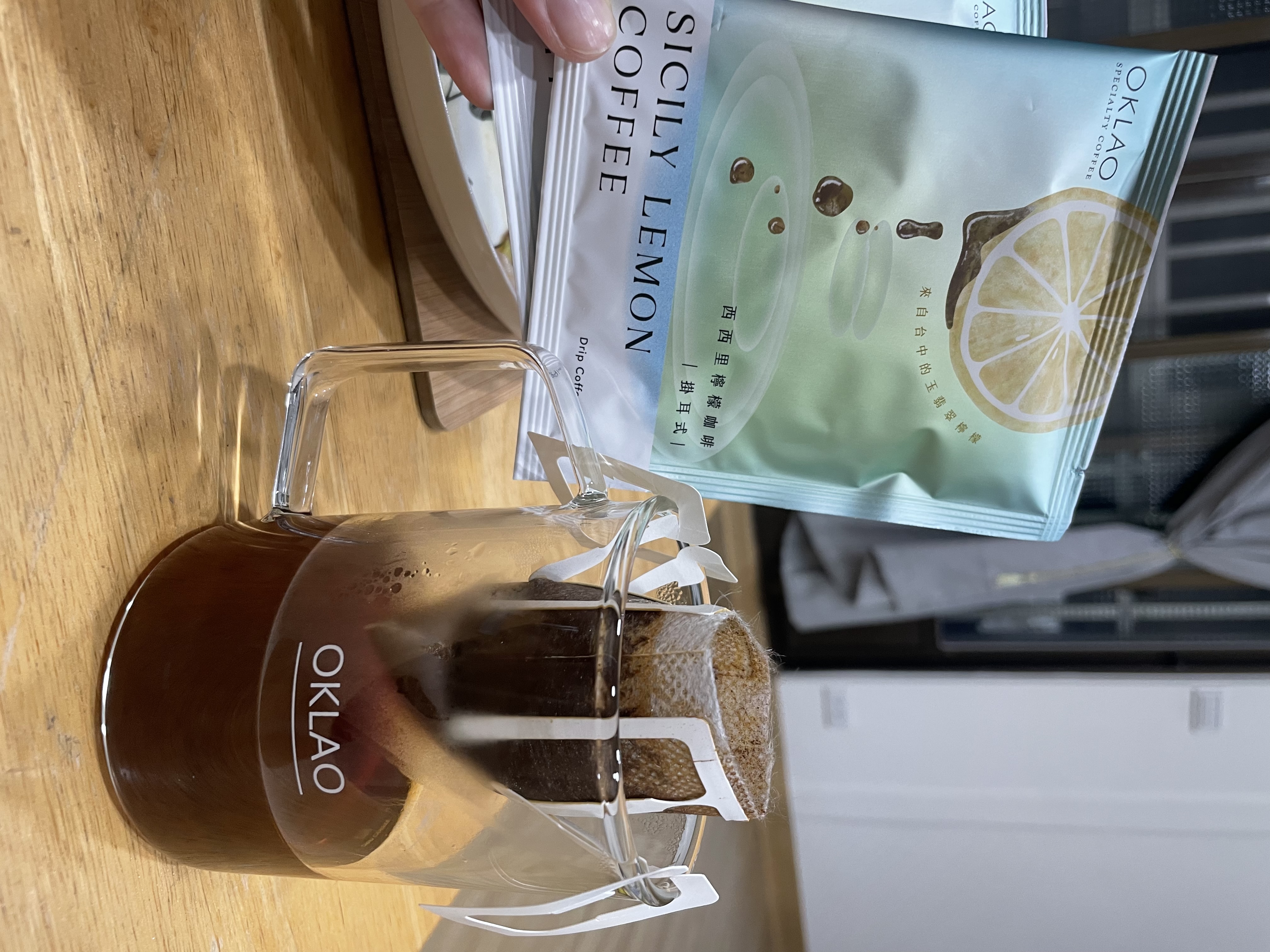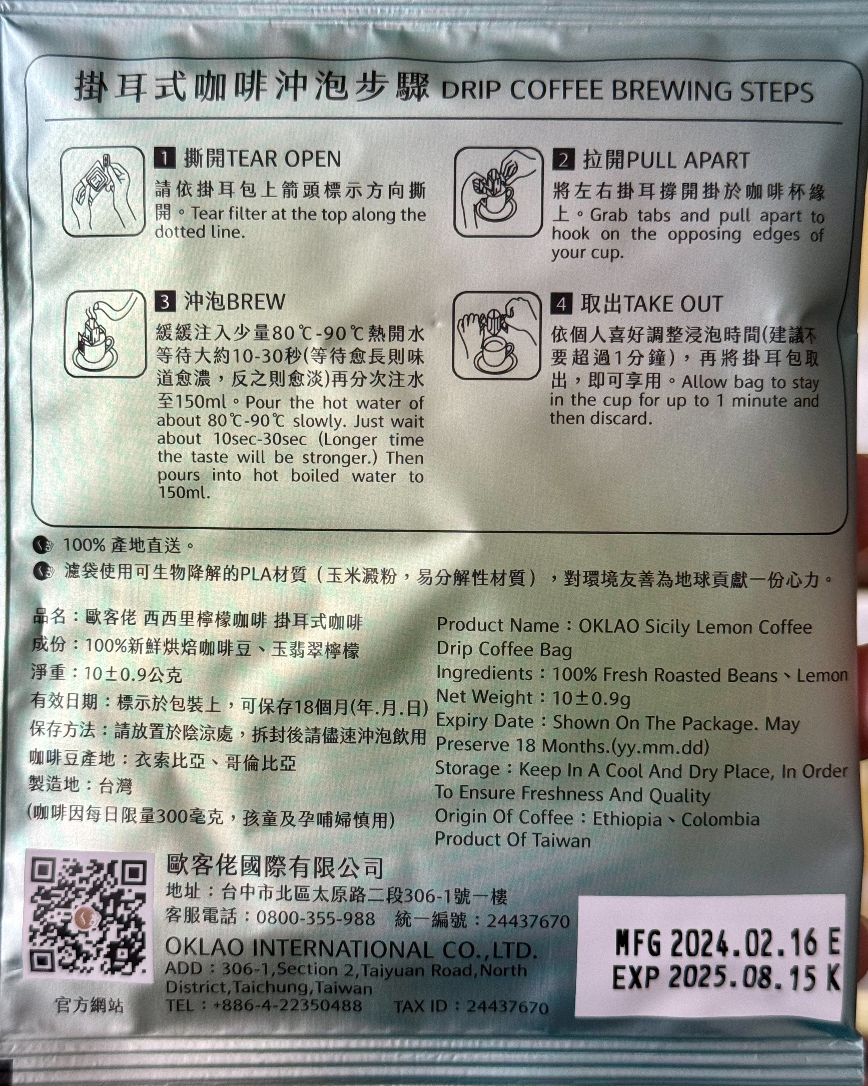 取出-依個人喜好調整浸泡時間(建議不要超過1分鐘),再將掛耳包取出,即可享用。