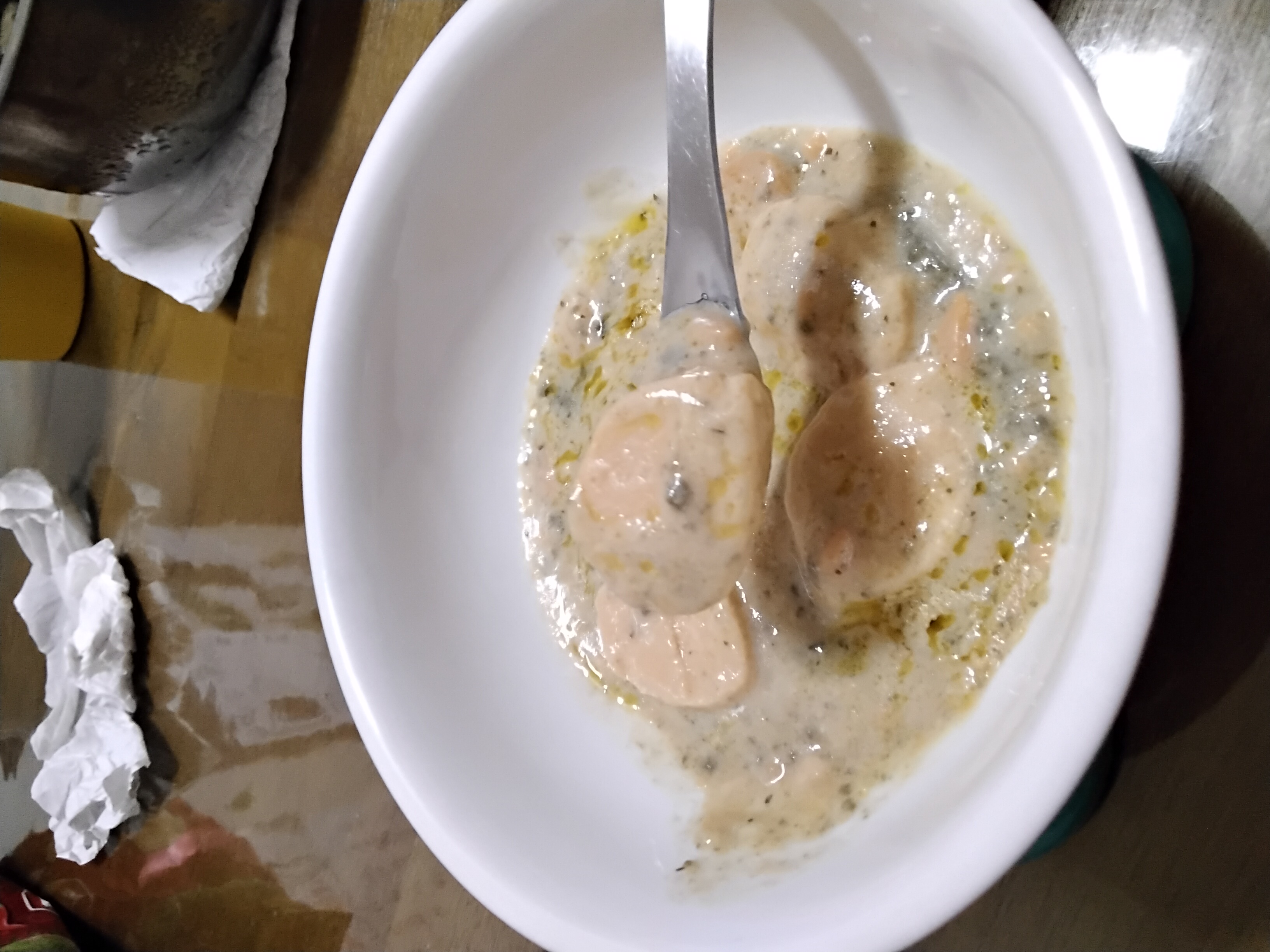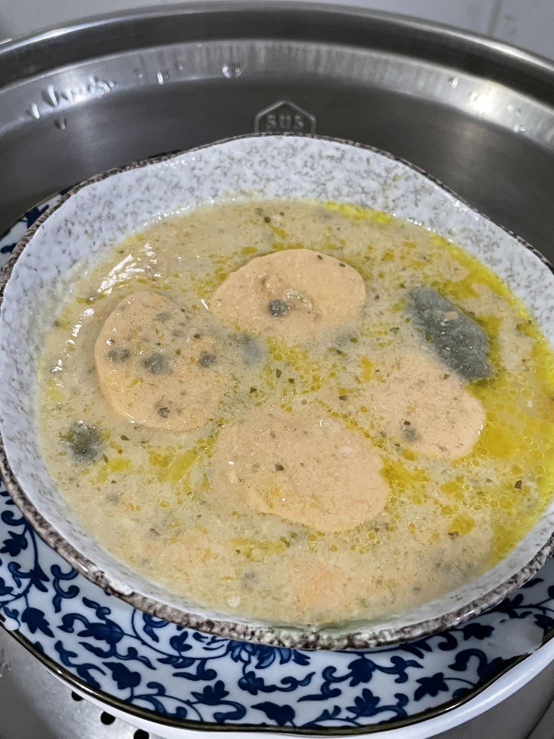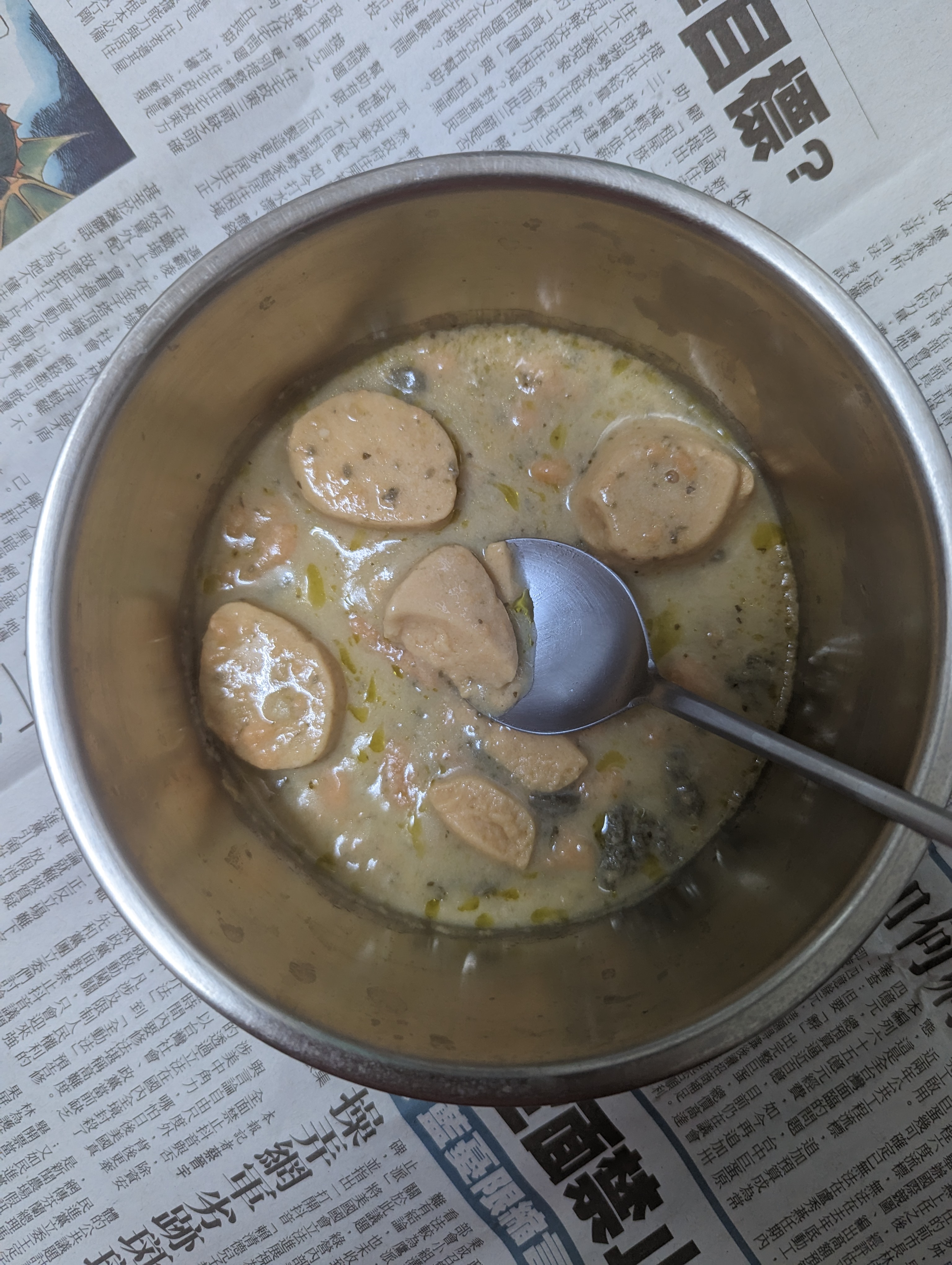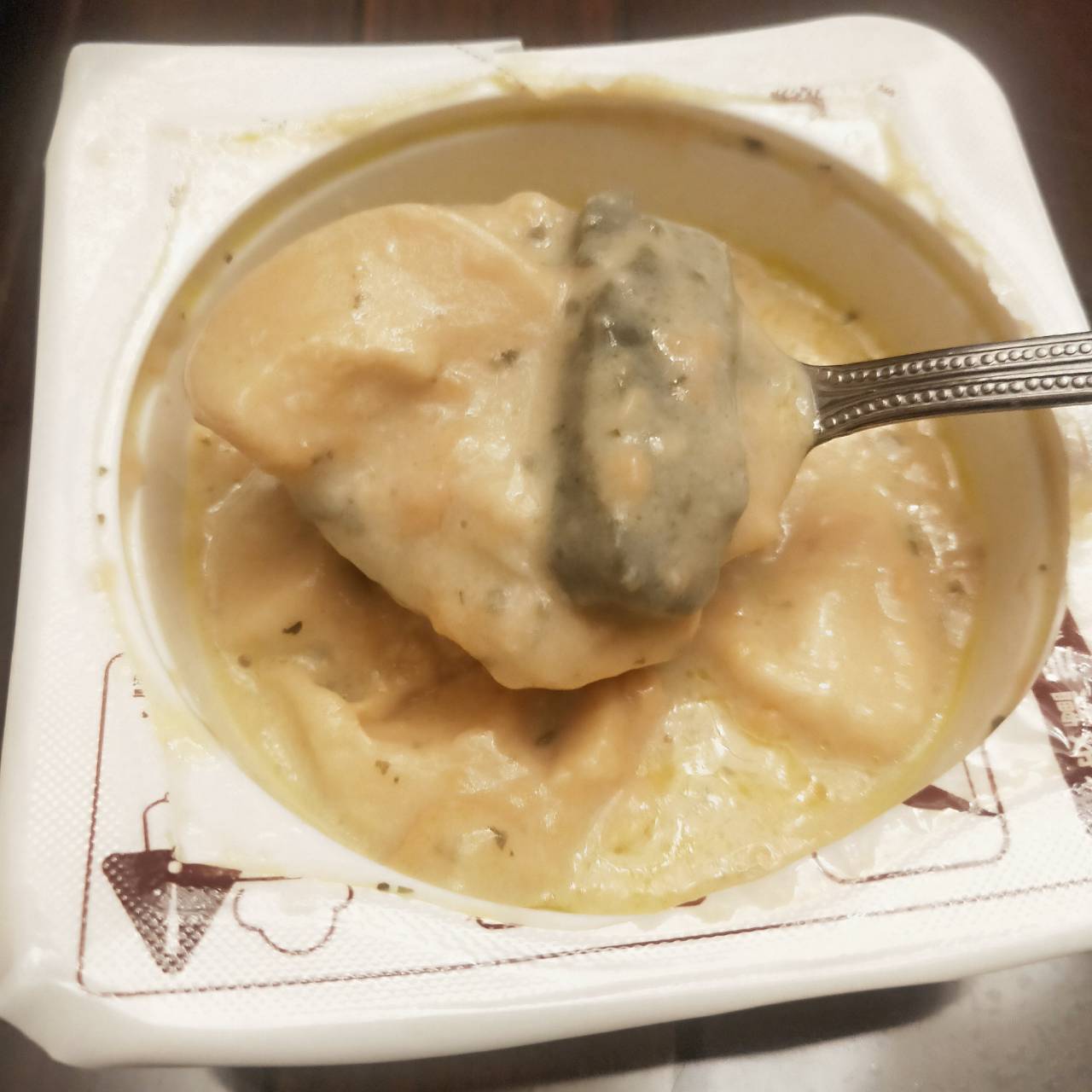 水、蛋白、鮭魚、動物性鮮奶油、大豆沙拉油、玉米來源可溶性纖維、菠菜、乙醯化己二酸二澱粉、洋蔥、有鹽奶油(殺菌乳脂、鹽)、小麥粉、砂糖、乳酪(牛奶、鹽、乳酸菌、凝乳酶、玉米澱粉、礦物油)、乳清分離蛋白、紅蘿蔔、蒜、食鹽、大豆蛋白、風味調味料(食鹽、砂糖、柴魚粉、L-麩酸鈉、5'-次黃嘌呤核苷磷酸二鈉、5'-鳥嘌呤核苷磷酸二鈉、琥珀酸二鈉)、玉米糖膠、乾酪粉(牛乳、培養菌種、氯化鈣、鹽、凝乳酵素、馬鈴薯澱粉)、柴魚粉調味料[糊精、(鰹、鯖、鯷節類)柴魚萃取物、食鹽]、L-麩酸鈉、香蒜粉(麥芽糊精、蒜粉、二氧化矽、大蒜香料)、刺槐豆膠、胡蘿蔔香料、乳酸鈣、紅麴色素(酒精、紅麴色素)、油性辣椒紅(芥花油、紅椒色素)、胺基乙酸、洋蔥粉、DL-胺基丙酸、蔬菜調味粉(食鹽、蔗糖、麥芽糊精、小麥水解蛋白、酵母抽出物、高麗菜抽出物、棕櫚油)、梔子花色素(黃梔子色素、梔子藍色素、糊精)、二氧化鈦、洋香菜葉、調味劑(5'-鳥嘌呤核苷磷酸二鈉、5'-次黃嘌呤核苷磷酸二鈉)、蒟蒻粉、鹿角菜膠、β-胡蘿蔔素[辛烯基丁二酸鈉澱粉、葵花油、砂糖、抗氧化劑(L-抗壞血酸、L-抗壞血酸鈉、維生素E)、二氧化矽]、奶油香料、魚香料 。