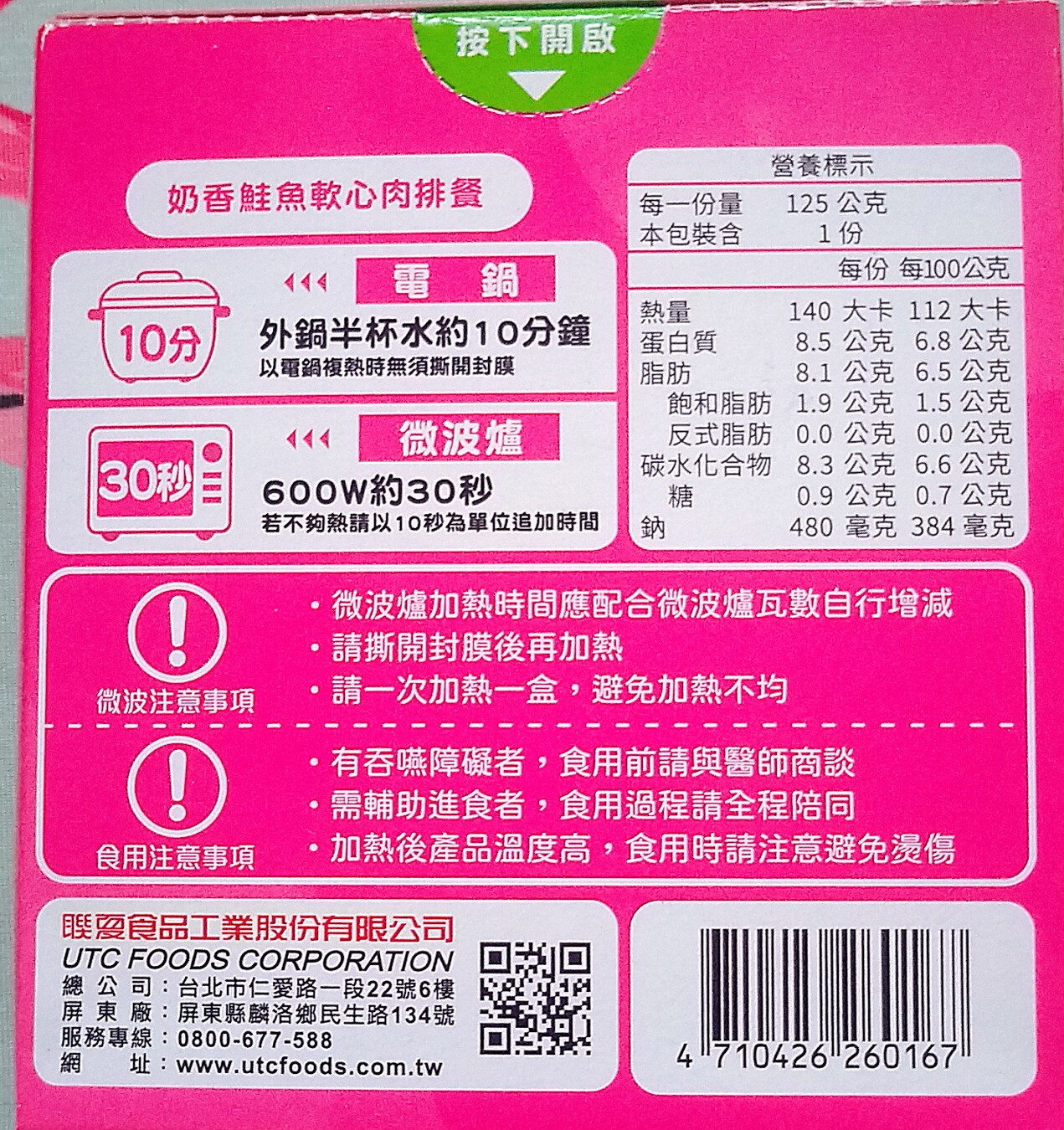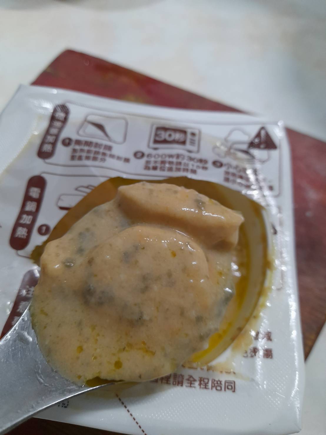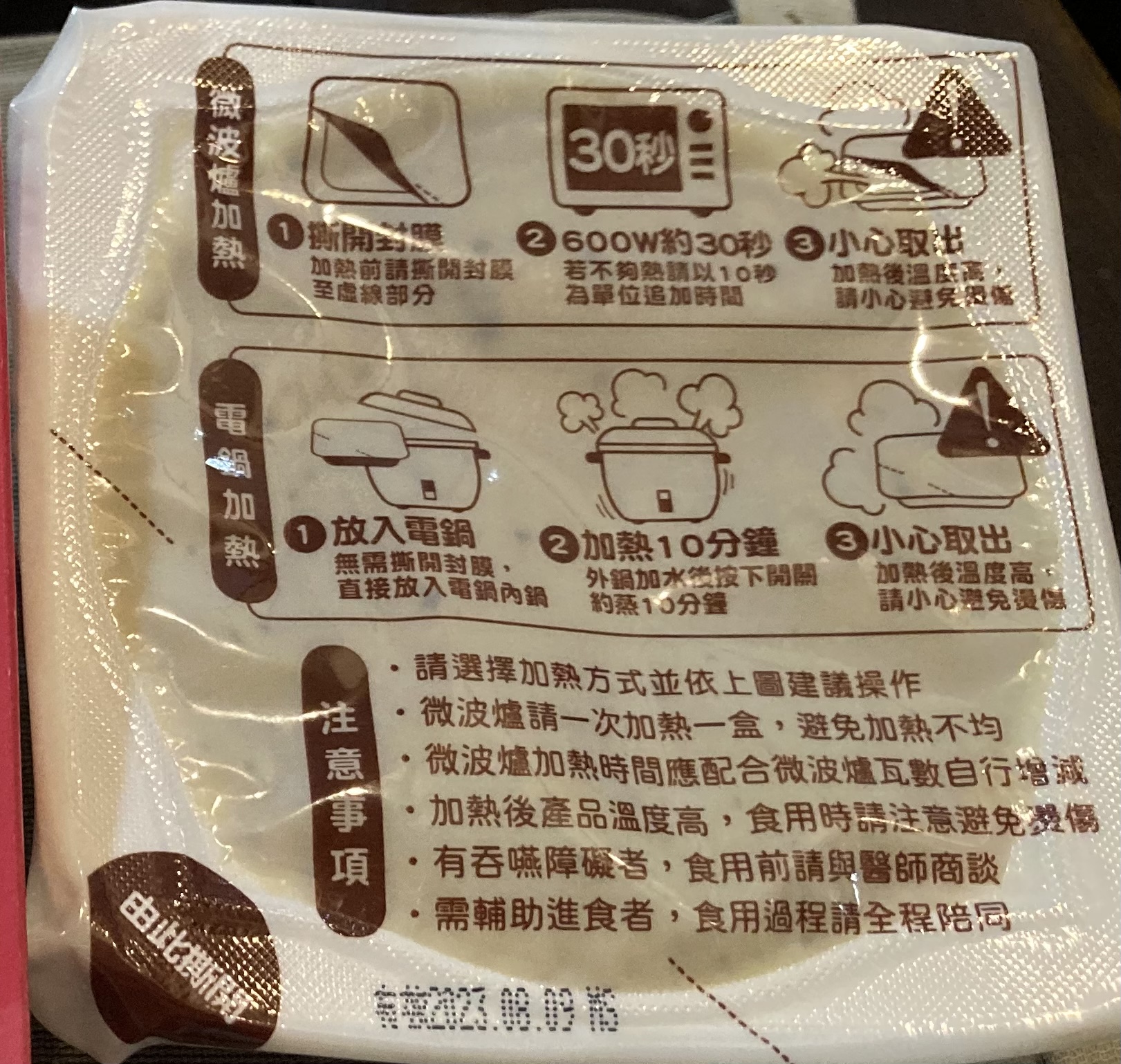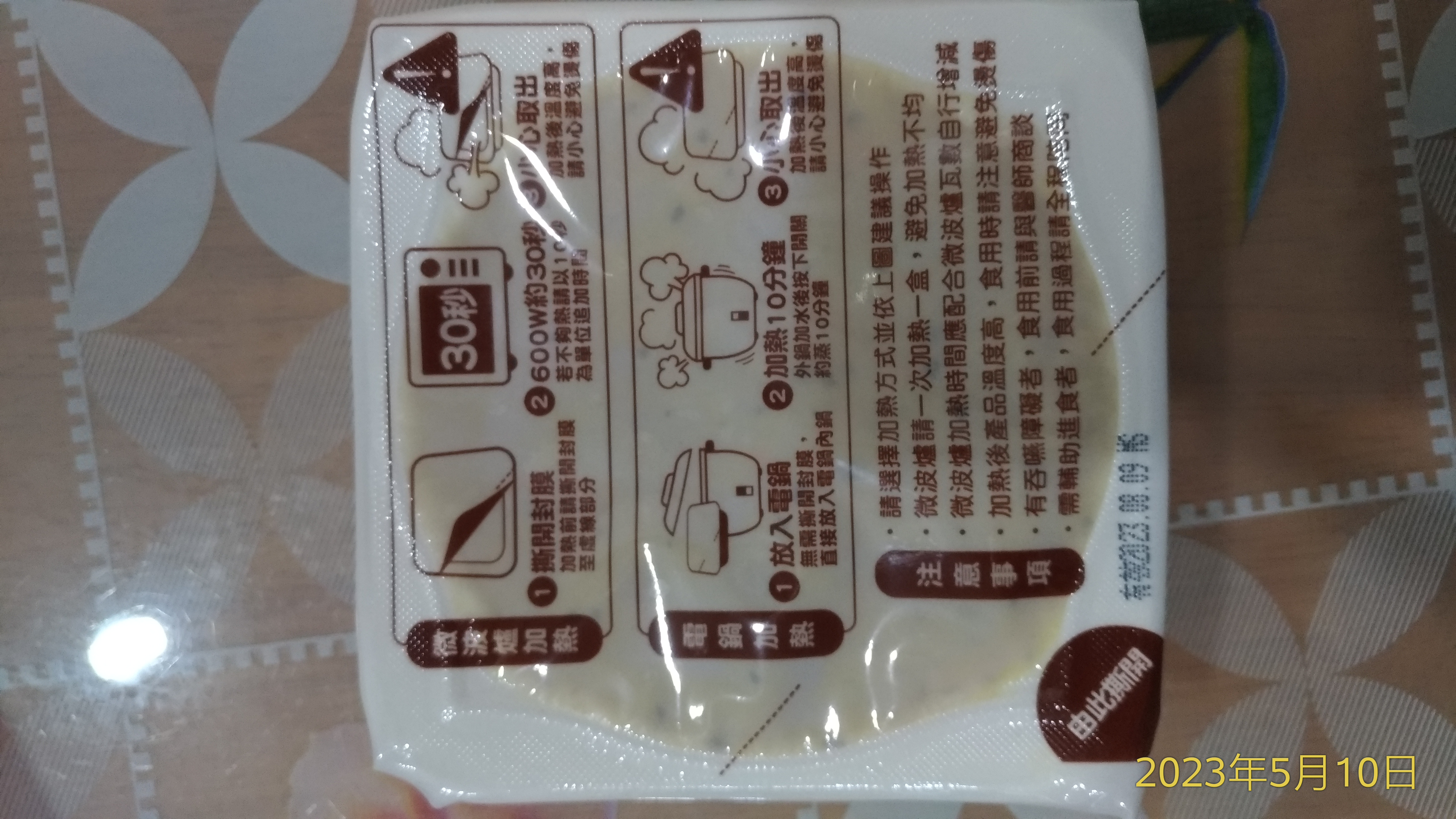 ‧微波爐【30秒】600W約30秒,封膜需撕開一小角,若不夠熱請以10秒為單位追加時間