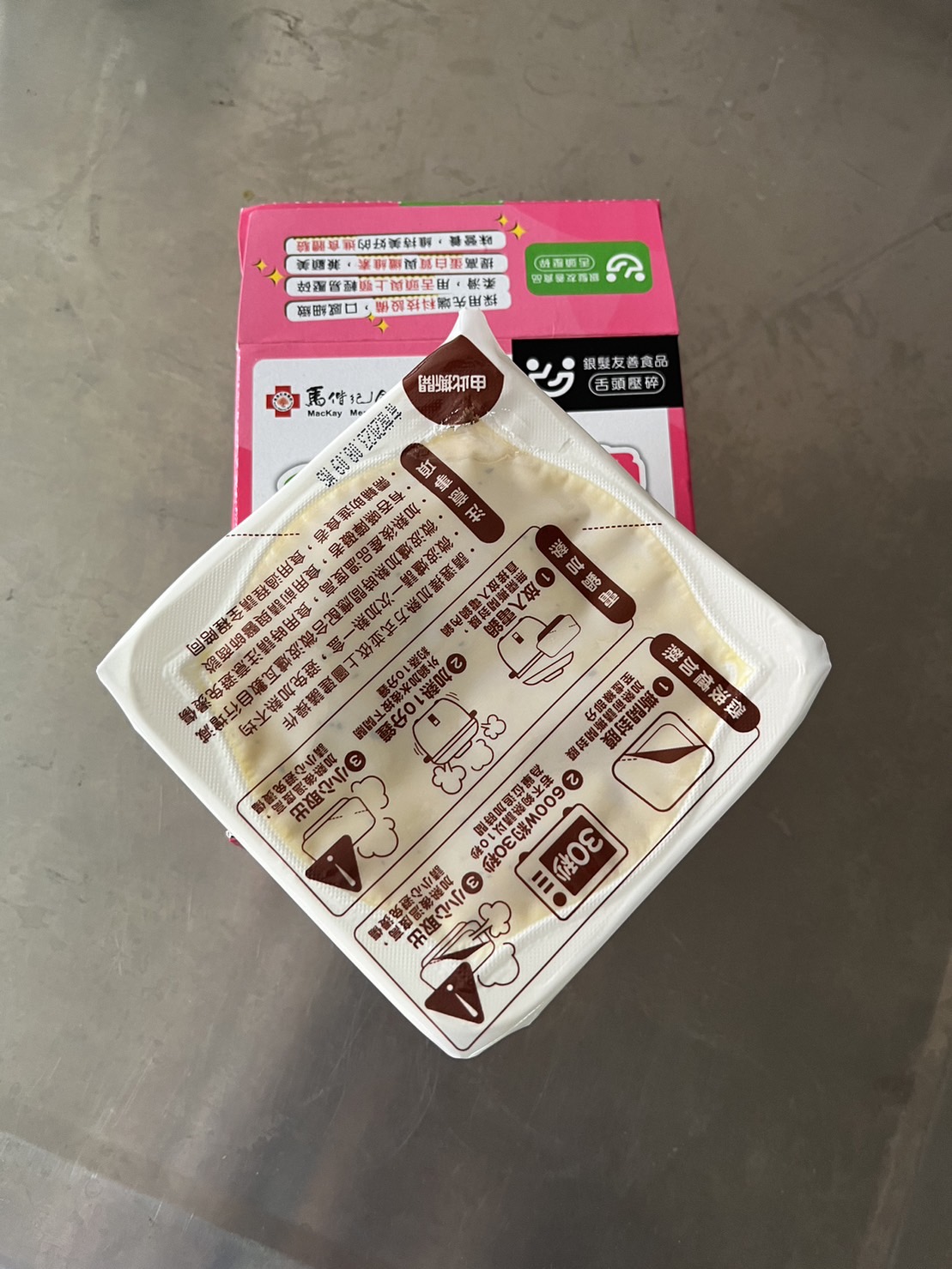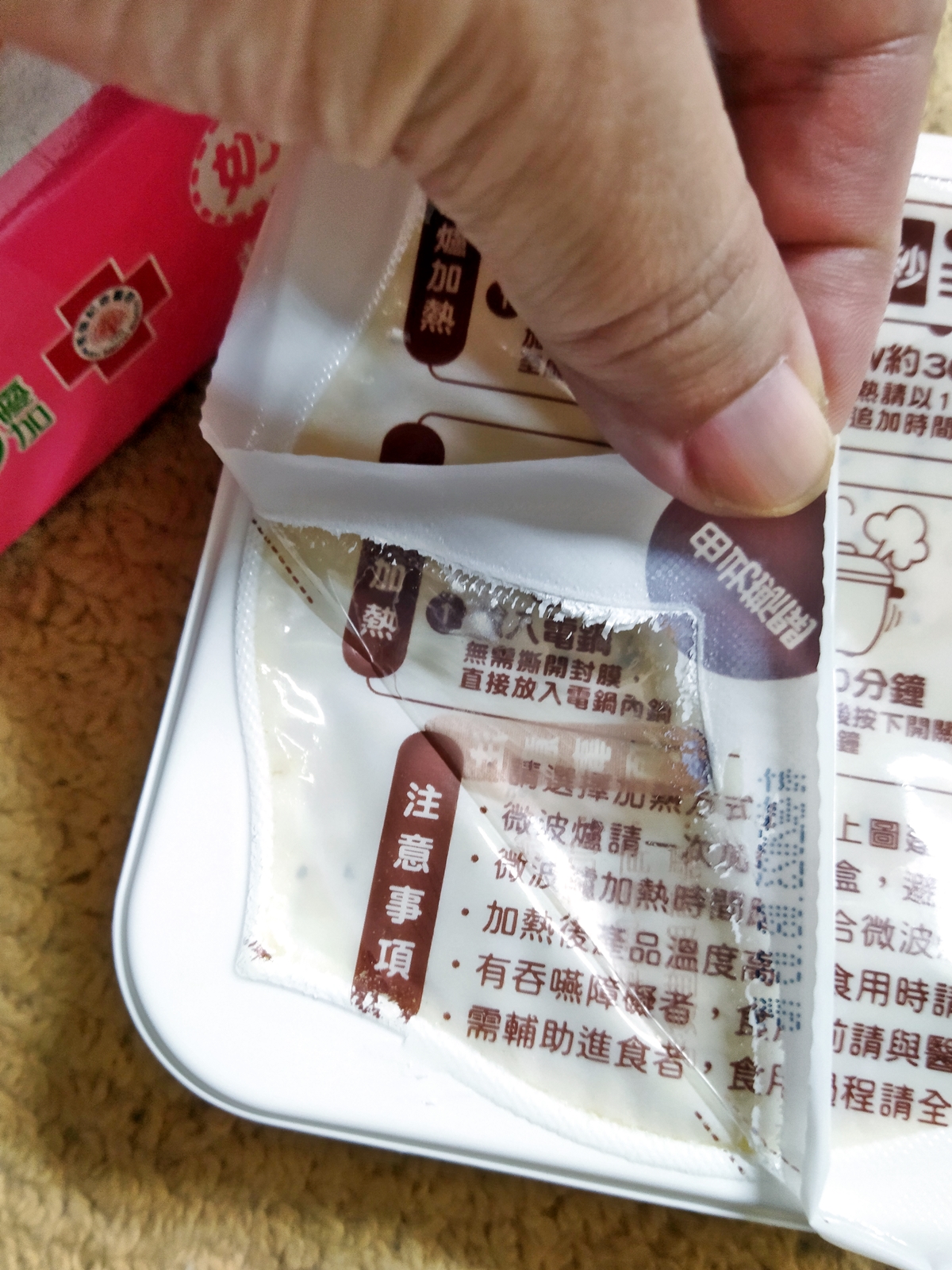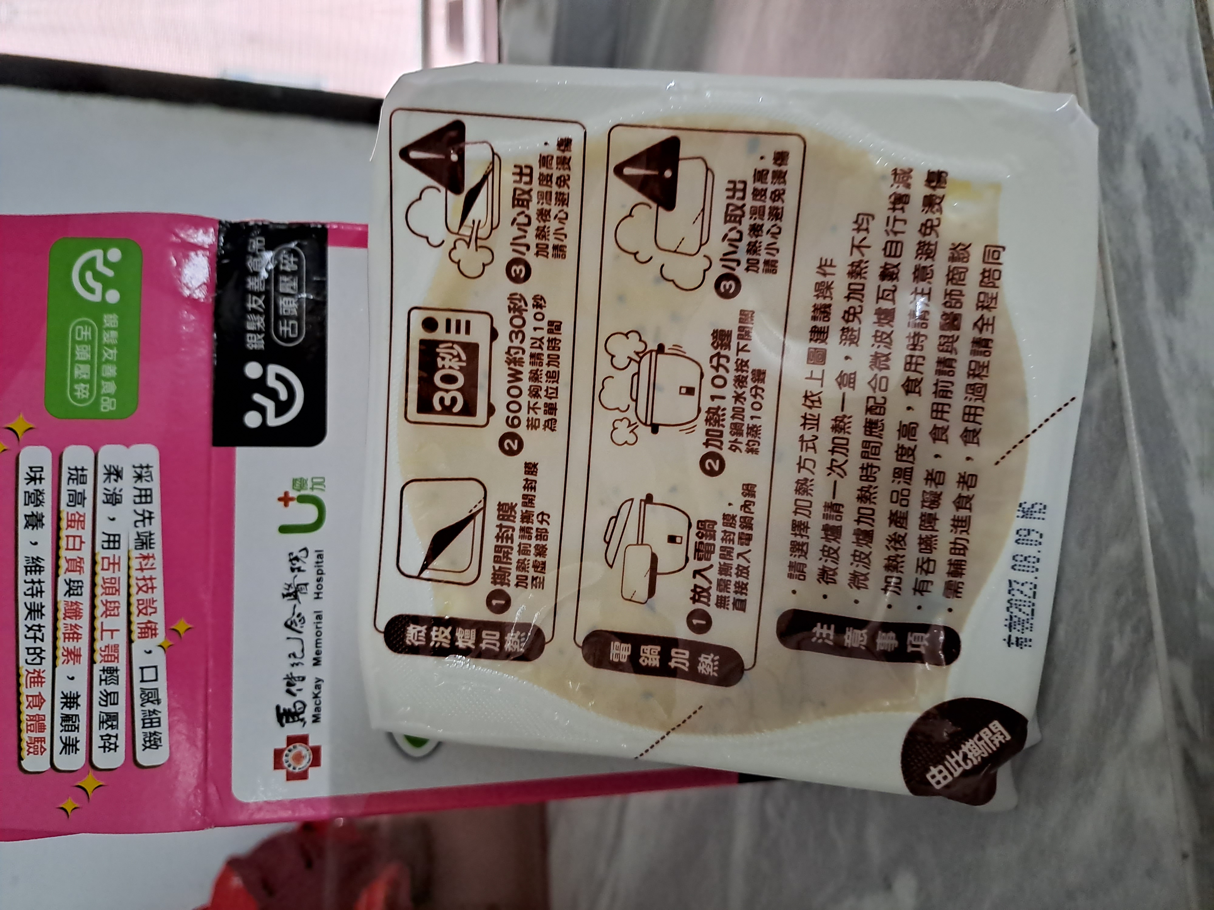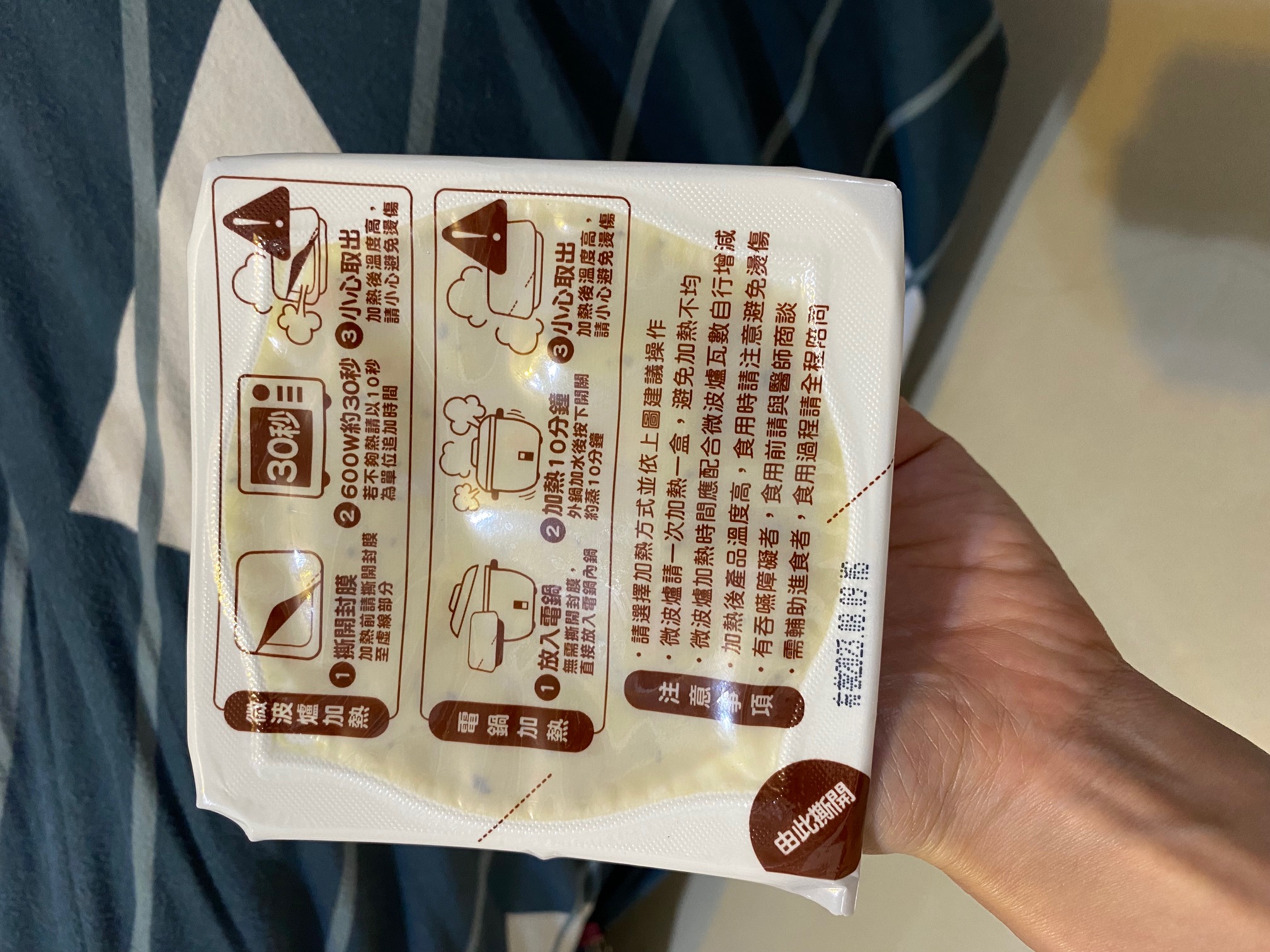 ‧微波爐【30秒】600W約30秒,封膜需撕開一小角,若不夠熱請以10秒為單位追加時間
