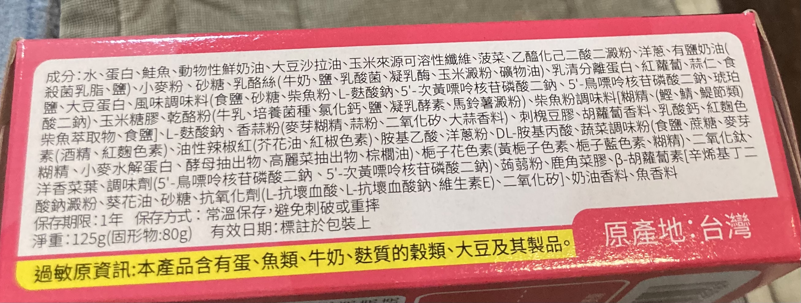 過敏原資訊:本產品含有蛋、魚類、牛奶、麩質的穀類、大豆及其製品"
