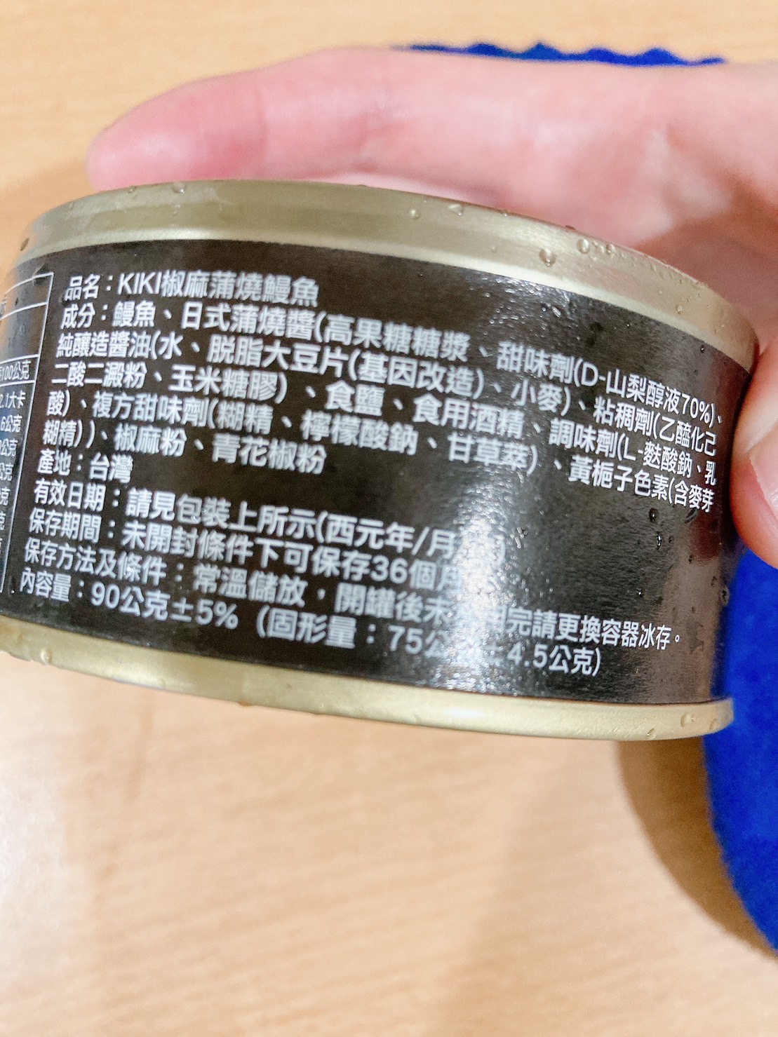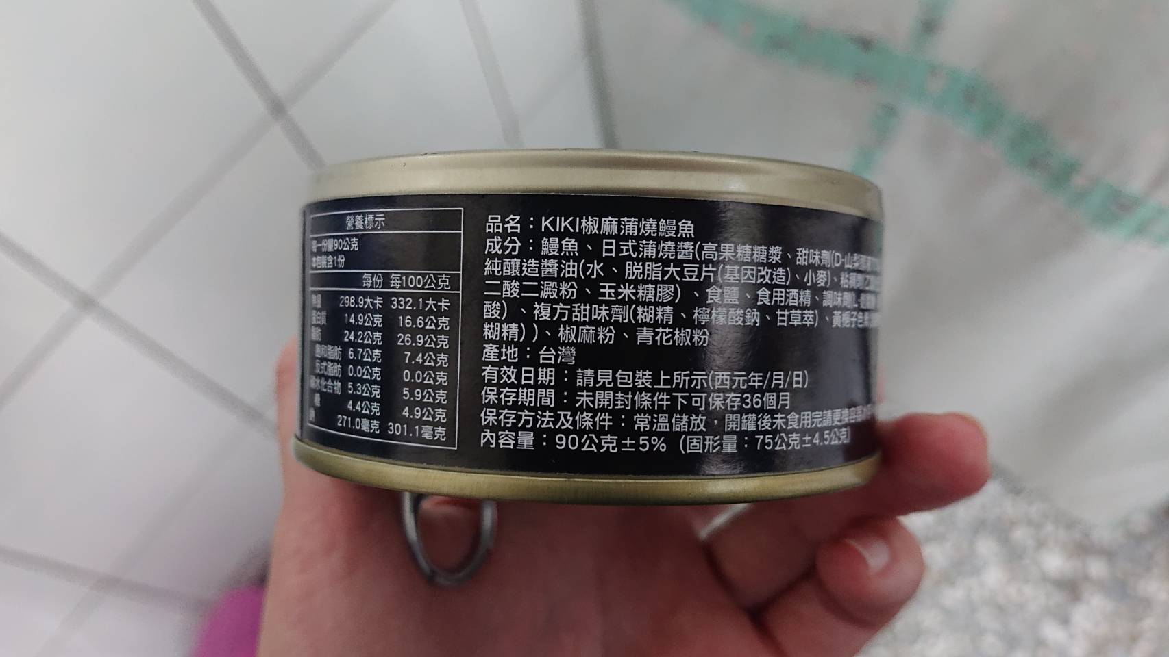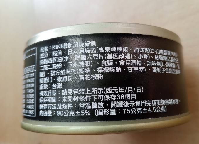 鰻魚、日式浦燒醬(高果糖糖漿、甜味劑(D-山梨醇液70%)、純釀造醬油(水、脫脂大豆片(基因改造)、小麥)、黏稠劑(乙醯化己二酸二澱粉、玉米糖膠)、食鹽、食用酒精、調味劑(L-麩酸鈉、乳酸、複方甜味劑(糊精、檸檬酸鈉、甘草萃)、黃梔子色素(含麥芽糊精)、椒麻粉、青花椒粉)。
