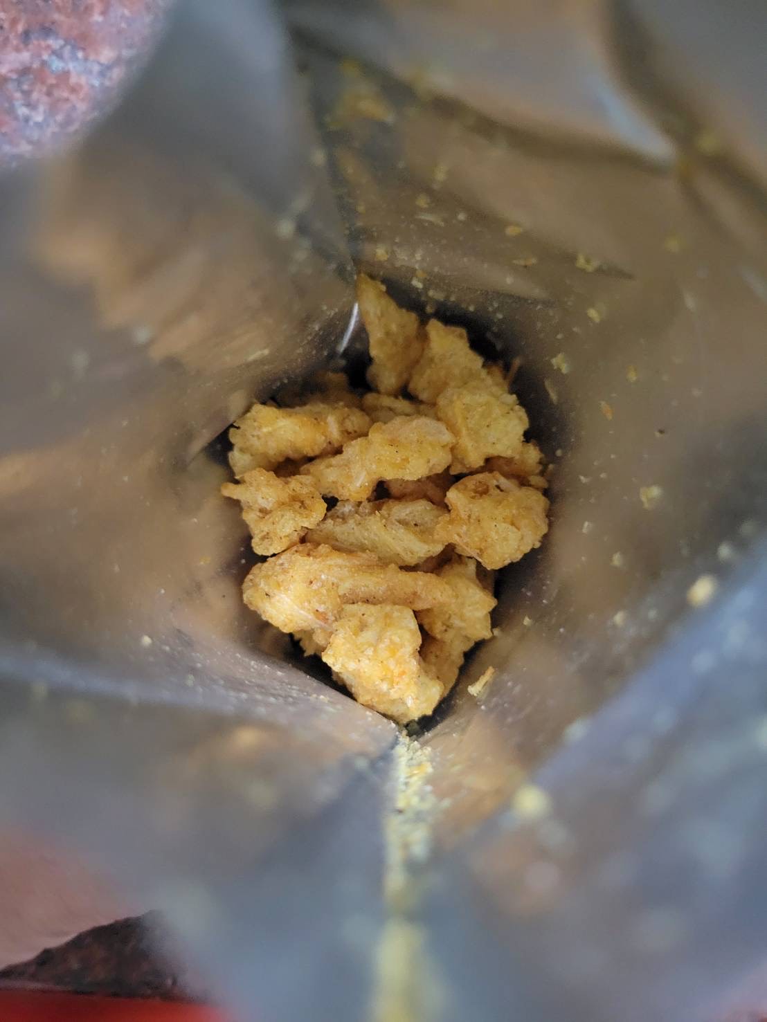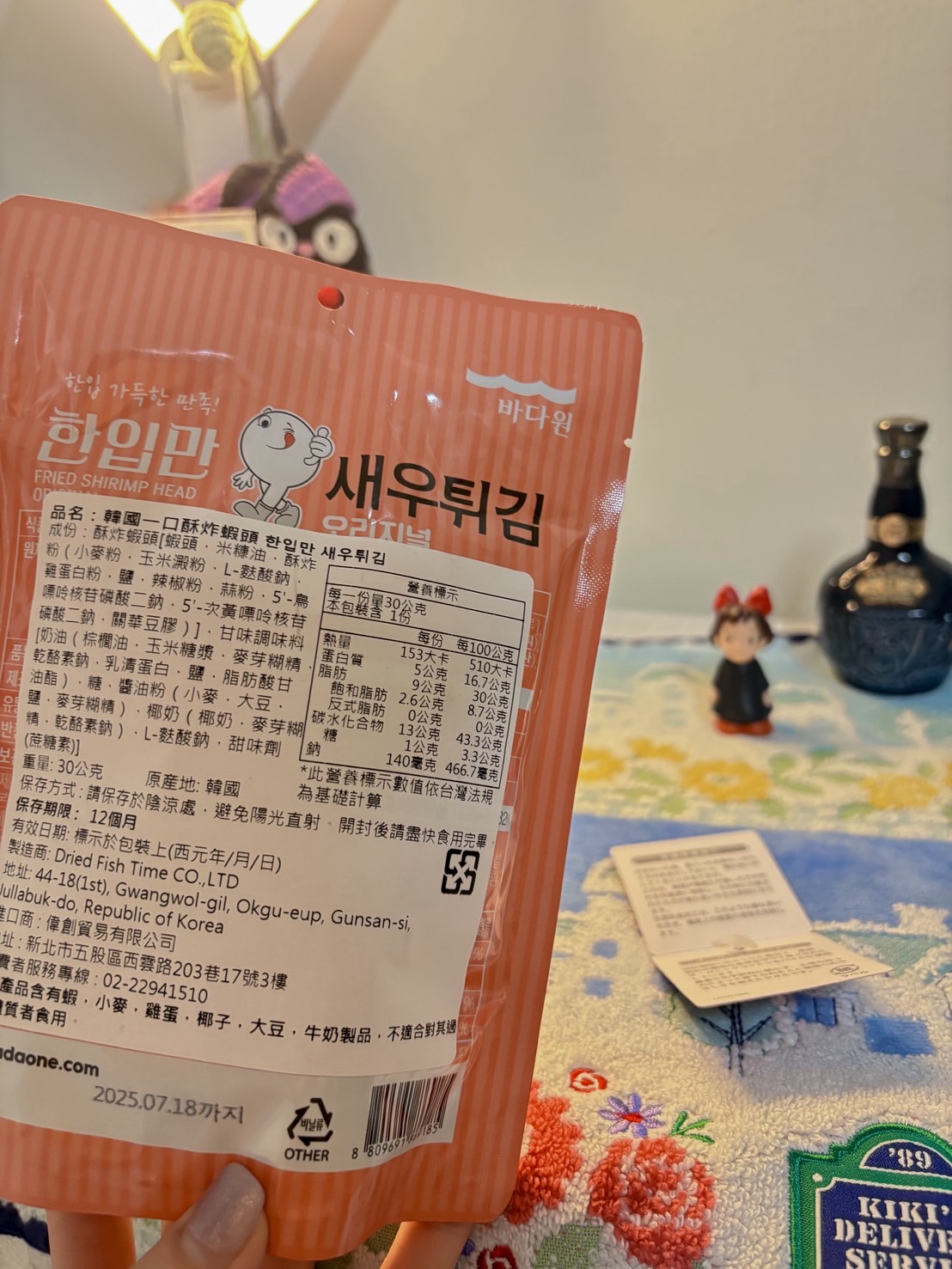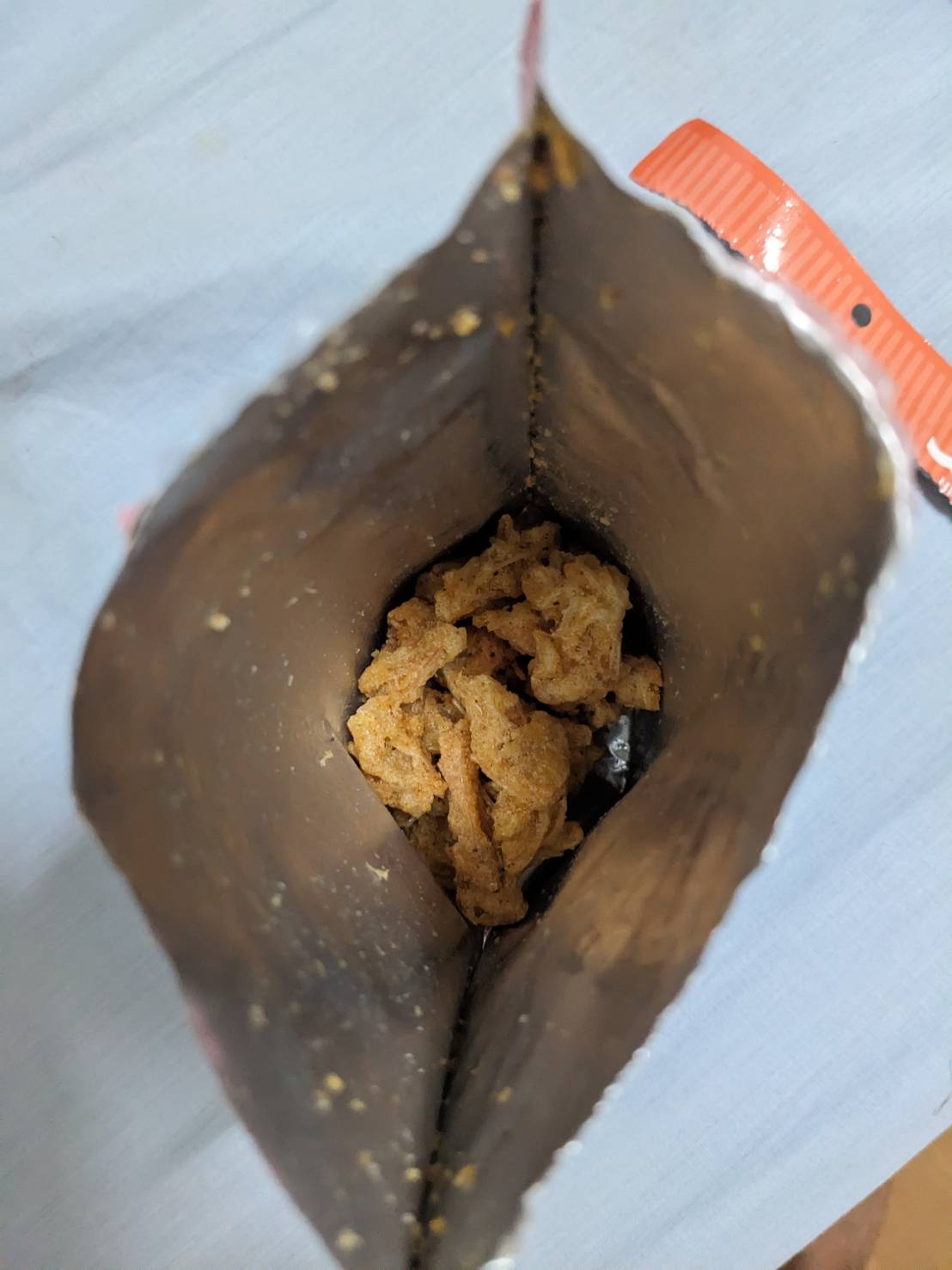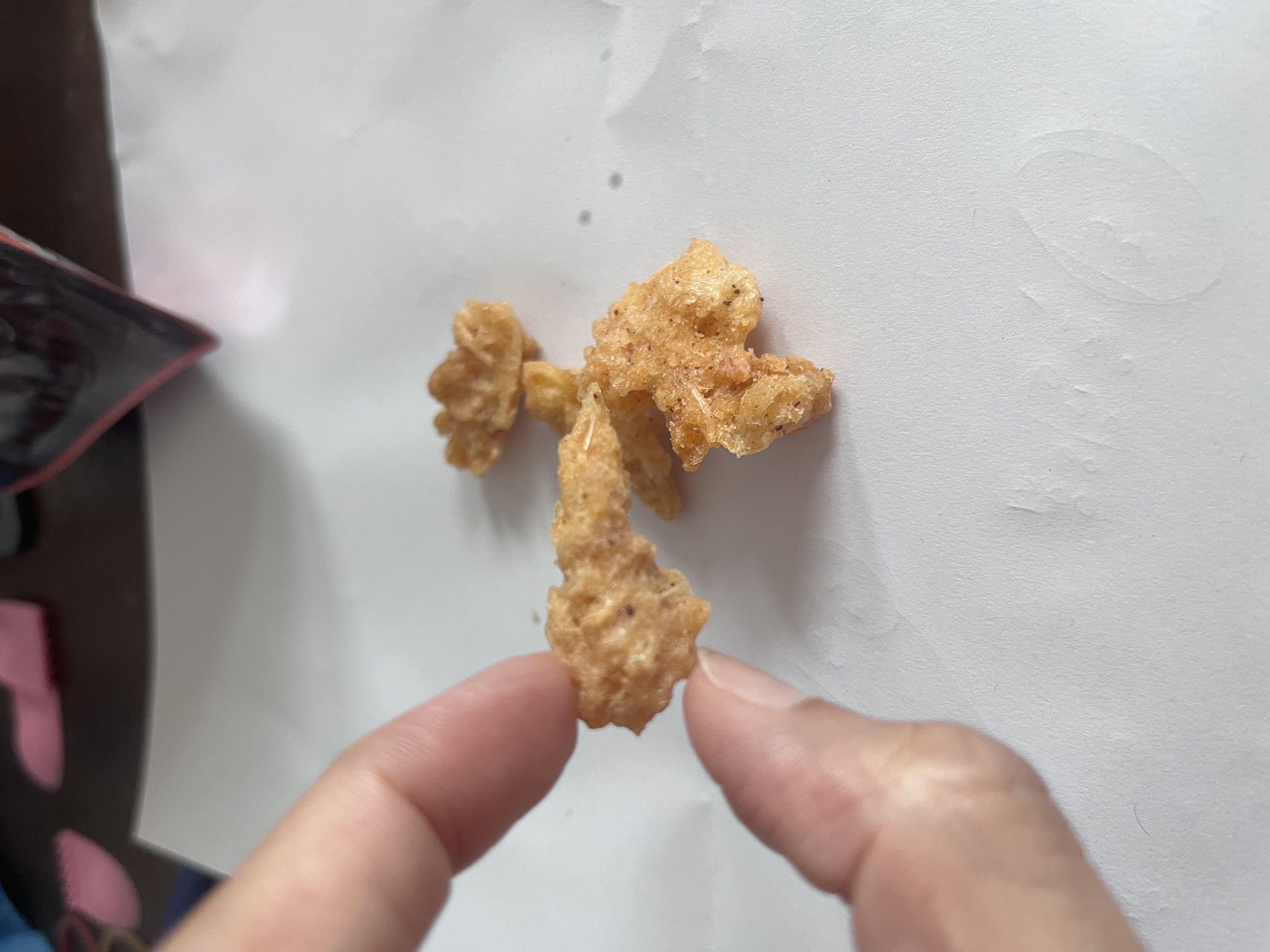 成分:酥炸蝦頭[蝦頭,米糠油,酥炸粉(小麥粉,玉米澱粉,L-麩酸鈉,雞蛋白粉,鹽,辣椒粉,蒜粉,5’-鳥嘌呤核苷磷酸二鈉,5’-次黃嘌呤核苷磷酸二鈉,關華豆膠)],甘味調味料[植物性油脂(棕櫚油,玉米糖漿,麥芽糊精,乾酪素鈉,乳清蛋白,鹽,脂肪酸甘油酯),糖,醬油粉(小麥,大豆,鹽,麥芽糊精),椰奶(椰奶,麥芽糊精,乾酪素鈉),L-麩酸鈉,甜味劑(蔗糖素)]