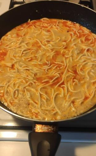 將叻沙醬與叻沙調配粉倒入500ml的水中均勻攪拌並煮沸