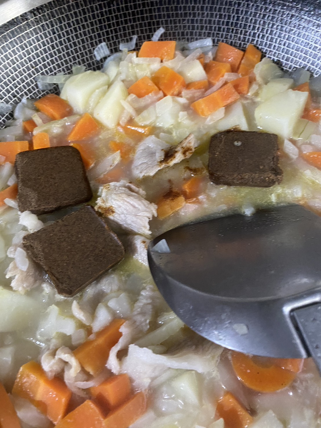 建議先將洋蔥、紅蘿蔔、馬鈴薯與雞肉等配料炒香以增加風味。隨後加入約600ml水(可依個人濃淡調整)煮沸燉煮至食材熟透。最後關火放入咖哩塊,攪拌至融化後,再用小火慢燉約5分鐘收汁即可。