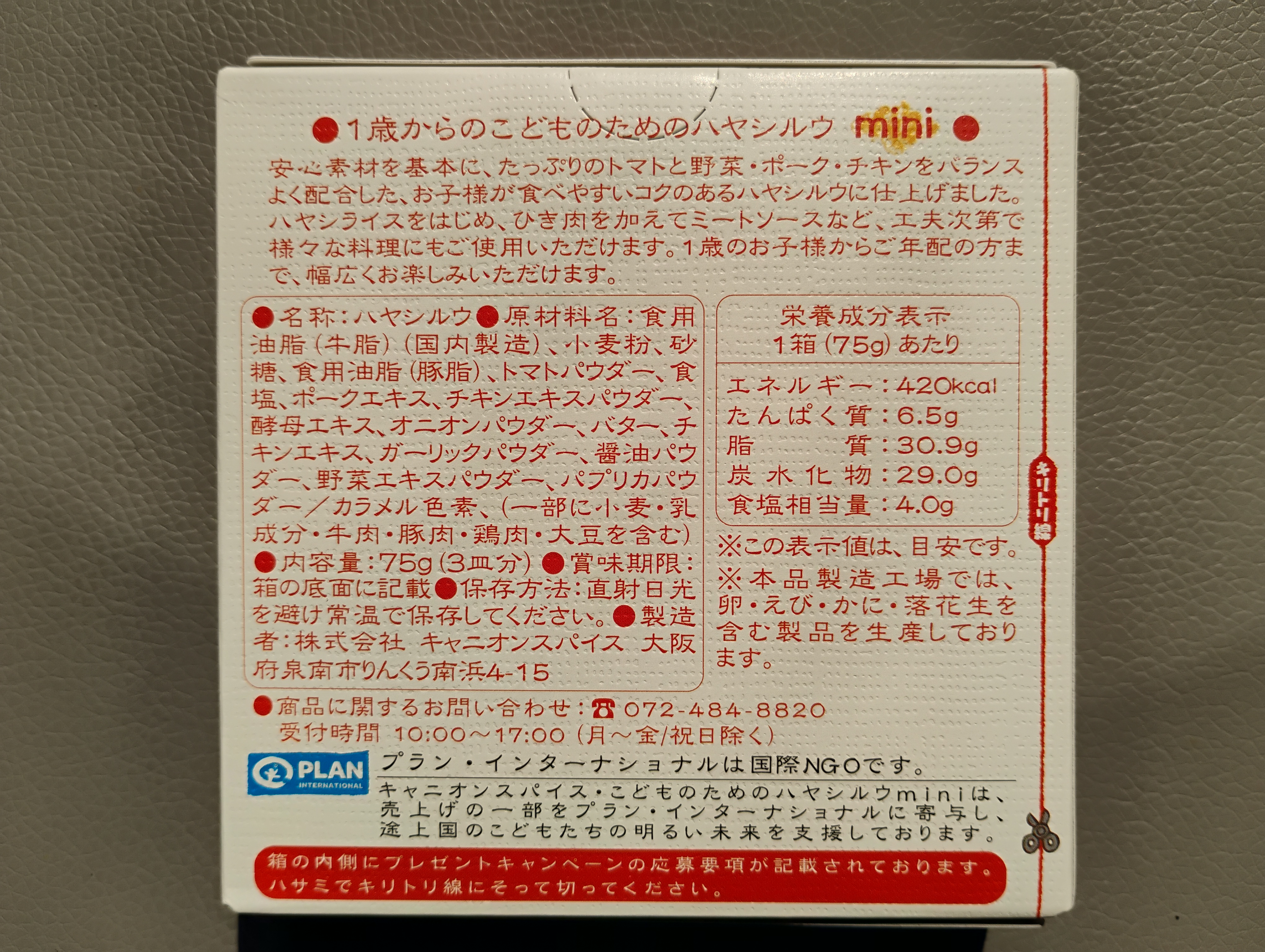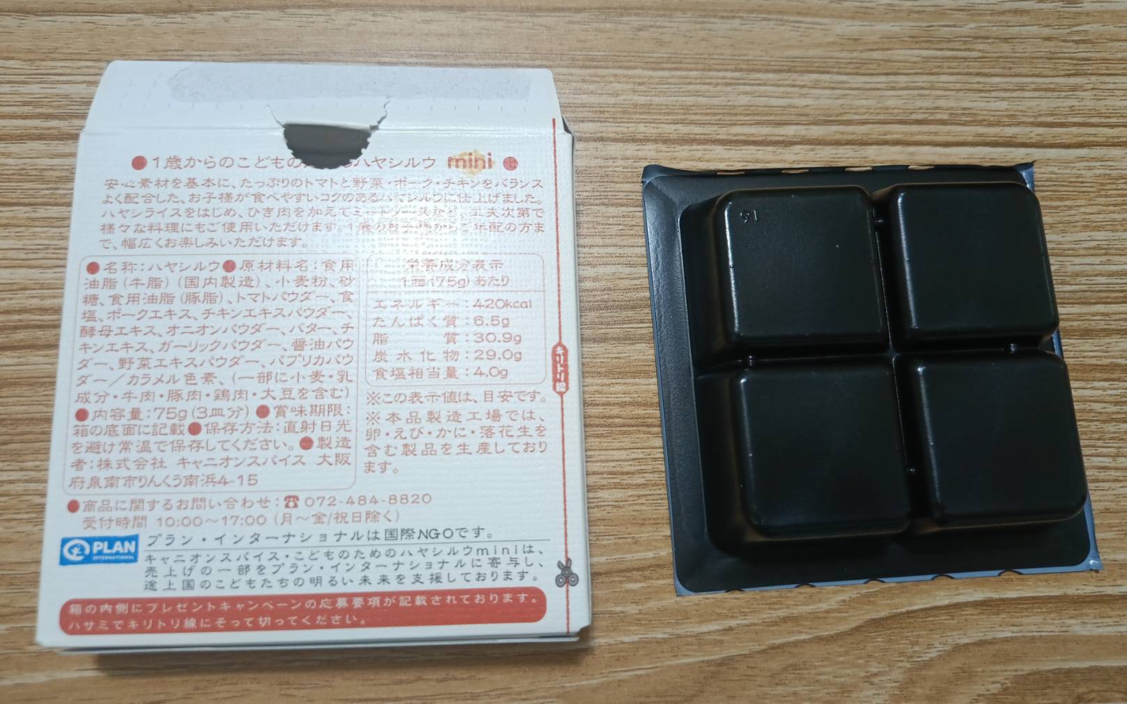 食用油(豬油)、小麥粉、粗砂糖、玉米澱粉、雞肉萃取物、脫脂奶粉、鹽、水解豬肉蛋白、甜棗萃取粉、奶油、洋蔥粉、大蒜粉、柳橙粉、酵母萃取物、醬油粉(大豆.小麥.食鹽.糊精)、咖哩粉(薑黃.小茴香)、薑黃、番茄粉、胡蘿蔔粉、南瓜粉、鳳梨粉。