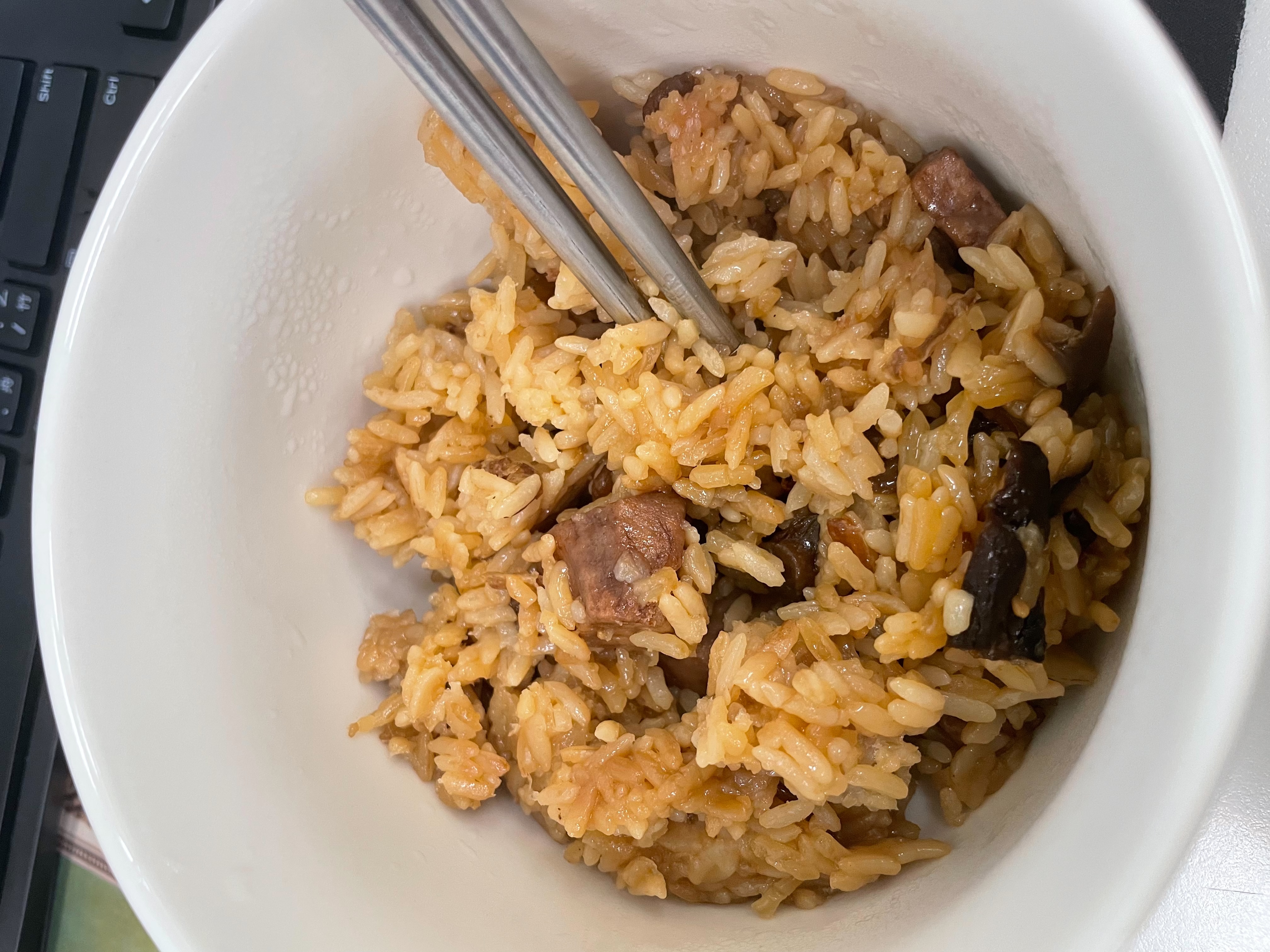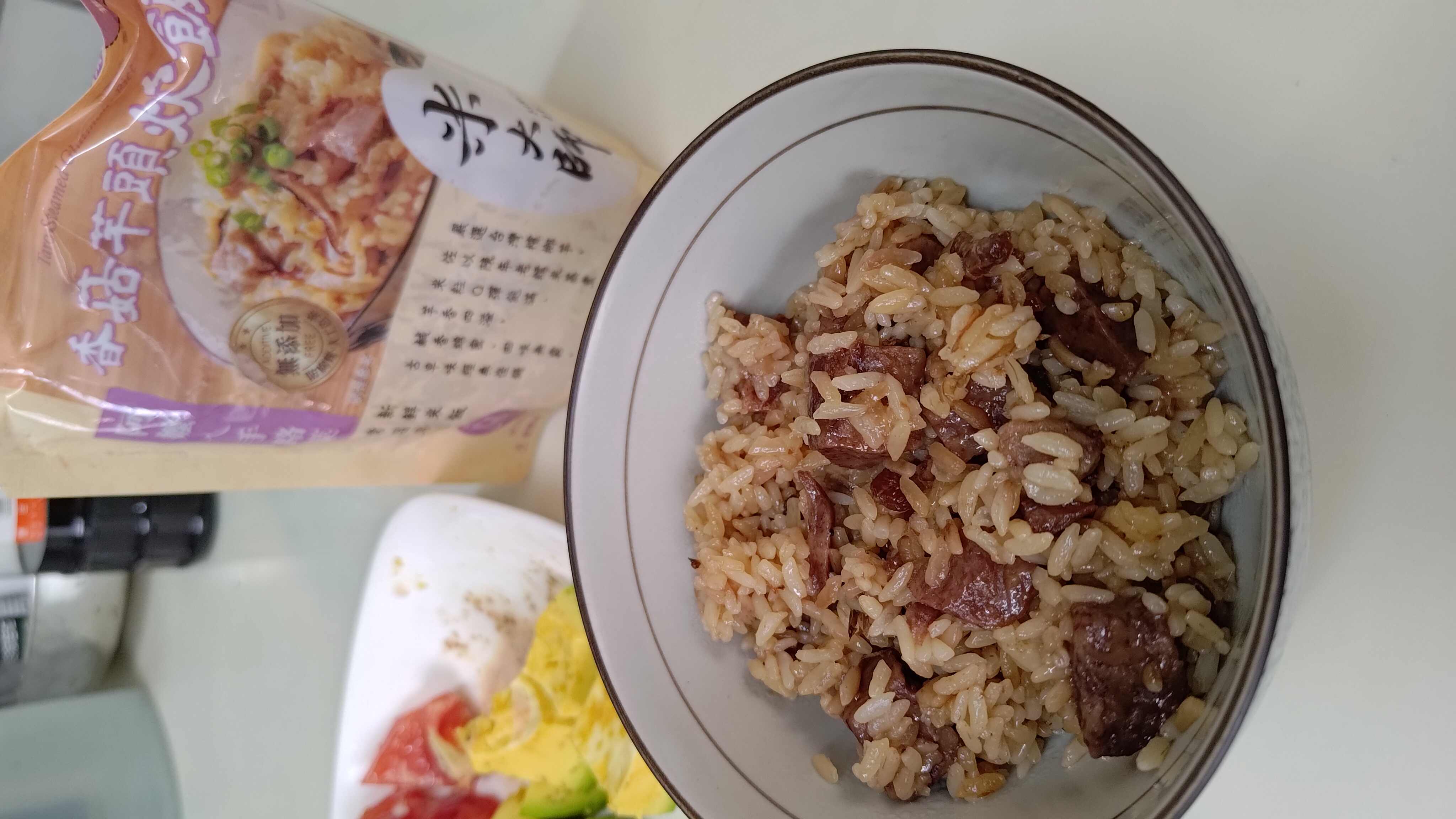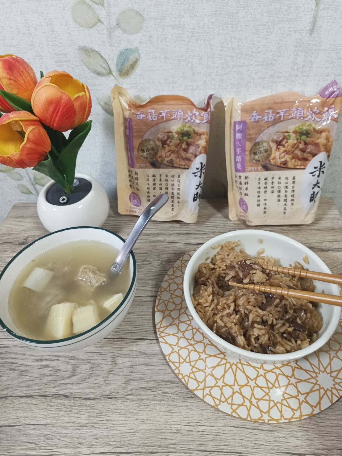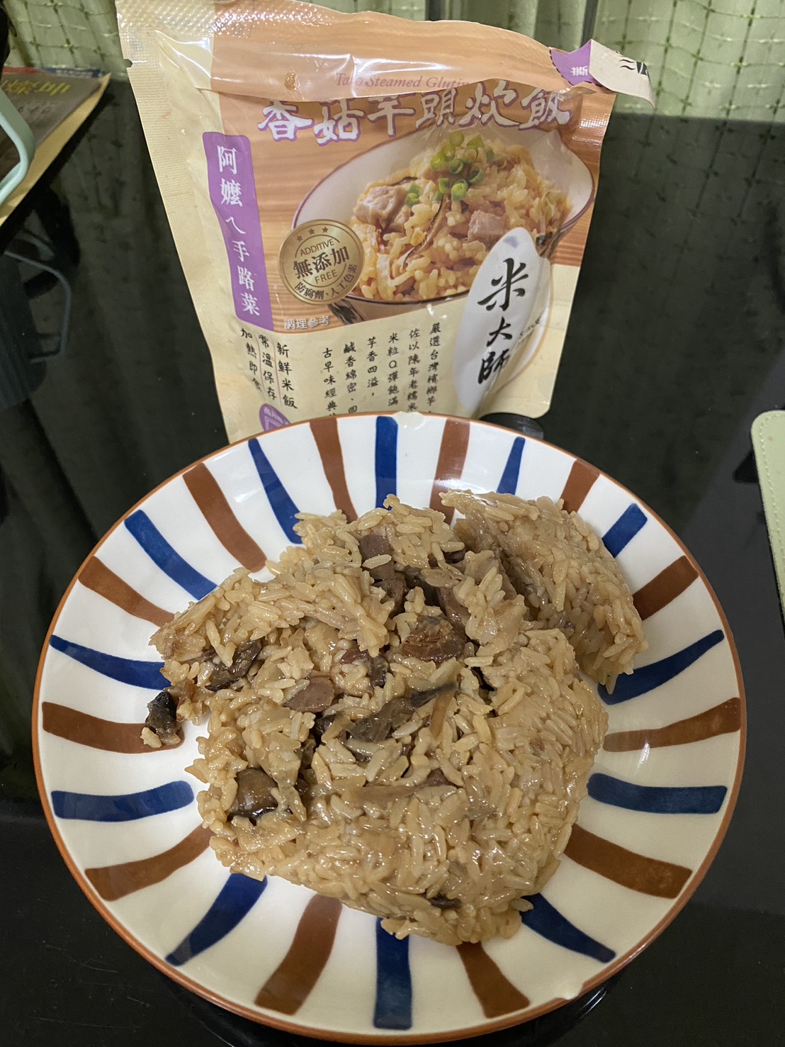 成分:水、白米、芋頭、糯米、香菇、蝦、紅蔥頭、豬油(產地:加拿大)、複方調味粉(L-麩酸鈉、胺基乙酸、琥珀酸二鈉、DL-胺基丙酸、5'-次黃嘌呤核苷磷酸二鈉、5'-鳥嘌呤核苷磷酸二鈉、麥芽糊精、鹽、糖、雞肉抽出物、玉米澱粉、軟質棕油、檸檬酸、洋蔥粉、L-天門冬酸鈉、檸檬酸鈉、二氧化矽)、蔗糖、釀造醬油、食鹽、棕櫚油、紅蔥粉、白胡椒粉、黑胡椒粉、雞肉、西洋芹、白蘿蔔、紅蘿蔔、洋蔥、香蔥調味油(棕櫚油、大豆油、蔥萃取物)、肉燥香料(中鏈三酸甘油脂、香料)、芋頭香料(中鏈三酸甘油脂、芋頭香料)、香菇香料(芝麻油、香料、中鏈三酸甘油脂)