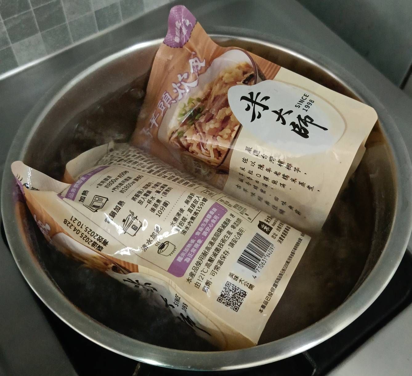 沸水加熱:水煮沸後,無需拆包裝,直接放入沸水內煮沸15分鐘