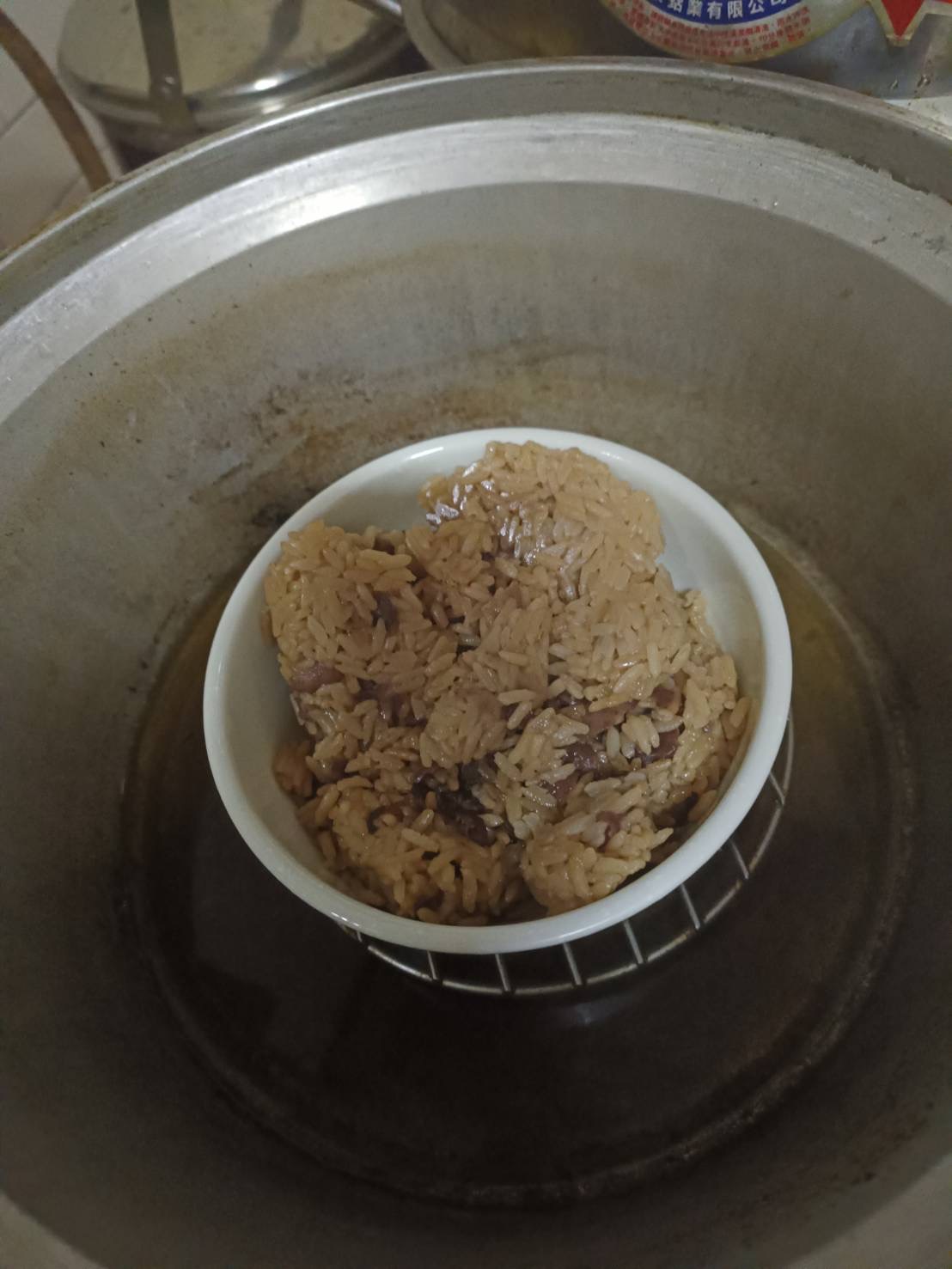 電鍋加熱:將飯倒入容器內,放入電鍋,外鍋加一杯水,蓋上鍋蓋後蒸煮約10分鐘