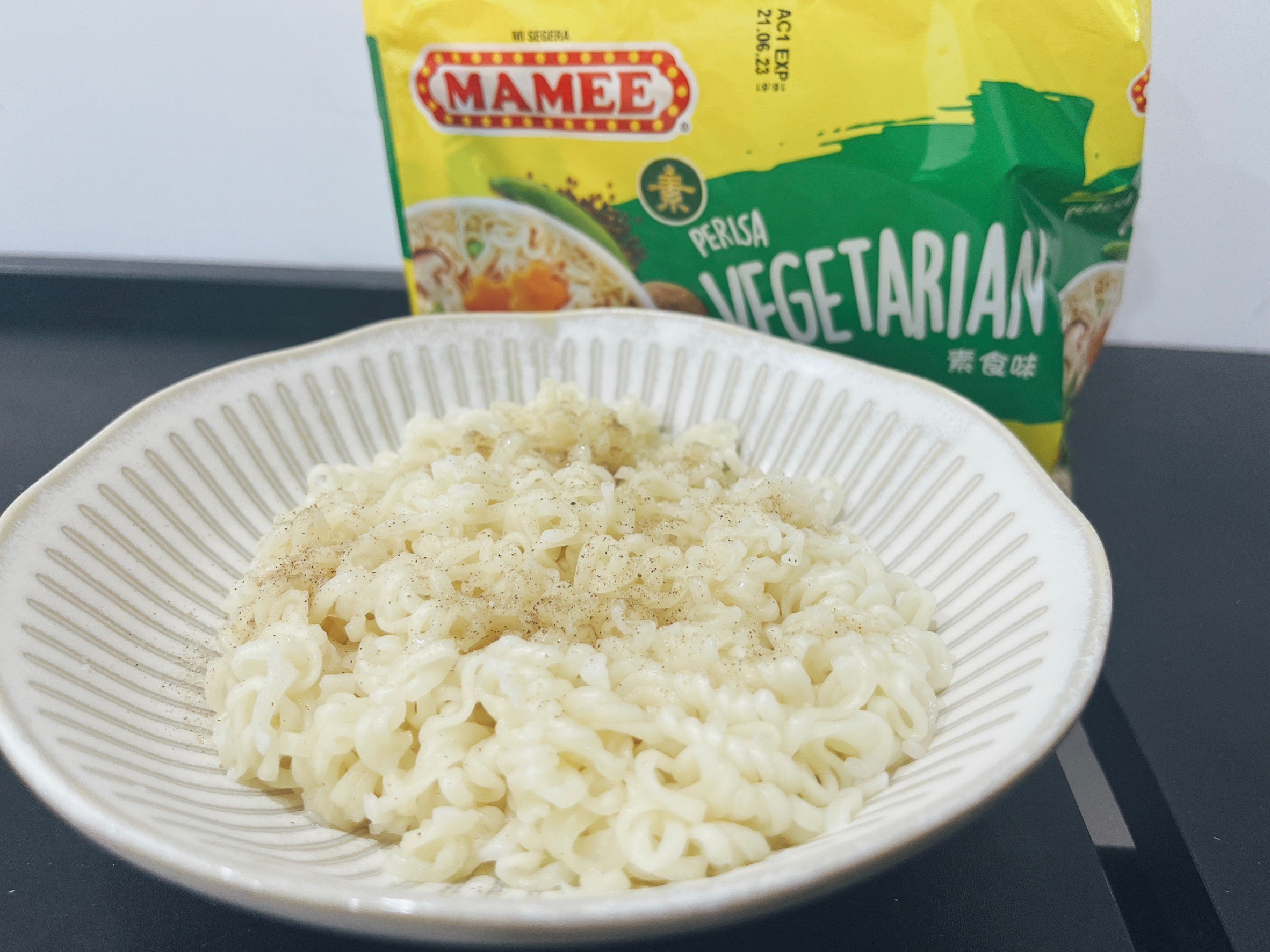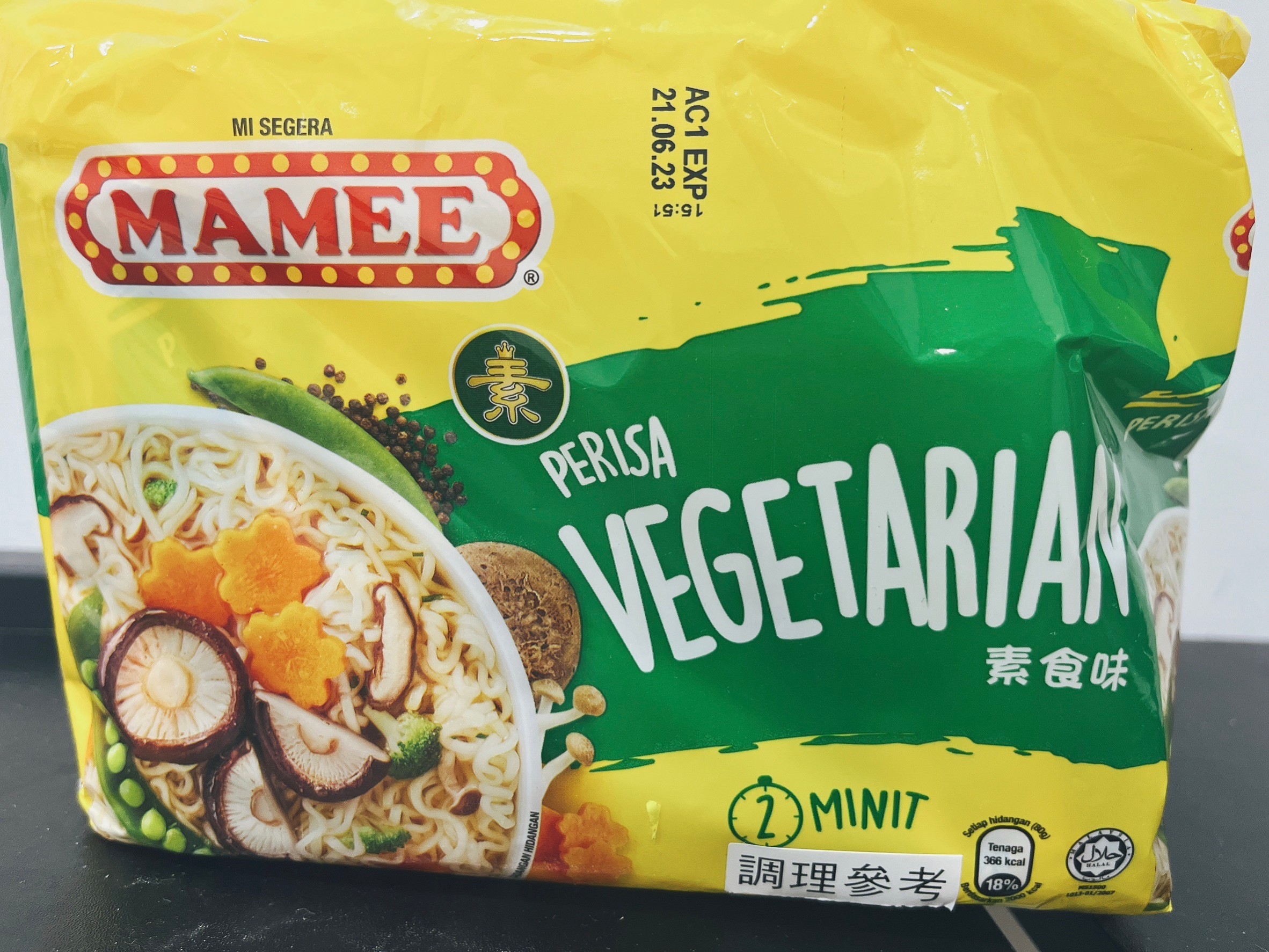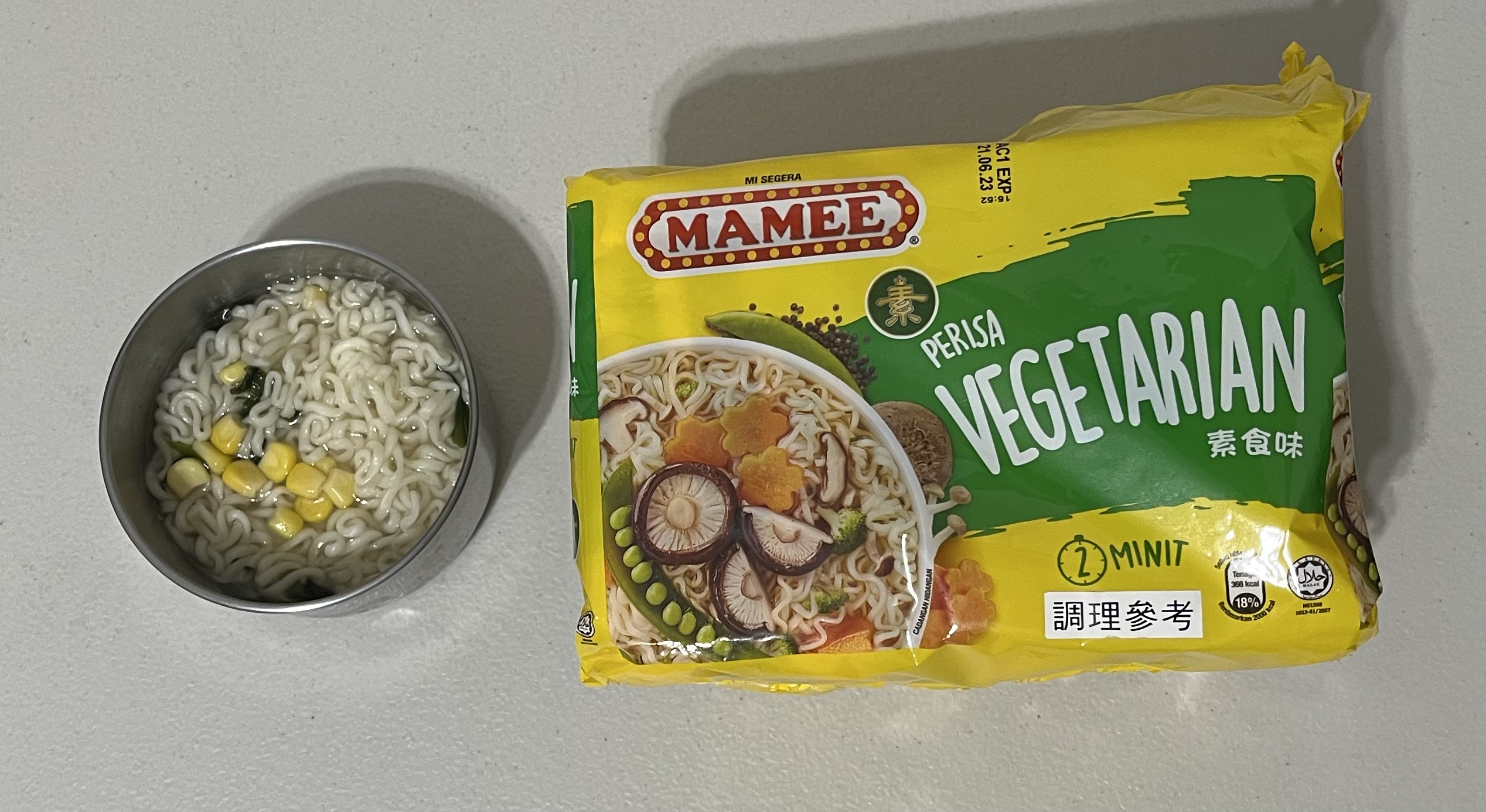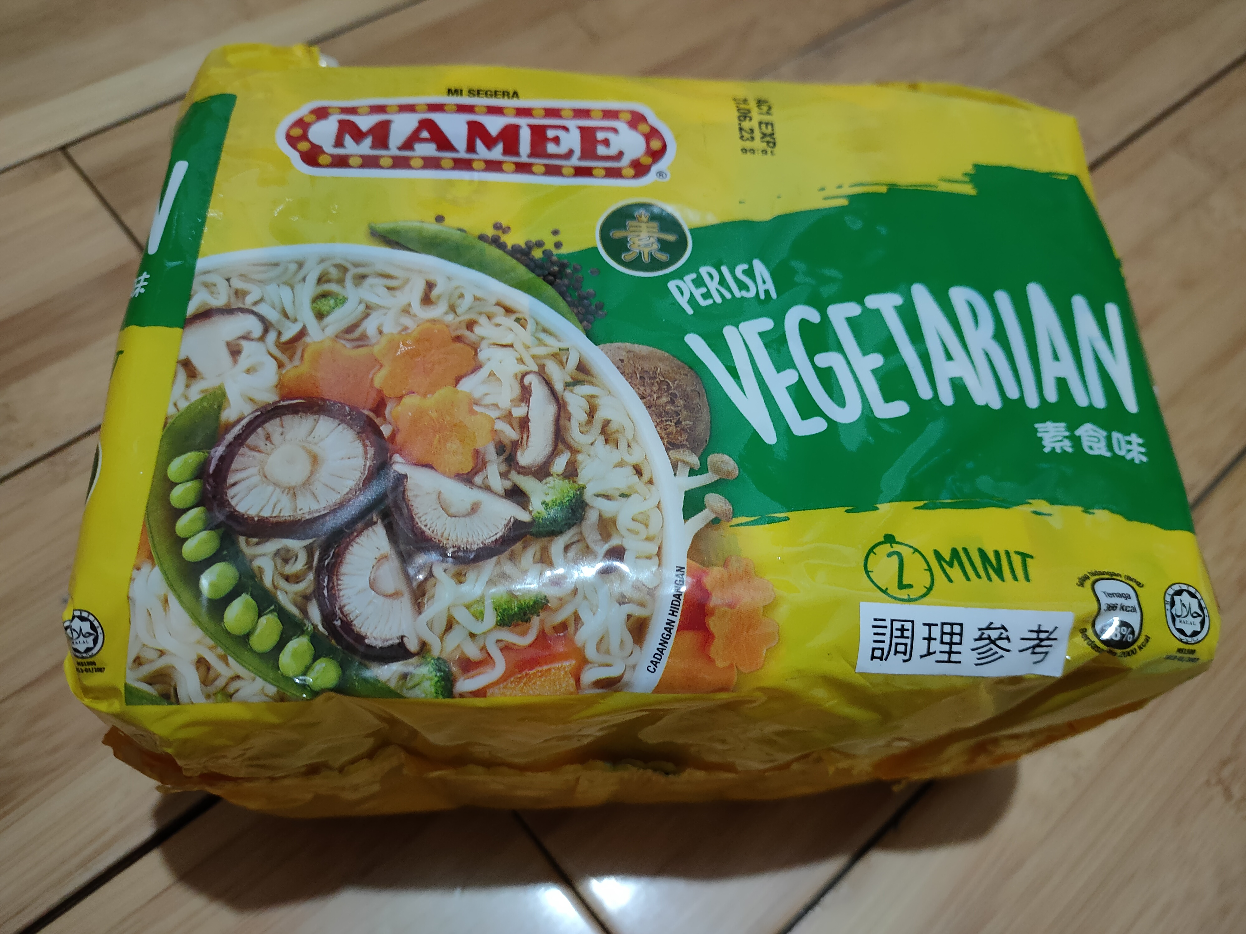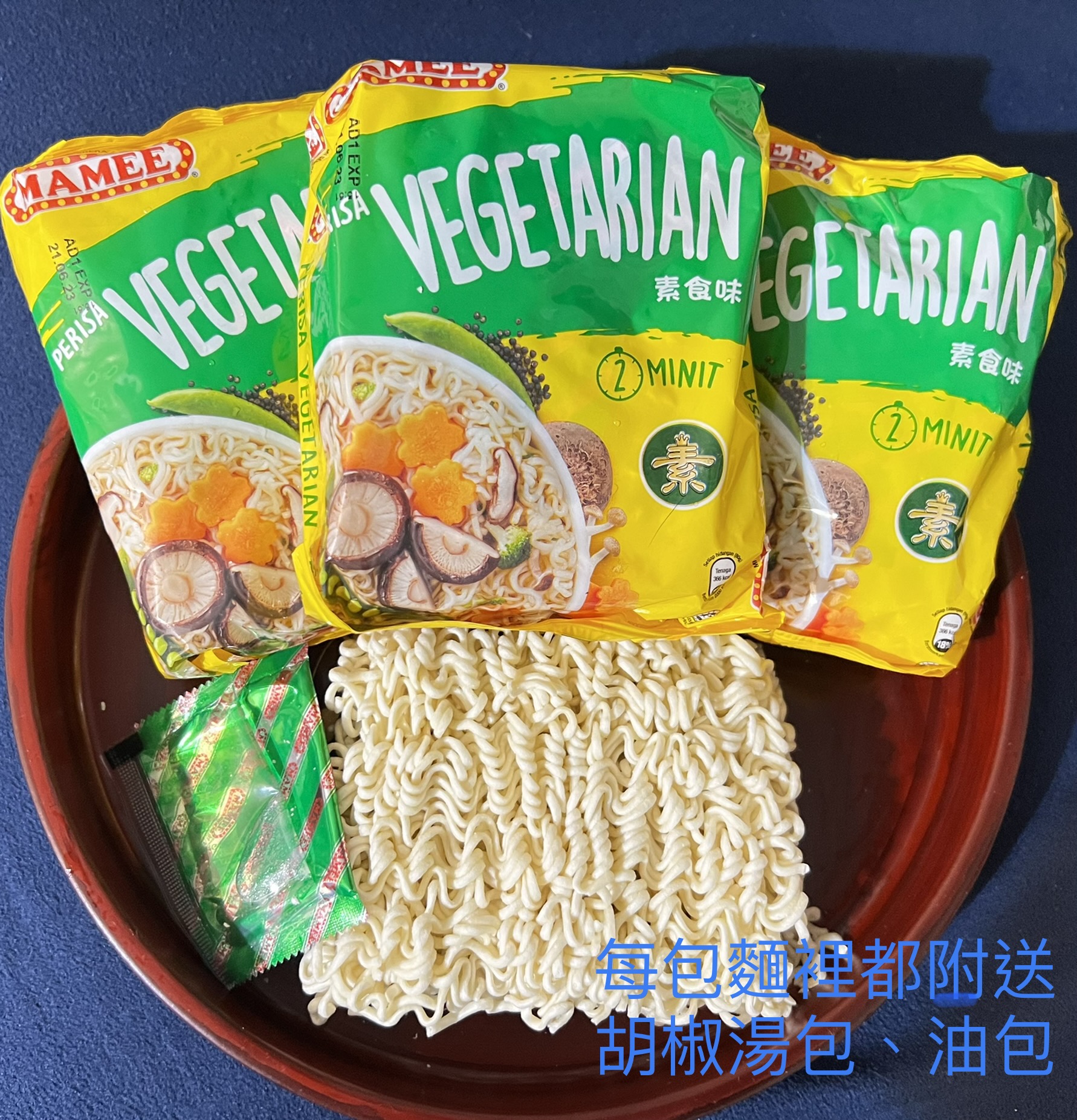 麵體: 小麥粉、棕櫚油﹝含有抗氧化劑(二丁基羥基甲苯)﹞、鹽、複方品質改良劑(多磷酸鈉、碳酸鉀、關華豆膠); 調味粉:鹽、L-麩酸鈉、5’-鳥嘌呤核苷磷酸二鈉、5’-次黃嘌呤核苷磷酸二鈉、糖、白胡椒、黑胡椒;風味油:軟質棕櫚油。