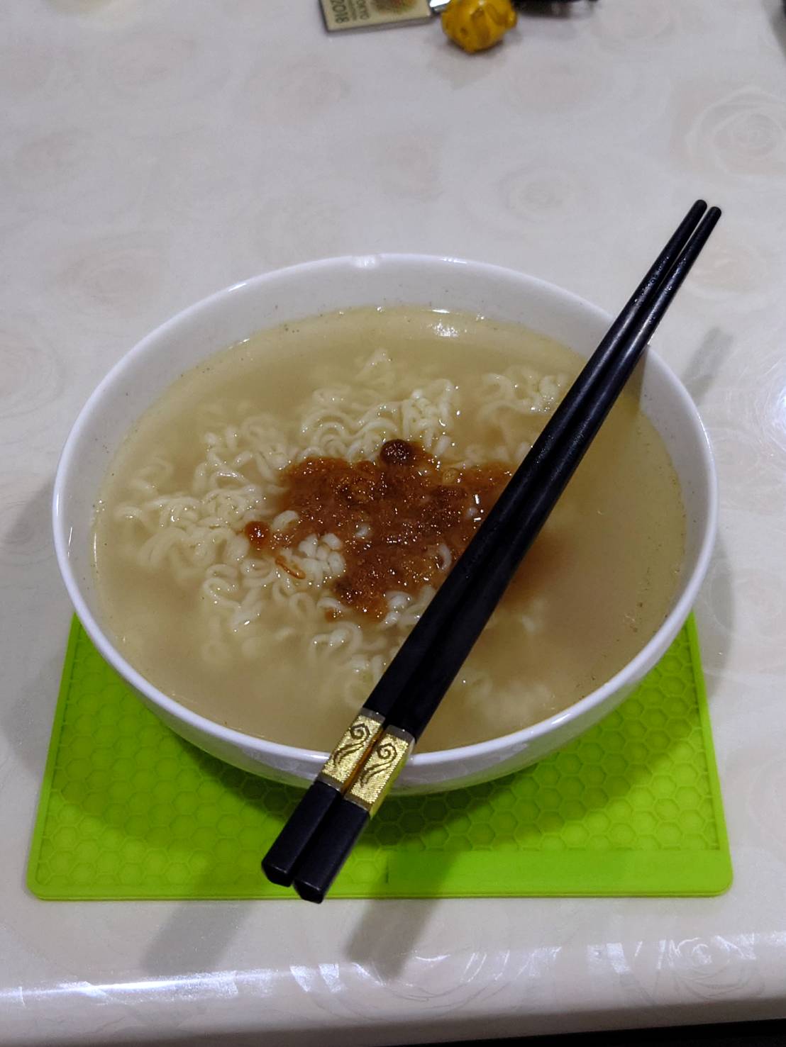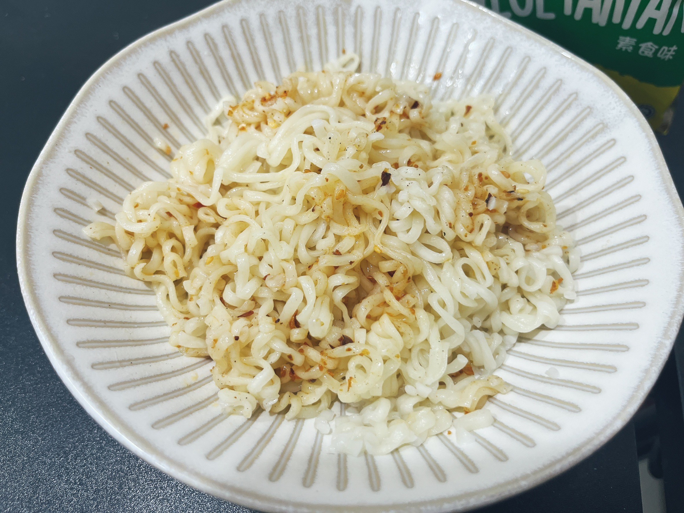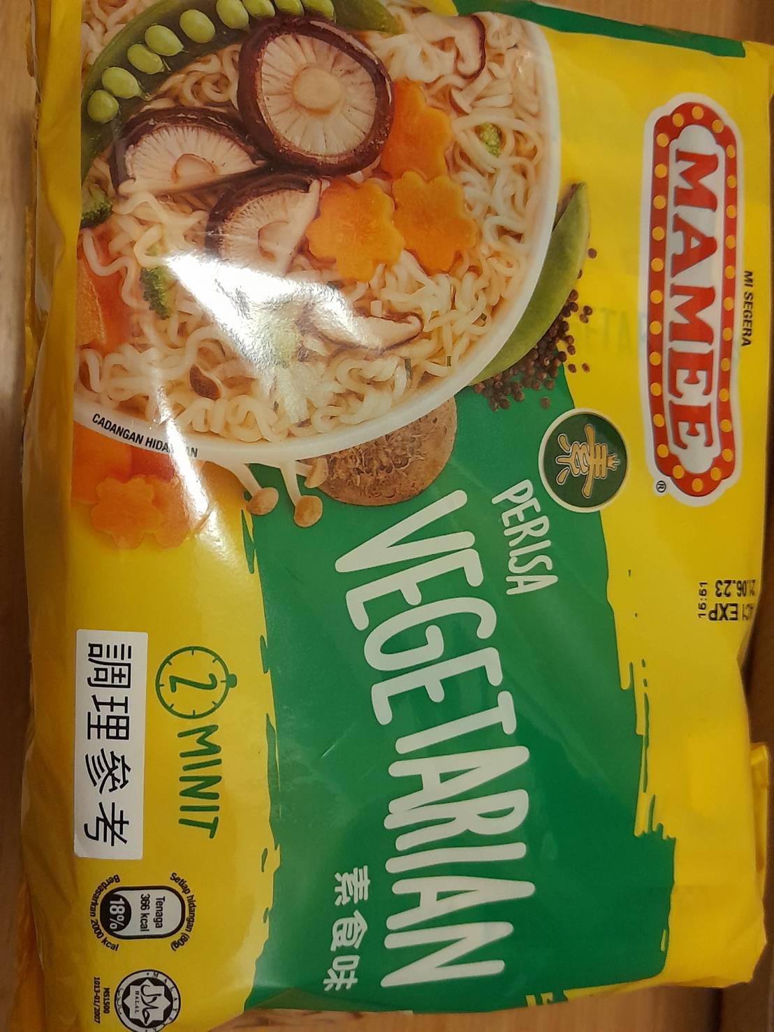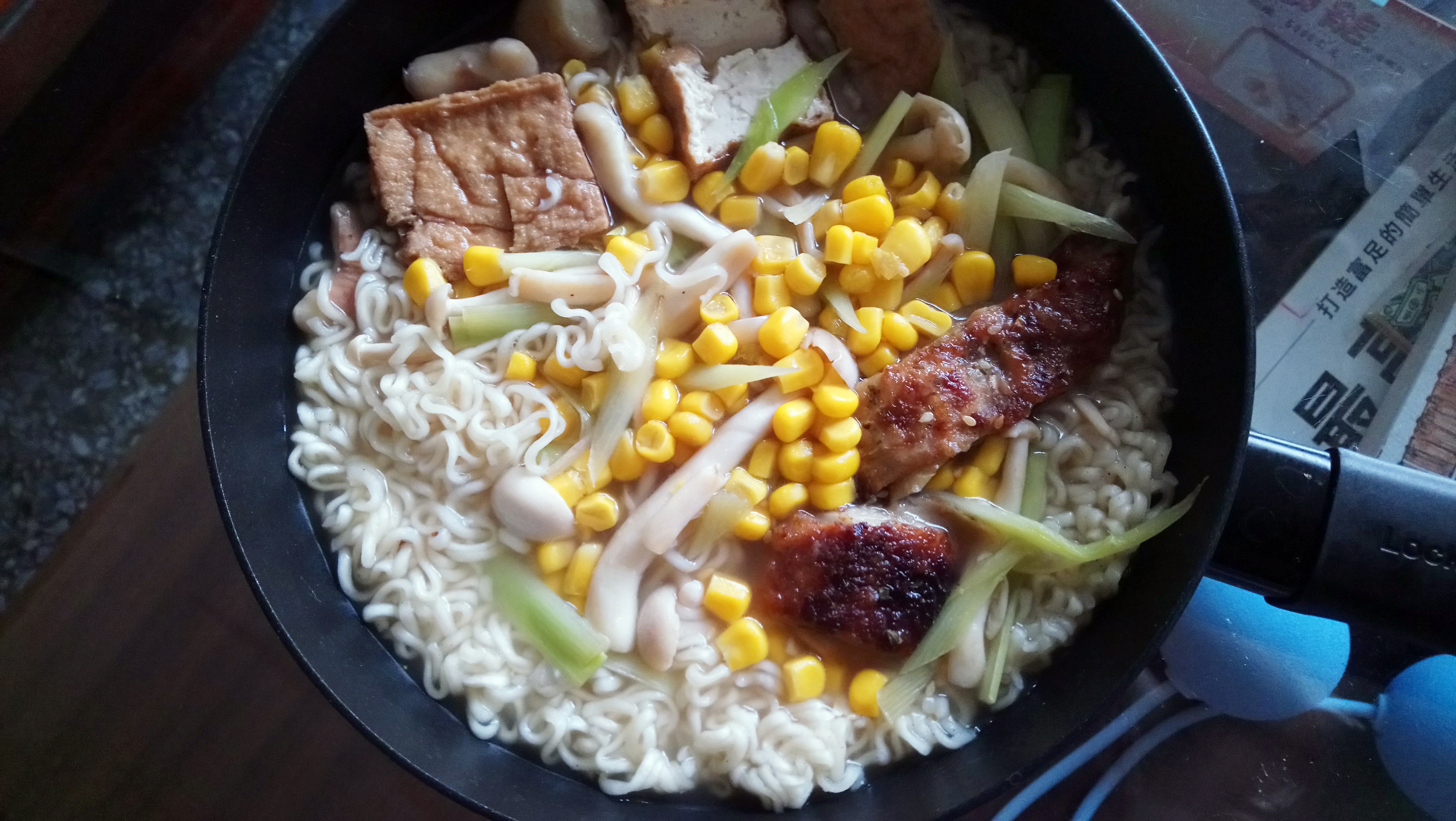 麵體: 小麥粉、棕櫚油﹝含有抗氧化劑(二丁基羥基甲苯)﹞、鹽、複方品質改良劑(多磷酸鈉、碳酸鉀、關華豆膠); 調味粉:鹽、L-麩酸鈉、5’-鳥嘌呤核苷磷酸二鈉、5’-次黃嘌呤核苷磷酸二鈉、糖、白胡椒、黑胡椒;風味油:軟質棕櫚油。