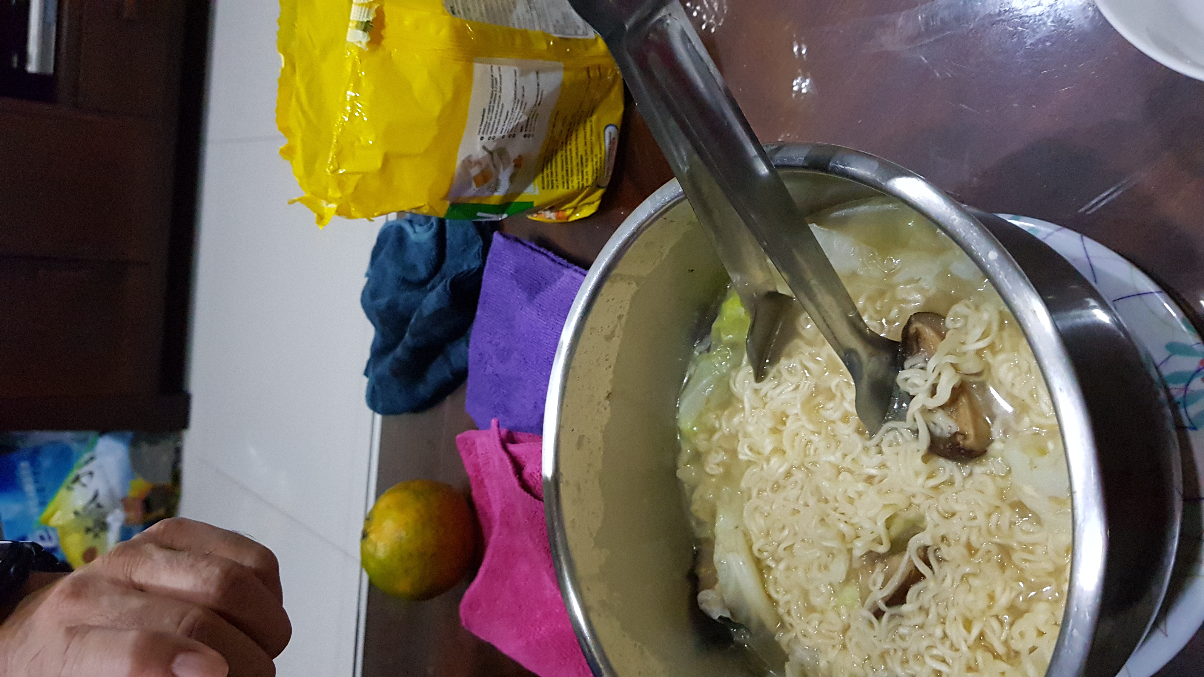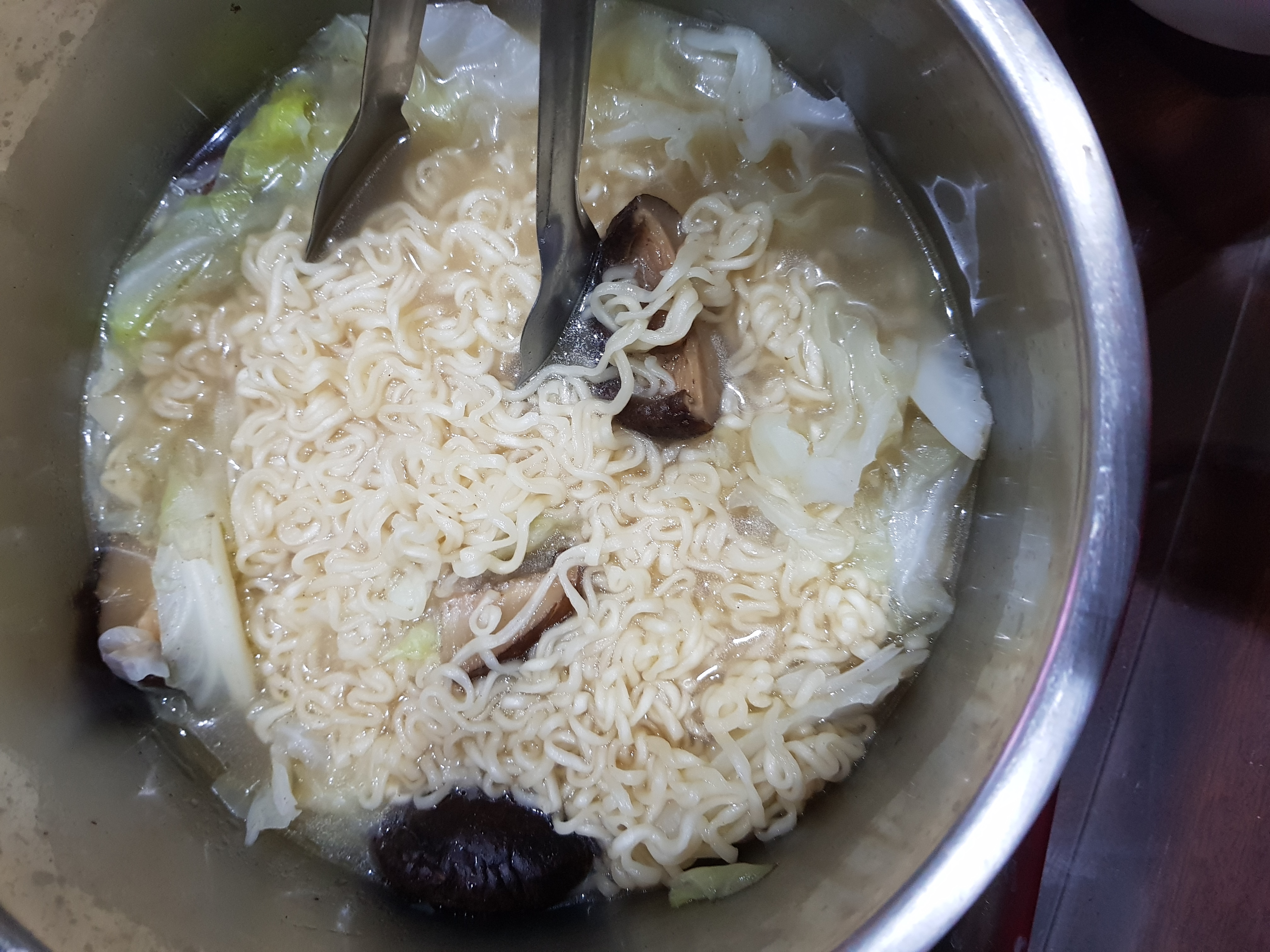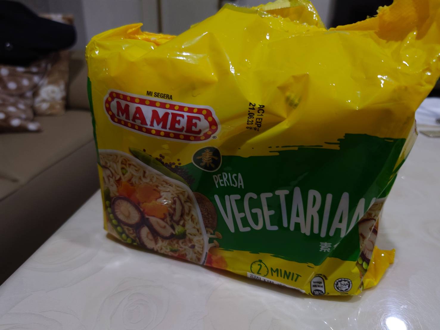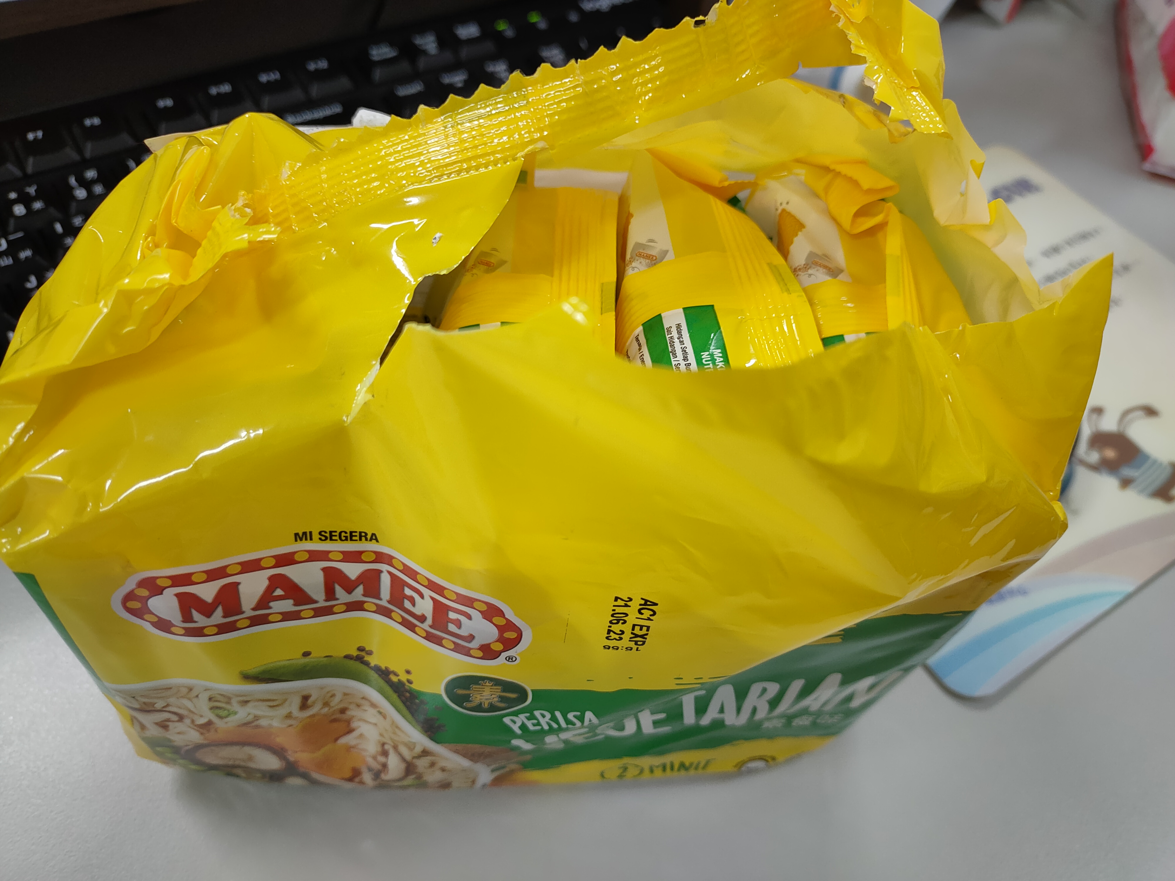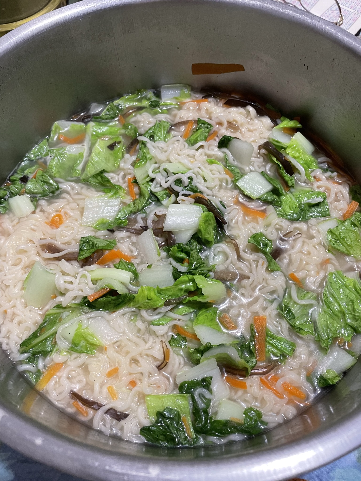 麵體: 小麥粉、棕櫚油﹝含有抗氧化劑(二丁基羥基甲苯)﹞、鹽、複方品質改良劑(多磷酸鈉、碳酸鉀、關華豆膠); 調味粉:鹽、L-麩酸鈉、5’-鳥嘌呤核苷磷酸二鈉、5’-次黃嘌呤核苷磷酸二鈉、糖、白胡椒、黑胡椒;風味油:軟質棕櫚油。