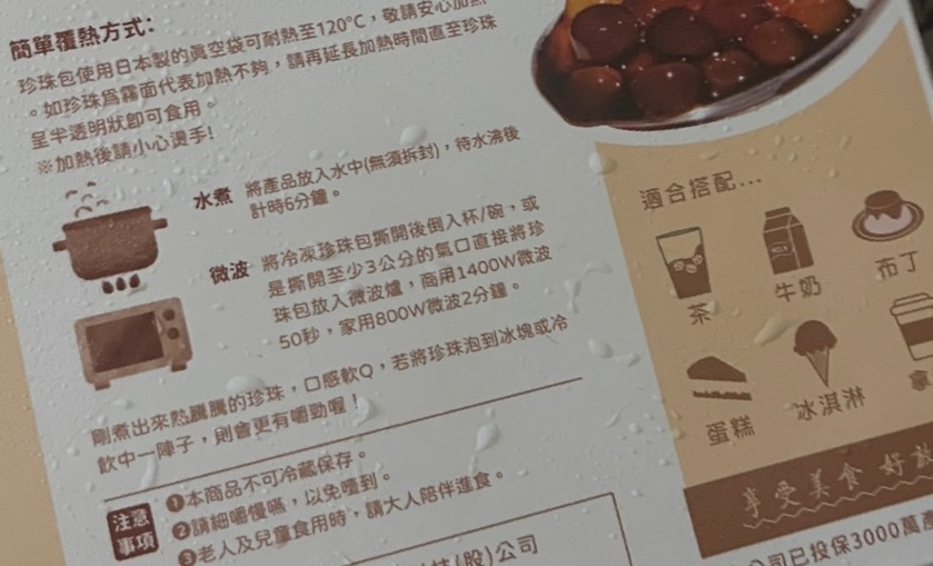 *1.如珍珠為霧面代表加熱不夠,請再自行延長加熱時間直至珍珠呈半透明狀即可食用。