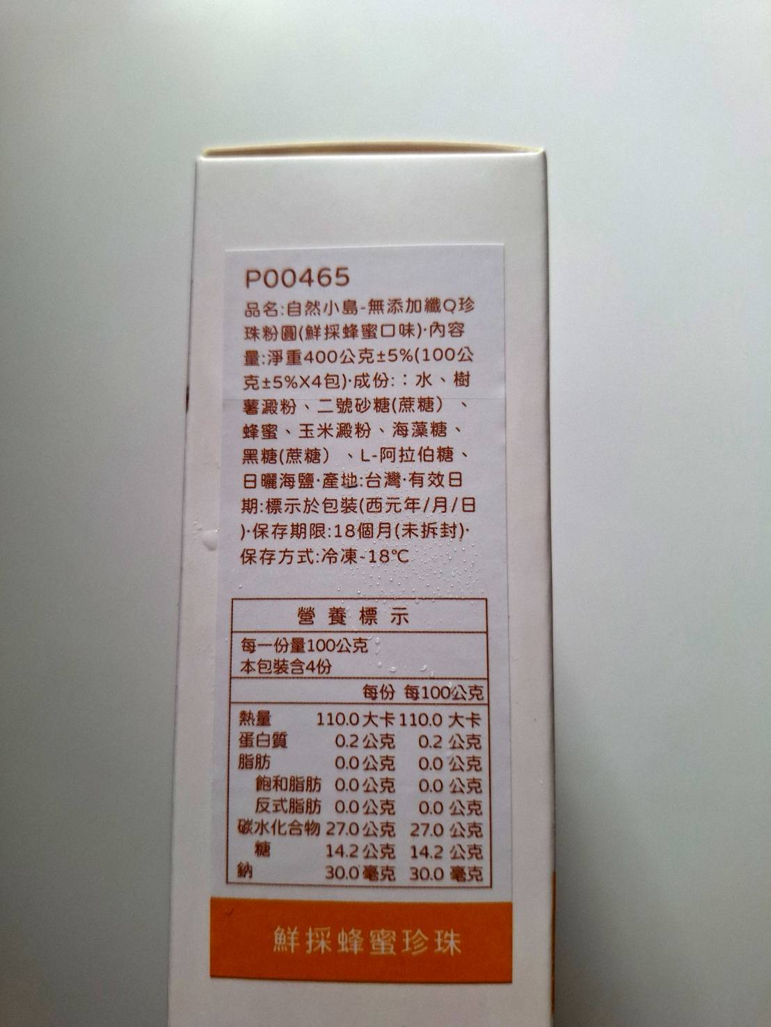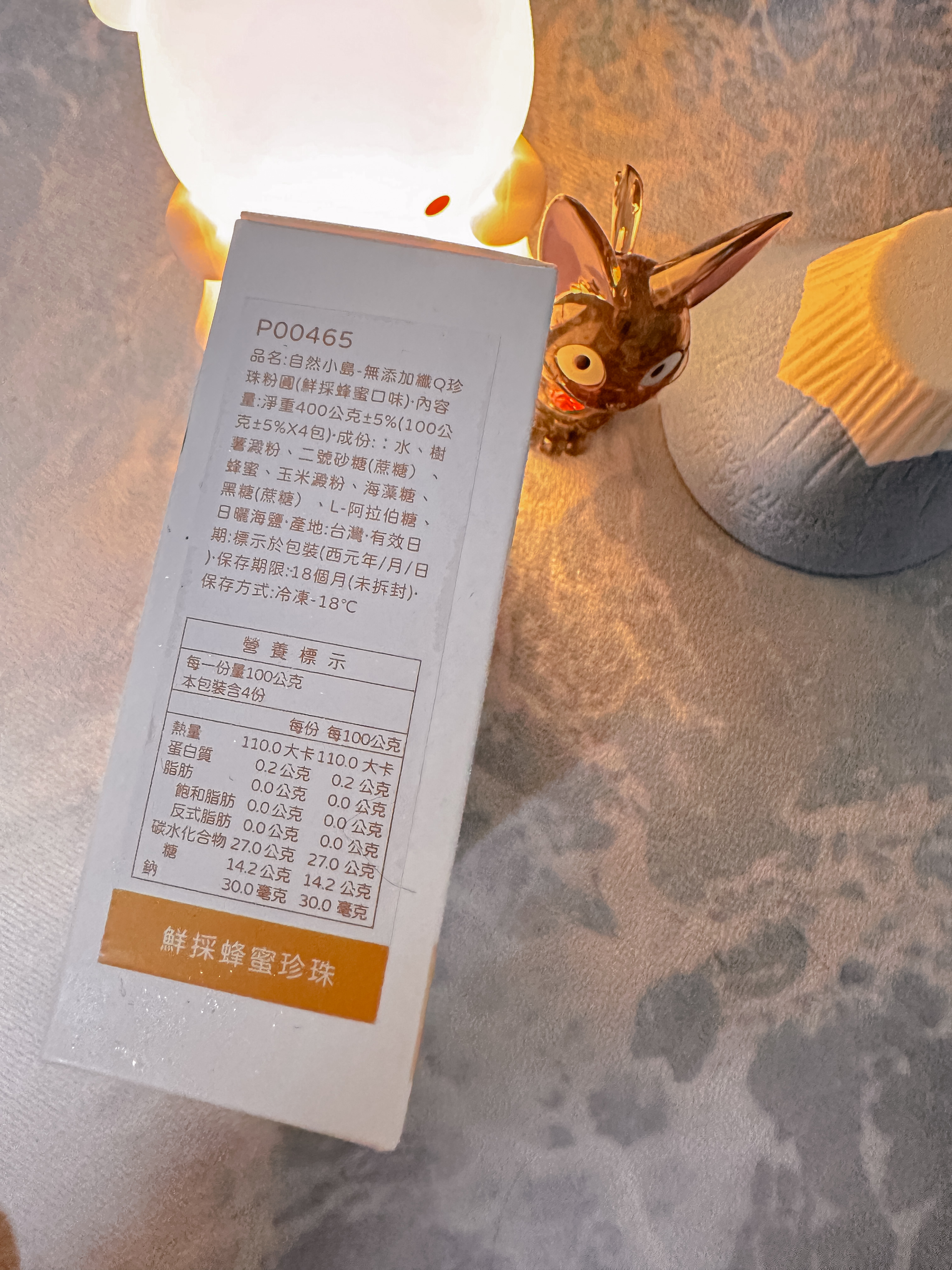 水、樹薯澱粉、二號砂糖(蔗糖)、蜂蜜、玉米澱粉、海藻糖、黑糖(蔗糖、糖蜜)、L-阿拉伯糖、日曬海鹽