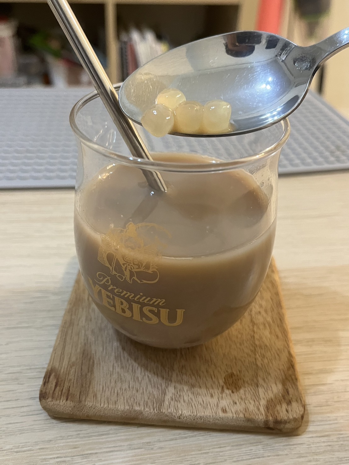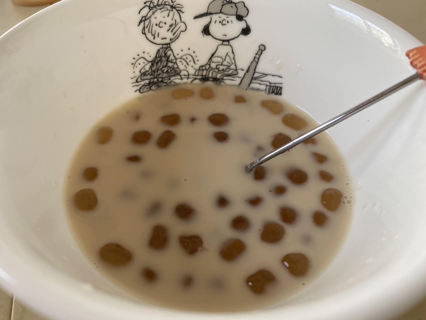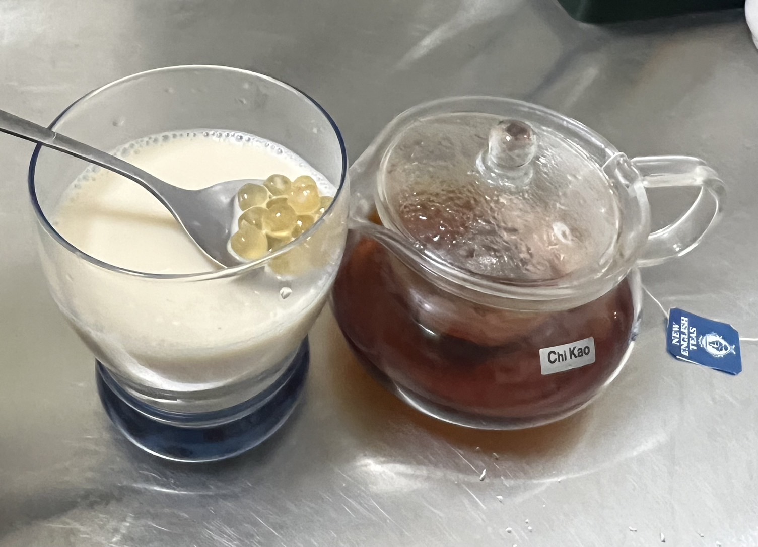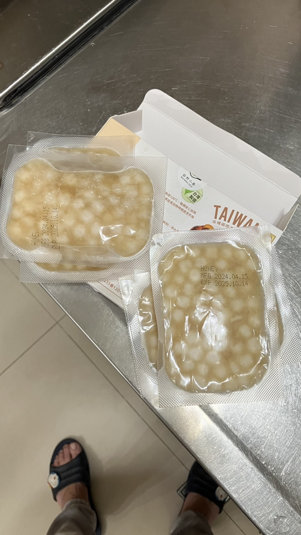 將珍珠包復熱完,加入鮮奶,茶,豆花,冰淇淋,蛋糕等都很美味!