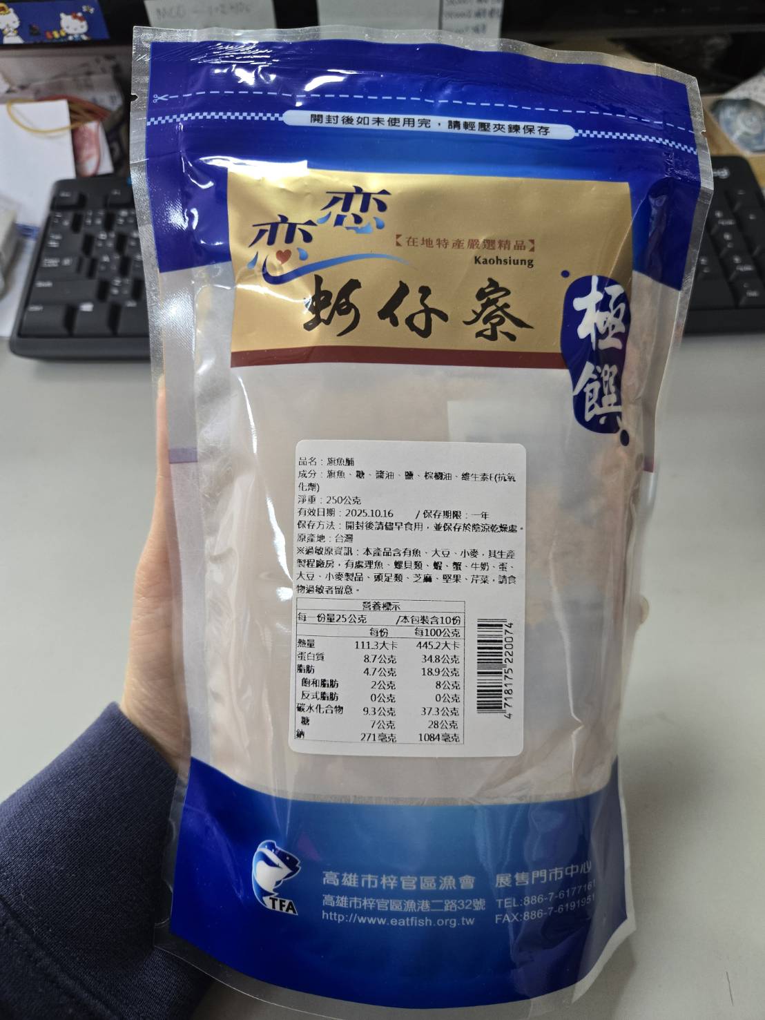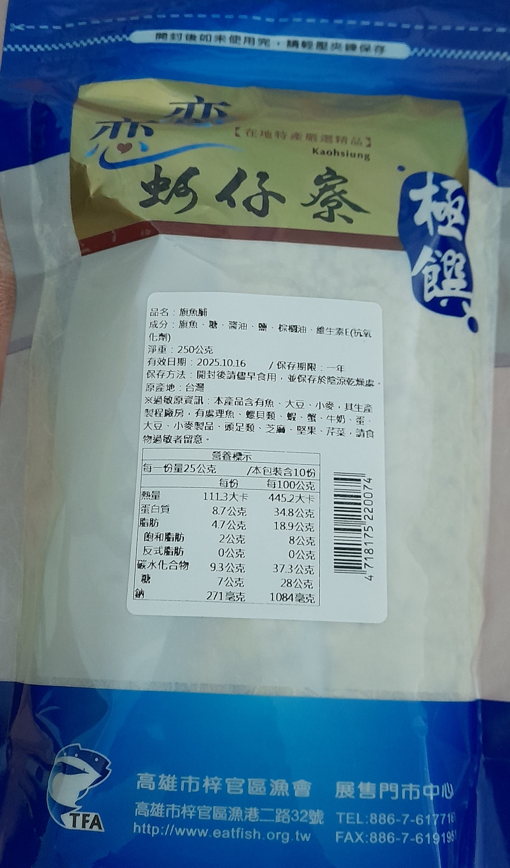 回列表 梓官區漁會 旗魚脯 享受海洋的濃郁風味 市價165元 (免費申請) 所需等級 一般會員以上 所需學分 60 體驗份數 15 關注人數 1233 申請人數 288 申請截止 品牌業者:梓官區漁會 負責廠商 乙陞有限公司 廠商地址 新北市板橋區三民路二段188號3樓 產地 台灣 試用產品規格 250g/包 食品業者登錄字號 A-116606102-00000-0 投保產品責任險字號 1305-03AKP0000576 心得分享 商品介紹 商品成分 使用方法 注意事項 體驗名單 9.3 梓官區漁會 旗魚脯 包裝美學 8.6 鮪魚香氣 9.3 口味鹹度 9.3 口感鬆軟 9.5 建議推薦 9.2 心得分享 15則 吳佳霓 鑽石達人 35歲 雲林縣 2024/12/24 對梓官區漁會 旗魚脯留下評價 10 看到梓官區漁會旗魚脯試吃體驗時,腦中立即浮現出一畫面,慈母一早煮一鍋白稀飯,旁邊的配菜一定有魚脯或肉鬆;所以收到體驗商品時,當晚馬上煮了一鍋白稀飯,所有的配菜料理讓人想到媽媽及國小時的回憶,小時候的早餐,媽媽一大早煮六人份一鍋番薯稀飯,熱騰騰的無法入口且又趕時間,所以必需用電風扇吹涼,當吃下一口稀飯配上梓官區漁會旗魚脯時,滿口的香甜滋味和小時候的回憶滿滿湧入心頭, 且能感受旗魚脯享受海洋的濃郁風味,值得推薦。 姚玉華 鑽石達人 56歲 臺中市 2024/12/19 對梓官區漁會 旗魚脯留下評價 10 很高興入選梓官區漁會鮪魚脯的試用體驗,小時候家裡有賣肉鬆、魚脯,想吃隨時都有,配稀飯、配飯、夾土司、夾饅頭、單吃都很好吃,長大以後家裡沒賣肉鬆、魚脯,肉鬆比較容易買到,魚脯比較不容易買到,很懷念魚脯的滋味。 梓官區漁會的魚脯是採用蚵仔寮嚴選旗魚製做,纖維較長,水分含量較多,吃起來較蓬鬆柔軟,蛋白質含量高達35%左右,富含離胺酸及蛋氨酸等必需胺基酸,有助健康維持。 旗魚脯的成分單純,讓人吃了很安心,我覺得比較像旗魚鬆,小時候吃的魚鬆比較油,鹹甜鹹甜,旗魚脯不油,口味清淡,推薦給大家。 余祐鋌 金食達人 64歲 高雄市 2024/12/20 對梓官區漁會 旗魚脯留下評價 9 12/18收到旗魚脯試吃品,隔日早餐立馬用2片土司包裹著水煮蛋與蚵仔寮旗魚🐟脯,搭配濾泡式掛耳咖啡。戀戀蚵仔寮旗魚脯採用新鮮旗魚肉製成,新鮮食材,讓我們消費者吃得安心,保有魚貨鮮度,使魚的鮮味香氣更加濃郁,魚肉含有優質的蛋白質,低脂肪、碳水化合物、納、低熱量,口感酥鬆無腥味,適合老人家與小孩,是老少咸宜的好食品。沒有魚腥味,帶著特殊香氣,而魚脯也逐漸成為開始學吃稀飯的小朋友、或是牙口不好的老人家,食用稀飯時的營養補充好物。但對我來說,這可是配飯、呷好玩皆宜的防餓好東西!! (其實根本就是嘴饞,隨時都愛吃~)纖維較長,水分含量較多,吃起來較蓬鬆柔軟,蛋白質含量高,富含離胺酸及蛋胺酸等必需胺基酸,有助健康維持! 楊祖安 鑽石達人 44歲 臺北市 2024/12/20 對梓官區漁會 旗魚脯留下評價 9 感謝食力和乙陞有限公司的食驗室試吃活動,很榮幸獲得這個梓官區漁會的鮪魚脯,商品包裝用心,有附夾鏈層讓未食用完時可以密封保存,送禮自用兩相宜,很適合買來當作禮品送給好友們,平常就很喜歡吃魚鬆,鮪魚脯食用方式很多,可以搭配稀飯、夾吐司饅頭、包飯糰壽司,或是加入清淡的湯裡,增加風味及口感,這款鮪魚脯的口感非常細緻,濃郁魚味香味很香,蓬鬆細顆粒狀,不需要太多咀嚼動作,且不會像一般肉鬆太乾,有淡淡鹹香味,魚的鮮味吃得到,是很好的佐餐食材。 王美玉 金食達人 51歲 臺南市 2024/12/20 對梓官區漁會 旗魚脯留下評價 9 原本試吃的應該是鮪魚脯,可是寄來的是旗魚脯,不過一樣是很開心能抽中體驗試吃,因為一樣很營養美味~ 收到產品時,正好在吃中飯,便立刻和老公“馬上試吃“,外包裝是夾鏈袋,還蠻方便的,因為是蚵仔寮漁港直送,急鮮加工,細火慢培,手工拌炒,打開就有一股魚鮮味飄散,完全沒有魚腥味,香氣十足,一入口就知道東西有新鮮,外觀色澤較淺,纖維較粗,需要咀嚼,口感較沒魚鬆那麼入口就化開來,雖個人較喜愛魚鬆,不過這產品的旗魚脯口感鮮美,鹹甜適中,又酥脆,愈嚼愈香,不僅很適合配白粥,還可搭配米糕,肉粽、肉燥飯,整體來說,產品健康又美味,還蠻喜歡的~ Allen Ho 鑽石達人 41歲 臺中市 2024/12/20 對梓官區漁會 旗魚脯留下評價 8 其實我收到的不是鮪魚脯而是旗魚脯,所以照片與心得就依照我實際收到的旗魚脯來敘述,首先看到包裝就會聯想到海港、魚市場、魚攤等滿滿海味的地方,蚵仔寮漁港是南台灣重要的漁港之一,梓官區漁會將在地漁民捕獲的漁獲製成許多產品,上網查資料,原來旗魚也有產季,約在每年11月過後,體驗日期在12月可以說是食當季啊!雖然產品名稱是旗魚脯,但吃起來鬆鬆的,纖維也很短,並沒有小時候對魚脯的印象是會卡牙縫的,真是大大的加分,早餐拿來夾饅頭吐司或配粥,滿足! 張若君 鑽石達人 57歲 新北市 2024/12/22 對梓官區漁會 旗魚脯留下評價 9 第一眼見到產品,感受到的是包裝相當的簡潔大方,配色也很完美。上下的藍色直覺聯想到海洋(海鮮),連接著金色的部份,彷佛是魚脯閃閃發光。中間部份為透明的,可以清楚看見魚脯的樣貌。摸起來非常厚實,足見份量十足。收到產品後,立刻打開試吃,在口中很明顯的有一股鮮味,且口感相常綿密,單吃就相當好吃。也嚐試做了飯糰,想不到意外的好吃。也做了三明治,也別有一番滋味。無論是搭配米飯或者是土司,都能互相融合,令味道或口感達到完美的平衡。查看