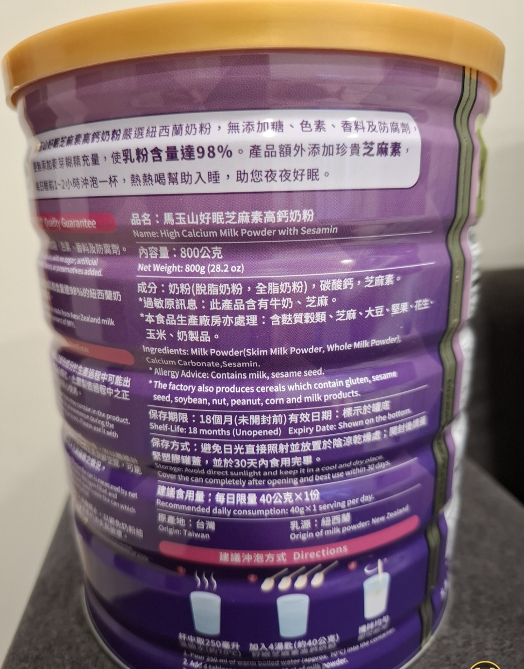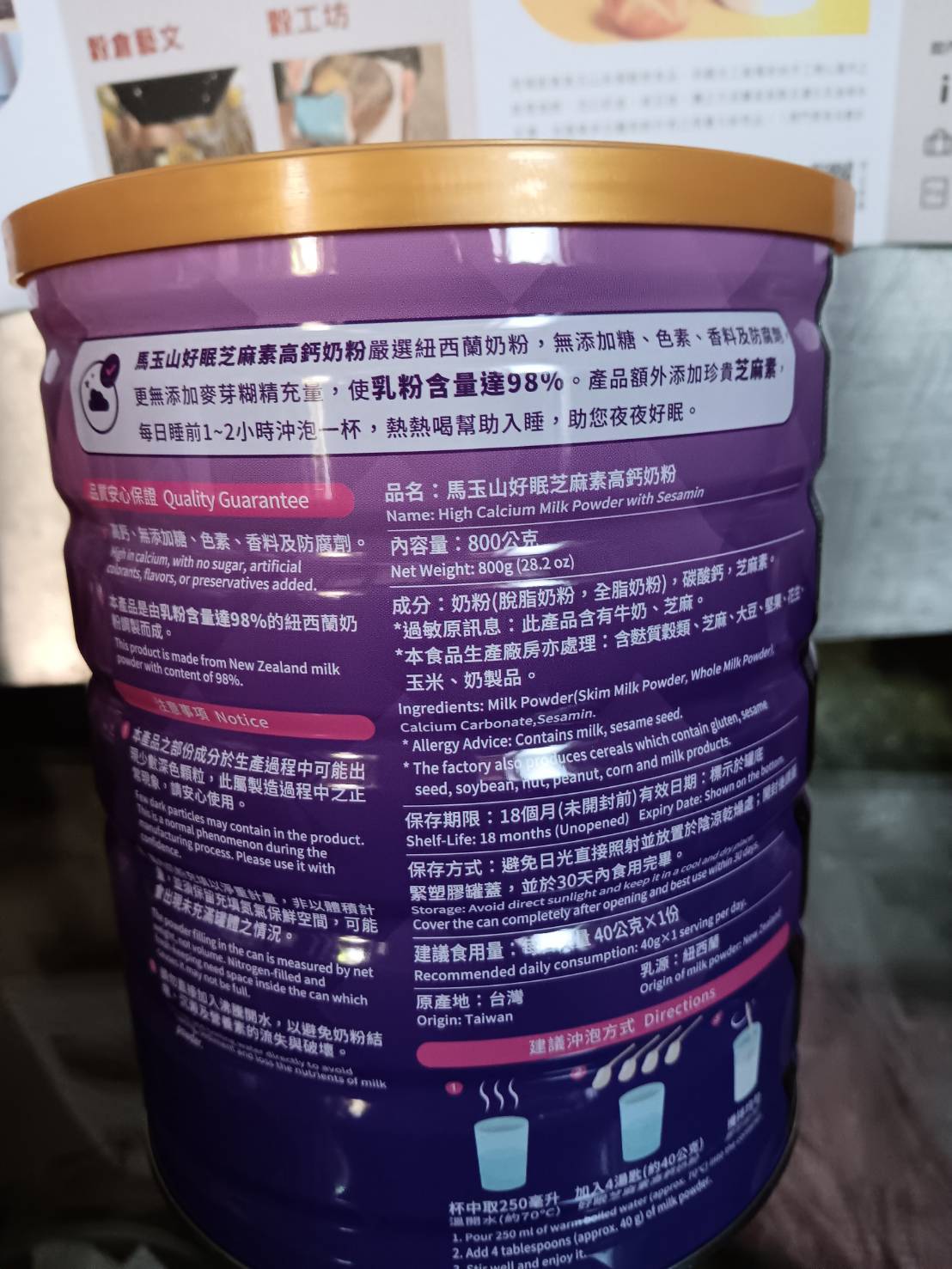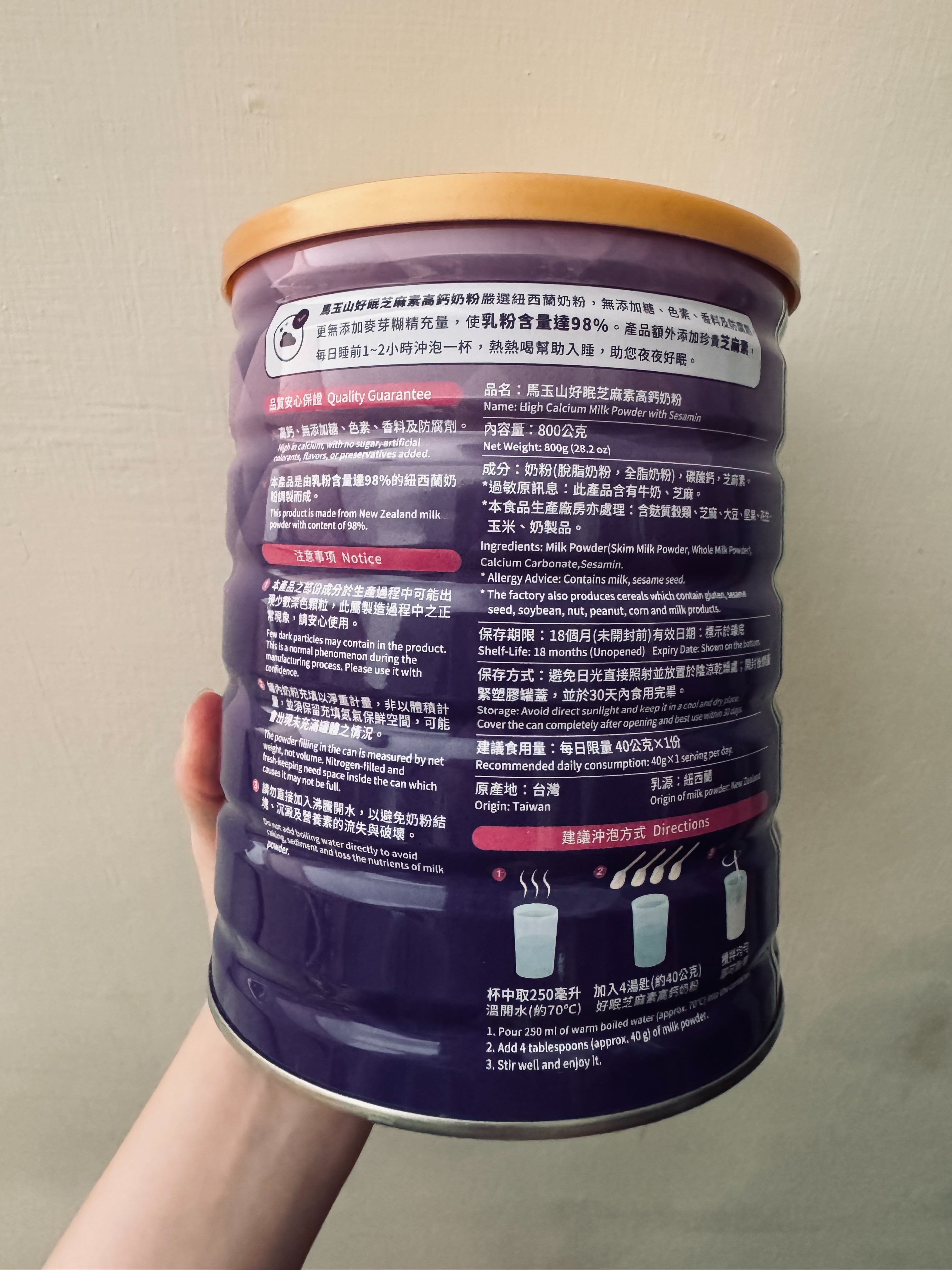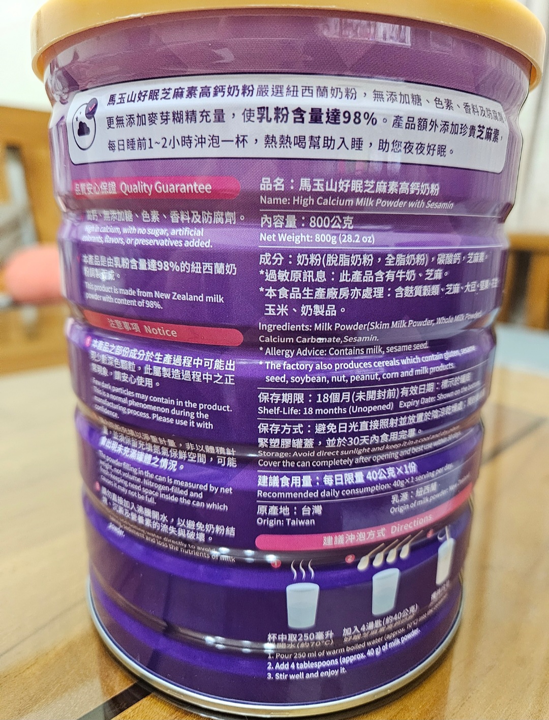 | 試用產品規格 | 馬玉山好眠芝麻素高鈣奶粉(800g/罐)+馬玉山觀光工廠入園門票及DIY體驗劵 |